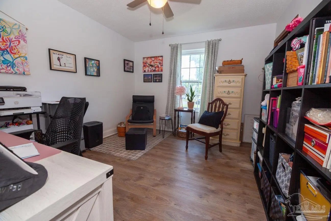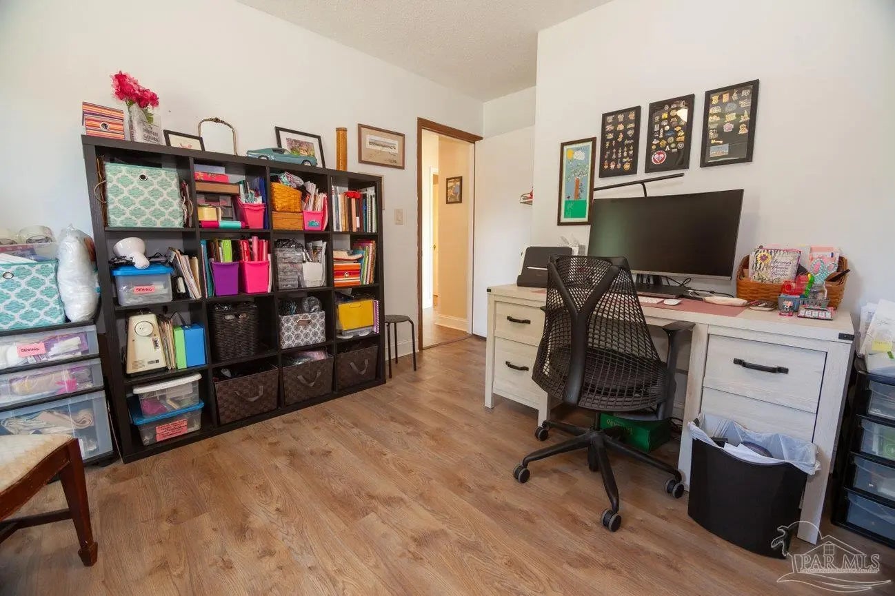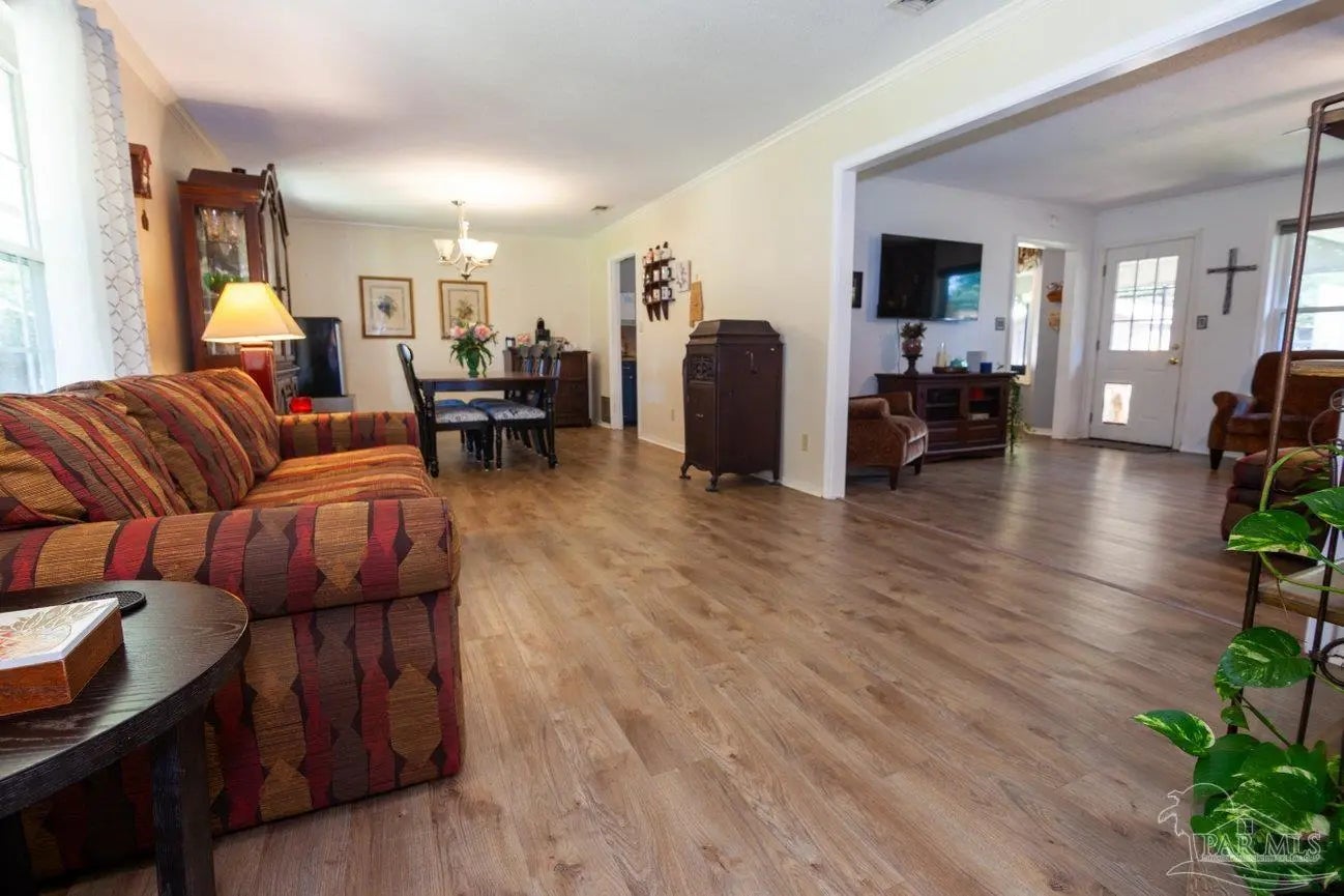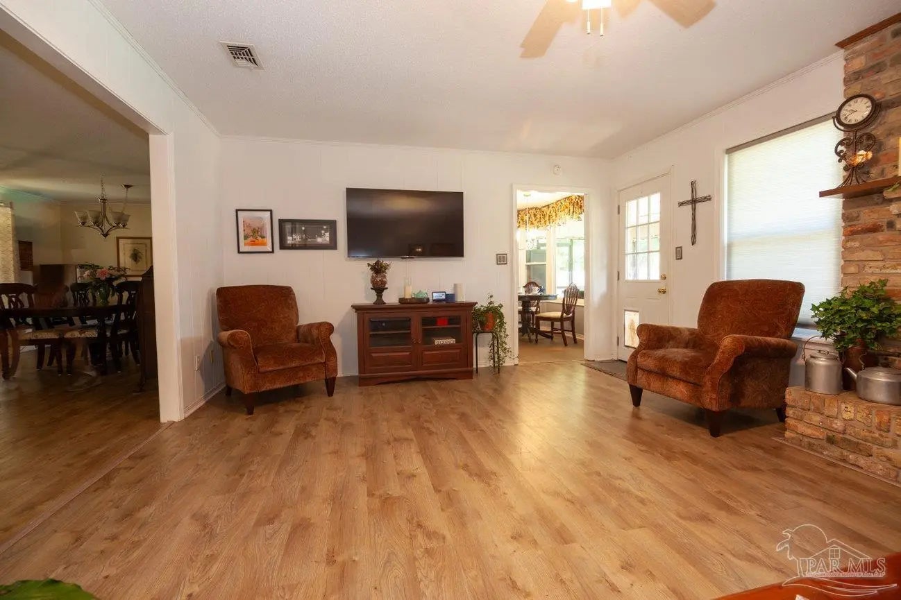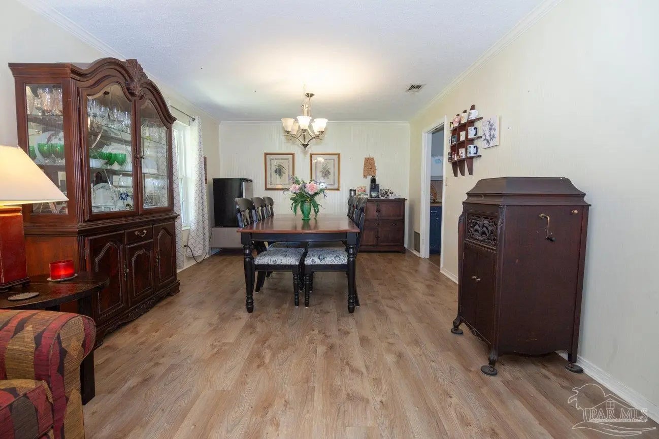 POOLSIDE LIVING MEETS EVERYDAY COMFORT in this beautifully maintained 5-bedroom home located in the desirable Camelot subdivision in Northeast Pensacola, offering over 2,100 square feet of space, flexibility, and standout features that are hard to find in one property. From the moment you walk in, you’re welcomed by warm natural light, updated flooring, and a spacious layout anchored by a classic brick fireplace—creating an inviting central gathering space that flows seamlessly into the a living and dining area. The kitchen is both functional and well-equipped with ample cabinetry and decorative tile backsplash, while the renovated primary bathroom with solid stone countertops adds a clean, modern touch where it counts most. Whether you need room to grow, host, or work from home, this layout adapts effortlessly to your lifestyle. —-Step outside and it only gets better. A screened-in porch opens to your private backyard retreat featuring an in-ground pool, expansive patio space, and multiple areas to relax or entertain year-round. The detached garage/workshop adds valuable flexibility for storage, hobbies, or projects, while the wide lot gives you the space and privacy you're looking for. With a newer roof, double-pane windows, indoor laundry, and a location convenient to UWF, hospitals, shopping, dining, and major roadways, this home delivers a rare blend of comfort, function, and lifestyle in one move-in ready package.