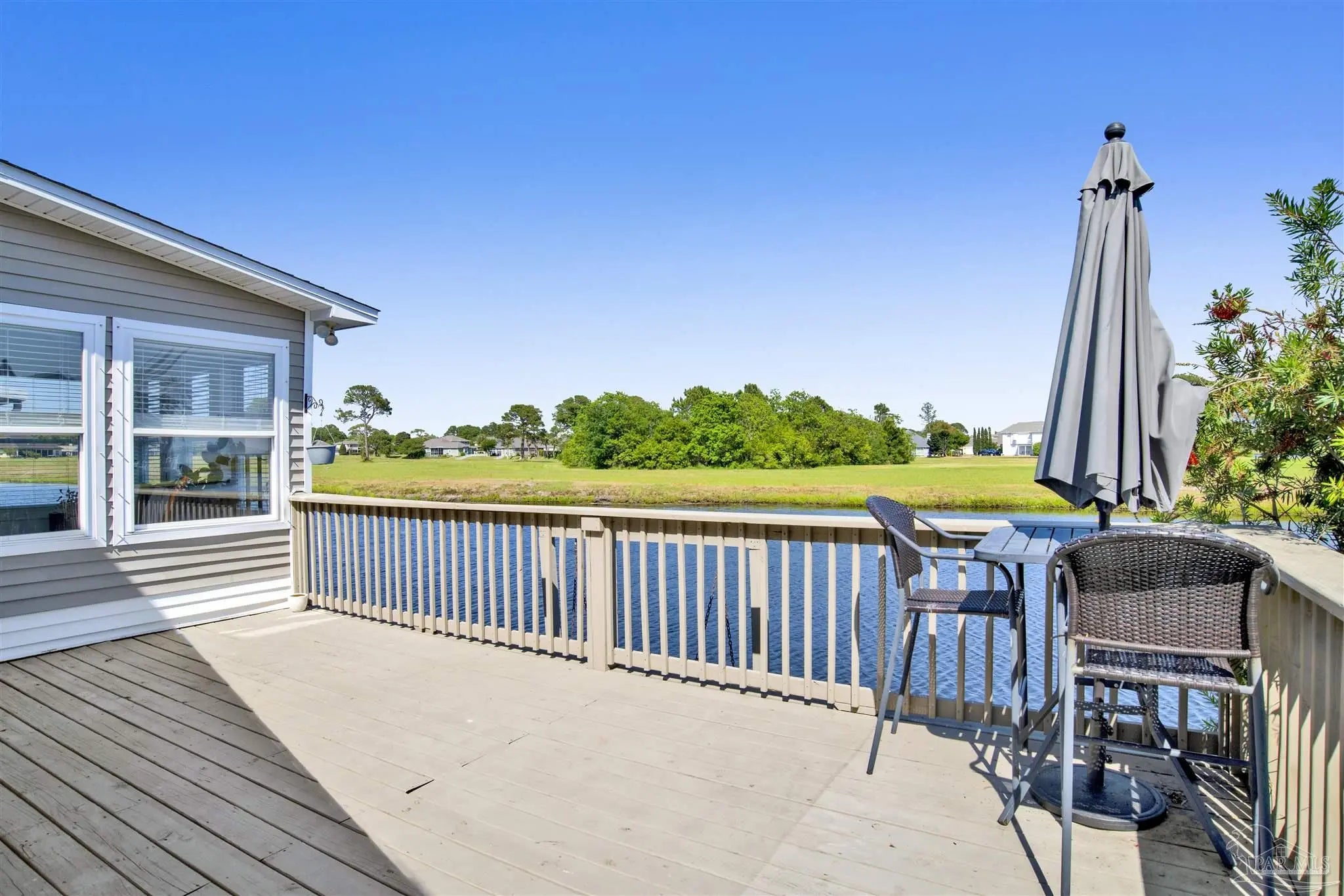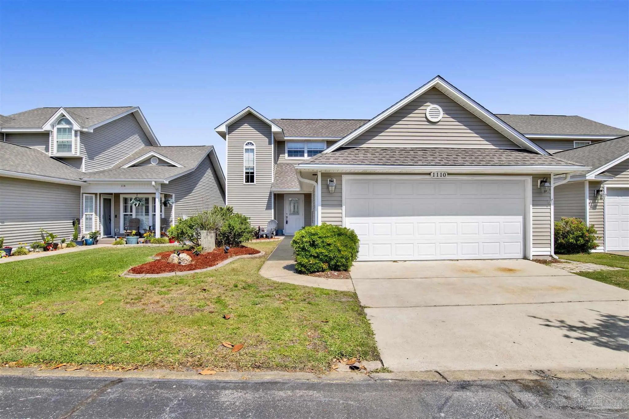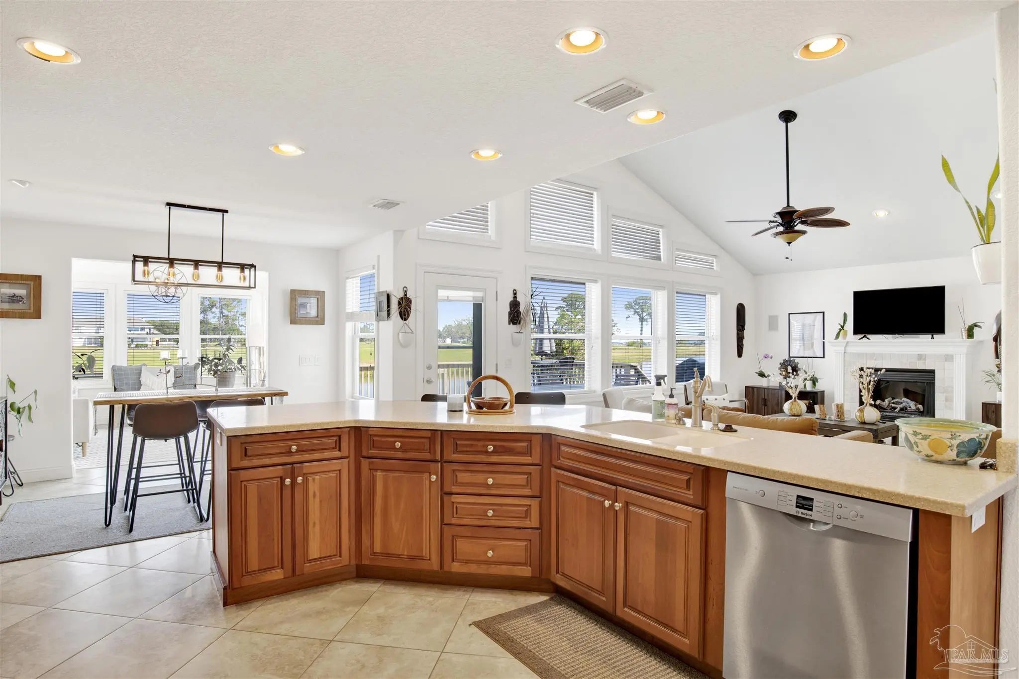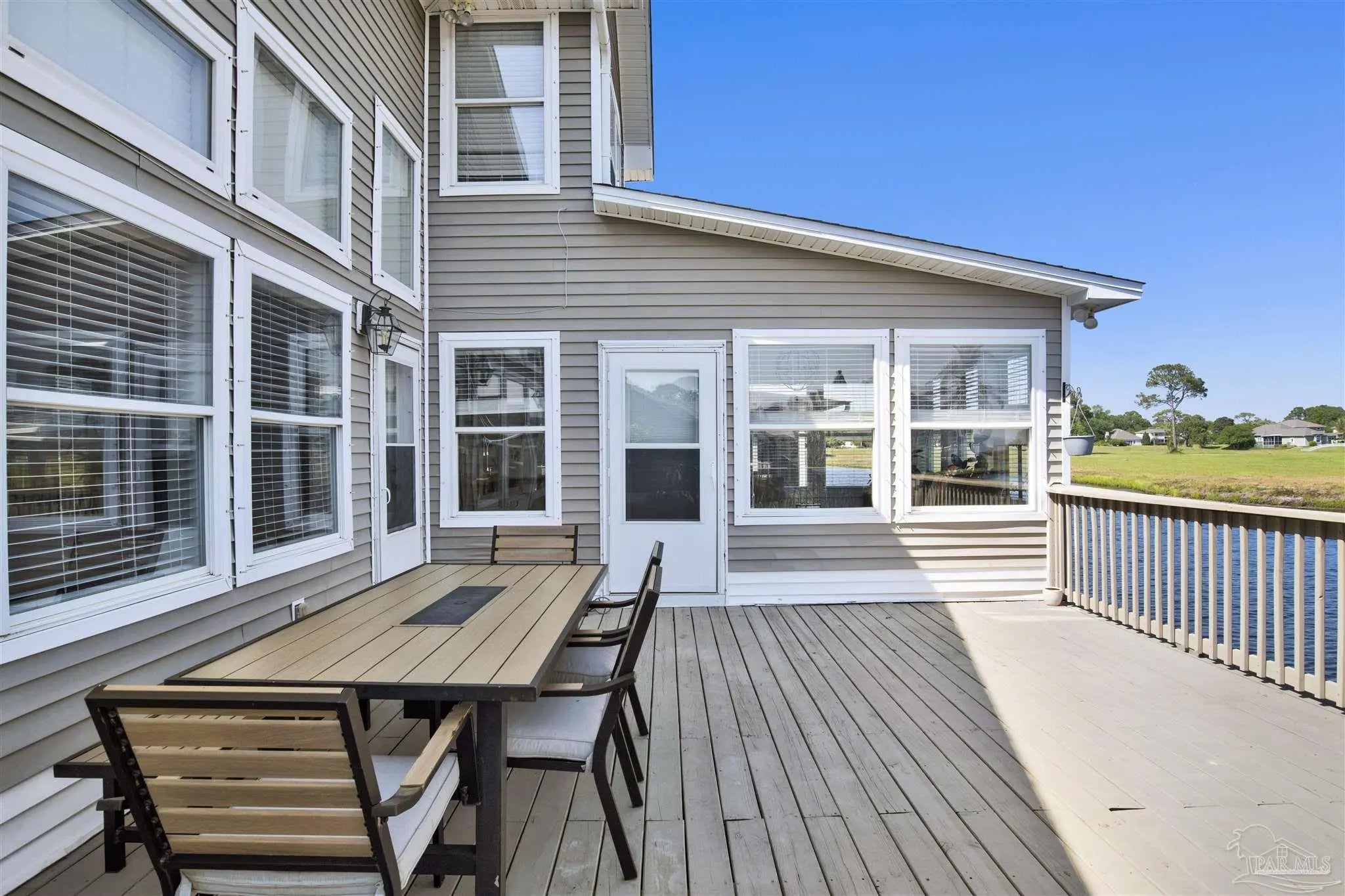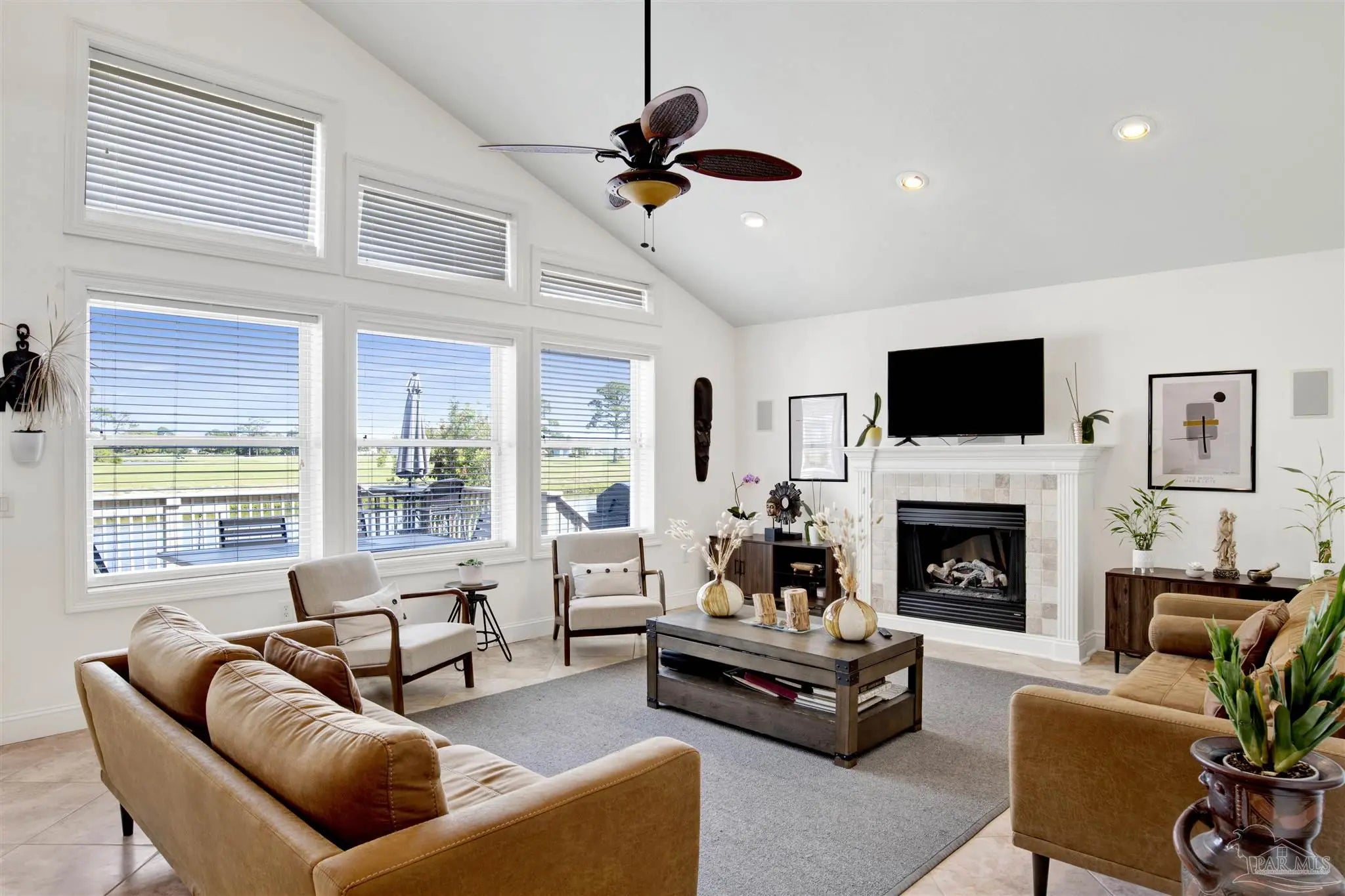 Welcome to your new home in the coveted Lionsgate section of Tiger Point! Situated on a serene lake with panoramic views of Santa Rosa Sound and the Tiger Point Golf Course, this waterfront residence offers luxury living and effortless style. Step inside to a breathtaking great room featuring vaulted ceilings, a cozy gas fireplace, and a wall of windows that flood the space with natural light and showcase the spectacular water and golf course views. The open layout flows seamlessly into the dining area and an impressive kitchen complete with a large peninsula, floor-to-ceiling cabinetry with specialty drawers, stainless steel appliances and ample counter space for entertaining. Just off the main living area, the Florida room is wrapped in windows, offering a tranquil space to relax and enjoy the beauty of the surrounding landscape year-round. The thoughtfully designed split-bedroom floor plan provides privacy and comfort. The primary suite, located on the lower level, is a peaceful retreat with elegant crown molding, his & her walk-in closets, and a spa-like ensuite bath featuring split double vanities, a jetted garden tub, and a separate tiled walk-in shower. A convenient half bath and a spacious laundry room with wet sink complete the lower level and offer easy access to the double car garage. Upstairs, luxury vinyl plank flooring runs throughout the loft and two generously sized bedrooms, each with ceiling fans, large closets, and stunning lake views. A full bath with tile flooring and a tub/shower combo completes the upper level. Step outside onto the expansive open deck, perfect for entertaining, dining al fresco, or just taking in the breathtaking views of the lake, golf course, and Santa Rosa Sound. The peaceful lake is ideal for kayaking, paddleboarding or fishing off your deck Additional features include: * Paid in full Solar panels for energy efficiency * Lawn maintenance provided by HOA Don’t miss the opportunity to own this beautiful waterfront oasis!