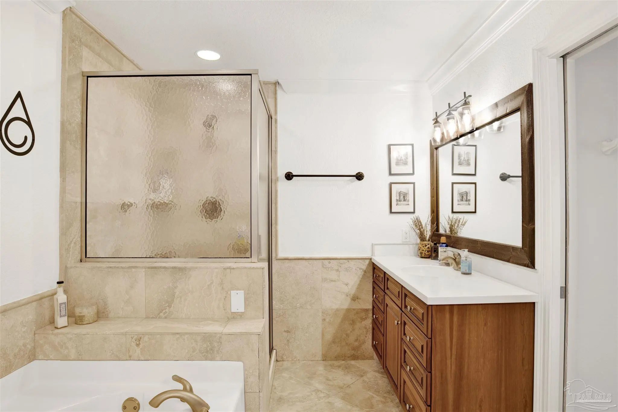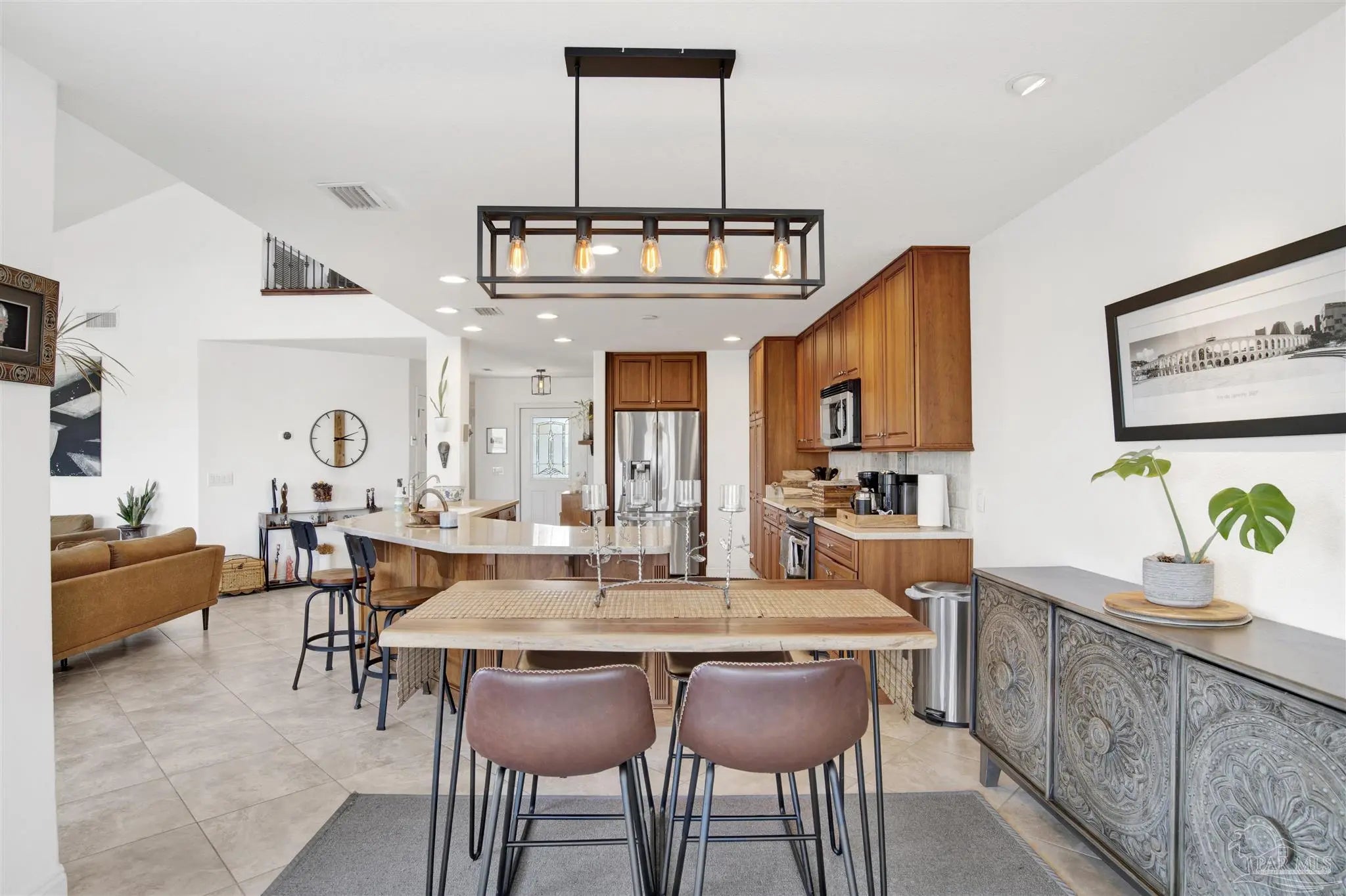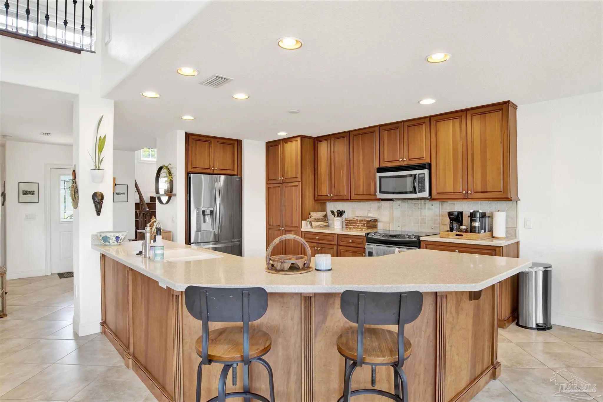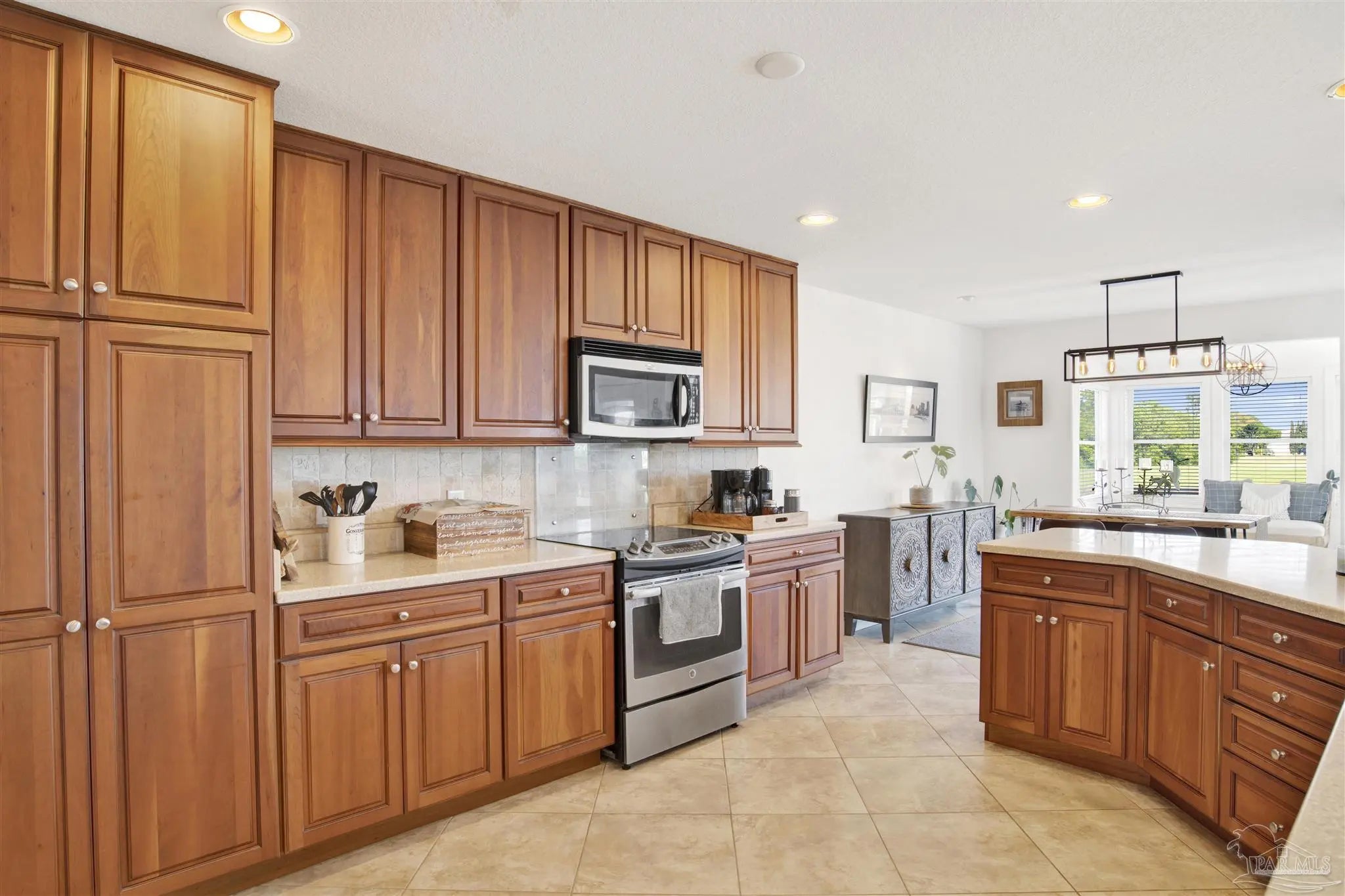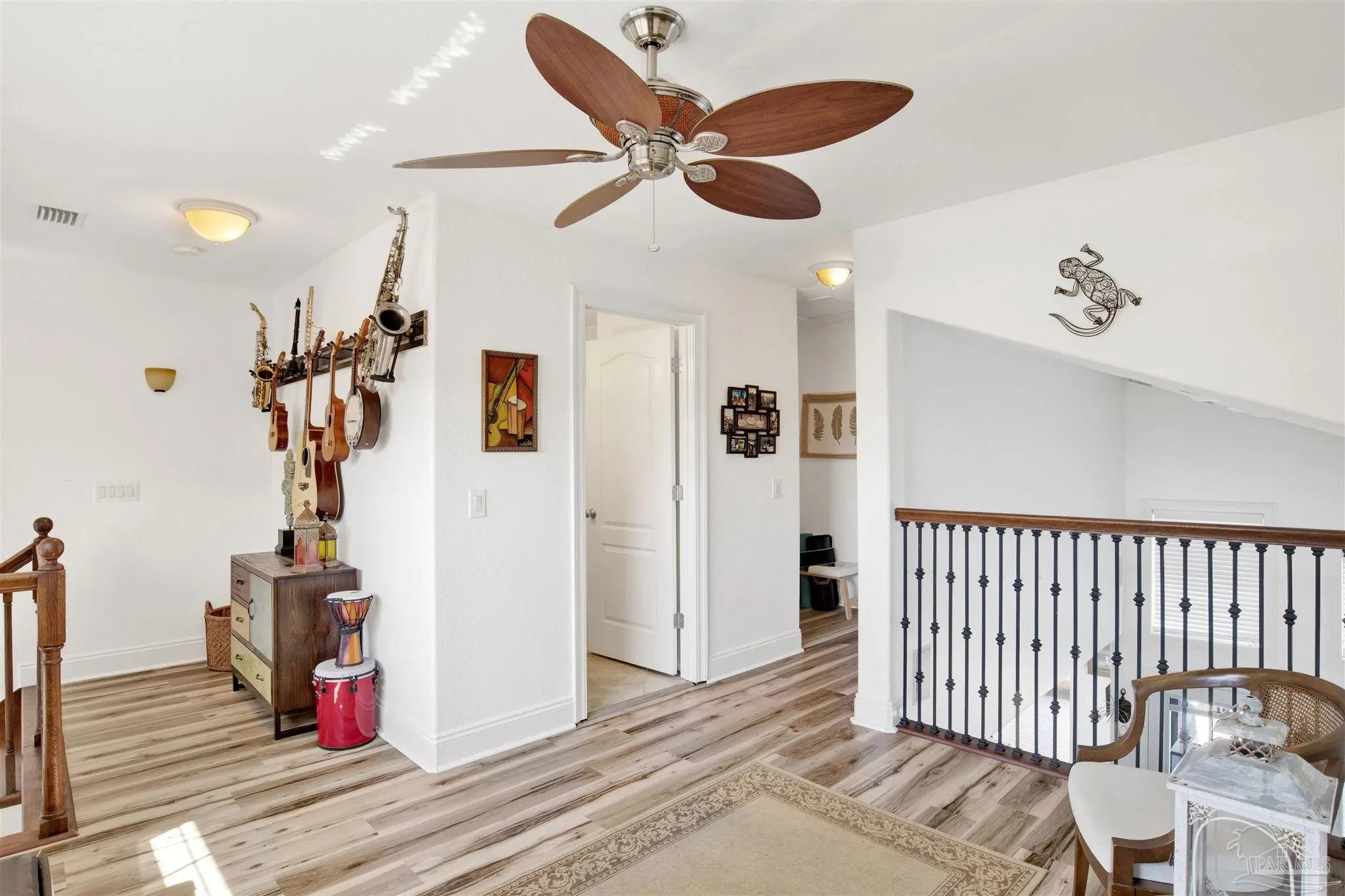 Welcome to your new home in the coveted Lionsgate section of Tiger Point! Situated on a serene lake with panoramic views of Santa Rosa Sound and the Tiger Point Golf Course, this waterfront residence offers luxury living and effortless style. Step inside to a breathtaking great room featuring vaulted ceilings, a cozy gas fireplace, and a wall of windows that flood the space with natural light and showcase the spectacular water and golf course views. The open layout flows seamlessly into the dining area and an impressive kitchen complete with a large peninsula, floor-to-ceiling cabinetry with specialty drawers, stainless steel appliances and ample counter space for entertaining. Just off the main living area, the Florida room is wrapped in windows, offering a tranquil space to relax and enjoy the beauty of the surrounding landscape year-round. The thoughtfully designed split-bedroom floor plan provides privacy and comfort. The primary suite, located on the lower level, is a peaceful retreat with elegant crown molding, his & her walk-in closets, and a spa-like ensuite bath featuring split double vanities, a jetted garden tub, and a separate tiled walk-in shower. A convenient half bath and a spacious laundry room with wet sink complete the lower level and offer easy access to the double car garage. Upstairs, luxury vinyl plank flooring runs throughout the loft and two generously sized bedrooms, each with ceiling fans, large closets, and stunning lake views. A full bath with tile flooring and a tub/shower combo completes the upper level. Step outside onto the expansive open deck, perfect for entertaining, dining al fresco, or just taking in the breathtaking views of the lake, golf course, and Santa Rosa Sound. The peaceful lake is ideal for kayaking, paddleboarding or fishing off your deck Additional features include: * Paid in full Solar panels for energy efficiency * Lawn maintenance provided by HOA Don’t miss the opportunity to own this beautiful waterfront oasis!