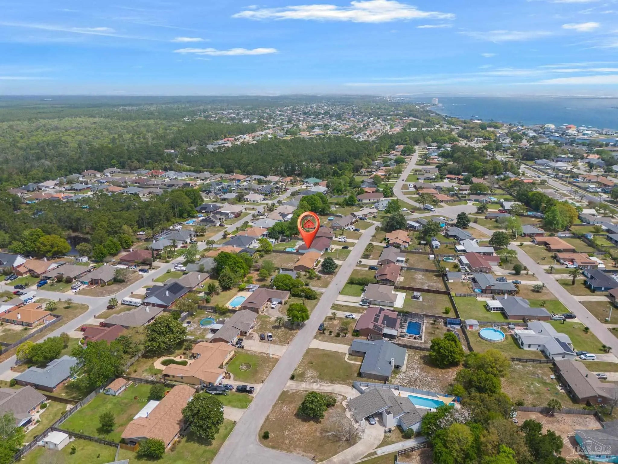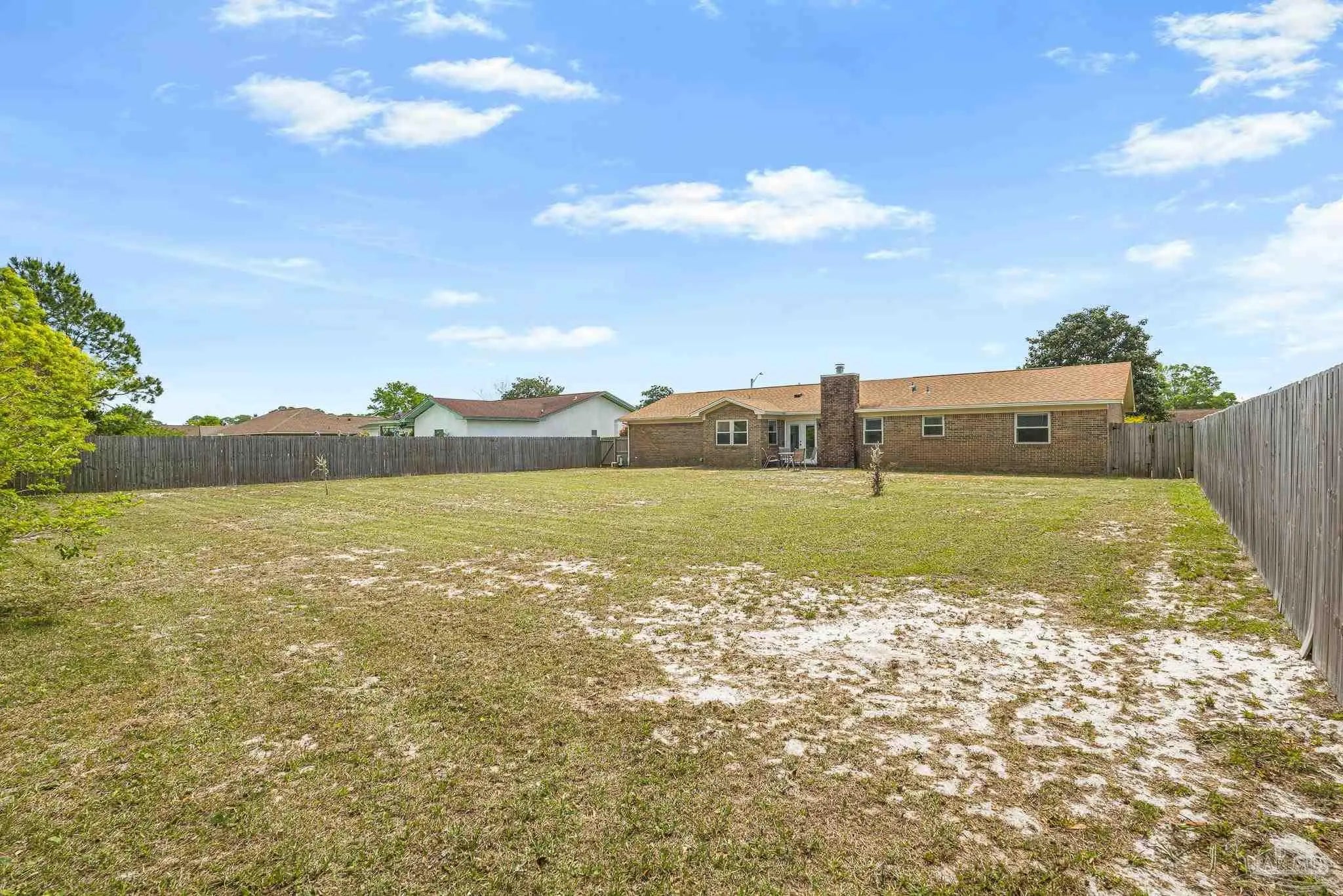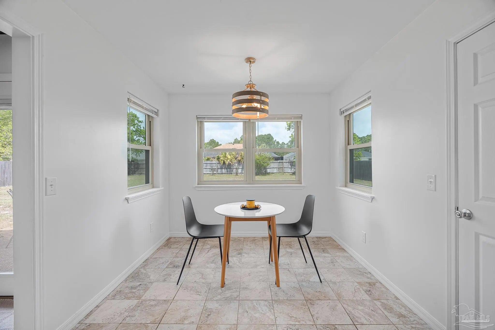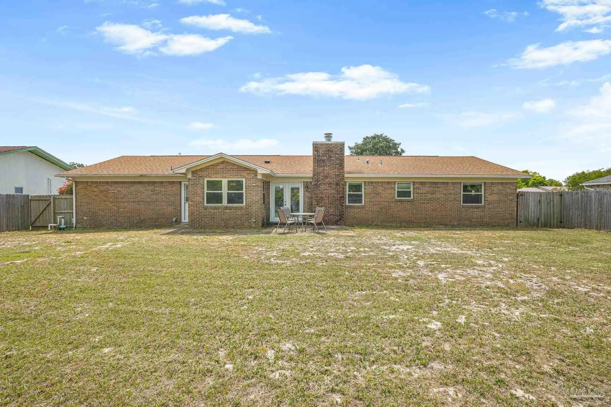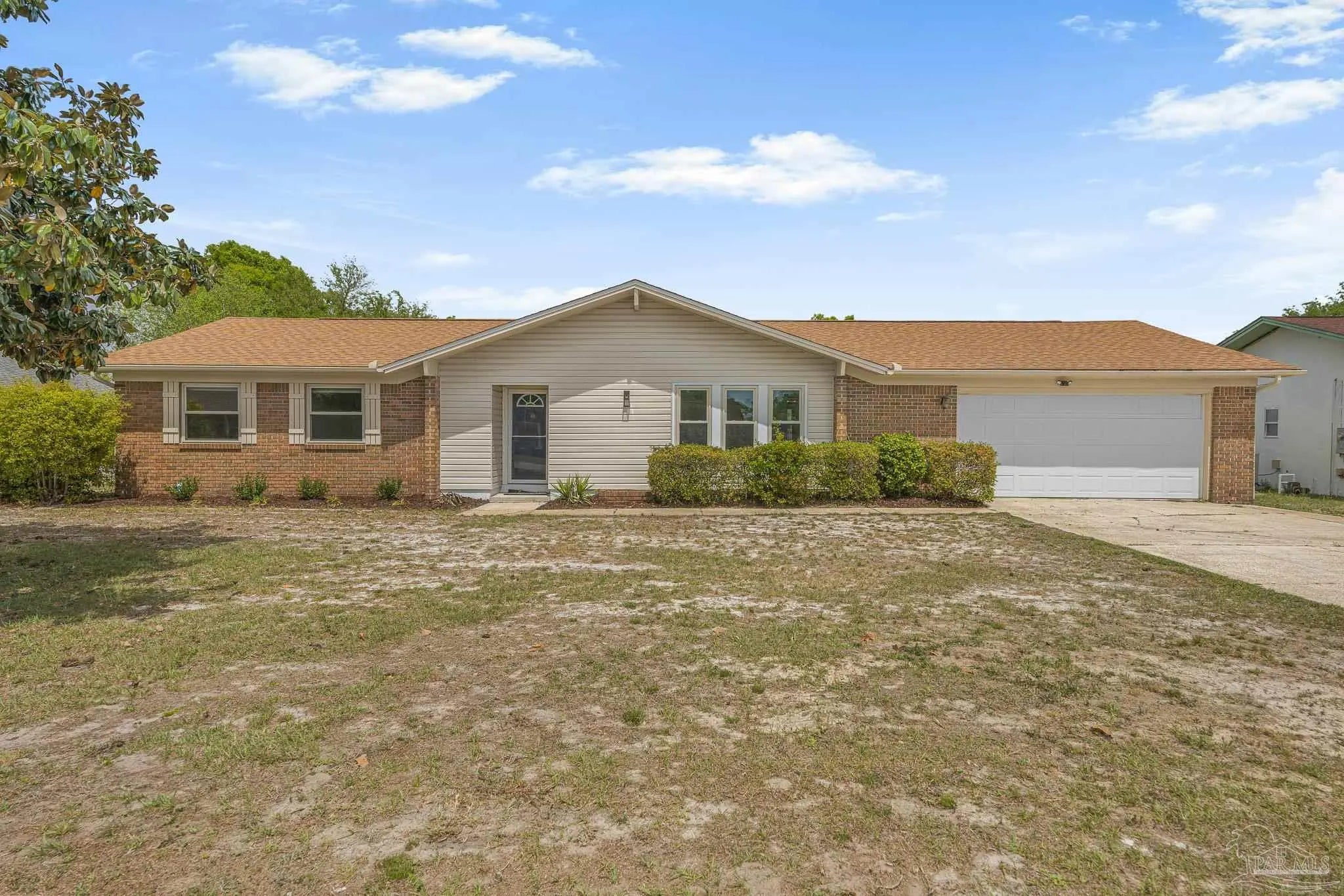 Step into a home that effortlessly blends everyday comfort with flexible living spaces designed to fit your lifestyle. This 3 bedroom, 2 bathroom residence offers a functional layout and comfortable living spaces throughout. An entryway with extended flex space and a formal dining room creates a versatile first impression, perfect for entertaining or additional living needs. Modern light fixtures add a fresh touch, while the kitchen features a breakfast nook for casual dining and flows seamlessly into a spacious living room anchored by a charming white brick fireplace. The primary suite includes a private en-suite bath, and a dedicated laundry room provides extra storage. Step outside to enjoy the outdoor patio overlooking a large fenced backyard—ideal for relaxing or hosting gatherings. Conveniently located in Southwest Pensacola near NAS Pensacola and just minutes from the beautiful beaches of Perdido Key, this home also offers access to nearby parks, water activities, and the amenities of the desirable Grande Lagoon area, blending everyday convenience with coastal living.
