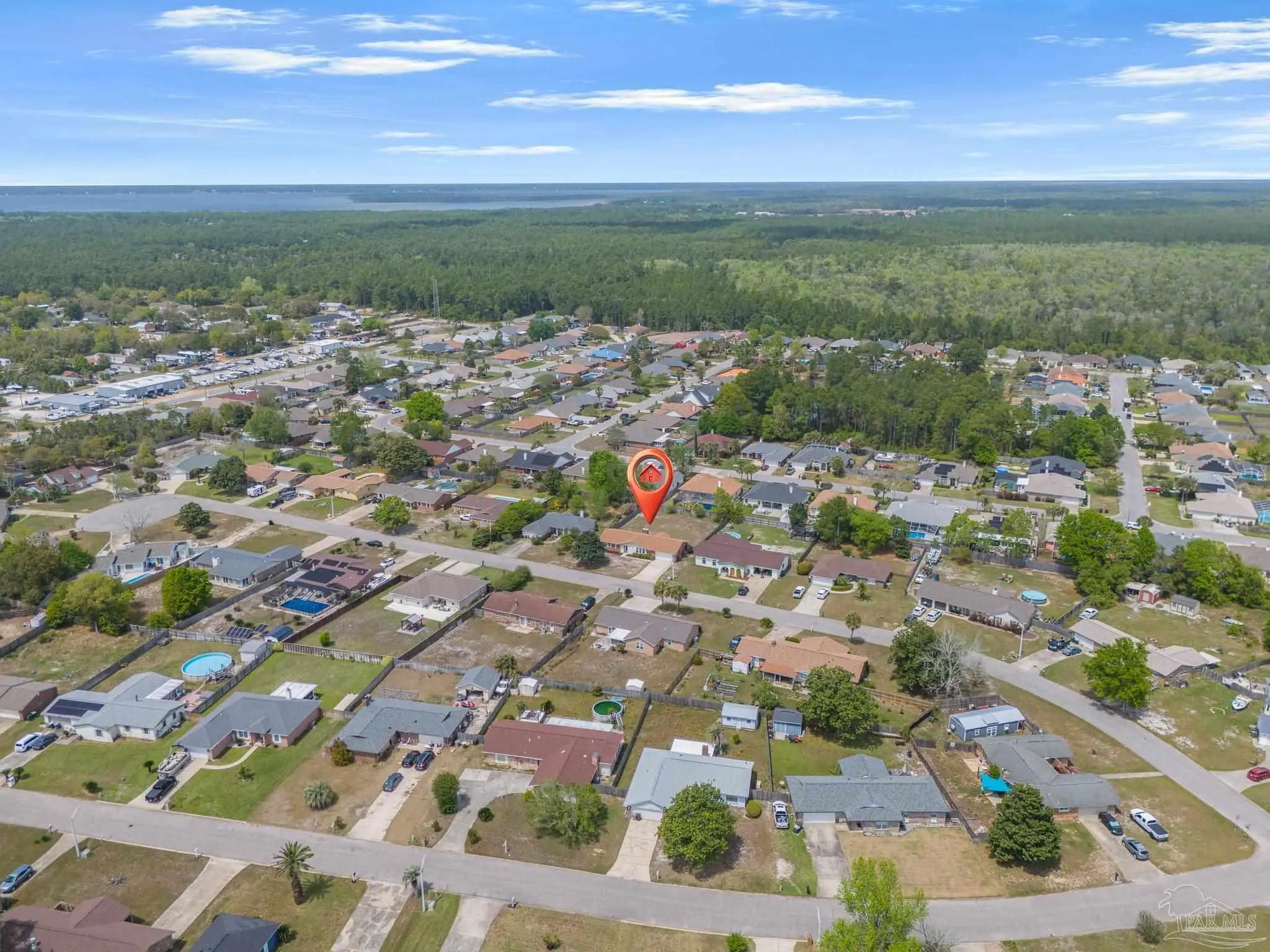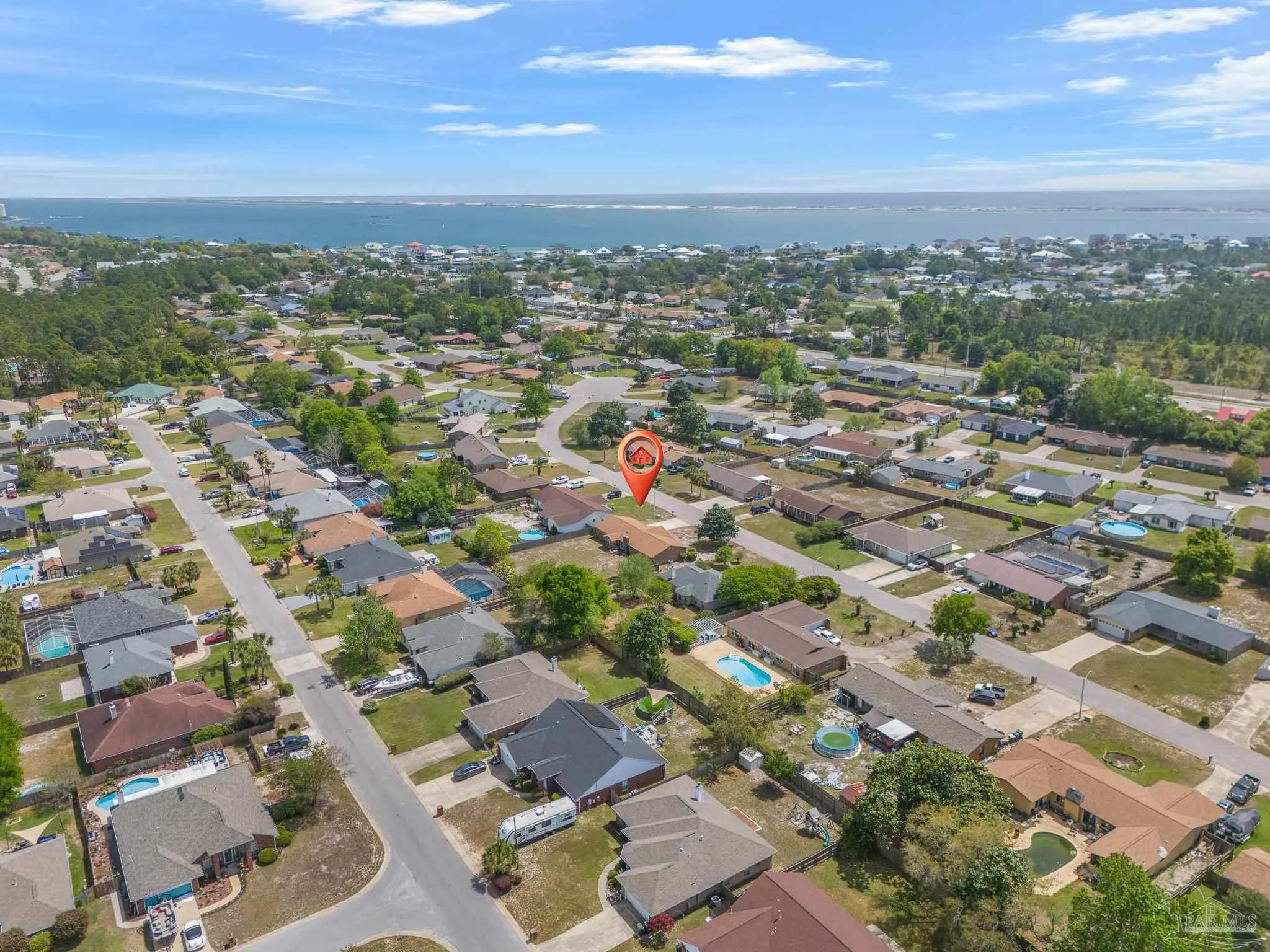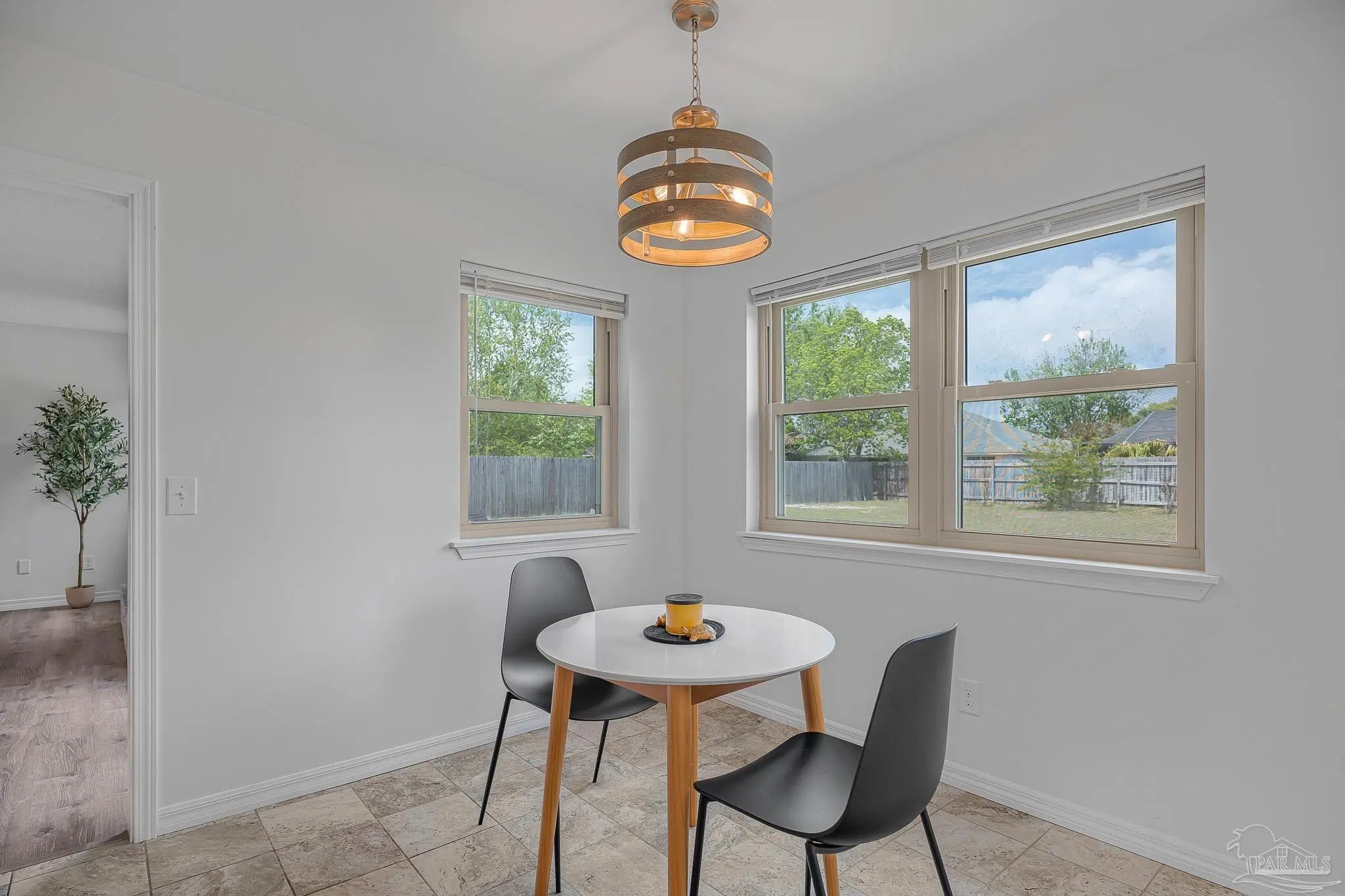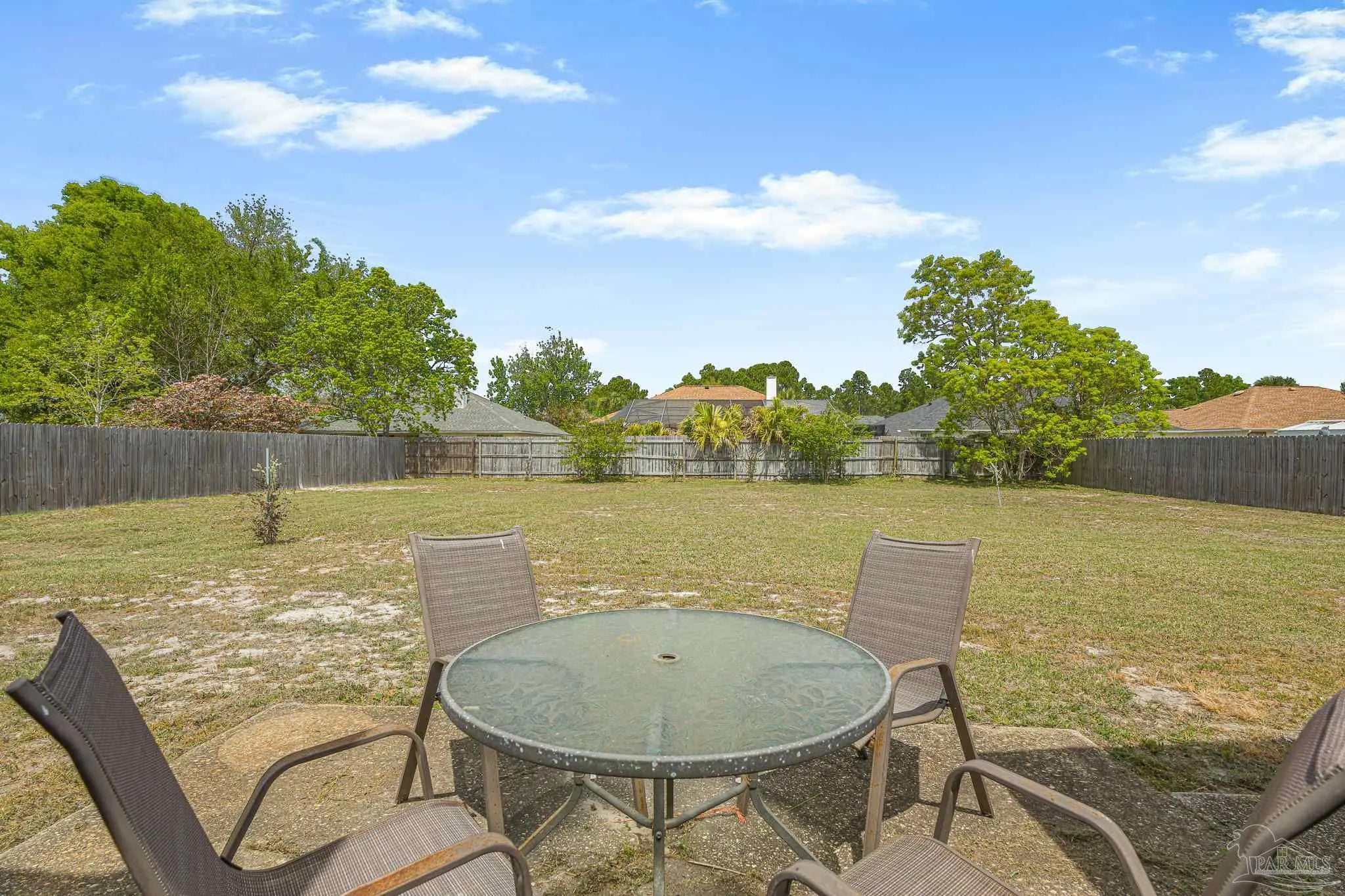 Step into a home that effortlessly blends everyday comfort with flexible living spaces designed to fit your lifestyle. This 3 bedroom, 2 bathroom residence offers a functional layout and comfortable living spaces throughout. An entryway with extended flex space and a formal dining room creates a versatile first impression, perfect for entertaining or additional living needs. Modern light fixtures add a fresh touch, while the kitchen features a breakfast nook for casual dining and flows seamlessly into a spacious living room anchored by a charming white brick fireplace. The primary suite includes a private en-suite bath, and a dedicated laundry room provides extra storage. Step outside to enjoy the outdoor patio overlooking a large fenced backyard—ideal for relaxing or hosting gatherings. Conveniently located in Southwest Pensacola near NAS Pensacola and just minutes from the beautiful beaches of Perdido Key, this home also offers access to nearby parks, water activities, and the amenities of the desirable Grande Lagoon area, blending everyday convenience with coastal living.