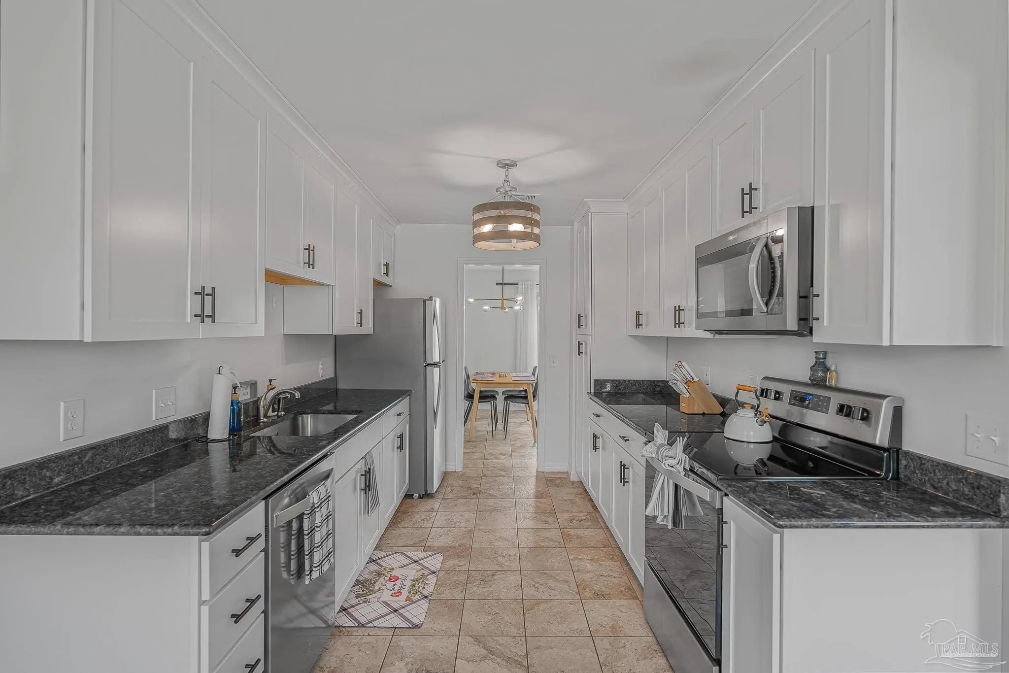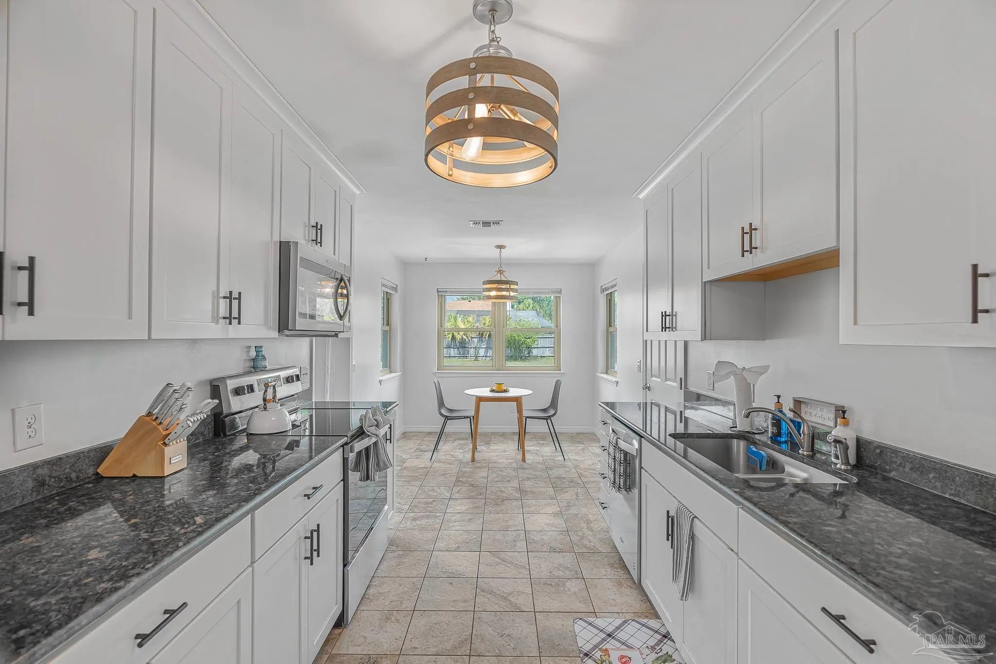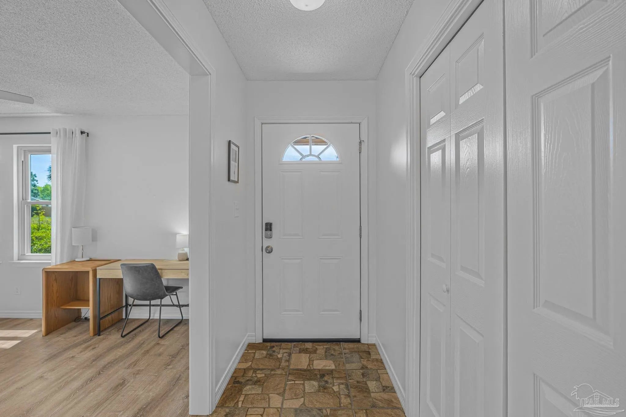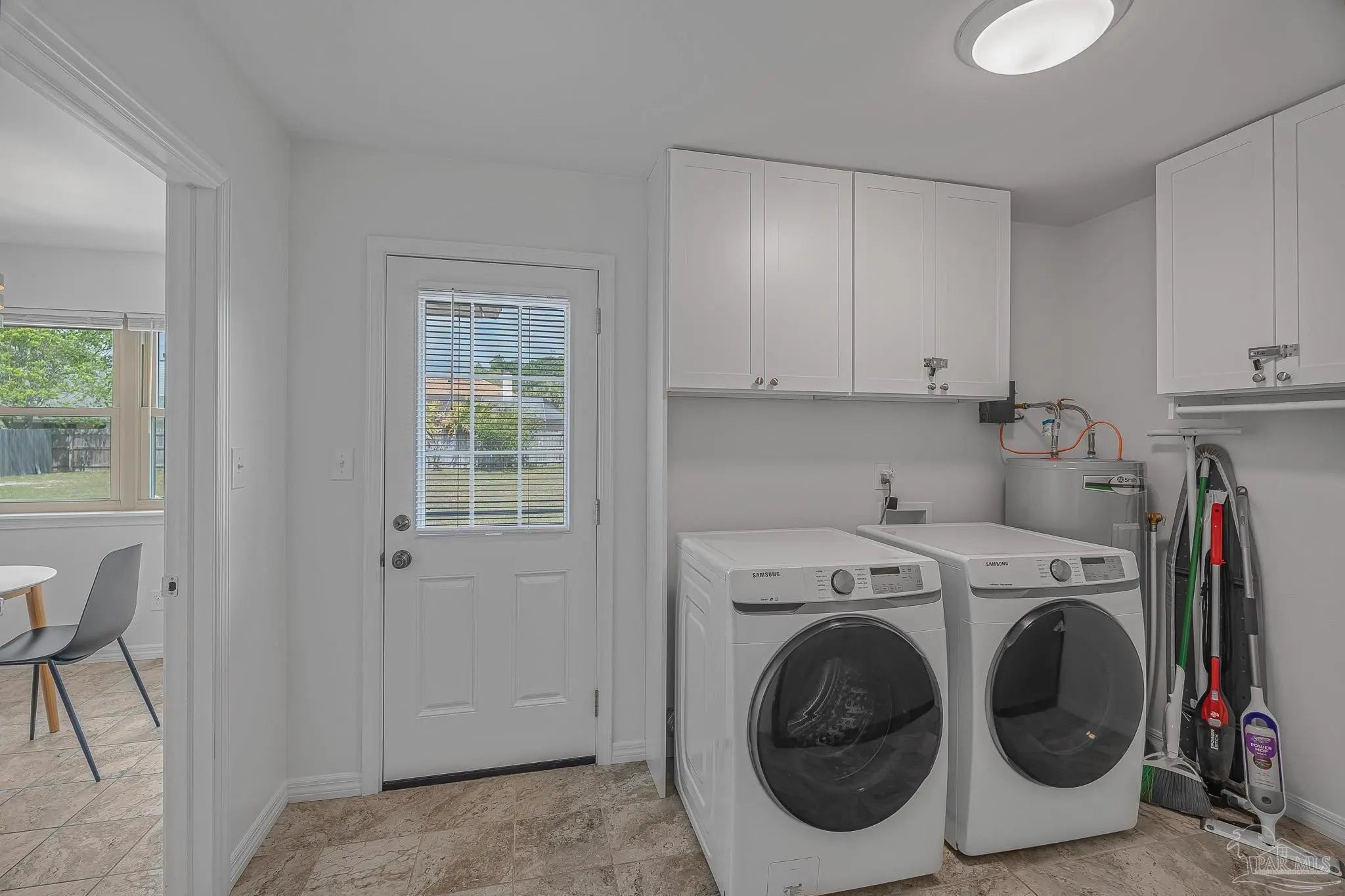 Step into a home that effortlessly blends everyday comfort with flexible living spaces designed to fit your lifestyle. This 3 bedroom, 2 bathroom residence offers a functional layout and comfortable living spaces throughout. An entryway with extended flex space and a formal dining room creates a versatile first impression, perfect for entertaining or additional living needs. Modern light fixtures add a fresh touch, while the kitchen features a breakfast nook for casual dining and flows seamlessly into a spacious living room anchored by a charming white brick fireplace. The primary suite includes a private en-suite bath, and a dedicated laundry room provides extra storage. Step outside to enjoy the outdoor patio overlooking a large fenced backyard—ideal for relaxing or hosting gatherings. Conveniently located in Southwest Pensacola near NAS Pensacola and just minutes from the beautiful beaches of Perdido Key, this home also offers access to nearby parks, water activities, and the amenities of the desirable Grande Lagoon area, blending everyday convenience with coastal living.
