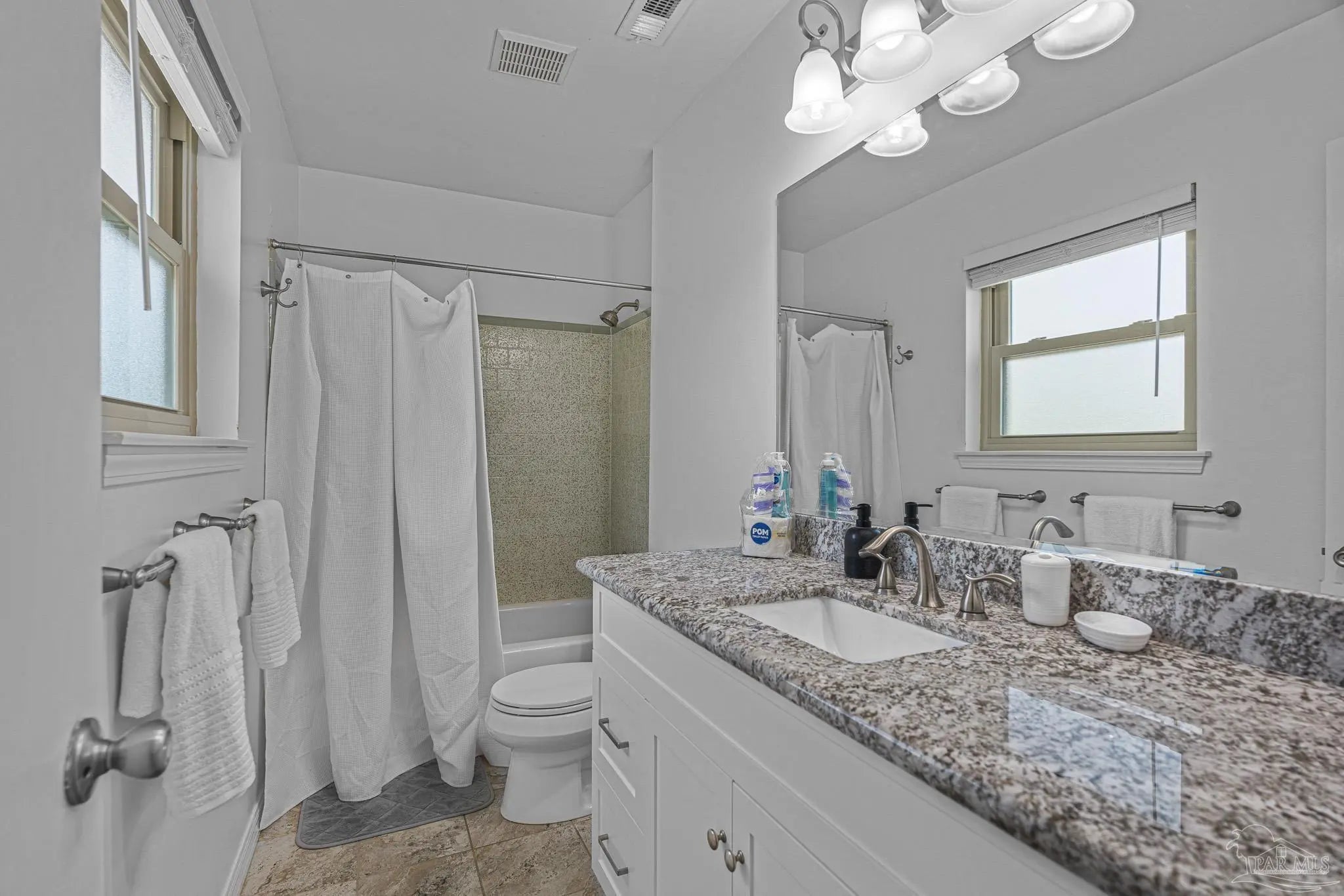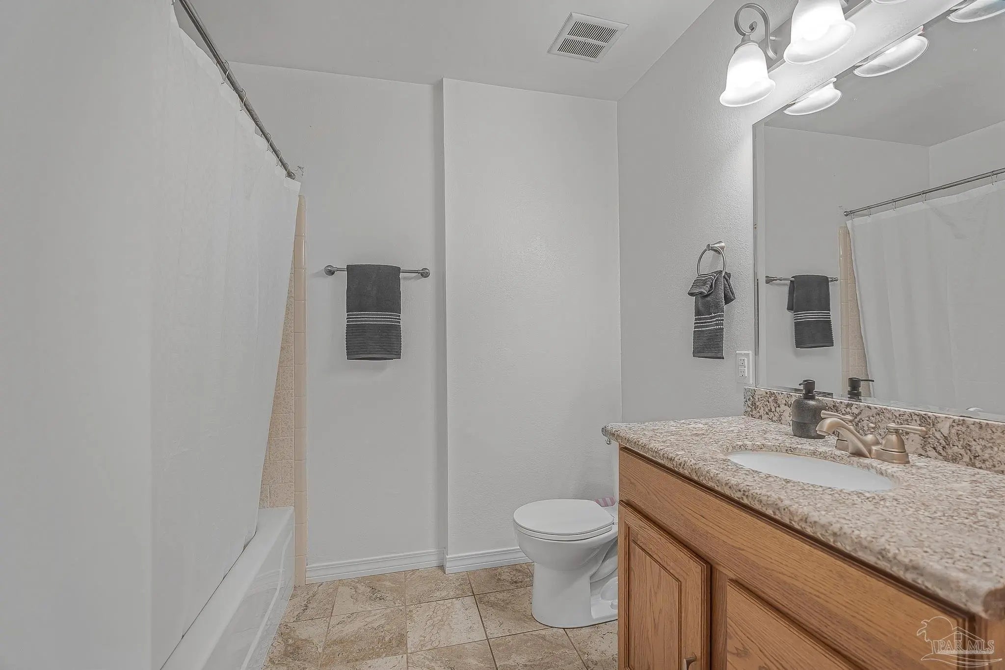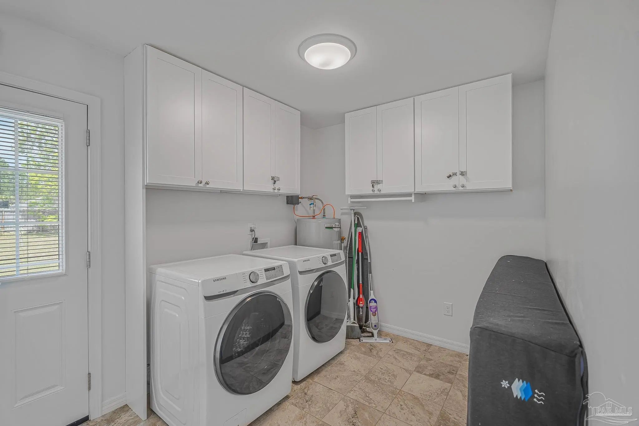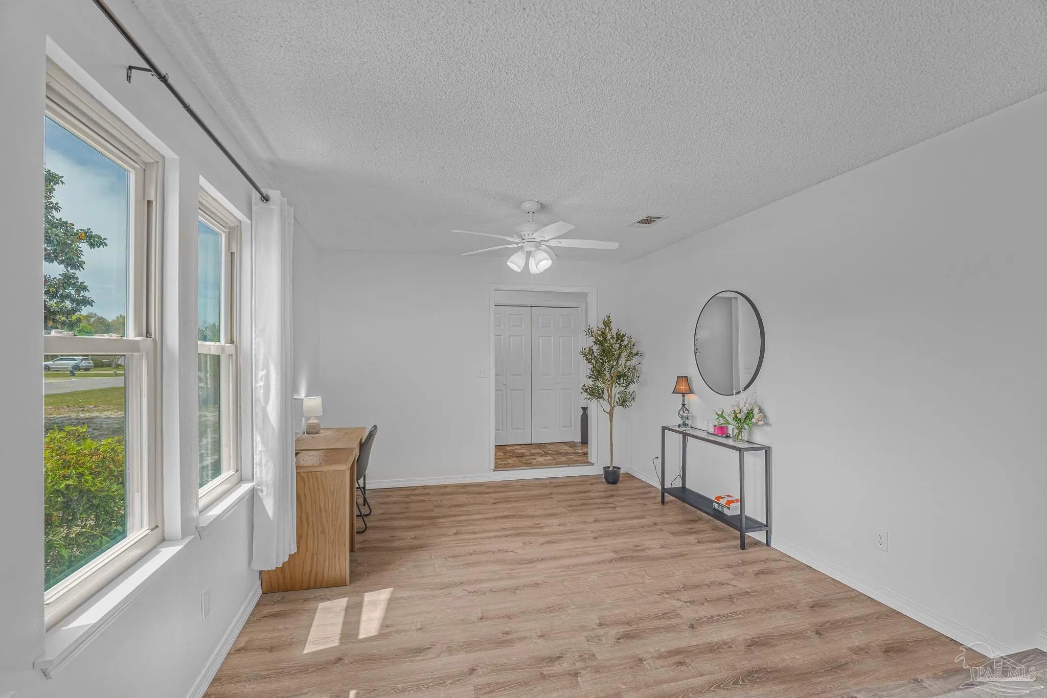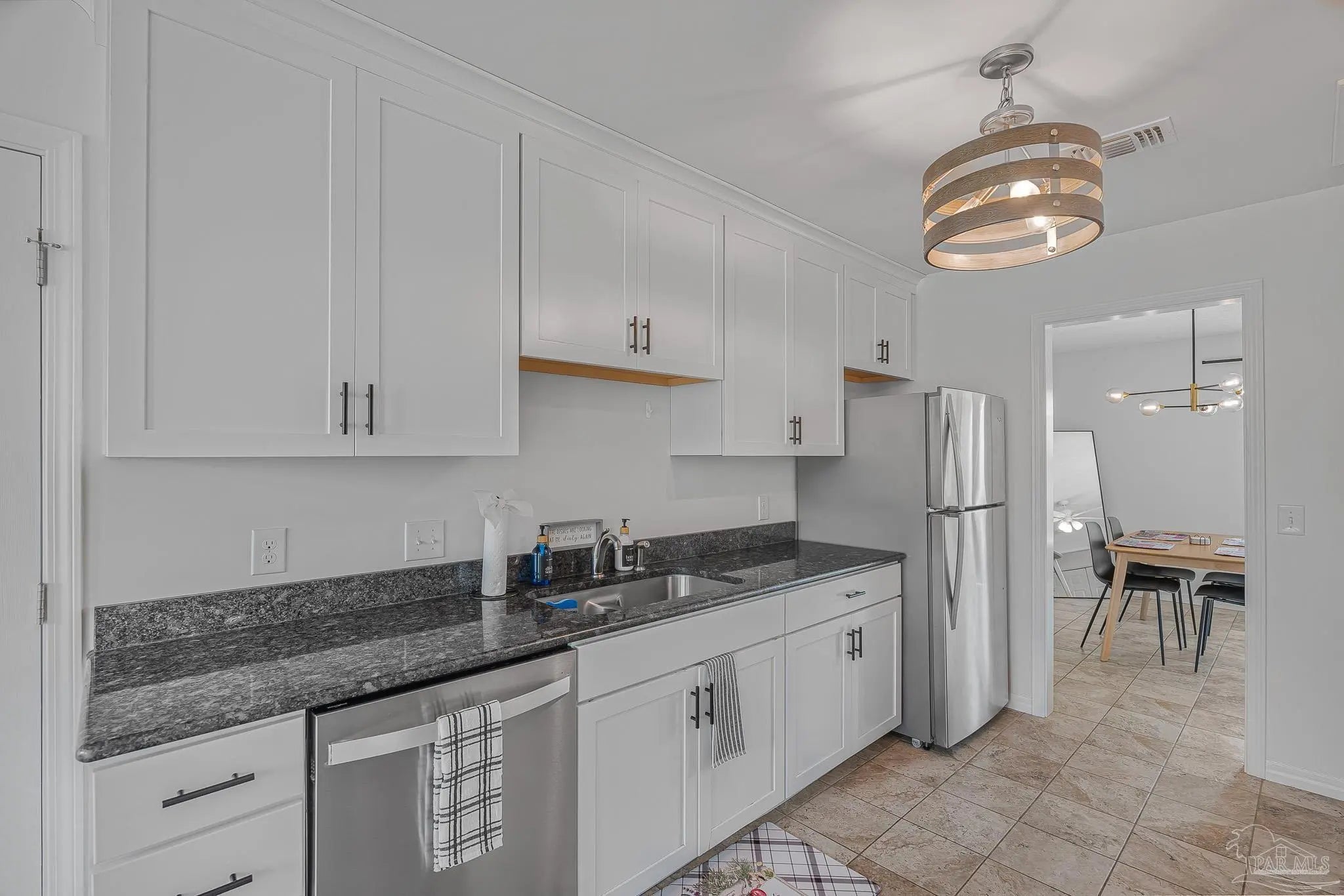 Step into a home that effortlessly blends everyday comfort with flexible living spaces designed to fit your lifestyle. This 3 bedroom, 2 bathroom residence offers a functional layout and comfortable living spaces throughout. An entryway with extended flex space and a formal dining room creates a versatile first impression, perfect for entertaining or additional living needs. Modern light fixtures add a fresh touch, while the kitchen features a breakfast nook for casual dining and flows seamlessly into a spacious living room anchored by a charming white brick fireplace. The primary suite includes a private en-suite bath, and a dedicated laundry room provides extra storage. Step outside to enjoy the outdoor patio overlooking a large fenced backyard—ideal for relaxing or hosting gatherings. Conveniently located in Southwest Pensacola near NAS Pensacola and just minutes from the beautiful beaches of Perdido Key, this home also offers access to nearby parks, water activities, and the amenities of the desirable Grande Lagoon area, blending everyday convenience with coastal living.