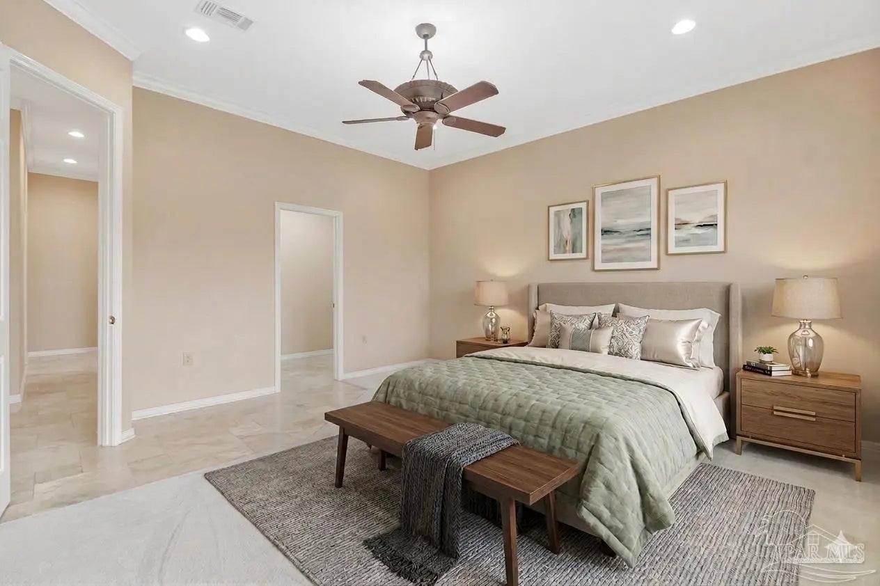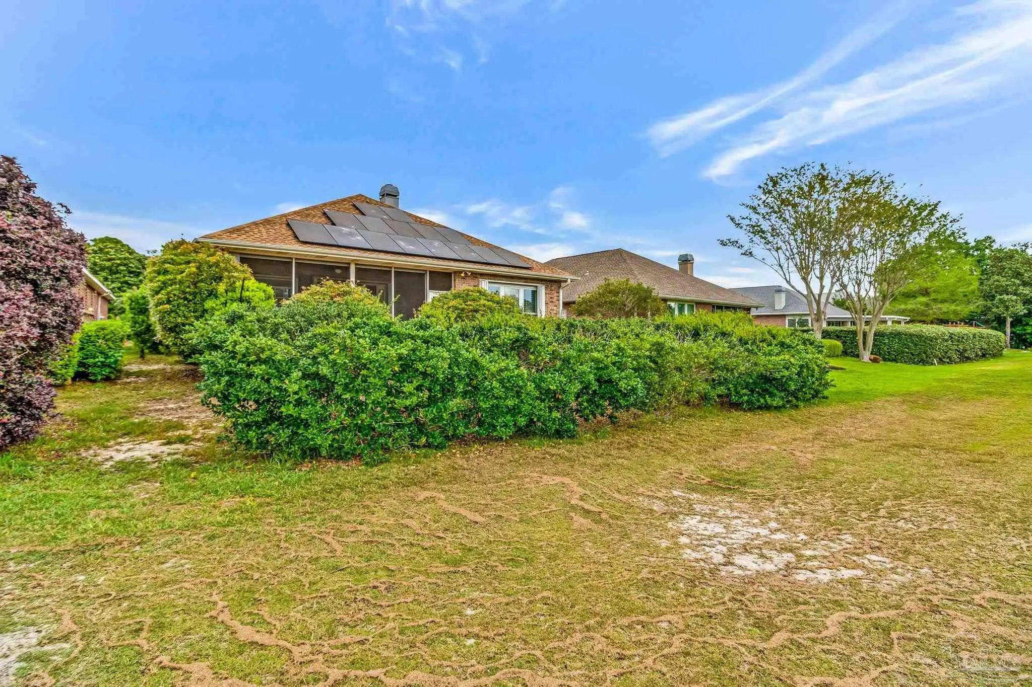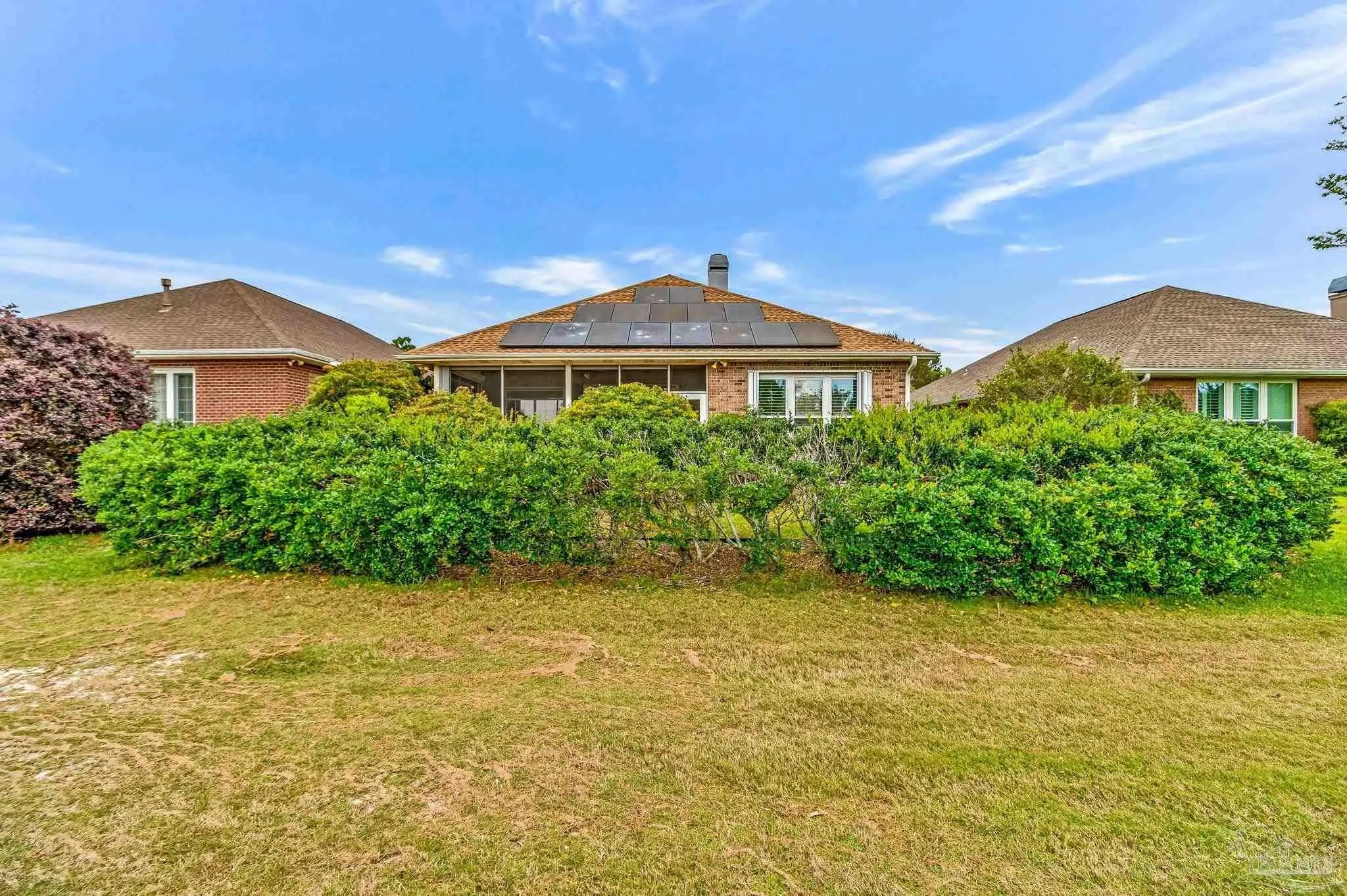 The search for the perfect patio home with a COURTYARD IN-GROUND POOL is officially OVER! Located on the 11th fairway in the highly desirable Oak Pointe in Gulf Breeze, this home is ready to impress from the moment you walk in. And trust me… this floorplan does not disappoint. You’re immediately welcomed by your private courtyard pool, basically your own little resort right at home (no travel required). This space is perfect for entertaining, relaxing, or just pretending you’re on vacation every day. One of the coolest features? The separate guest house has its own full bath and high ceilings. Whether it’s for guests, an in-law suite, a home gym, office, or your next hobby you swear you’ll stick to… the options are endless. Step inside the main home where the kitchen sits at the heart of it all, featuring two breakfast bars, stainless steel appliances, white cabinetry, tile backsplash, and a functional layout perfect for entertaining. The living room offers a fireplace, making those rare Florida “cold” days feel extra special. The screened-in porch and open deck give you even more space to grill, hang out, and enjoy the outdoors. The primary suite is a split floor plan, two closets, a soaking tub, a walk-in shower, double vanities, and even direct access to the pool, because why not step straight into vacation mode? On the opposite side, another bedroom also has its own access to the courtyard pool and a private bath, making this home feel connected and functional throughout. Additional upgrades include plantation shutters, a newer water heater, a 2020 roof, a front-entry garage, and a spacious laundry room. This home is unique, fun, and full of possibilities, and it’s ready for its next owner to make it their own. Take one look… and you’ll get it!