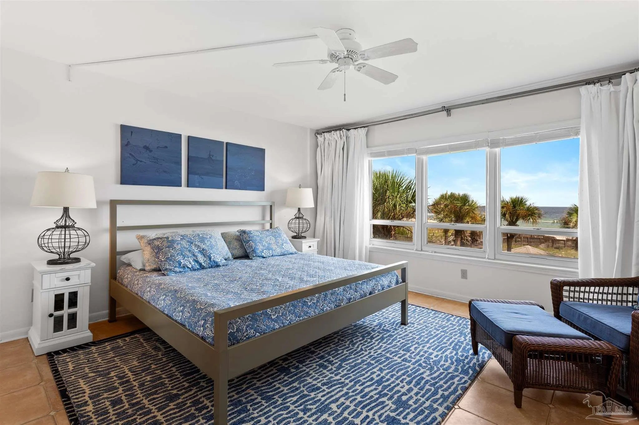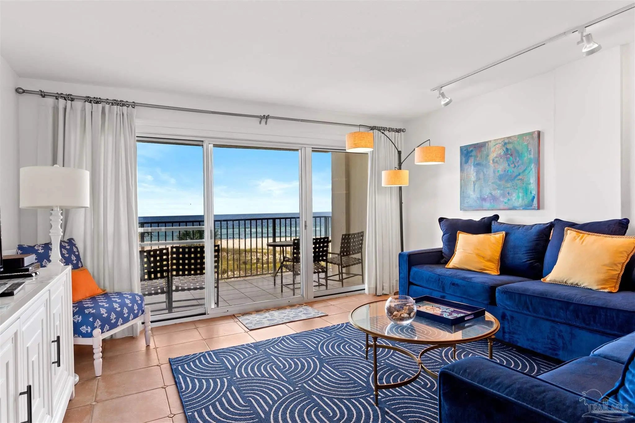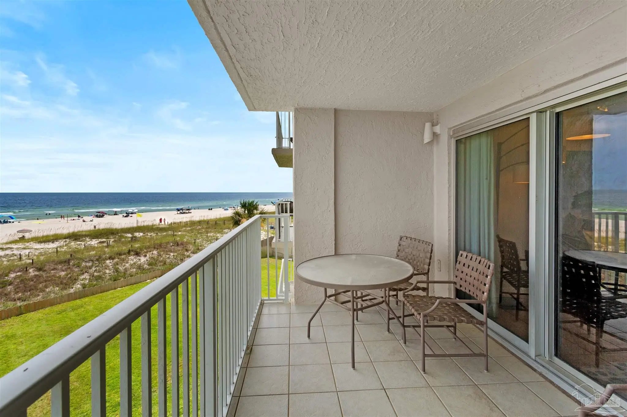 Rare opportunity at Seafarer! This low-density, rent-restricted 2-bedroom, 2-bath condo offers 400 feet of pristine beachfront and stunning, unobstructed Gulf views. Being sold unfurnished, this residence is ready for your personal touch and design vision. Enjoy breathtaking views from the balcony, living room, and master bedroom—perfect for taking in sunrises and sunsets over the water. The spacious layout accommodates family and guests with ease, featuring an expansive primary suite and a generously sized guest bedroom. The primary suite includes large windows for natural light, private balcony access, and an ensuite bathroom with a beautifully tiled walk-in shower. The kitchen provides ample counter space and functionality for everyday living or entertaining. Seafarer offers a charming Old Florida feel with only 47 units. Amenities span both the Gulf and Old River sides, including a Gulf-front pool, community room, and beach access, along with boat slips, a boat launch, boat/RV parking, fishing pier, and tennis courts on the river side. The building is well-maintained with on-site management. This unit is non-rental, and the complex is gradually eliminating rentals—enhancing long-term exclusivity and ownership value.