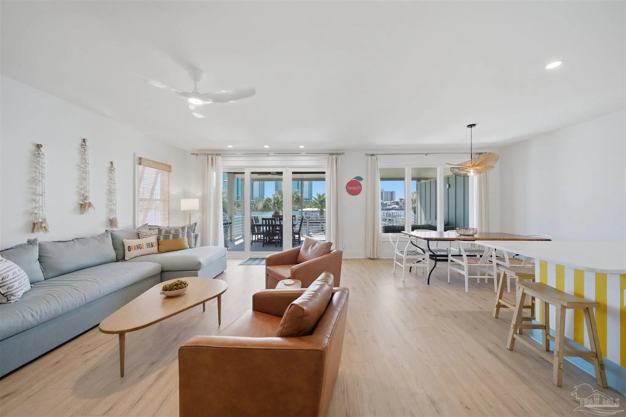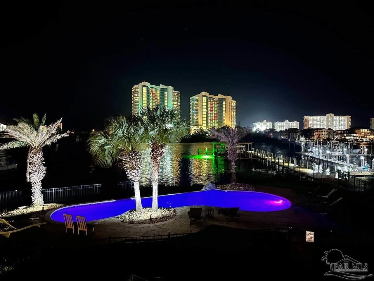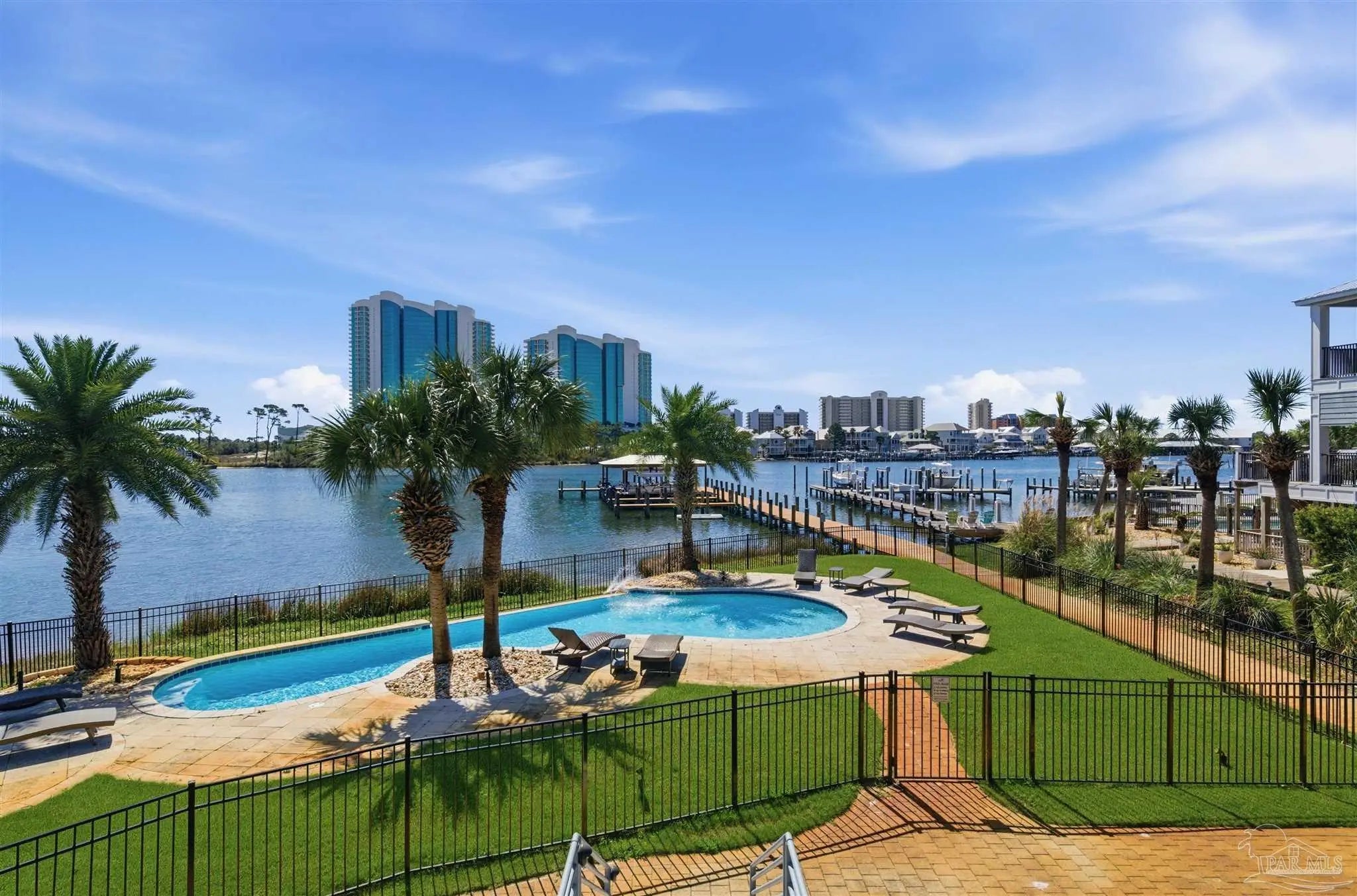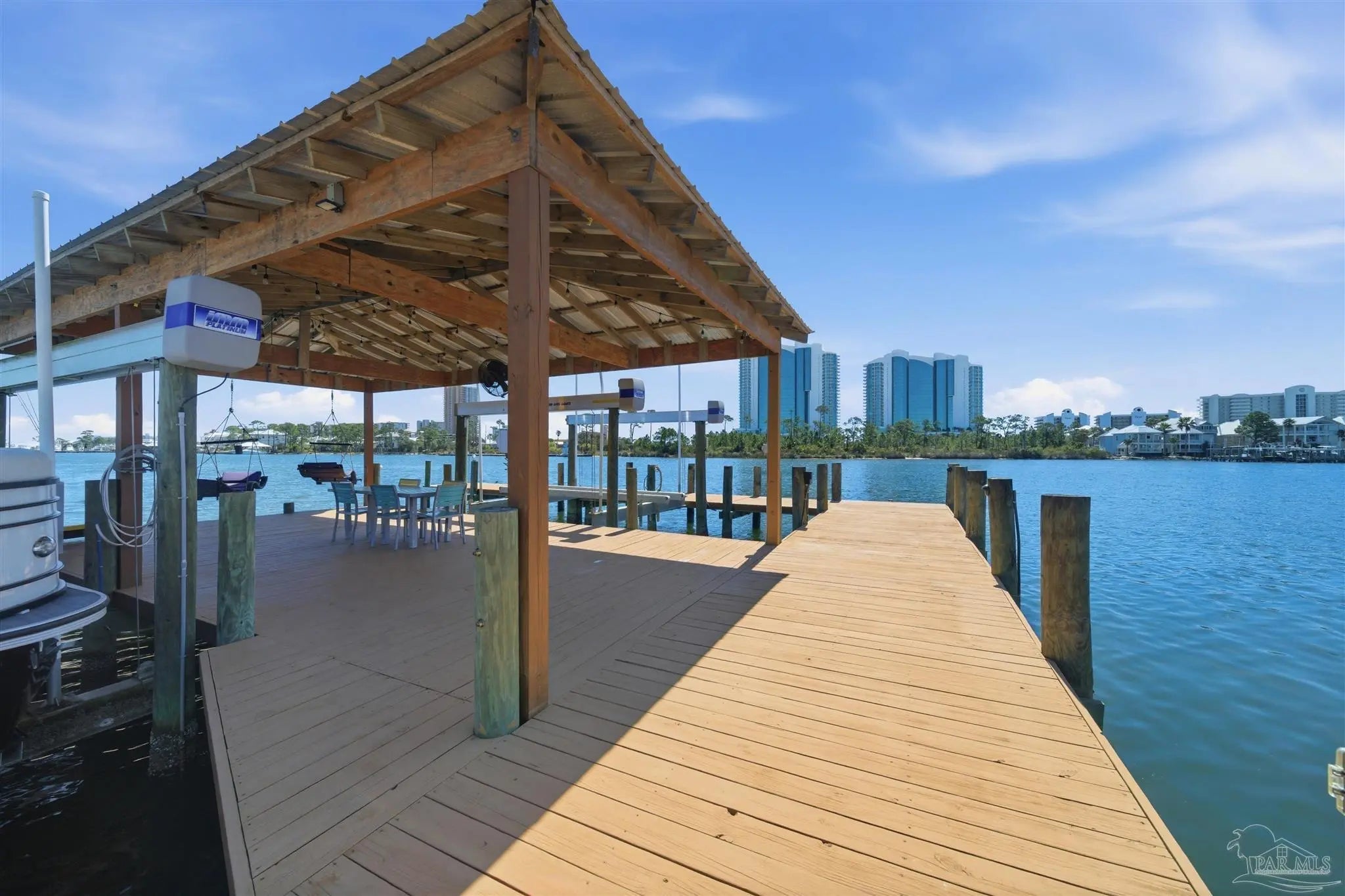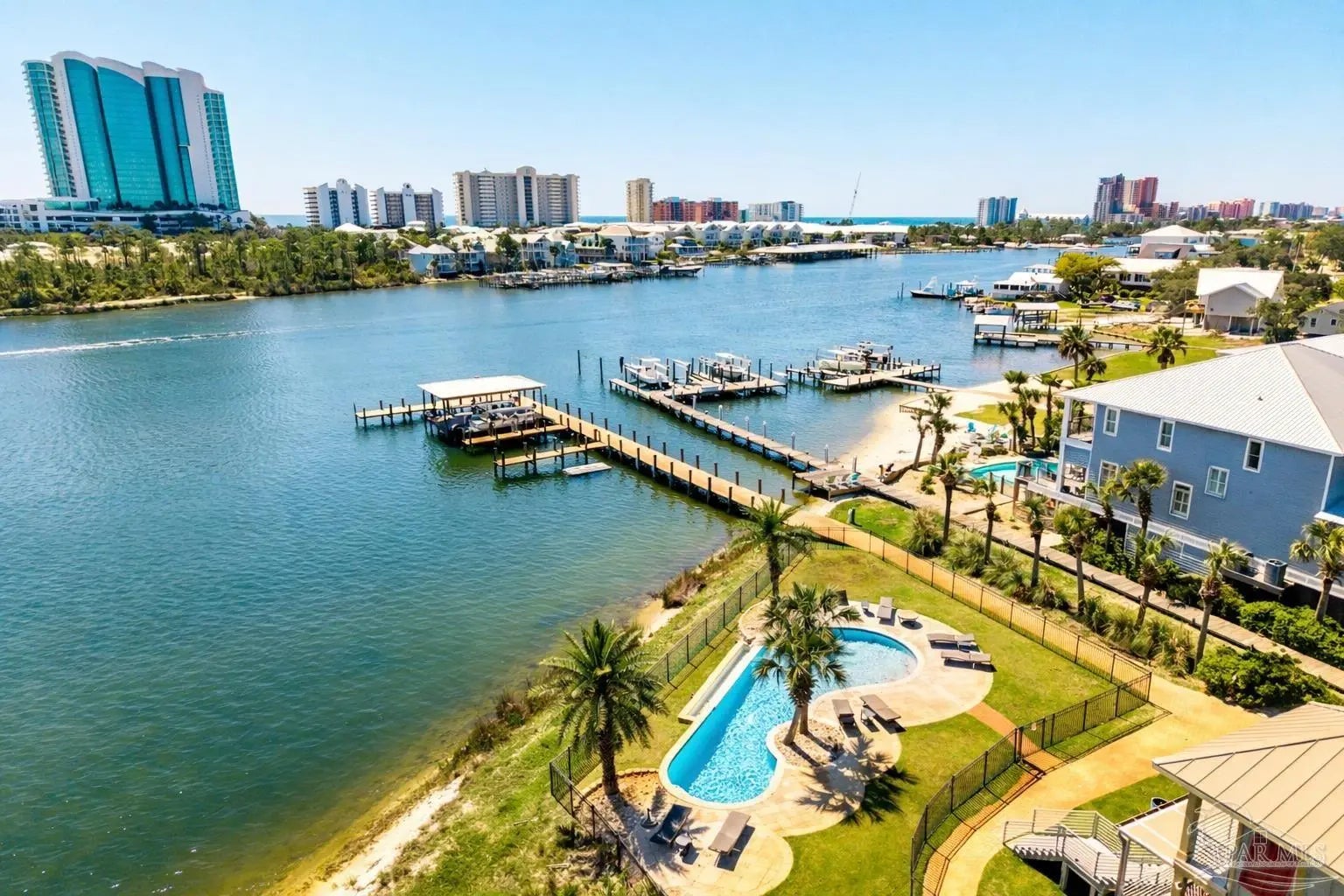 PRIVATE BOAT SLIP WITH 16,000 LB LIFT – House included! Welcome to Bayou Breeze, a stunning direct waterfront home on scenic Cotton Bayou in the heart of Orange Beach. With breathtaking views, a private boat slip, and seamless indoor-outdoor living, this home delivers the ultimate coastal lifestyle along with exceptional investment potential. Thoughtfully renovated and professionally designed, the home blends elevated style with everyday comfort. Natural light fills the open-concept living, dining, and kitchen areas, creating an inviting space ideal for gathering and entertaining. The kitchen features quartz countertops, a spacious breakfast bar, and a striking hand-laid tile backsplash. New high-impact rated glass doors and windows open to an expansive covered deck overlooking the water—perfect for entertaining, grilling, dining, or simply relaxing and taking in the view. The home offers multiple spacious bedrooms across two levels (2 on the main level, 2 on the top floor), each with its own ensuite bath for privacy and comfort. The primary suite is a true retreat, featuring vaulted ceilings, beautiful water views, and a private balcony. The ground level includes a separate-entry (1 bed, 1 bath) apartment, offering excellent flexibility for guests, extended family, or rental income. Outdoor amenities include a waterfront pool, private dock, and a deeded boat slip with lift. Spend your days boating, fishing, or watching dolphins pass by right from your backyard, or hop on your boat and explore the local waters or venture into the Gulf. Located just minutes from Gulf State Park, public beach access, shopping, dining, and entertainment—accessible by foot, bike, or golf cart—this home offers unmatched convenience paired with the best of coastal living. Whether you're seeking a primary residence, second home, or income-producing investment, this fully furnished, turnkey waterfront property is a rare opportunity! Buyer to verify all information during due diligence.