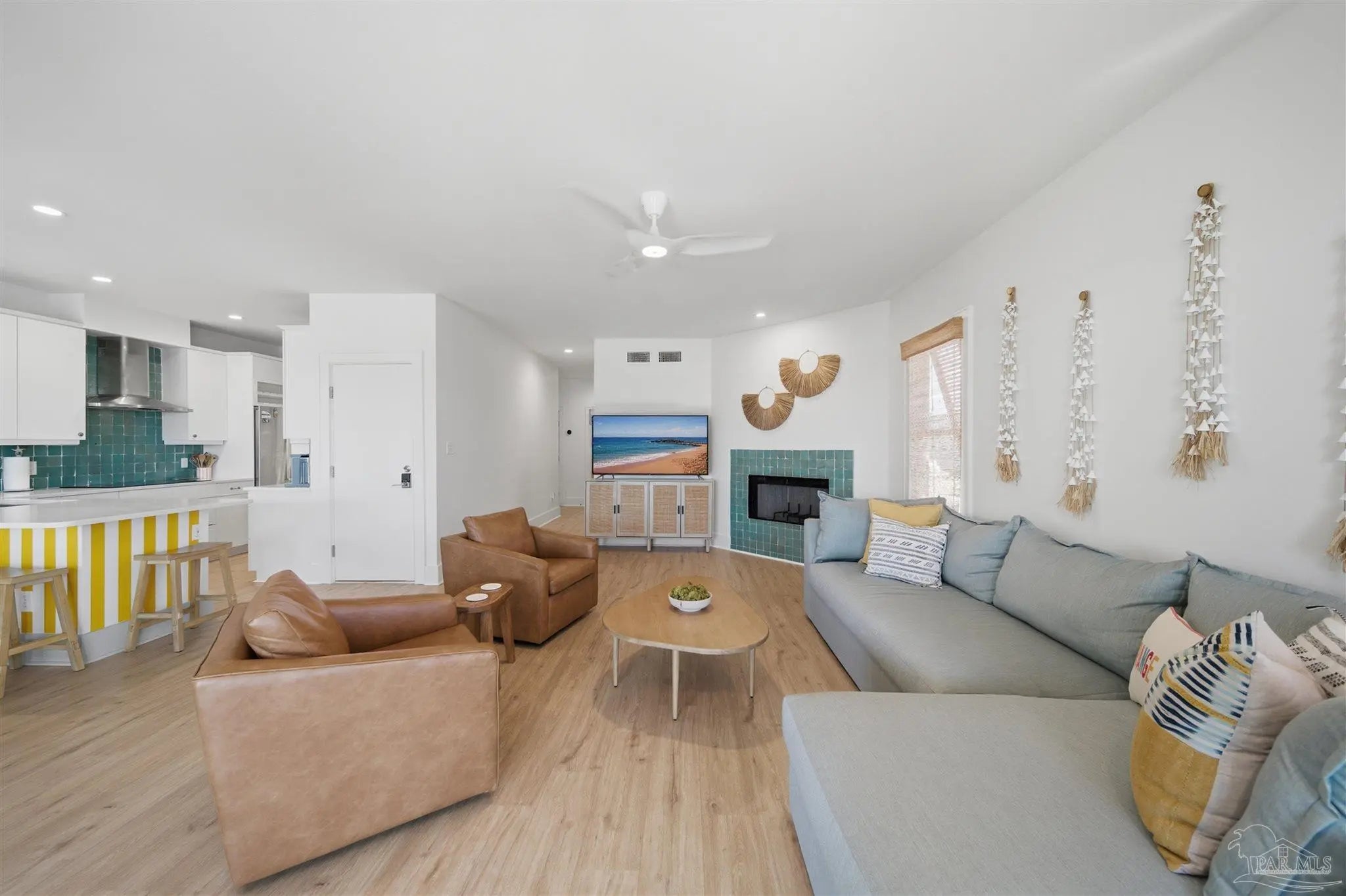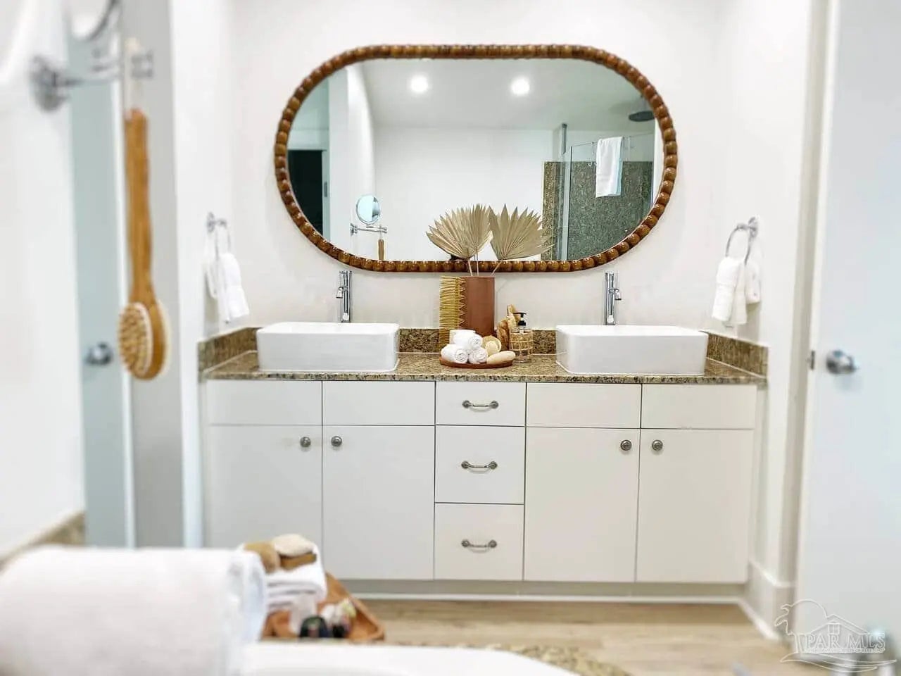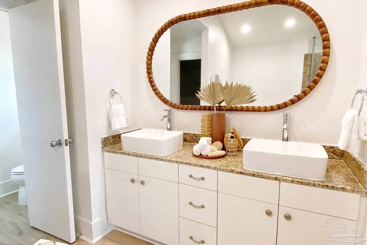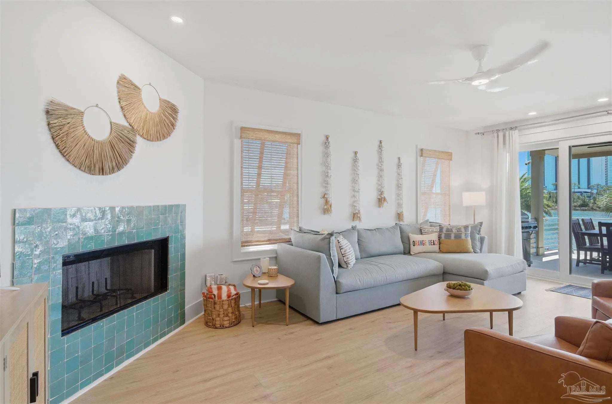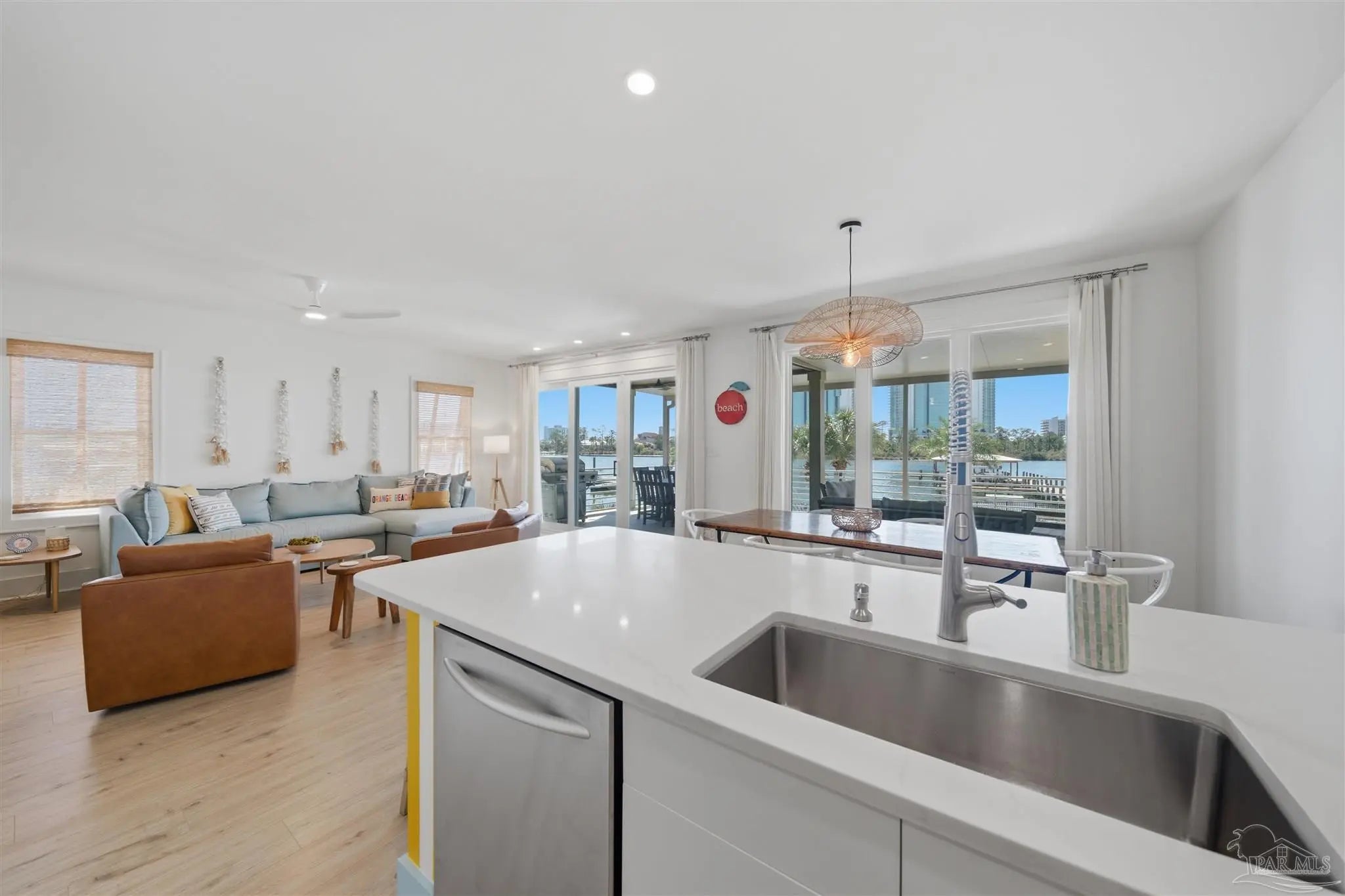 PRIVATE BOAT SLIP WITH 16,000 LB LIFT – House included! Welcome to Bayou Breeze, a stunning direct waterfront home on scenic Cotton Bayou in the heart of Orange Beach. With breathtaking views, a private boat slip, and seamless indoor-outdoor living, this home delivers the ultimate coastal lifestyle along with exceptional investment potential. Thoughtfully renovated and professionally designed, the home blends elevated style with everyday comfort. Natural light fills the open-concept living, dining, and kitchen areas, creating an inviting space ideal for gathering and entertaining. The kitchen features quartz countertops, a spacious breakfast bar, and a striking hand-laid tile backsplash. New high-impact rated glass doors and windows open to an expansive covered deck overlooking the water—perfect for entertaining, grilling, dining, or simply relaxing and taking in the view. The home offers multiple spacious bedrooms across two levels (2 on the main level, 2 on the top floor), each with its own ensuite bath for privacy and comfort. The primary suite is a true retreat, featuring vaulted ceilings, beautiful water views, and a private balcony. The ground level includes a separate-entry (1 bed, 1 bath) apartment, offering excellent flexibility for guests, extended family, or rental income. Outdoor amenities include a waterfront pool, private dock, and a deeded boat slip with lift. Spend your days boating, fishing, or watching dolphins pass by right from your backyard, or hop on your boat and explore the local waters or venture into the Gulf. Located just minutes from Gulf State Park, public beach access, shopping, dining, and entertainment—accessible by foot, bike, or golf cart—this home offers unmatched convenience paired with the best of coastal living. Whether you're seeking a primary residence, second home, or income-producing investment, this fully furnished, turnkey waterfront property is a rare opportunity! Buyer to verify all information during due diligence.