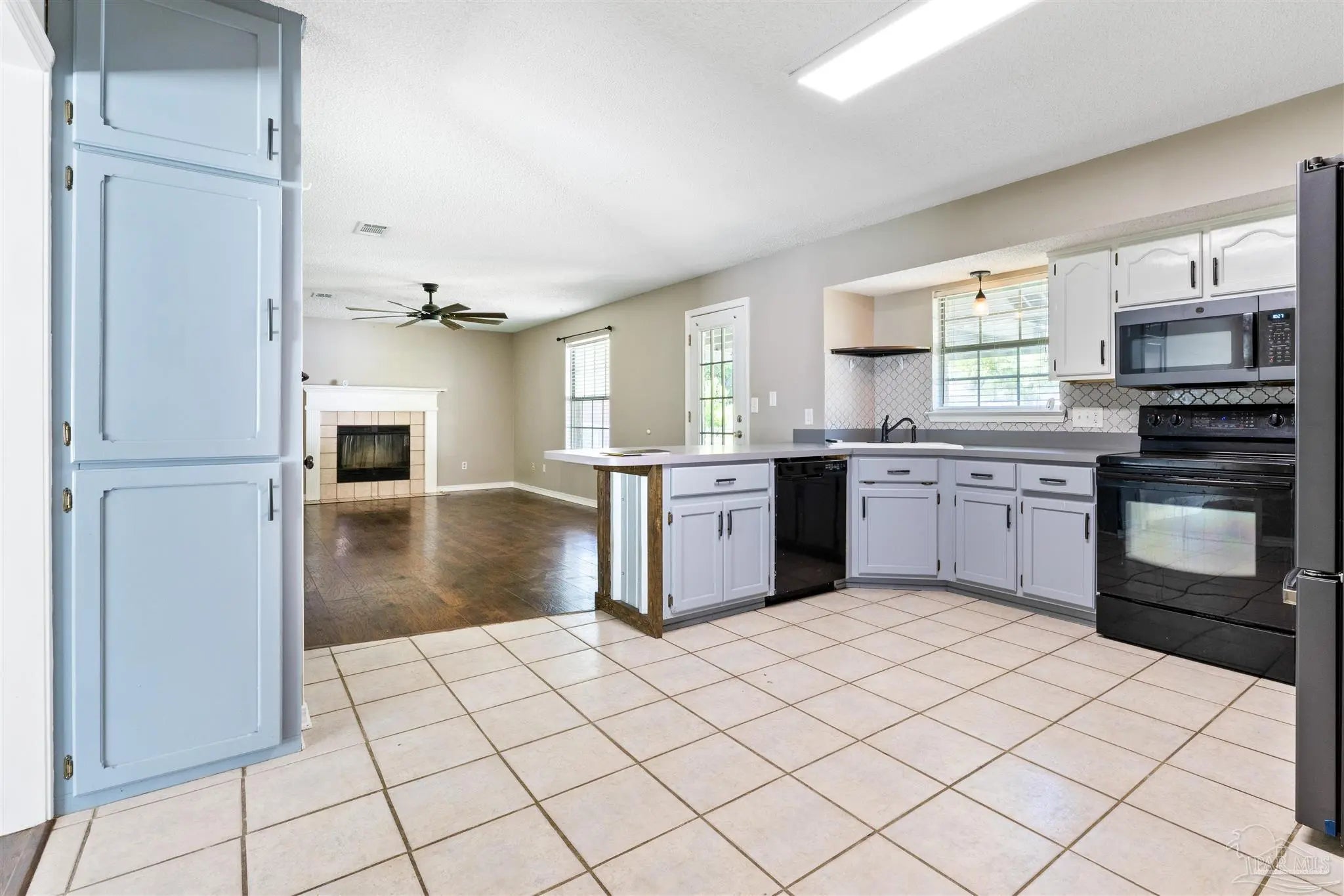 Charming 3-Bedroom Brick Home on a Quiet Cul-de-Sac with Recent Upgrades This lovely 1,800 sq ft brick home offers 3 bedrooms and 2 full bathrooms and is ideally located at the entrance of a quiet cul-de-sac with minimal traffic. The backyard backs up to wooded surroundings, providing added privacy and a peaceful setting. Upon entering the home, you are welcomed by a versatile front room that is perfect for a home office, homeschooling space, or formal dining area. The family room and kitchen truly serve as the heart of the home, featuring an open layout that allows for easy flow and comfortable everyday living. The family room includes a beautiful wood-burning fireplace (currently not in working condition), while the kitchen offers a wide breakfast bar, ideal for casual dining or entertaining. A smart kitchen light fixture allows you to change colors and control lighting directly from an app. All three bedrooms are well sized. The primary suite features his-and-hers walk-in closets and a spacious bathroom complete with a garden tub, separate shower, elegant glass block window, new cabinetry, granite countertops, and a large linen cabinet. The home has seen numerous recent updates, including a brand-new HVAC system (inside and out), new roof installed in 2021, all new light fixtures throughout the home, and sliding barn-style doors for added charm and character. The entire interior has been freshly repainted, and the front gables have been repainted to enhance curb appeal. Outdoor improvements include new exterior light fixtures, decorative street number accents, and a new roof on the storage shed with an added metal lean-to. Step outside to enjoy the large covered patio with ceiling fan, perfect for relaxing or entertaining guests. The fenced backyard with chain-link fencing provides space for pets, gardening, or outdoor activities. An outbuilding for workshop or storage is included and conveys AS IS with no assigned value. Additional features include an ove