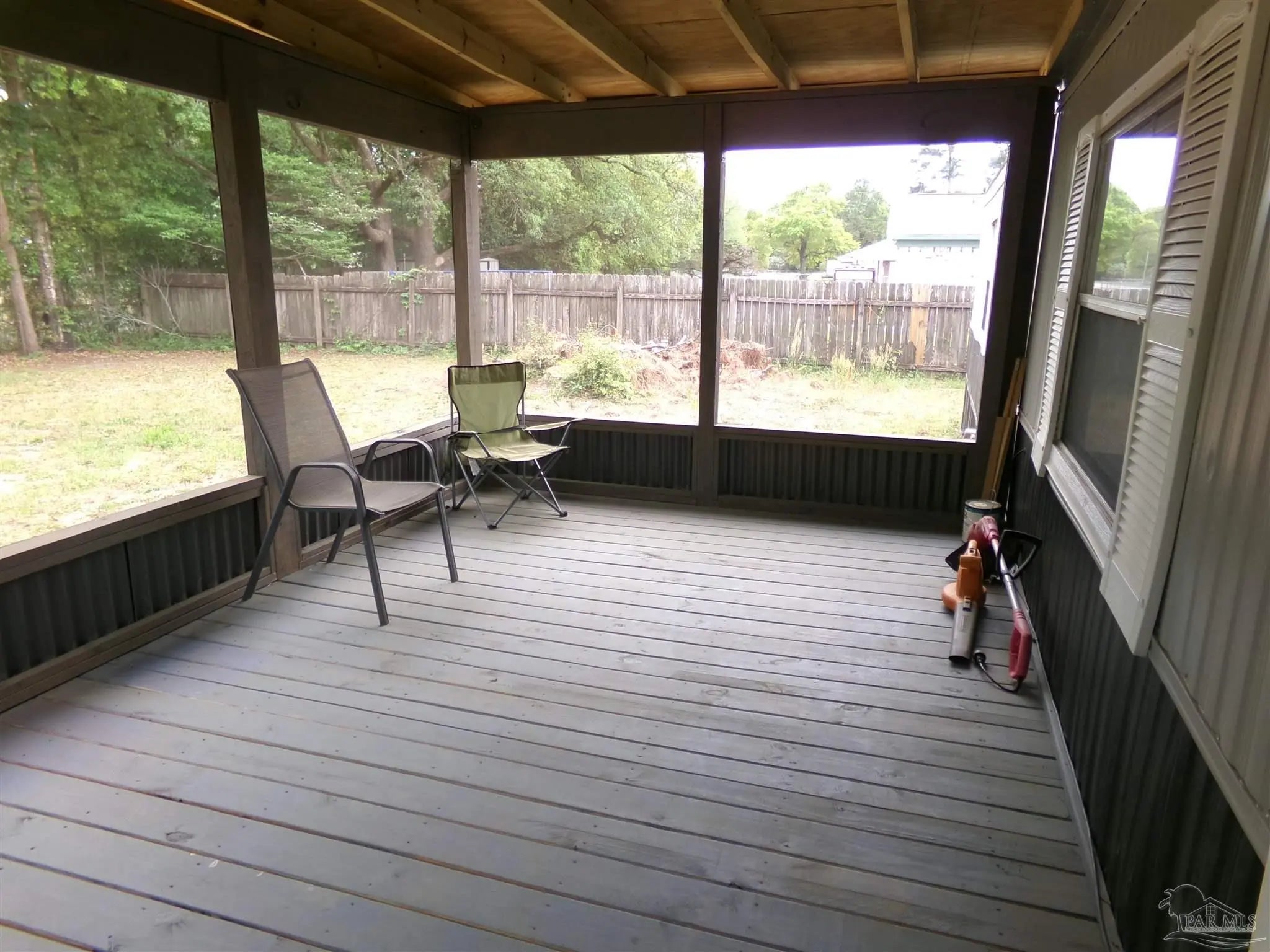 Totally updated home to include metal roof, Central heat and air. all new wiring, replumbed. fully painted. fireplace is free standing. front porch 10x20 screened and back porch is covered and ceiling fan open 8x12 with cute rails. Privacy all around the home. .53 acre. chain link fence in front, sides privacy fence and some forest to separate lots. 1 Bedroom with 1.5 baths. laundry room is in half bath and has a large utility sink. The outside pictures will be retaken soon. It was evidently too bright. Measurements are from SR C Appraisers office. Must see, drive by and call an agent. Owner has maintained this home and will not spend any more to sale.