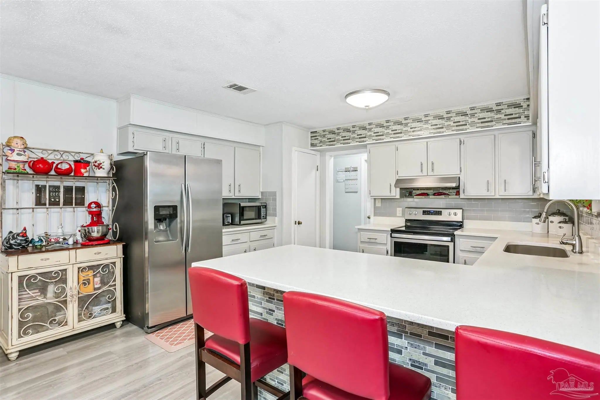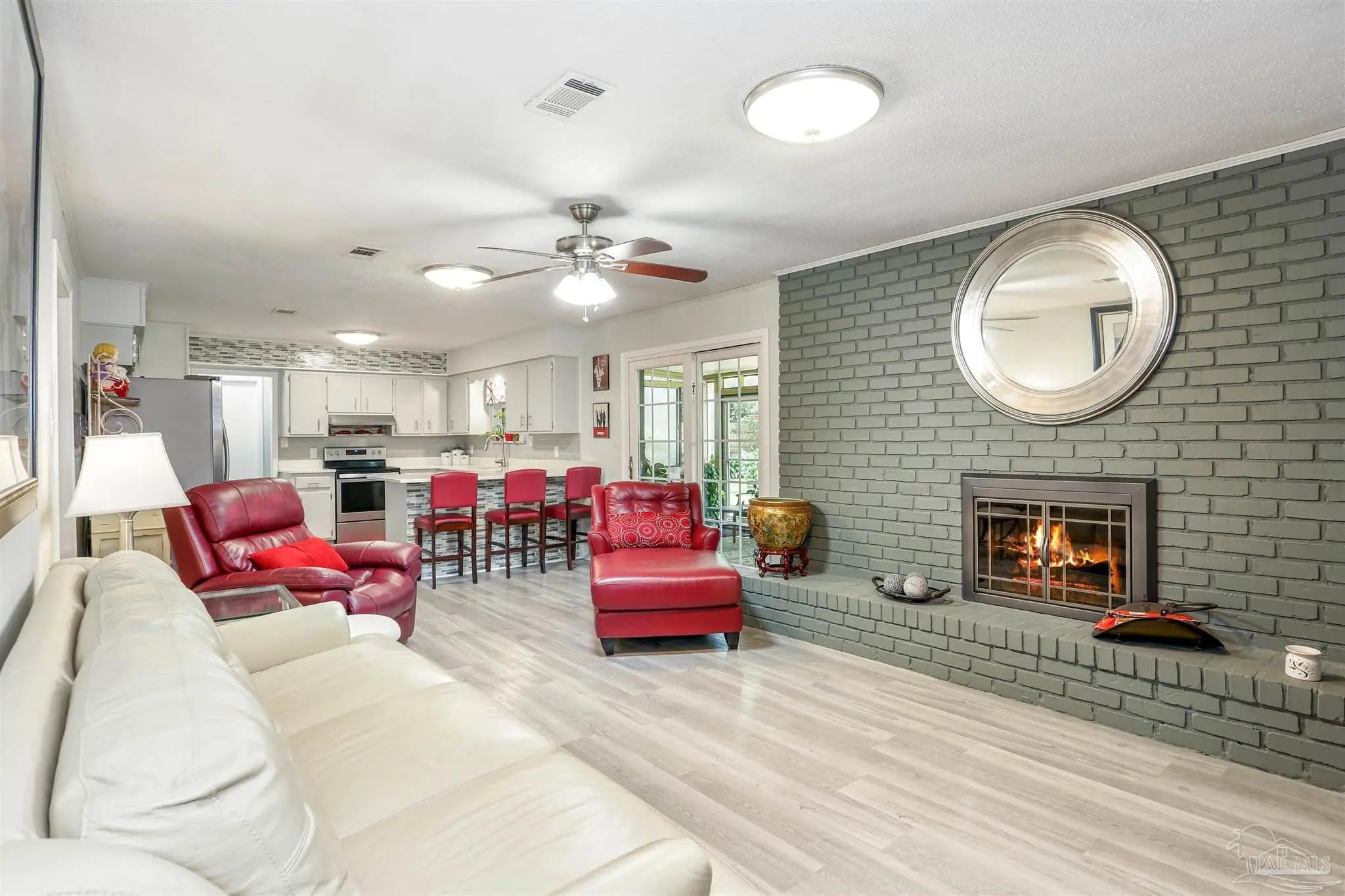 MOVE-IN READY brick home in the Canterbury Woods subdivision off of Fairfield Dr. Home has been completely updated. Kitchen has been updated with all stainless steel appliances, Quartz counter tops and tile back splash. All bathrooms have Quartz counter tops and updated fixtures. Great floor plan for entertaining with a formal living and dining room. Large family room off of the kitchen with a wood burning brick fireplace. Sliding glass door leads out to a back porch perfect for outdoor entertaining. Large fully fenced back yard. Located on a cul-de-sac in a quiet family friendly neighborhood. This home comes with a new roof at closing!!! Just minutes from shopping and dining. 15 minutes to NAS and downtown Pensacola. 30 minutes to Pensacola Beach!