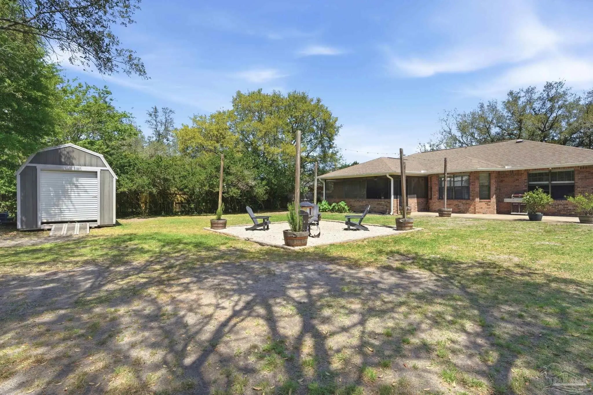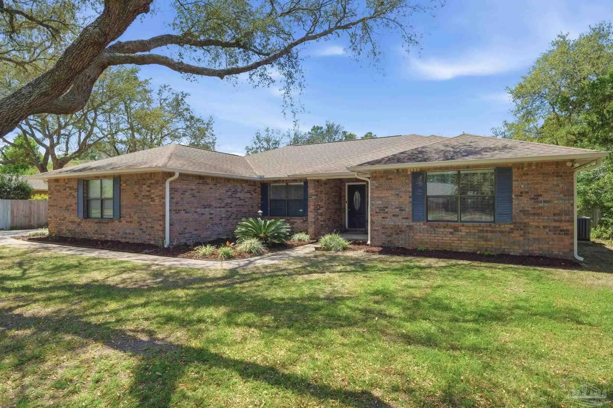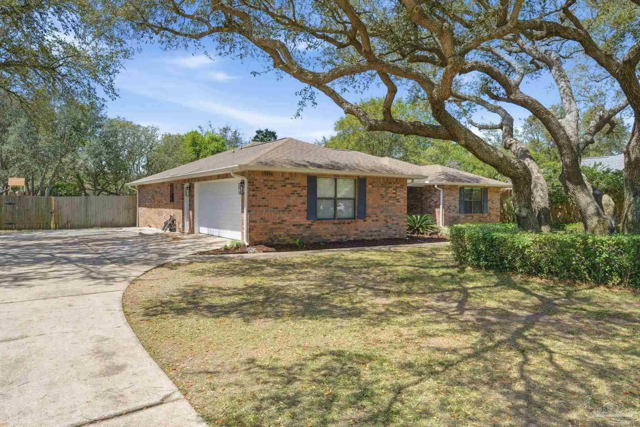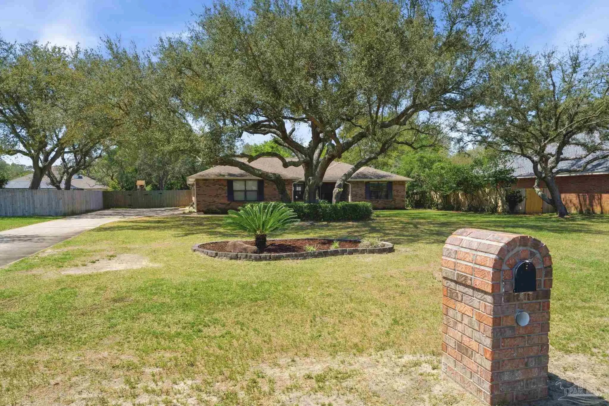 Welcome to this charming 3 bedroom, 2 bathroom brick home nestled in the heart of Navarre's most desirable neighborhoods. Tucked back just steps away from the green of the Hidden Creek Golf Course, this Holley By The Sea home offers over 2,000 SqFt of living space and is situated on an almost half acre lot with an extended driveway with side entry 2 car garage and a fully fenced in backyard with double gate entry. Inside, you'll find a split floor plan with an open concept main living space. The kitchen offers a breakfast nook with bay window overlooking the backyard, all black and stainless steel appliances, updated cabinetry, gorgeous granite countertops, tiled backsplash, and a breakfast bar. Just off the kitchen at the front of the house is a versatile space that could serve as a formal dining room or home office. For added privacy, the primary suite is tucked around the corner and features an ensuite bathroom with dual walk-in closets, double vanity, walk-in shower and jetted tub. The spacious additional bedrooms and spare bath are on the opposite side of the home. Step out onto the screened lanai in the backyard for a true extension of your living space - perfect to enjoy the outdoors for your morning cup of coffee. An extended concrete patio provides plenty of room for outdoor entertaining and BBQs, as well as the fitted out fire pit. Ownership also grants you access to all the amenities Holley By The Sea has to offer - including a boat ramp, 8 clay tennis courts, a community event hall, 3 different pools, exercise room, and more! Schedule your showing today!