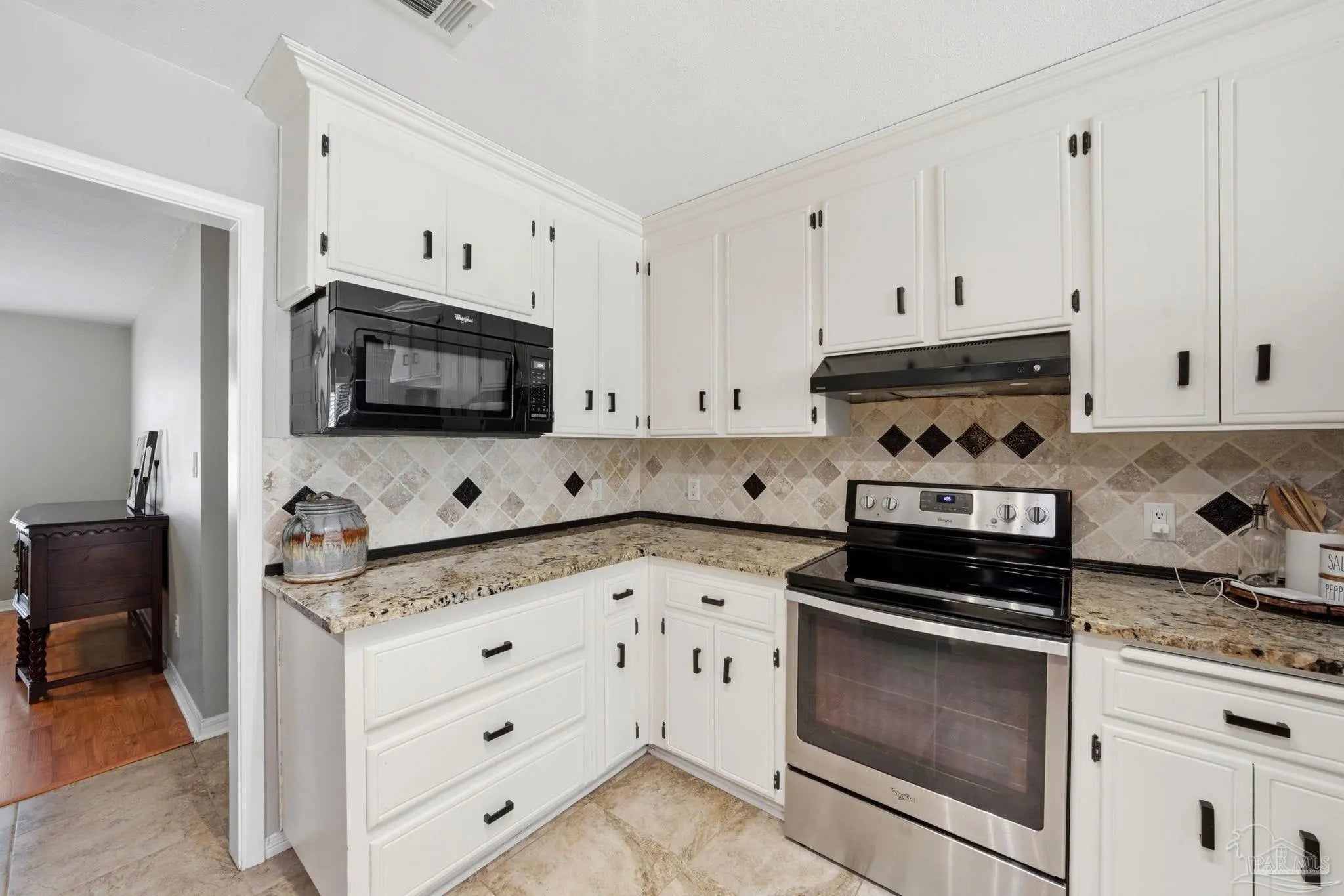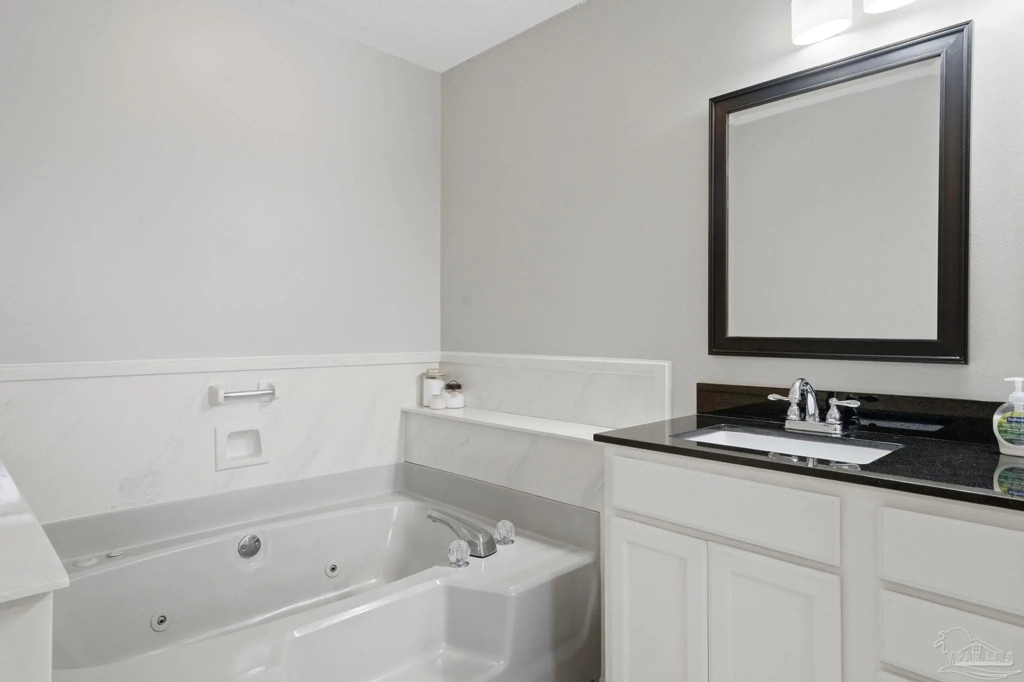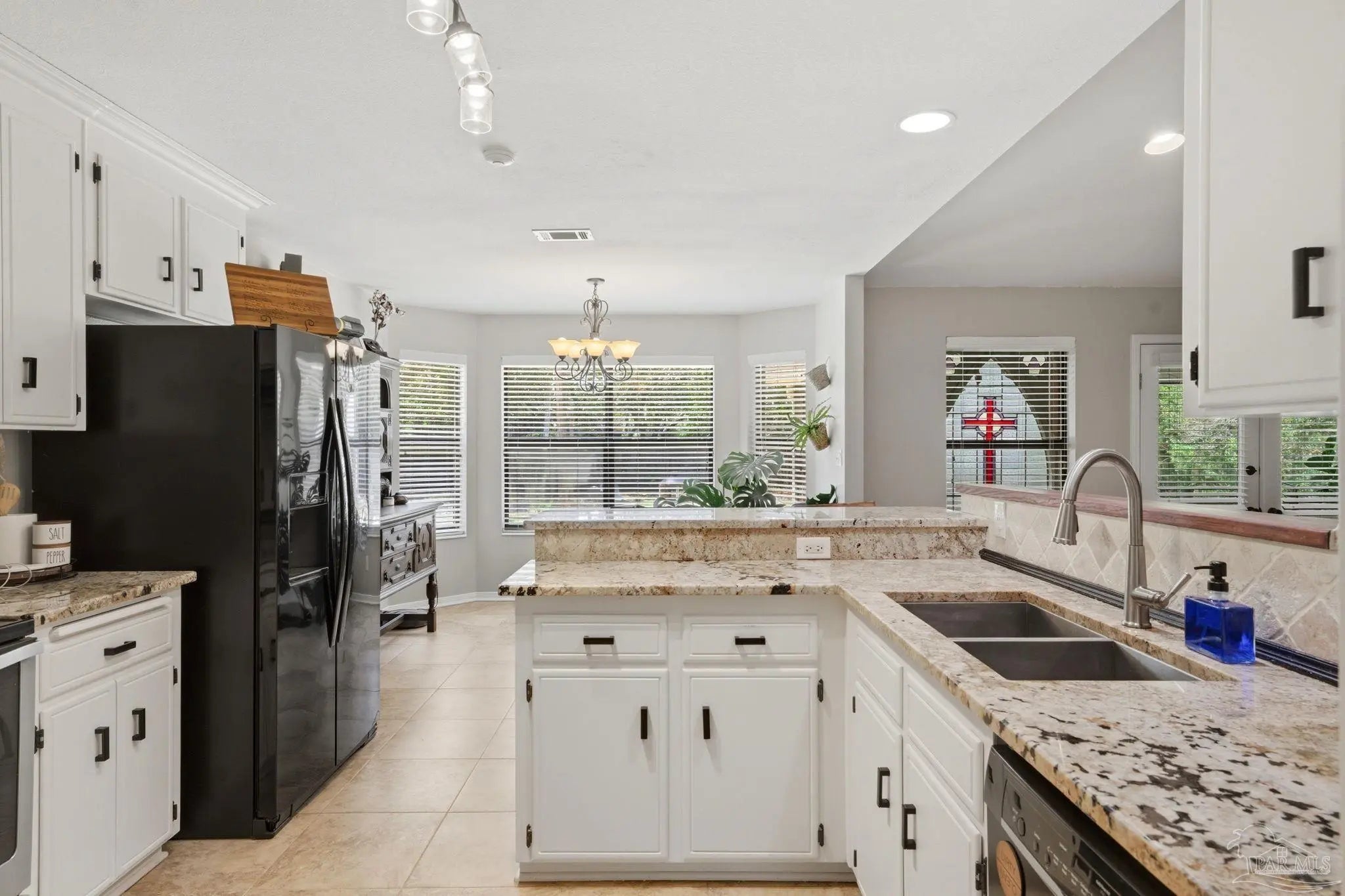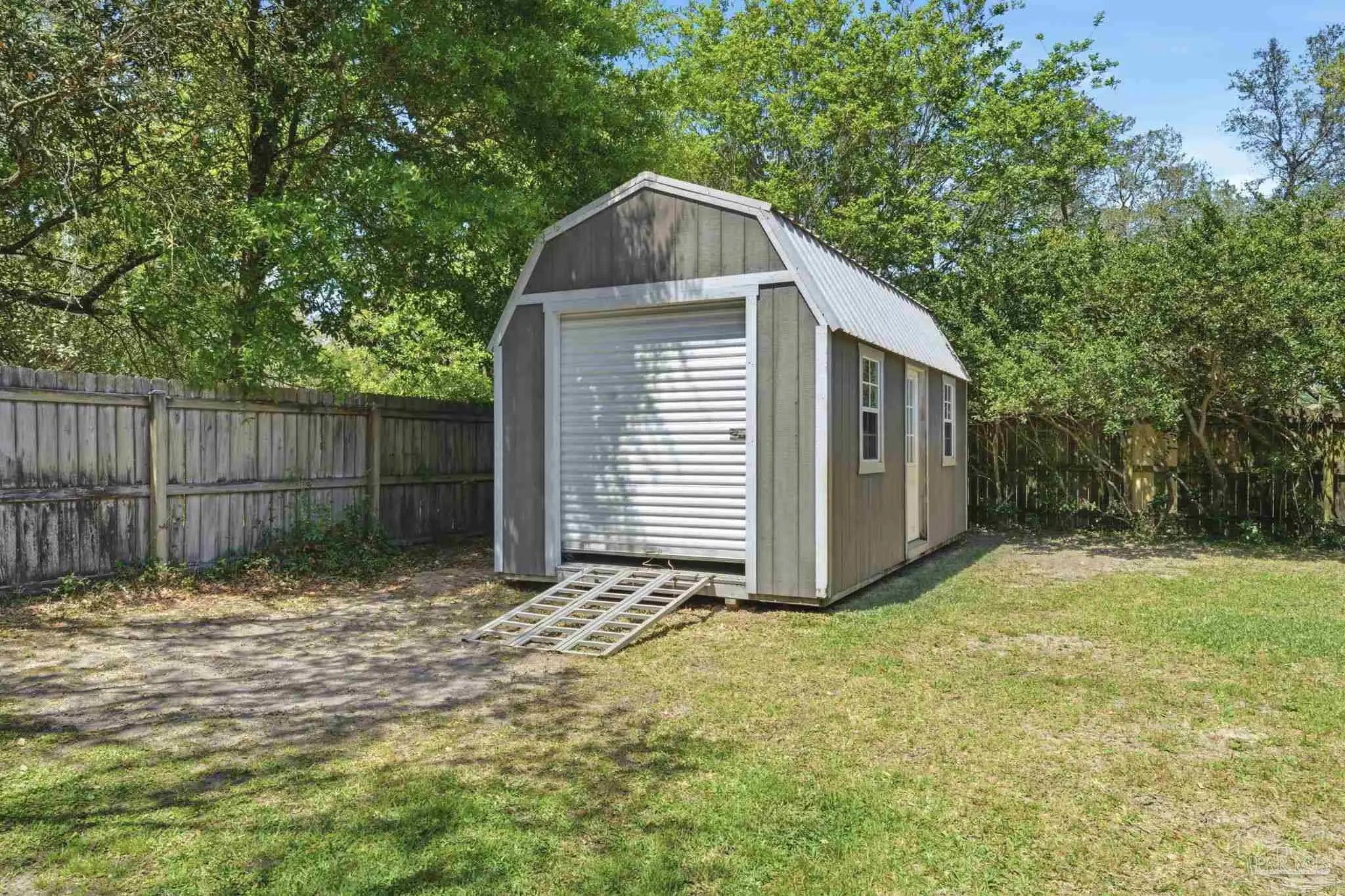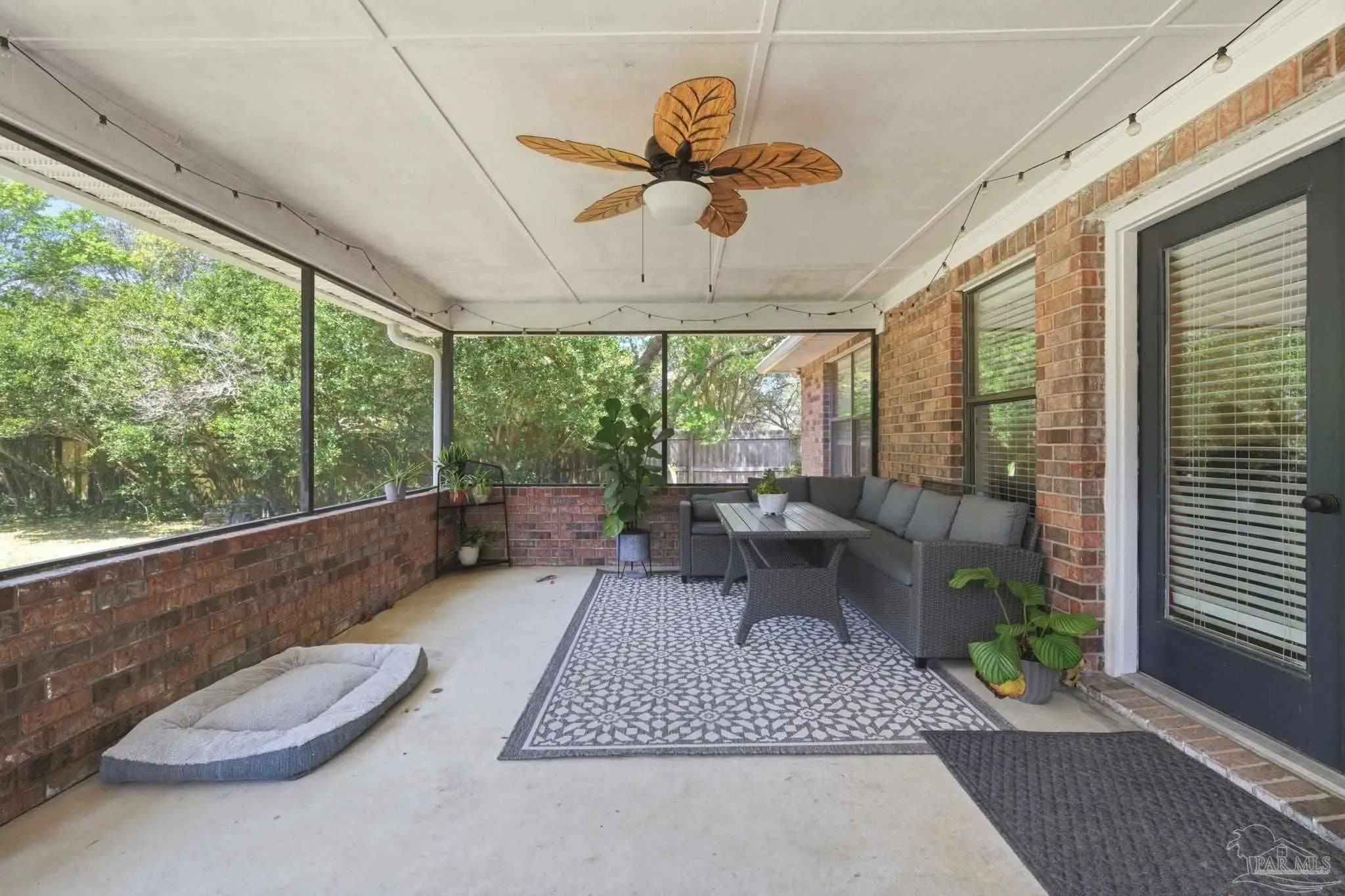 Welcome to this charming 3 bedroom, 2 bathroom brick home nestled in the heart of Navarre's most desirable neighborhoods. Tucked back just steps away from the green of the Hidden Creek Golf Course, this Holley By The Sea home offers over 2,000 SqFt of living space and is situated on an almost half acre lot with an extended driveway with side entry 2 car garage and a fully fenced in backyard with double gate entry. Inside, you'll find a split floor plan with an open concept main living space. The kitchen offers a breakfast nook with bay window overlooking the backyard, all black and stainless steel appliances, updated cabinetry, gorgeous granite countertops, tiled backsplash, and a breakfast bar. Just off the kitchen at the front of the house is a versatile space that could serve as a formal dining room or home office. For added privacy, the primary suite is tucked around the corner and features an ensuite bathroom with dual walk-in closets, double vanity, walk-in shower and jetted tub. The spacious additional bedrooms and spare bath are on the opposite side of the home. Step out onto the screened lanai in the backyard for a true extension of your living space - perfect to enjoy the outdoors for your morning cup of coffee. An extended concrete patio provides plenty of room for outdoor entertaining and BBQs, as well as the fitted out fire pit. Ownership also grants you access to all the amenities Holley By The Sea has to offer - including a boat ramp, 8 clay tennis courts, a community event hall, 3 different pools, exercise room, and more! Schedule your showing today!