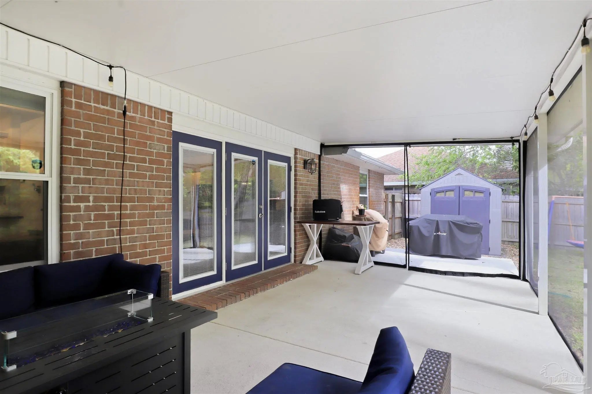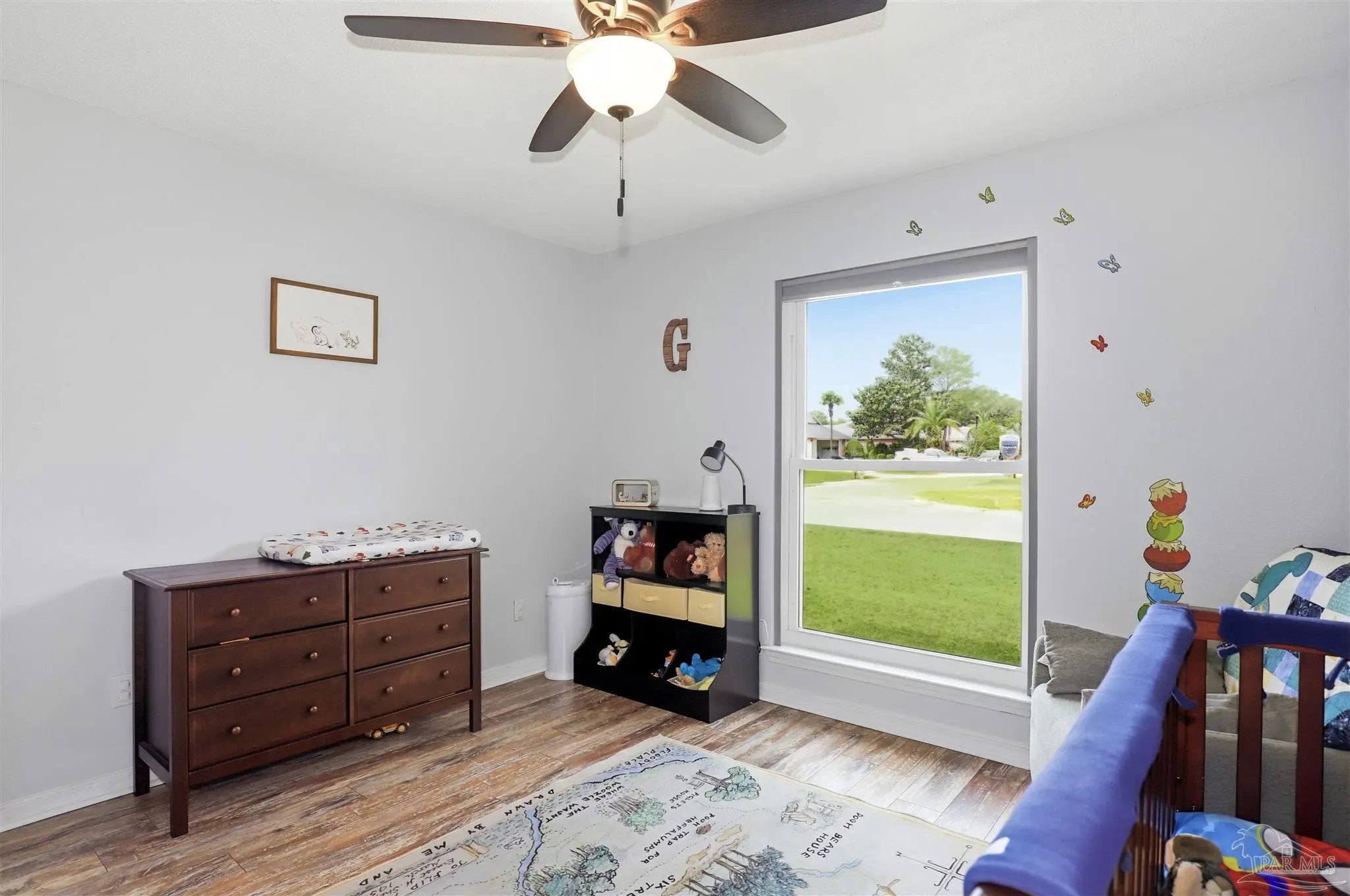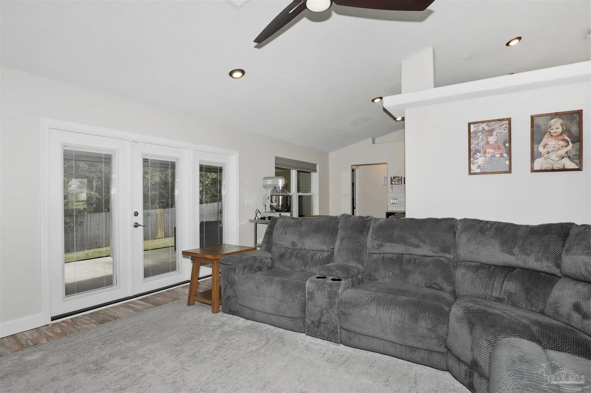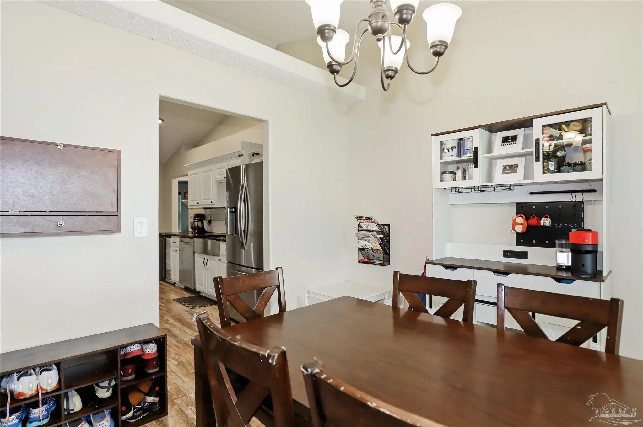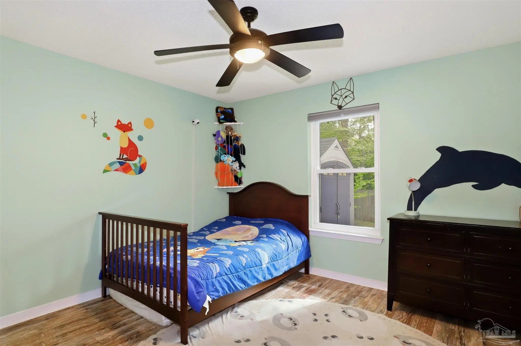 Move-in ready 4BR/2BA (1,903 sf) in Navarre. Features soaring ceilings, LVP flooring & farmhouse sink. Fenced yard, screened patio & neighborhood bay access. Inviting 4BR/2BA brick home in Navarre, Florida near the Santa Rosa Sound, offering convenient access to Navarre Beach, Hurlburt Field, and Pensacola, featuring soaring ceilings, luxury vinyl plank flooring throughout, and a beautifully updated kitchen with stainless steel appliances and granite countertops, plus a split floor plan, screened patio, fenced backyard, and neighborhood East Bay access just minutes away. Upon entry, a formal dining area sits to the right and flows seamlessly into the beautifully updated kitchen, complete with stainless steel appliances, farmhouse sink, textured leathered granite countertops with a rock-faced edge, built-in microwave, electric range, and space for a beverage cooler. The split floor plan offers privacy, with the spacious primary suite tucked away on one side, featuring a ceiling fan and an impressive en-suite bath with a walk-in shower, oversized closet, water closet, and linen storage. The open living area is ideal for entertaining and extends to a screened, covered back patio, plus an additional open patio—perfect for a fire pit. Three additional bedrooms are located on the opposite side of the home and share a full bath with updated vanities. Additional upgrades include recessed lighting, newer refrigerator, new windows for improved energy efficiency, and updated electrical with a generator switch installed. Enjoy a fully fenced backyard with privacy fencing and take advantage of neighborhood bay access just a few blocks away for evening walks and water views. HVAC replaced in 2022 and roof updated in 2019.