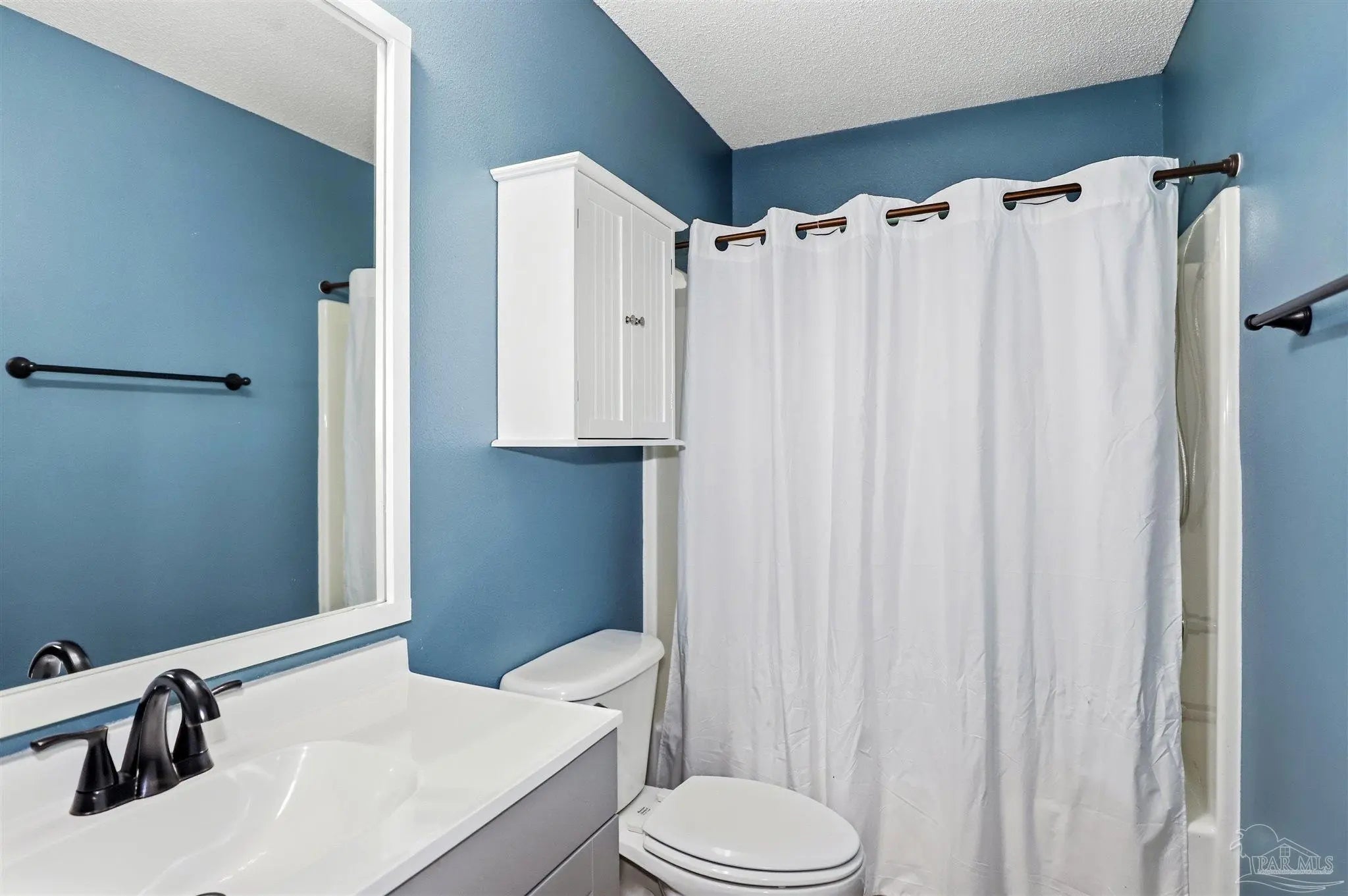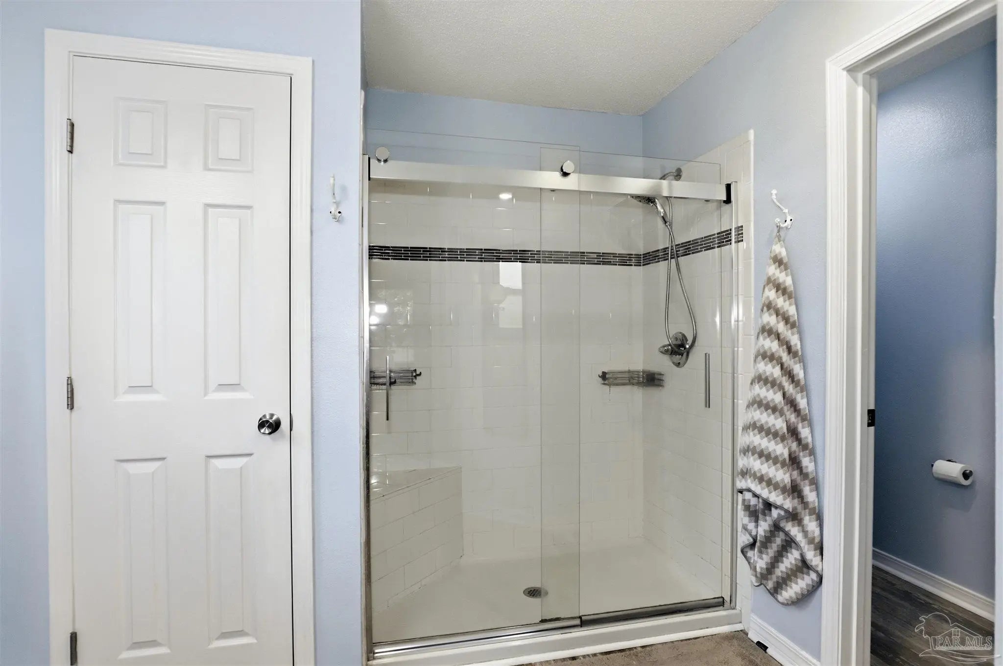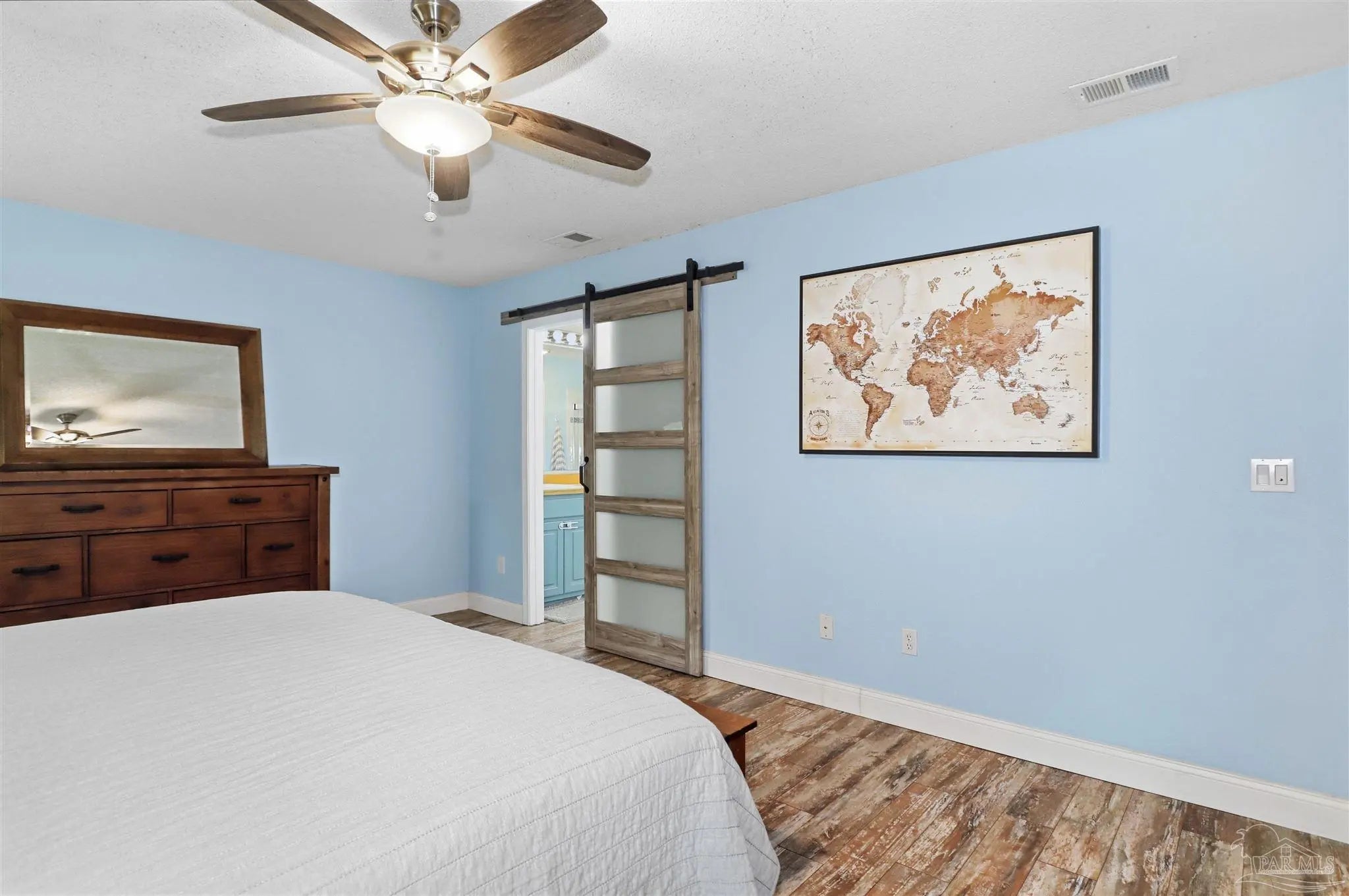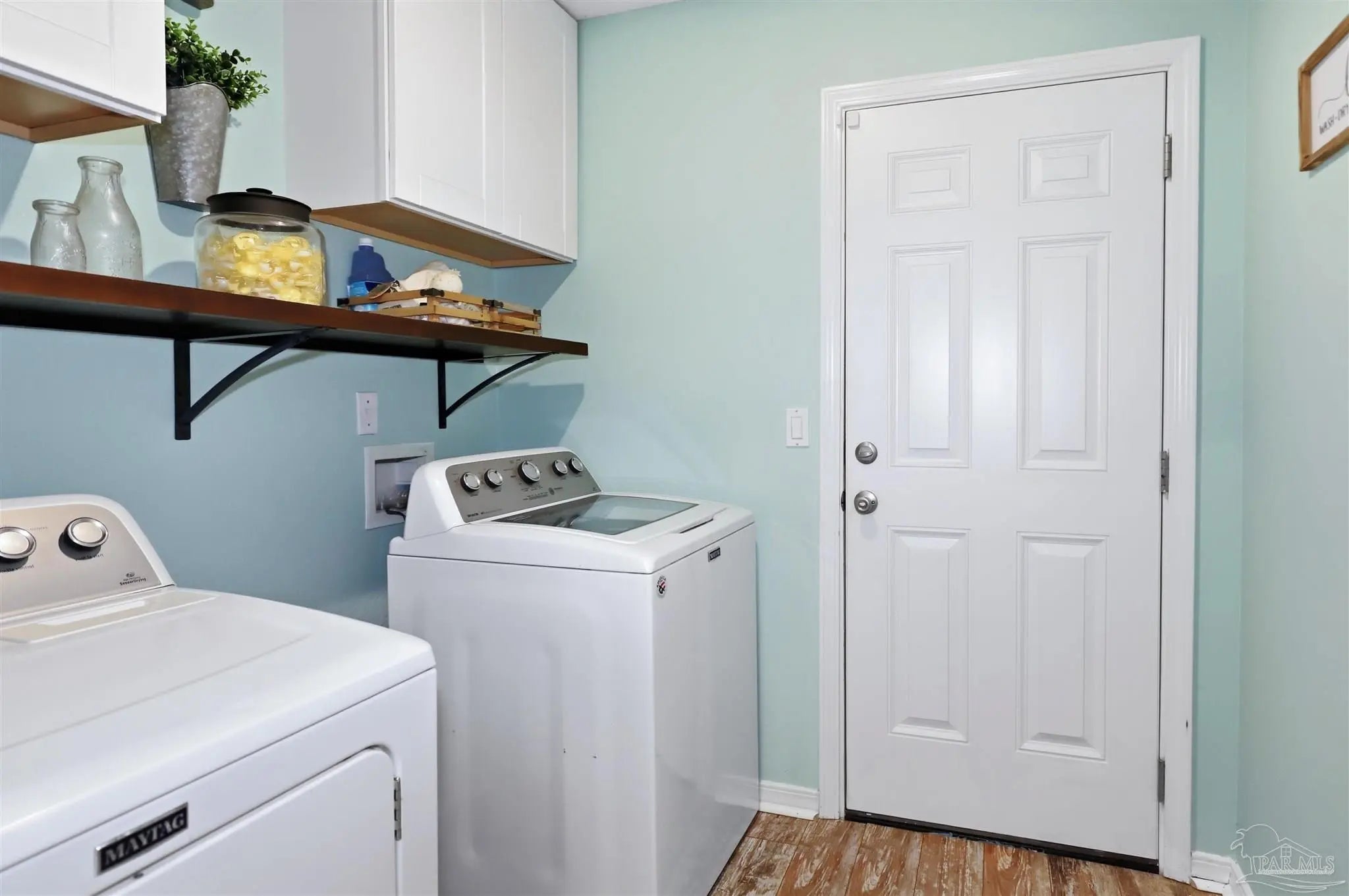 Move-in ready 4BR/2BA (1,903 sf) in Navarre. Features soaring ceilings, LVP flooring & farmhouse sink. Fenced yard, screened patio & neighborhood bay access. Inviting 4BR/2BA brick home in Navarre, Florida near the Santa Rosa Sound, offering convenient access to Navarre Beach, Hurlburt Field, and Pensacola, featuring soaring ceilings, luxury vinyl plank flooring throughout, and a beautifully updated kitchen with stainless steel appliances and granite countertops, plus a split floor plan, screened patio, fenced backyard, and neighborhood East Bay access just minutes away. Upon entry, a formal dining area sits to the right and flows seamlessly into the beautifully updated kitchen, complete with stainless steel appliances, farmhouse sink, textured leathered granite countertops with a rock-faced edge, built-in microwave, electric range, and space for a beverage cooler. The split floor plan offers privacy, with the spacious primary suite tucked away on one side, featuring a ceiling fan and an impressive en-suite bath with a walk-in shower, oversized closet, water closet, and linen storage. The open living area is ideal for entertaining and extends to a screened, covered back patio, plus an additional open patio—perfect for a fire pit. Three additional bedrooms are located on the opposite side of the home and share a full bath with updated vanities. Additional upgrades include recessed lighting, newer refrigerator, new windows for improved energy efficiency, and updated electrical with a generator switch installed. Enjoy a fully fenced backyard with privacy fencing and take advantage of neighborhood bay access just a few blocks away for evening walks and water views. HVAC replaced in 2022 and roof updated in 2019.
