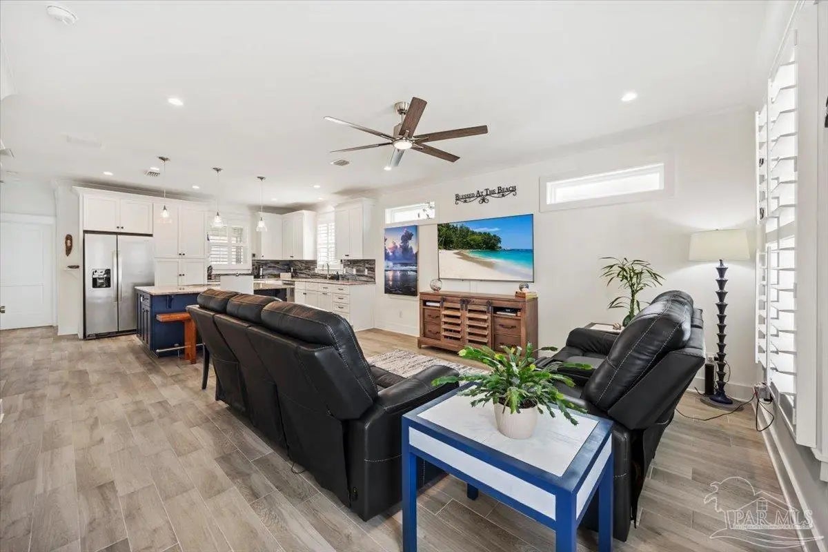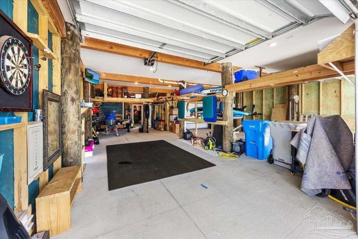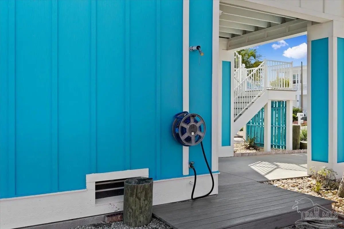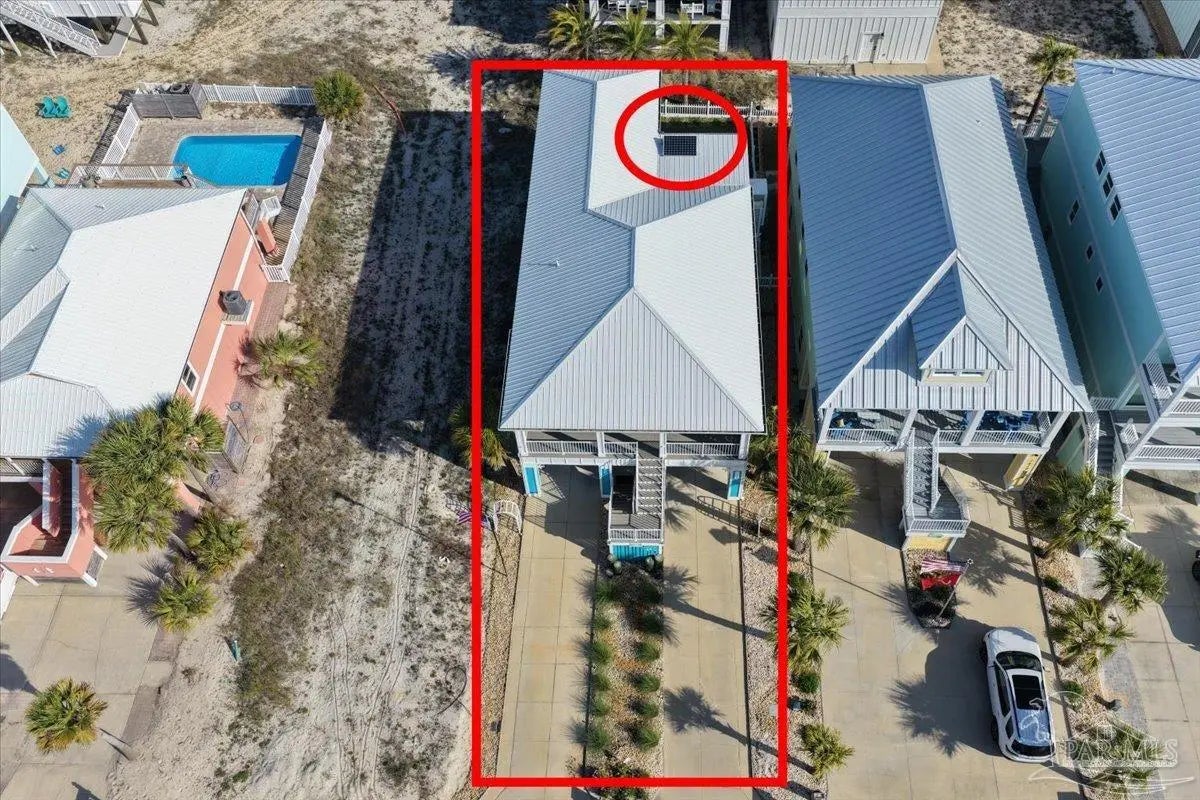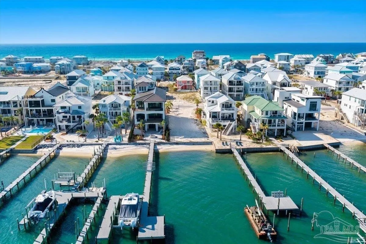 Modern Coastal Sanctuary at Navarre Beach within 1 Block to the Emerald Waters and white sands! Newer, meticulously maintained private residence with ELEVATOR. Home boasts impact windows, 16 SEER HVAC, Metal over Decking roof, 3 Car Garage, Hardi Plank Siding, Composite Decking for 3 Porches, robust piling elevation with lockbolts, Solar Panel for emergencies & a Whole House Dehumidifier are just a few of the details of durability and efficiency. 42'' White Cabinetry with ''Smart Storage'' & under Counter Microwave. Large Kitchen Island with Breakfast Bar. Granite Counters. Hidden xtra Foldout Table for dining. Master BR Suite boasts dbl vanities, walk-in Shower and Jetted Tub with spacious walk-in Closet. Built in 2020 and meticulously maintained this home represents a rare intersection of high-end architectural design, "fortress-level" construction, and the relaxed, sophisticated lifestyle of Navarre Beach. Whether you are seeking a permanent sanctuary or an elite vacation retreat, this property delivers unparalleled quality in every square inch. Superior Construction & Engineering In an environment where construction quality is paramount, this residence stands in a class of its own. Elevated on a robust foundation of pilings with lock bolts, the home is engineered for maximum resilience and longevity. Hardi-Plank siding and crowned with a standing-seam metal roof over decking, offering superior protection against the elements. Energy efficiency and interior comfort were the primary focus of the 2020 build. 3632sf total under roof with 3 composite porches, 2 Outdoor Showers. The landscape is effortlessly maintained by auto RainBird with drip lines and sprinklers. Sophisticated interior Design with Porcelain Tile throughout. Chef's kitchen with huge Island and "Smart Storage" with high end appliances. Master suite is a true sanctuary. LG Stackable Washer dryer and just a few of this home's amenities. See Docs for full info