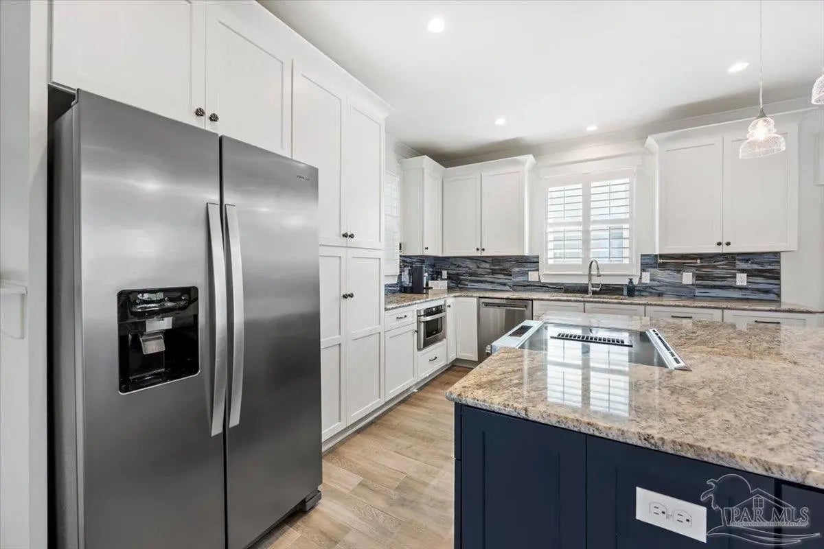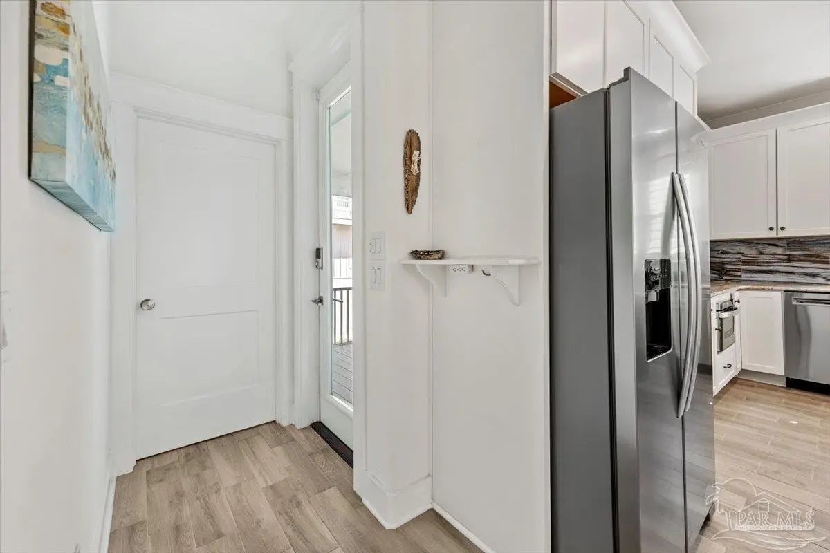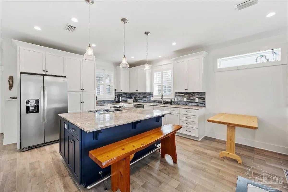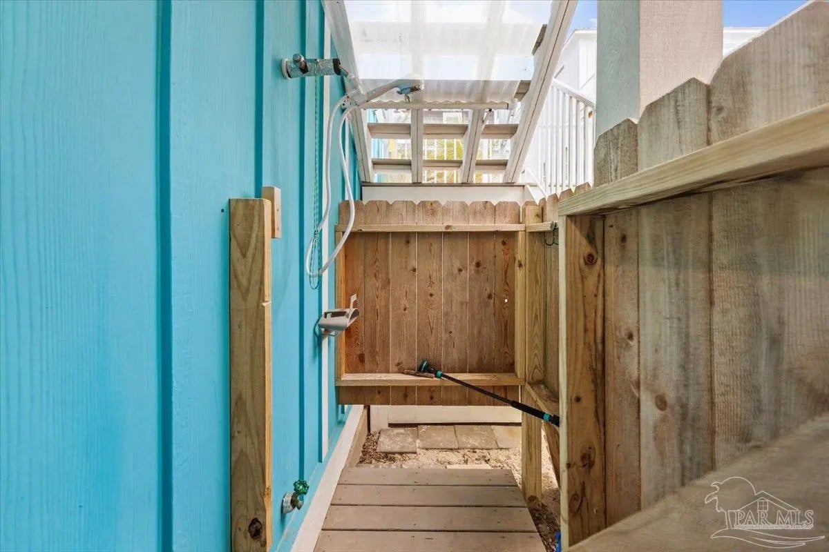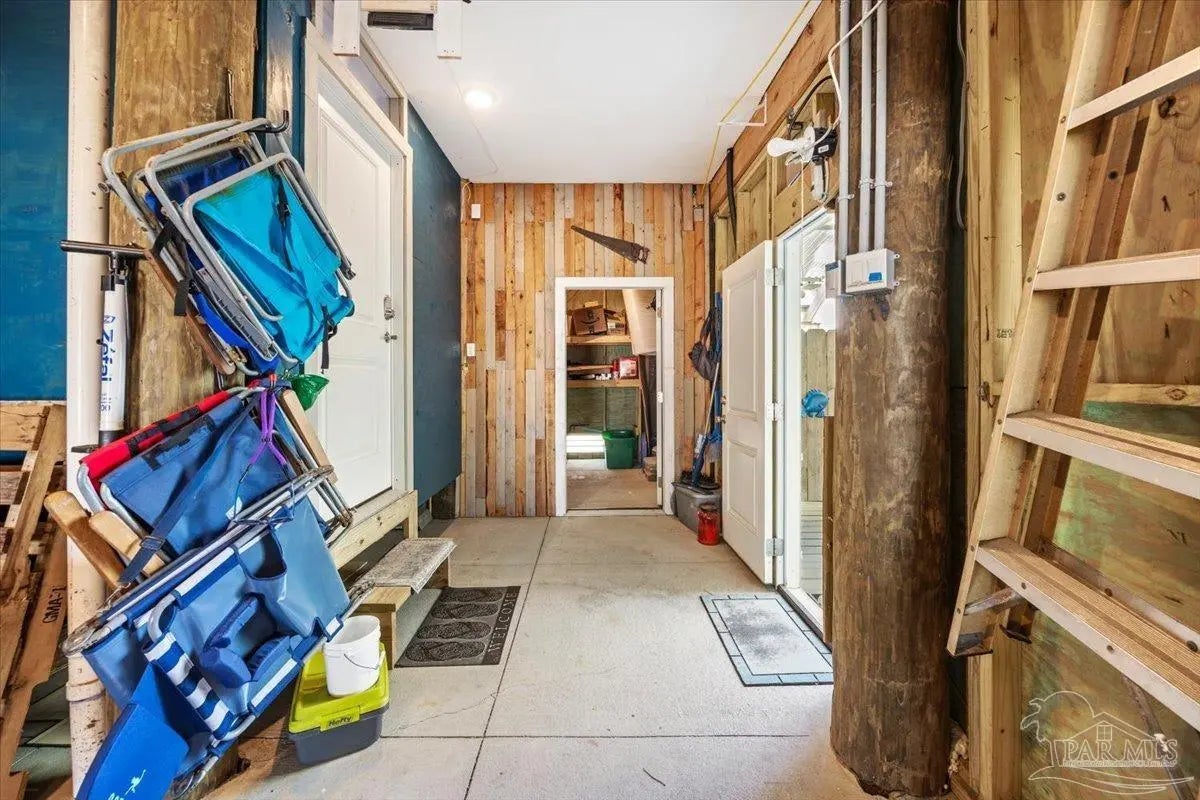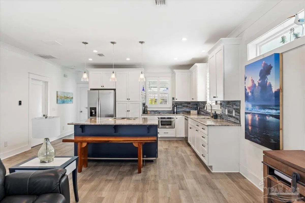 Modern Coastal Sanctuary at Navarre Beach within 1 Block to the Emerald Waters and white sands! Newer, meticulously maintained private residence with ELEVATOR. Home boasts impact windows, 16 SEER HVAC, Metal over Decking roof, 3 Car Garage, Hardi Plank Siding, Composite Decking for 3 Porches, robust piling elevation with lockbolts, Solar Panel for emergencies & a Whole House Dehumidifier are just a few of the details of durability and efficiency. 42'' White Cabinetry with ''Smart Storage'' & under Counter Microwave. Large Kitchen Island with Breakfast Bar. Granite Counters. Hidden xtra Foldout Table for dining. Master BR Suite boasts dbl vanities, walk-in Shower and Jetted Tub with spacious walk-in Closet. Built in 2020 and meticulously maintained this home represents a rare intersection of high-end architectural design, "fortress-level" construction, and the relaxed, sophisticated lifestyle of Navarre Beach. Whether you are seeking a permanent sanctuary or an elite vacation retreat, this property delivers unparalleled quality in every square inch. Superior Construction & Engineering In an environment where construction quality is paramount, this residence stands in a class of its own. Elevated on a robust foundation of pilings with lock bolts, the home is engineered for maximum resilience and longevity. Hardi-Plank siding and crowned with a standing-seam metal roof over decking, offering superior protection against the elements. Energy efficiency and interior comfort were the primary focus of the 2020 build. 3632sf total under roof with 3 composite porches, 2 Outdoor Showers. The landscape is effortlessly maintained by auto RainBird with drip lines and sprinklers. Sophisticated interior Design with Porcelain Tile throughout. Chef's kitchen with huge Island and "Smart Storage" with high end appliances. Master suite is a true sanctuary. LG Stackable Washer dryer and just a few of this home's amenities. See Docs for full info