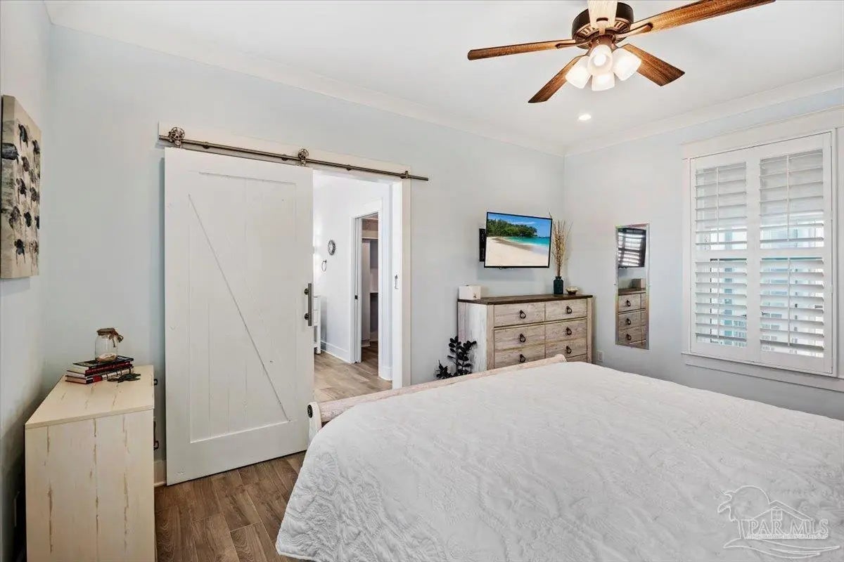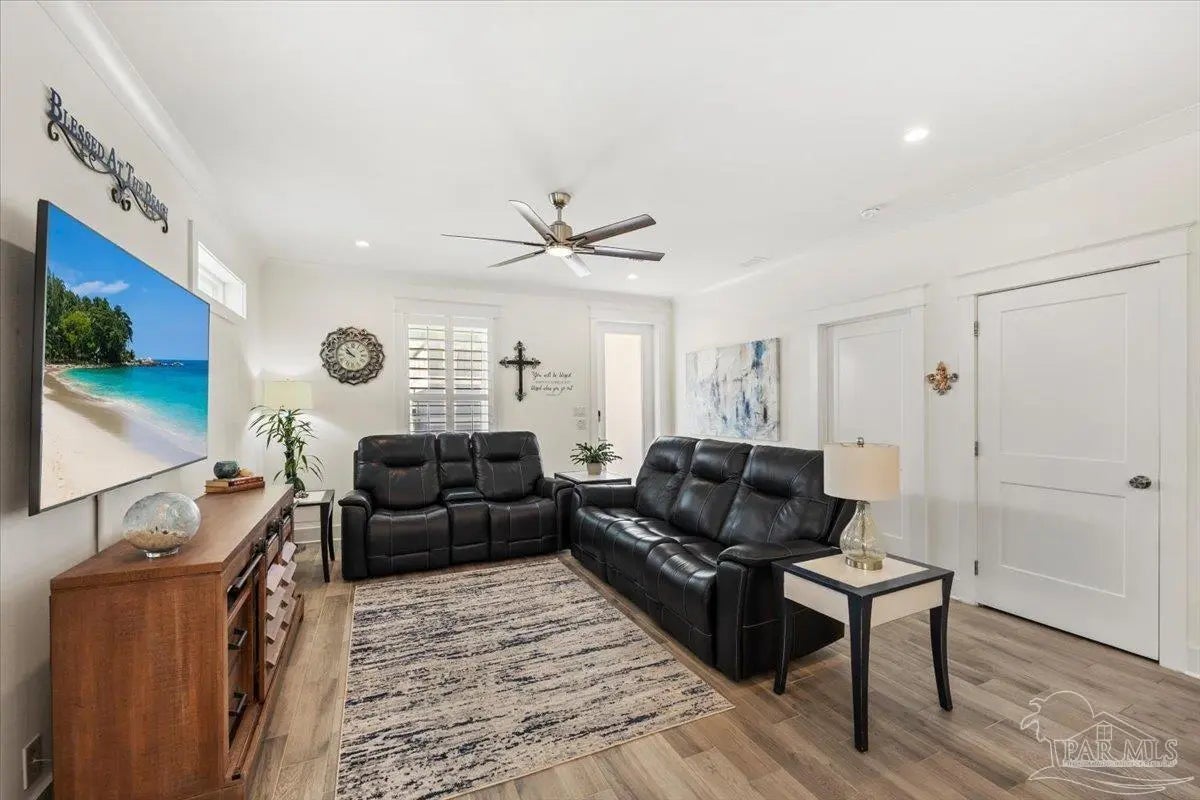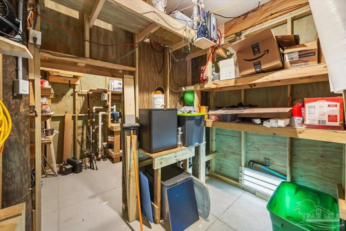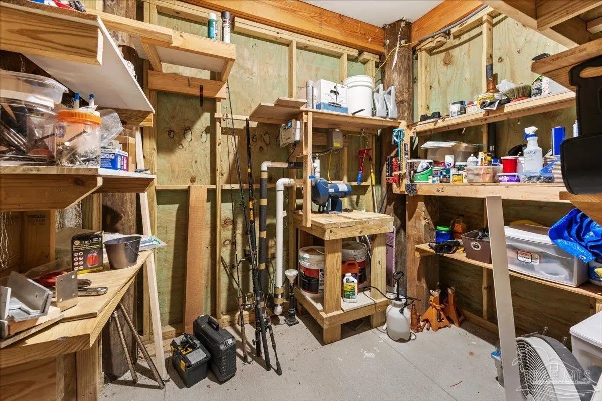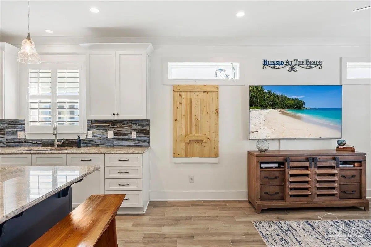 Modern Coastal Sanctuary at Navarre Beach within 1 Block to the Emerald Waters and white sands! Newer, meticulously maintained private residence with ELEVATOR. Home boasts impact windows, 16 SEER HVAC, Metal over Decking roof, 3 Car Garage, Hardi Plank Siding, Composite Decking for 3 Porches, robust piling elevation with lockbolts, Solar Panel for emergencies & a Whole House Dehumidifier are just a few of the details of durability and efficiency. 42'' White Cabinetry with ''Smart Storage'' & under Counter Microwave. Large Kitchen Island with Breakfast Bar. Granite Counters. Hidden xtra Foldout Table for dining. Master BR Suite boasts dbl vanities, walk-in Shower and Jetted Tub with spacious walk-in Closet. Built in 2020 and meticulously maintained this home represents a rare intersection of high-end architectural design, "fortress-level" construction, and the relaxed, sophisticated lifestyle of Navarre Beach. Whether you are seeking a permanent sanctuary or an elite vacation retreat, this property delivers unparalleled quality in every square inch. Superior Construction & Engineering In an environment where construction quality is paramount, this residence stands in a class of its own. Elevated on a robust foundation of pilings with lock bolts, the home is engineered for maximum resilience and longevity. Hardi-Plank siding and crowned with a standing-seam metal roof over decking, offering superior protection against the elements. Energy efficiency and interior comfort were the primary focus of the 2020 build. 3632sf total under roof with 3 composite porches, 2 Outdoor Showers. The landscape is effortlessly maintained by auto RainBird with drip lines and sprinklers. Sophisticated interior Design with Porcelain Tile throughout. Chef's kitchen with huge Island and "Smart Storage" with high end appliances. Master suite is a true sanctuary. LG Stackable Washer dryer and just a few of this home's amenities. See Docs for full info