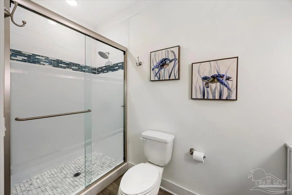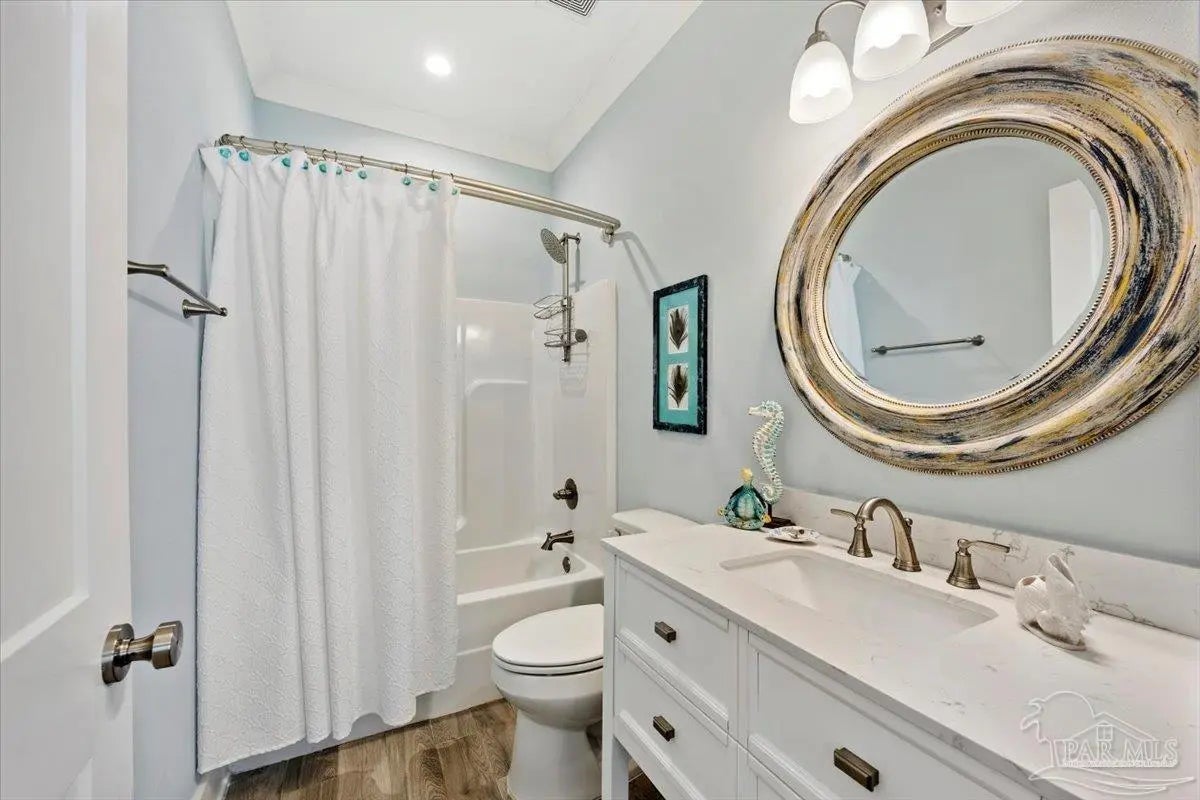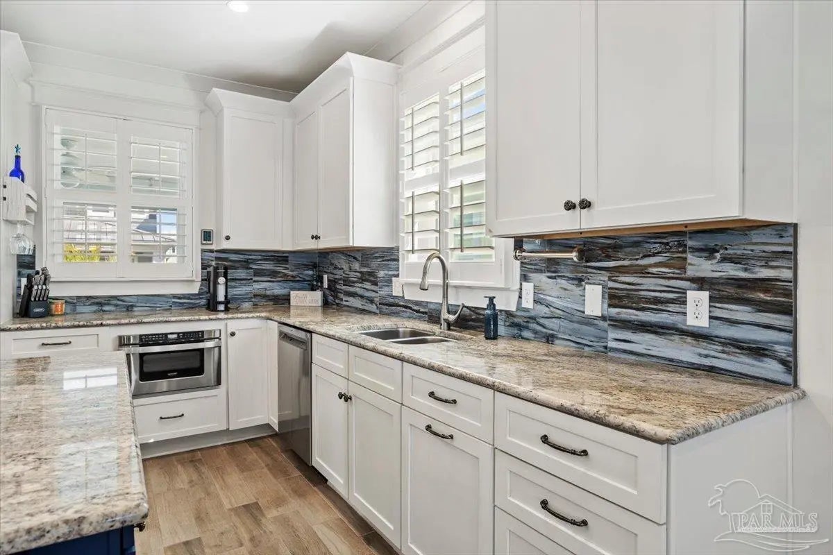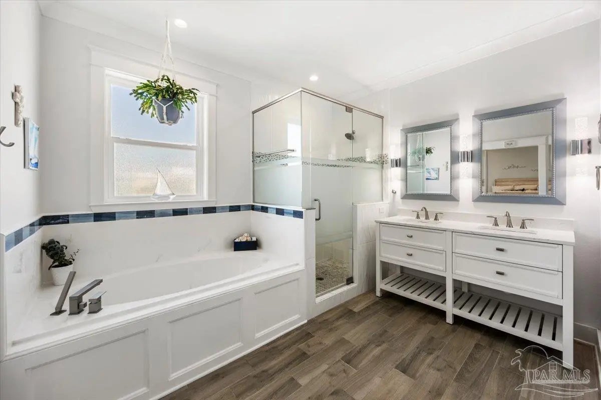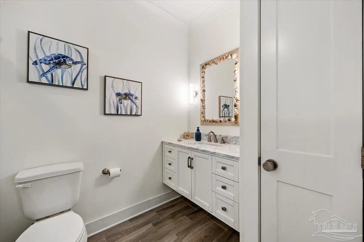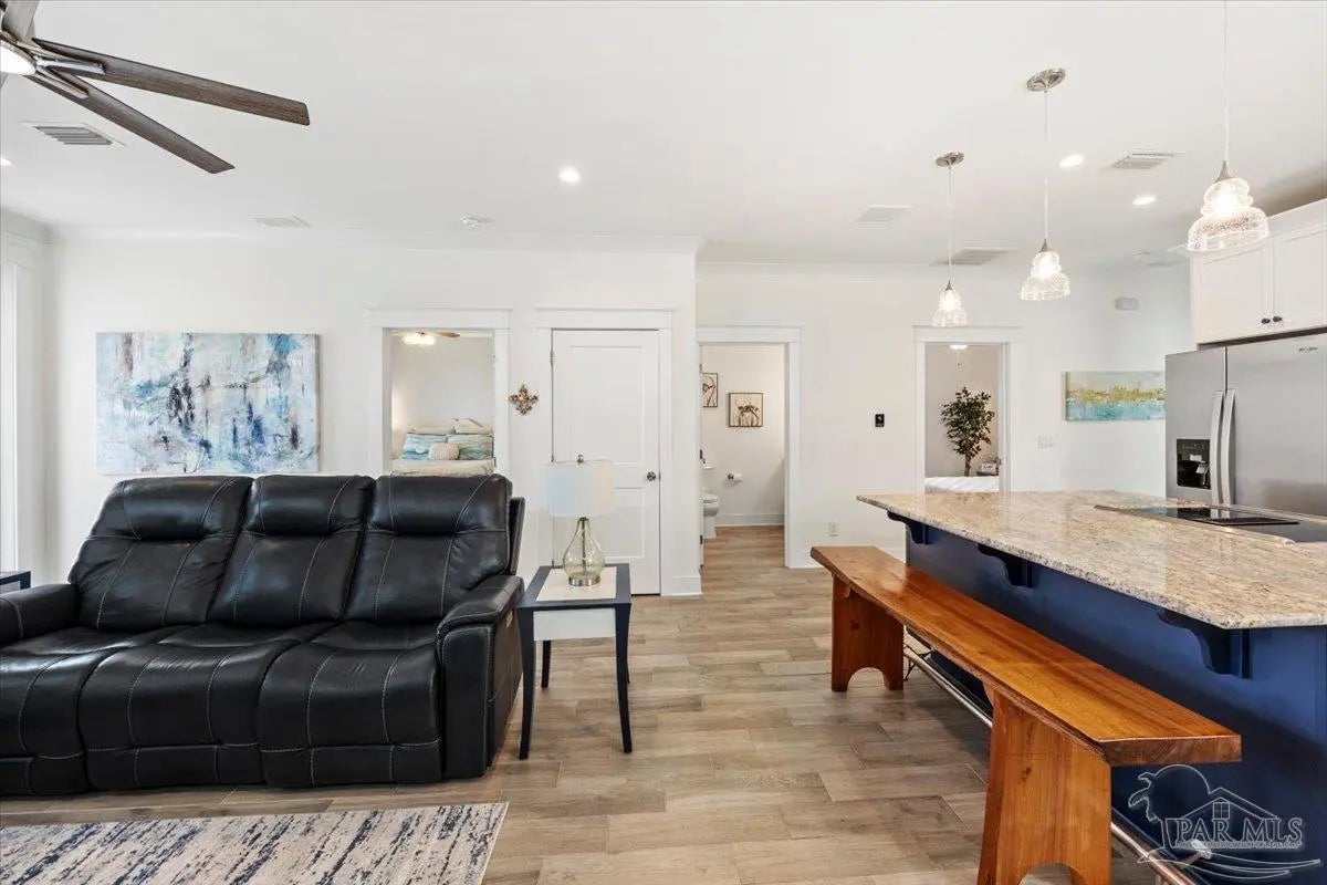 Modern Coastal Sanctuary at Navarre Beach within 1 Block to the Emerald Waters and white sands! Newer, meticulously maintained private residence with ELEVATOR. Home boasts impact windows, 16 SEER HVAC, Metal over Decking roof, 3 Car Garage, Hardi Plank Siding, Composite Decking for 3 Porches, robust piling elevation with lockbolts, Solar Panel for emergencies & a Whole House Dehumidifier are just a few of the details of durability and efficiency. 42'' White Cabinetry with ''Smart Storage'' & under Counter Microwave. Large Kitchen Island with Breakfast Bar. Granite Counters. Hidden xtra Foldout Table for dining. Master BR Suite boasts dbl vanities, walk-in Shower and Jetted Tub with spacious walk-in Closet. Built in 2020 and meticulously maintained this home represents a rare intersection of high-end architectural design, "fortress-level" construction, and the relaxed, sophisticated lifestyle of Navarre Beach. Whether you are seeking a permanent sanctuary or an elite vacation retreat, this property delivers unparalleled quality in every square inch. Superior Construction & Engineering In an environment where construction quality is paramount, this residence stands in a class of its own. Elevated on a robust foundation of pilings with lock bolts, the home is engineered for maximum resilience and longevity. Hardi-Plank siding and crowned with a standing-seam metal roof over decking, offering superior protection against the elements. Energy efficiency and interior comfort were the primary focus of the 2020 build. 3632sf total under roof with 3 composite porches, 2 Outdoor Showers. The landscape is effortlessly maintained by auto RainBird with drip lines and sprinklers. Sophisticated interior Design with Porcelain Tile throughout. Chef's kitchen with huge Island and "Smart Storage" with high end appliances. Master suite is a true sanctuary. LG Stackable Washer dryer and just a few of this home's amenities. See Docs for full info