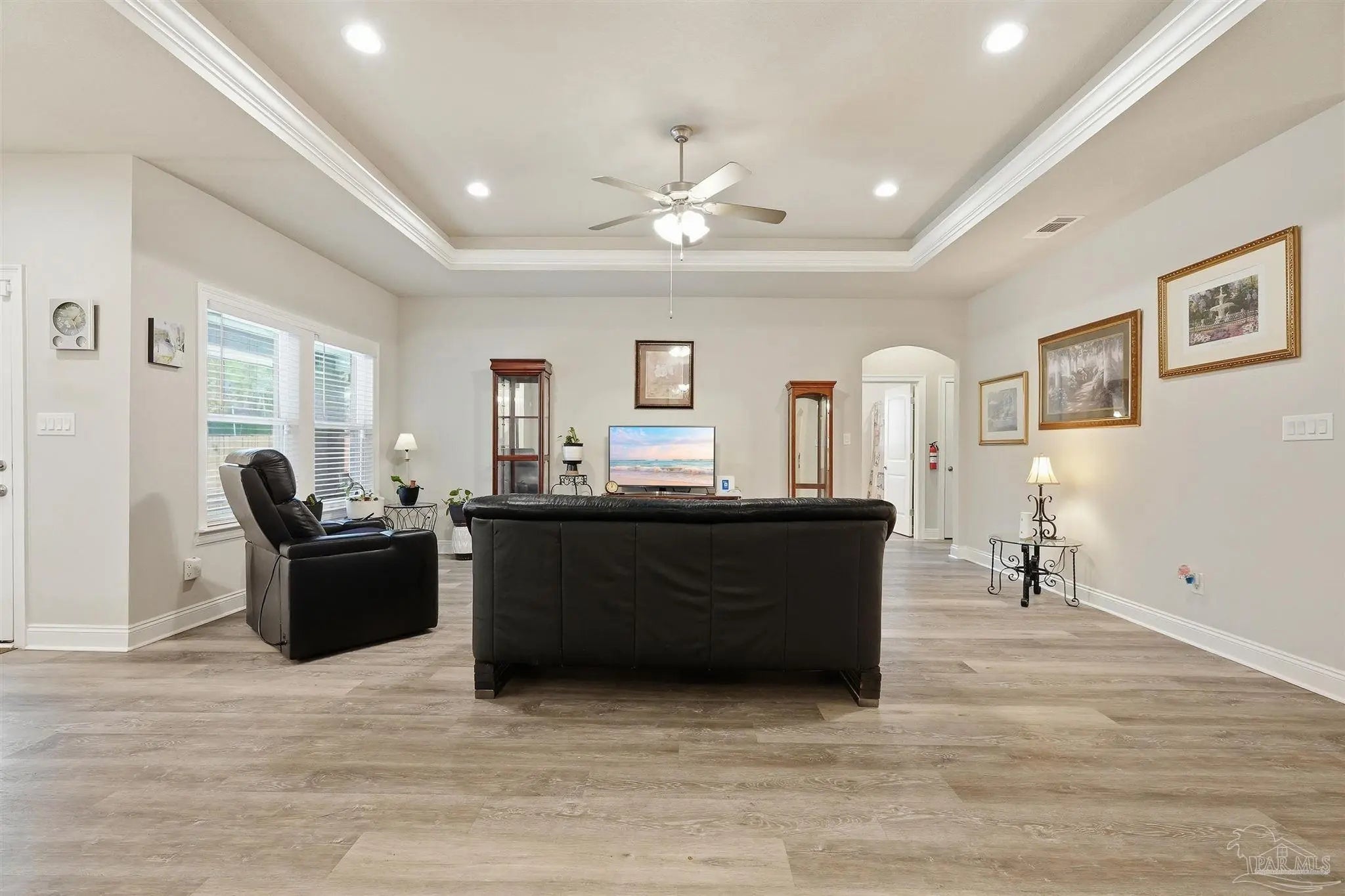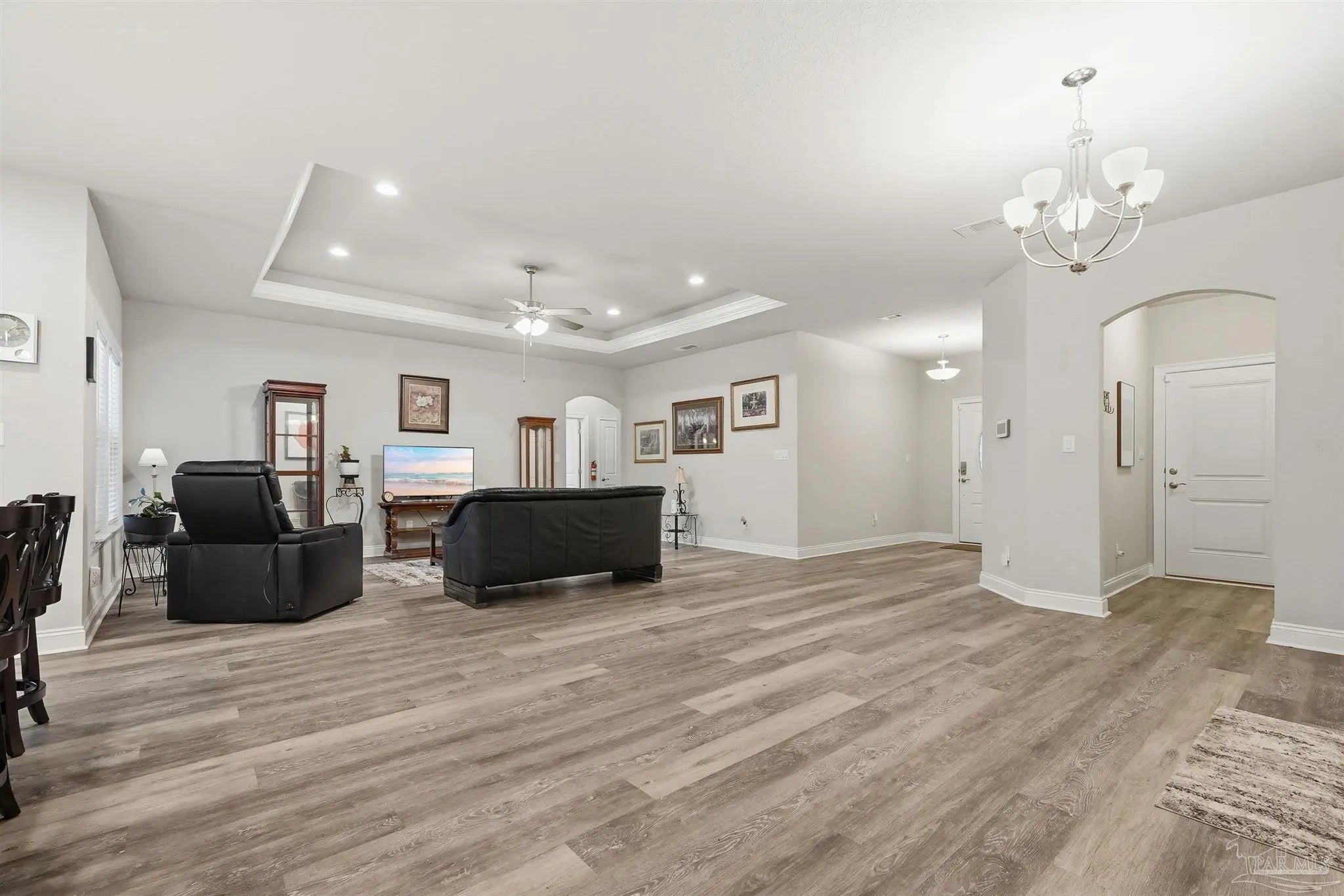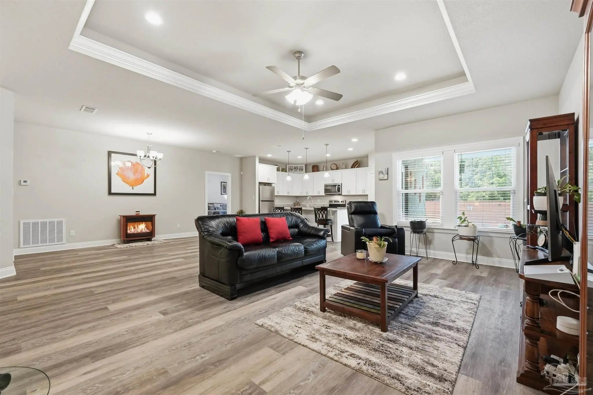 Built in 2022 but finished like a custom home — 5835 Anderson Lane is brick construction with 4 bedrooms, 2 baths, and 2,182 sq ft of intentionally designed living space on a .34-acre lot in Milton. The open floor plan features tray ceilings with crown moulding, arched entryways, high ceilings throughout, and glass insert entry doors front and rear with storm doors. The kitchen offers granite countertops, stainless appliances, a pantry, and flows seamlessly into the family room. The primary suite includes a tray ceiling, garden tub, tiled shower with glass enclosure, double vanity, and a large closet accessible from both the suite and laundry room — plus a linen closet. LVP in common areas, carpet in bedrooms. Outside, enjoy an extended coated covered patio, pavers, hardscaping, extensive landscaping, and a privacy-fenced backyard. Nothing builder-grade here — this one was built with intention and maintained with care.