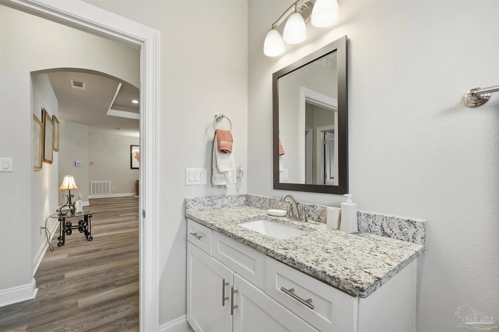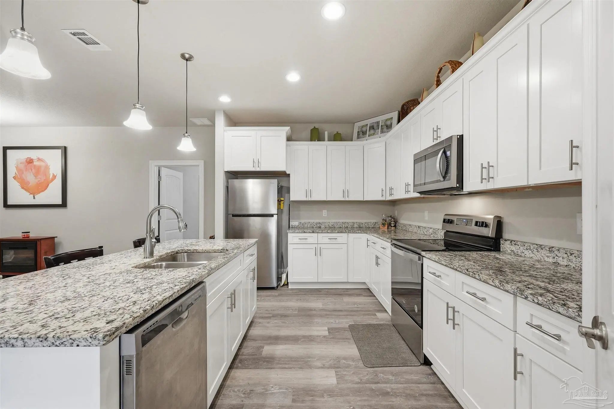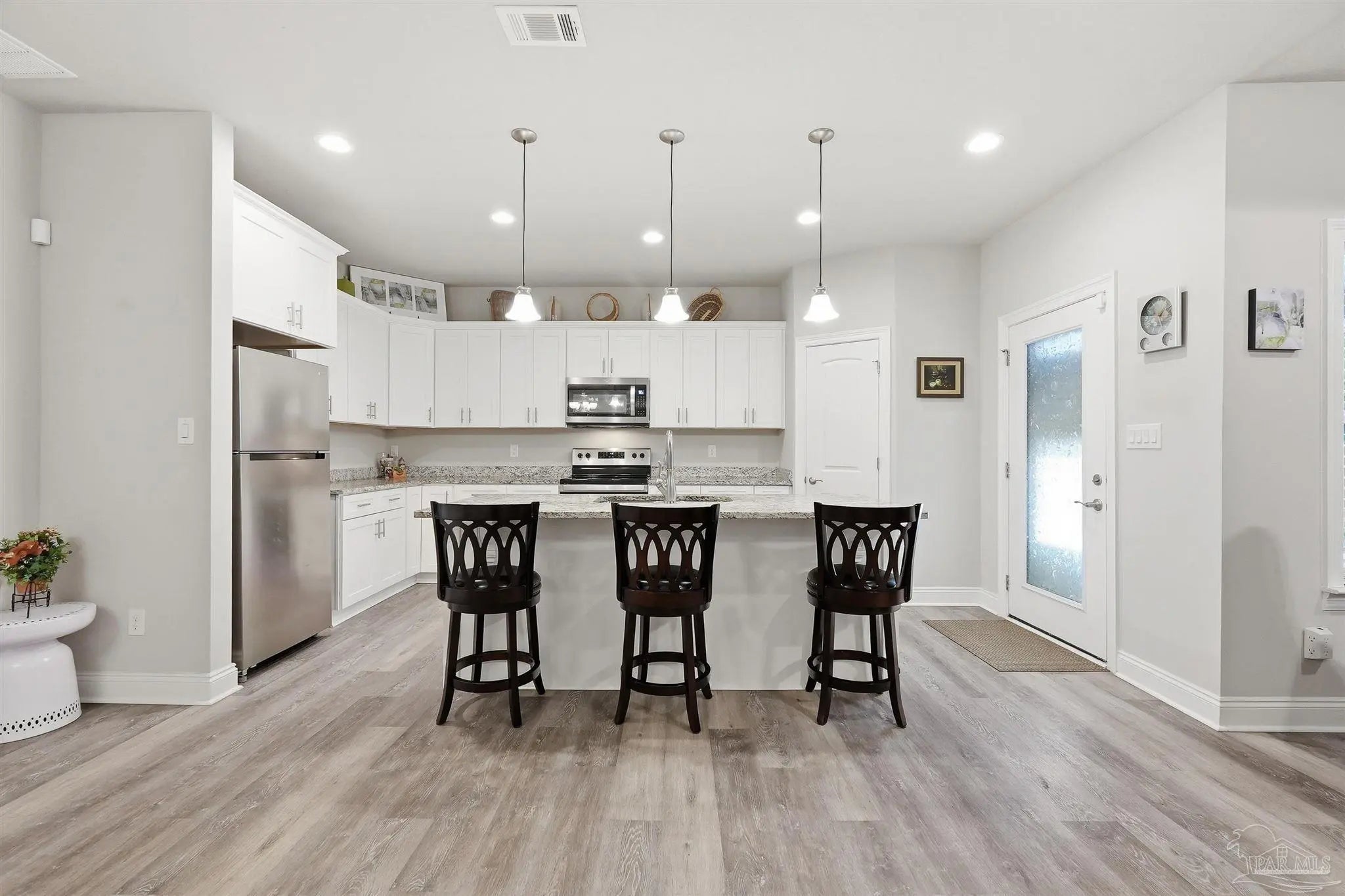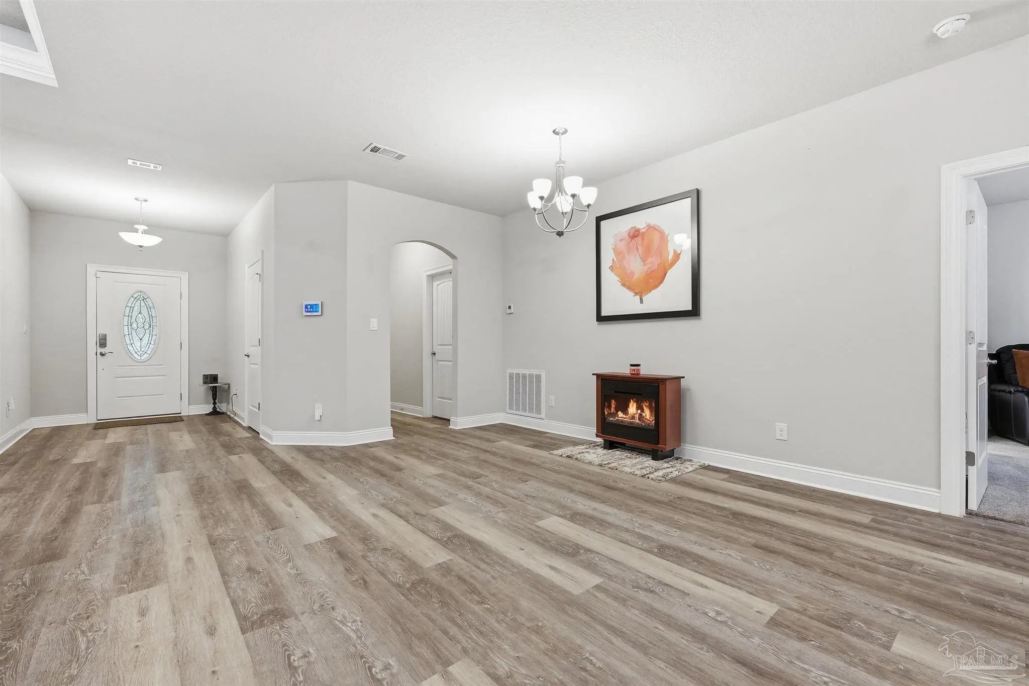 Built in 2022 but finished like a custom home — 5835 Anderson Lane is brick construction with 4 bedrooms, 2 baths, and 2,182 sq ft of intentionally designed living space on a .34-acre lot in Milton. The open floor plan features tray ceilings with crown moulding, arched entryways, high ceilings throughout, and glass insert entry doors front and rear with storm doors. The kitchen offers granite countertops, stainless appliances, a pantry, and flows seamlessly into the family room. The primary suite includes a tray ceiling, garden tub, tiled shower with glass enclosure, double vanity, and a large closet accessible from both the suite and laundry room — plus a linen closet. LVP in common areas, carpet in bedrooms. Outside, enjoy an extended coated covered patio, pavers, hardscaping, extensive landscaping, and a privacy-fenced backyard. Nothing builder-grade here — this one was built with intention and maintained with care.