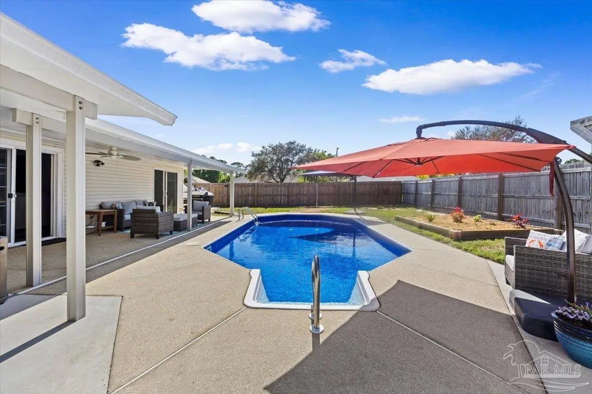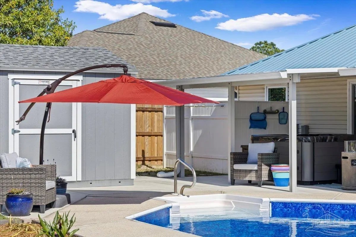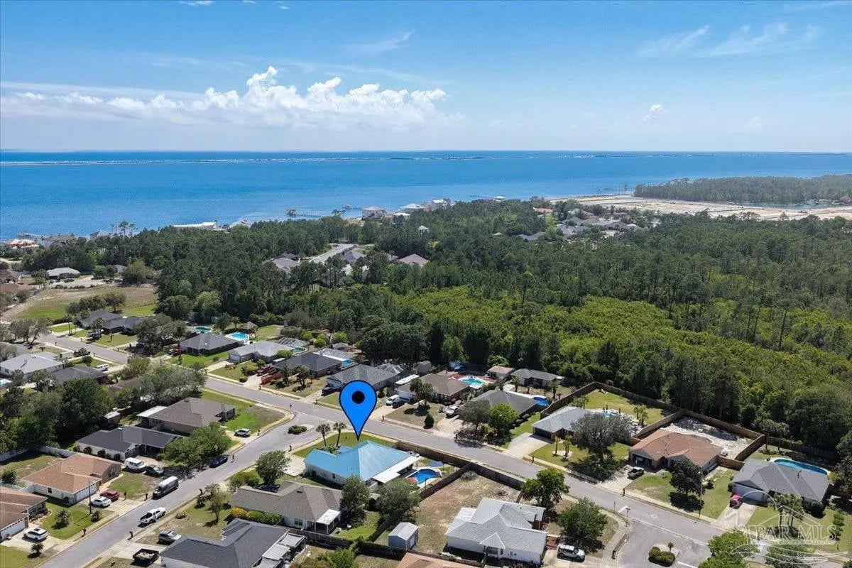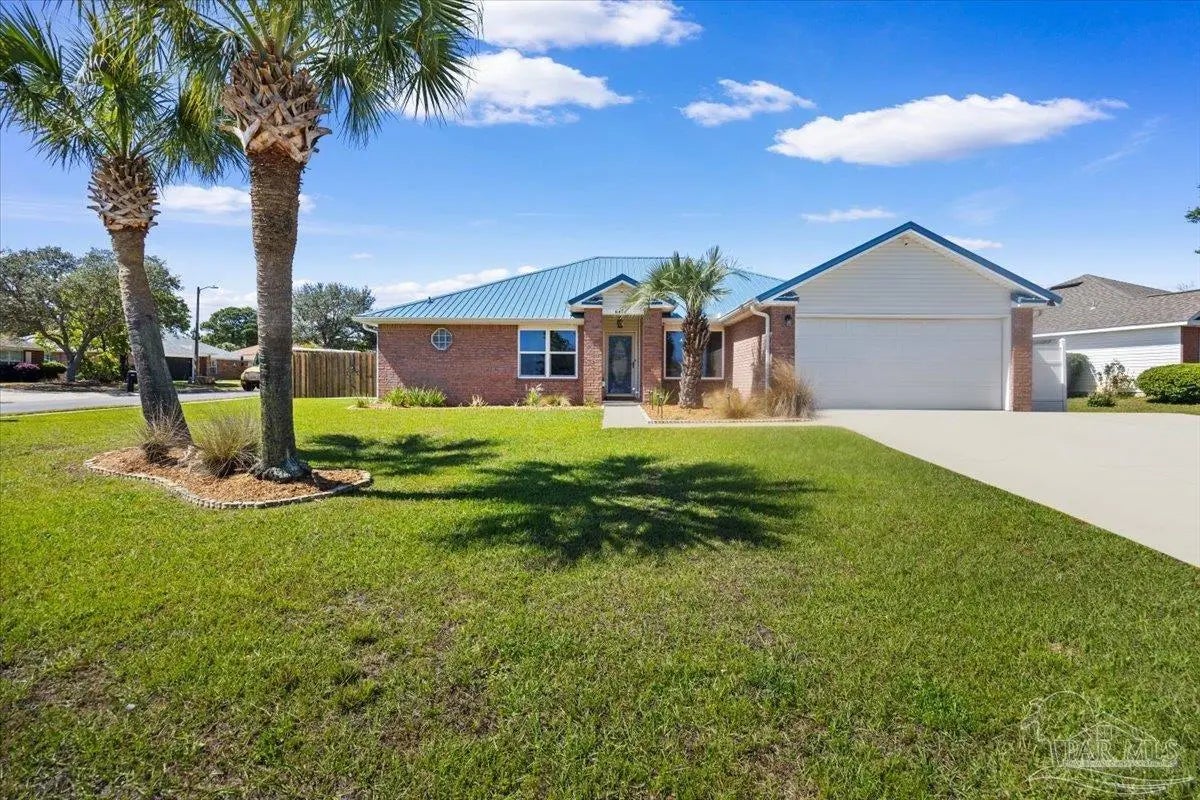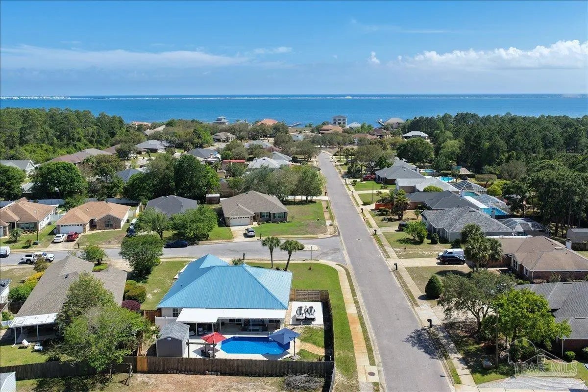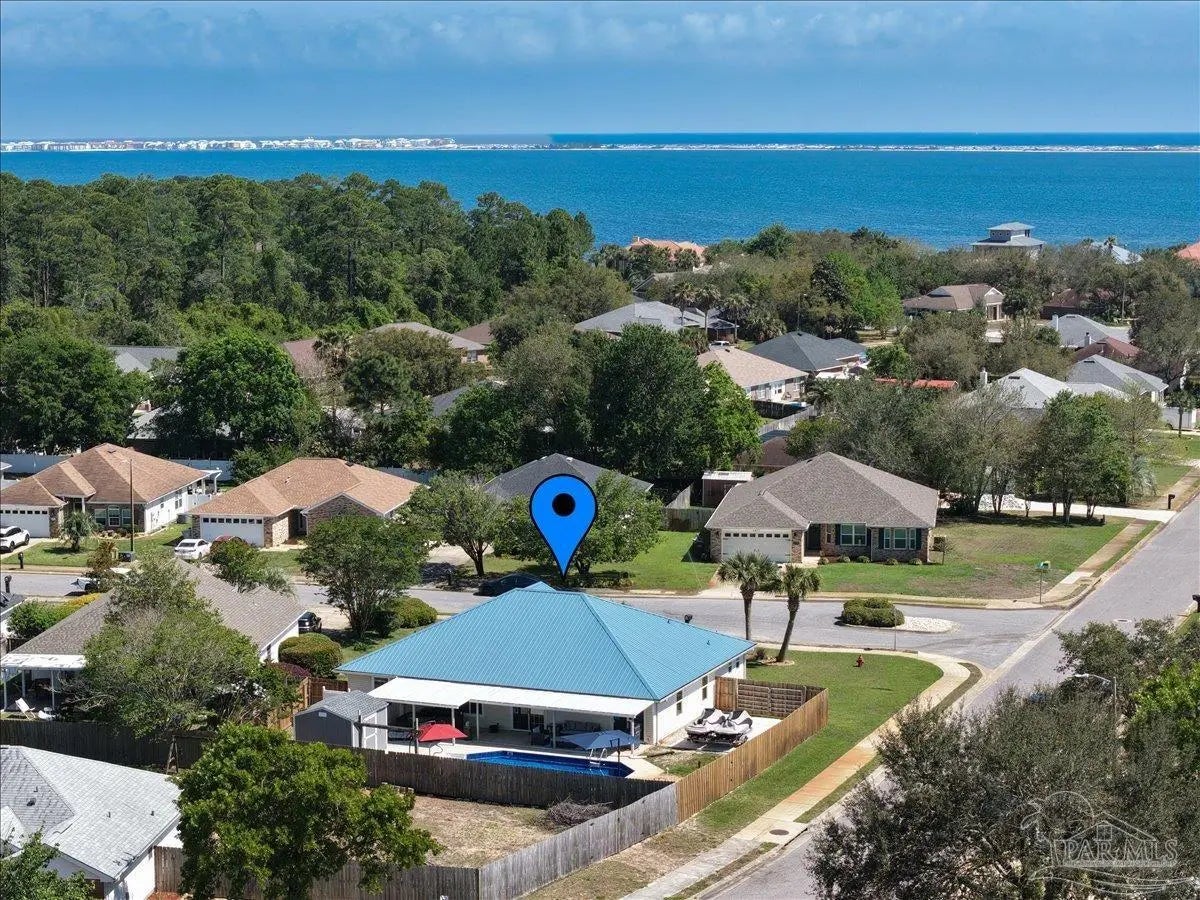Welcome to your private coastal retreat in the highly sought-after waterfront community of Lighthouse Pointe! Situated on a spacious corner lot, this beautifully updated 4-bedroom, 2-bath pool home blends modern upgrades with effortless Florida living. Step inside to discover a bright, open living space featuring vaulted ceilings, abundant natural light, and new impact windows for peace of mind. The heart of the home is the stunning updated kitchen, complete with quartz countertops, soft-close cabinetry, and brand-new appliances—perfect for both everyday living and entertaining. A formal dining room adds versatility for gatherings and special occasions. The spacious primary suite is a true escape, showcasing a tray ceiling, dual closets, a double vanity, and a custom-tiled shower. Enjoy direct access to your backyard oasis through double sliding doors that open to the private pool with a brand-new liner-ideal for relaxing or hosting guests year-round. Step outside to your covered patio retreat, complete with a hot tub beneath a 2023-installed enclosure—offering a comfortable, shaded space to unwind, entertain, or enjoy peaceful evenings outdoors. Additional highlights include luxury vinyl plank flooring, updated bathrooms, fresh paint, modern lighting, and a Tesla charger in the garage, Govee exterior lighting. Major systems have been thoughtfully updated, including a new metal roof (2024), HVAC (2020), and water heater (2020), offering both style and long-term peace of mind. Beyond the home, Lighthouse Pointe offers an exceptional coastal lifestyle with sidewalks, underground utilities, two playgrounds, and a waterfront park complete with picnic areas, a beach, and a fishing pier on the Santa Rosa Sound. Whether you’re enjoying sunsets by the water or relaxing poolside at home, this property delivers the best of Gulf Breeze living. Don’t miss your opportunity to own a move-in-ready home in one of the area’s most desirable waterfront communities!