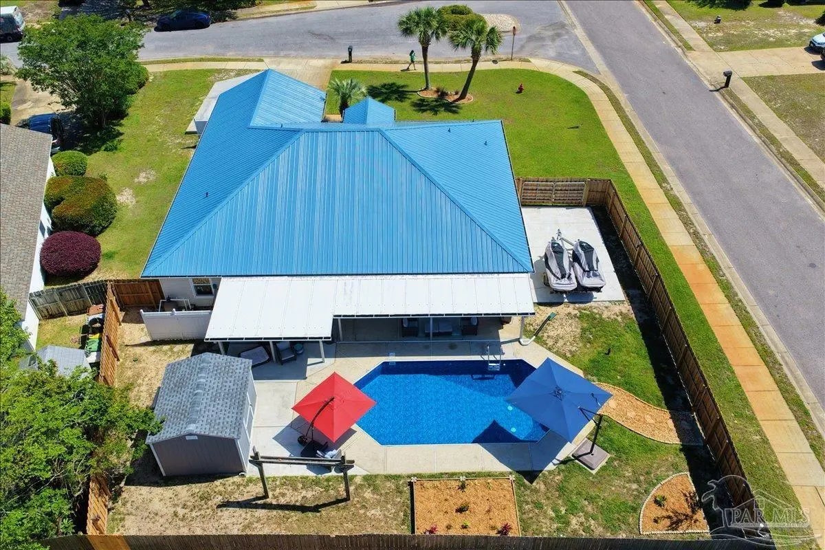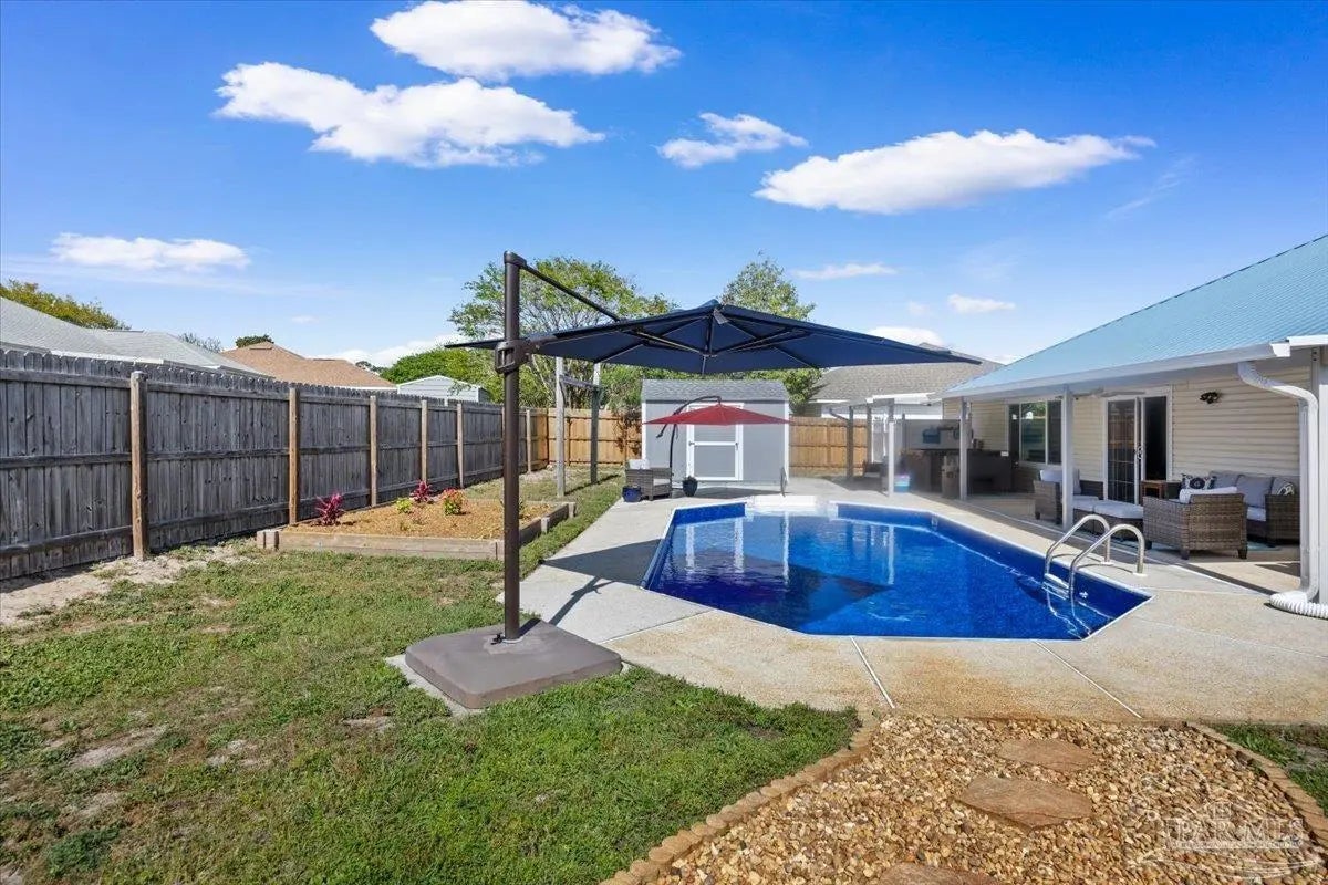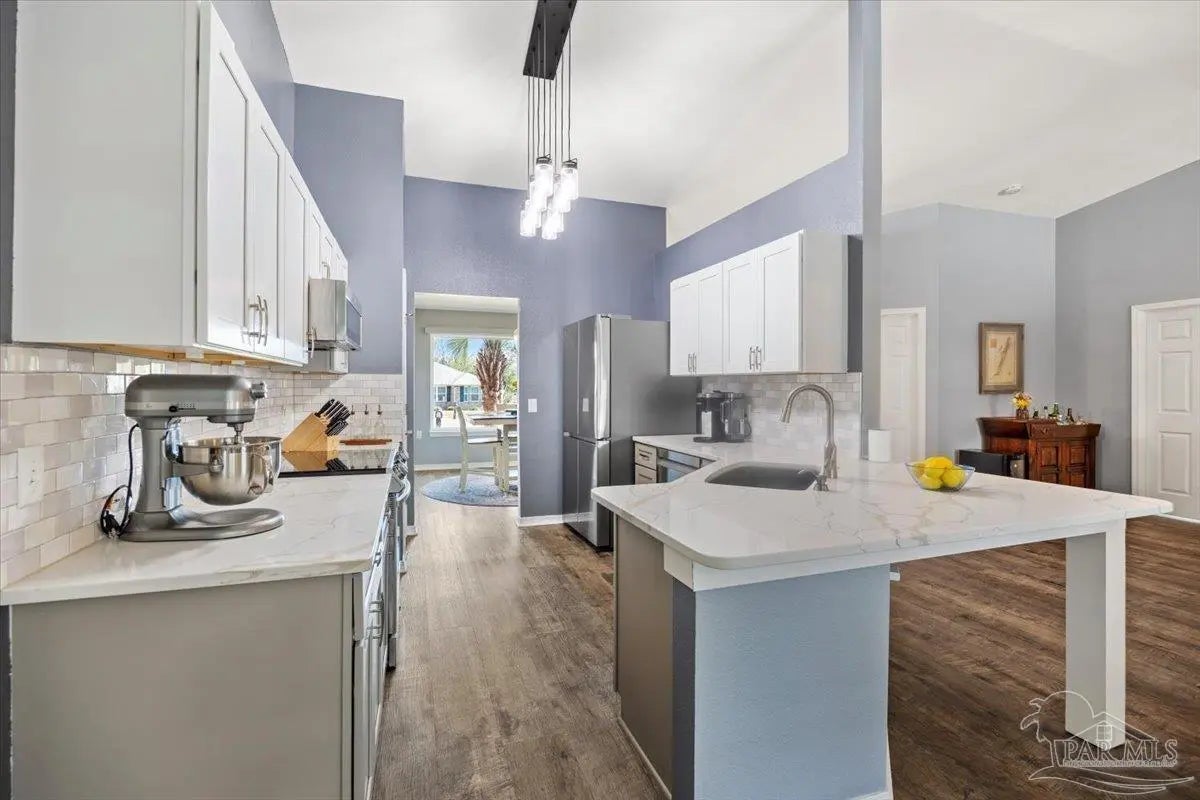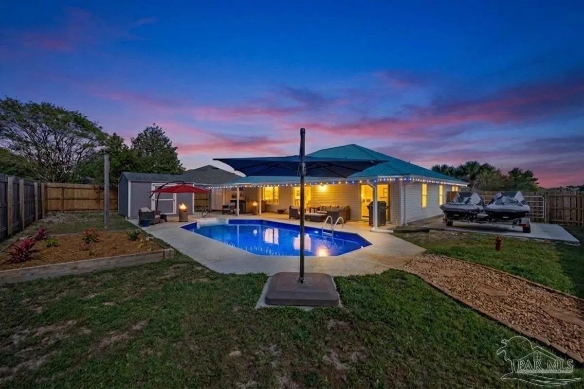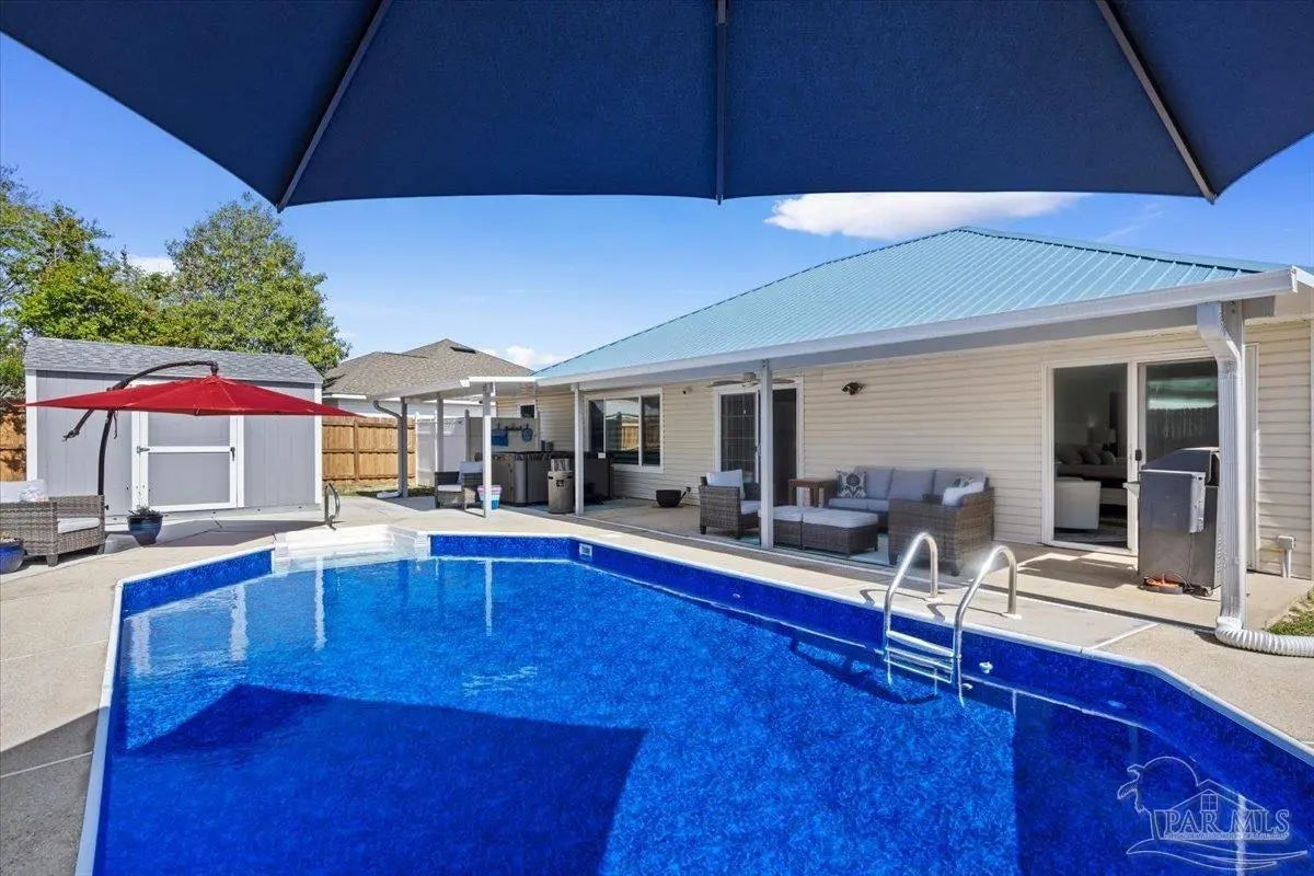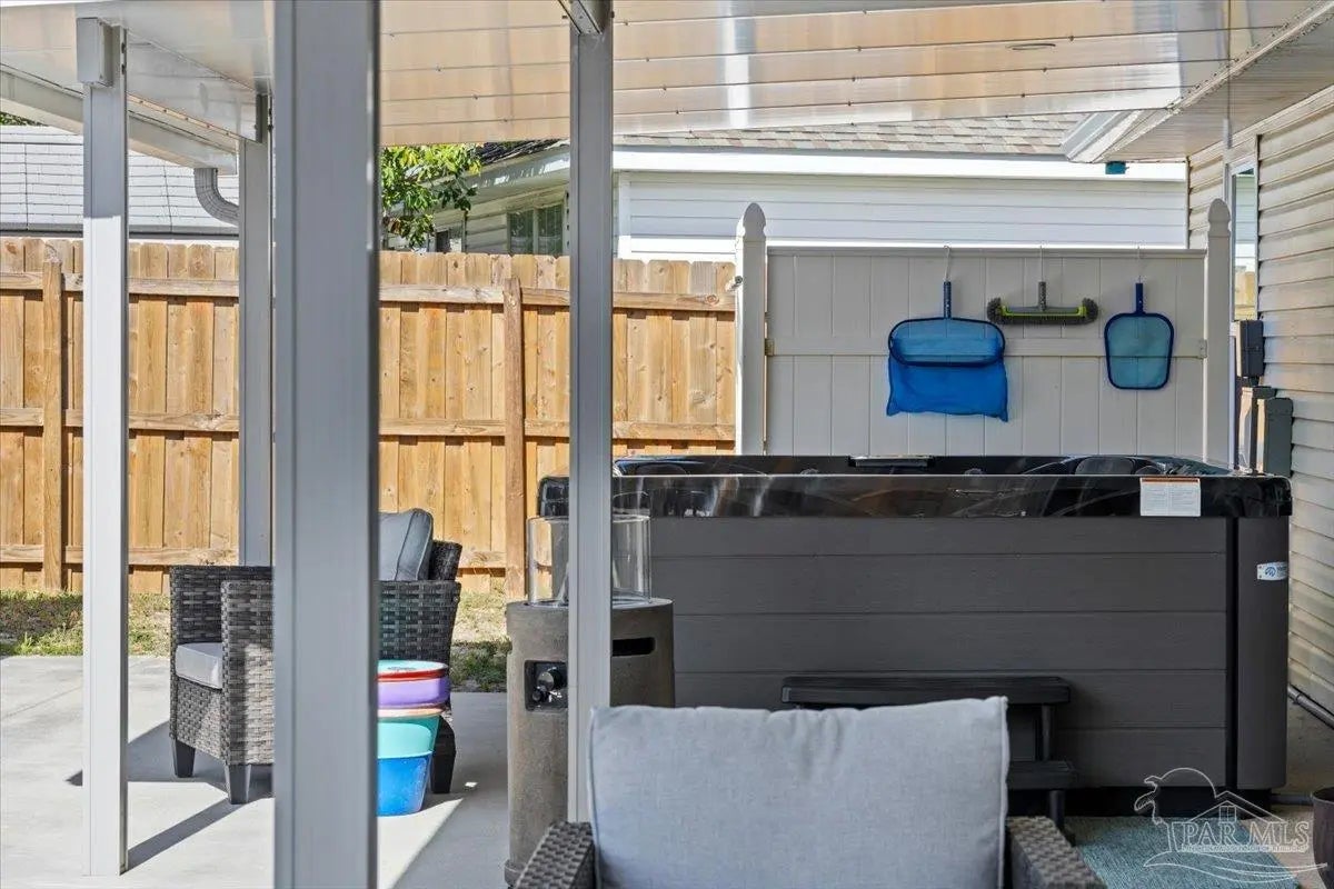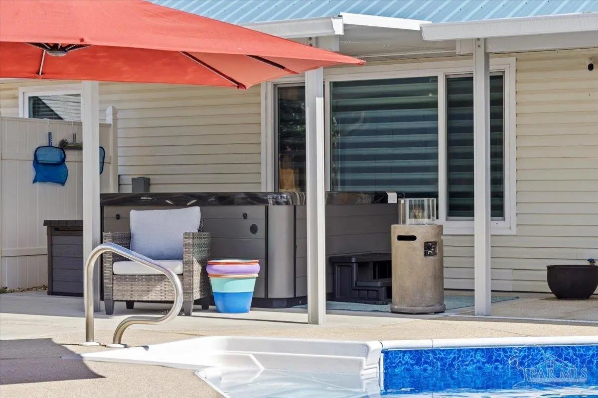 Welcome to your private coastal retreat in the highly sought-after waterfront community of Lighthouse Pointe! Situated on a spacious corner lot, this beautifully updated 4-bedroom, 2-bath pool home blends modern upgrades with effortless Florida living. Step inside to discover a bright, open living space featuring vaulted ceilings, abundant natural light, and new impact windows for peace of mind. The heart of the home is the stunning updated kitchen, complete with quartz countertops, soft-close cabinetry, and brand-new appliances—perfect for both everyday living and entertaining. A formal dining room adds versatility for gatherings and special occasions. The spacious primary suite is a true escape, showcasing a tray ceiling, dual closets, a double vanity, and a custom-tiled shower. Enjoy direct access to your backyard oasis through double sliding doors that open to the private pool with a brand-new liner-ideal for relaxing or hosting guests year-round. Step outside to your covered patio retreat, complete with a hot tub beneath a 2023-installed enclosure—offering a comfortable, shaded space to unwind, entertain, or enjoy peaceful evenings outdoors. Additional highlights include luxury vinyl plank flooring, updated bathrooms, fresh paint, modern lighting, and a Tesla charger in the garage, Govee exterior lighting. Major systems have been thoughtfully updated, including a new metal roof (2024), HVAC (2020), and water heater (2020), offering both style and long-term peace of mind. Beyond the home, Lighthouse Pointe offers an exceptional coastal lifestyle with sidewalks, underground utilities, two playgrounds, and a waterfront park complete with picnic areas, a beach, and a fishing pier on the Santa Rosa Sound. Whether you’re enjoying sunsets by the water or relaxing poolside at home, this property delivers the best of Gulf Breeze living. Don’t miss your opportunity to own a move-in-ready home in one of the area’s most desirable waterfront communities!