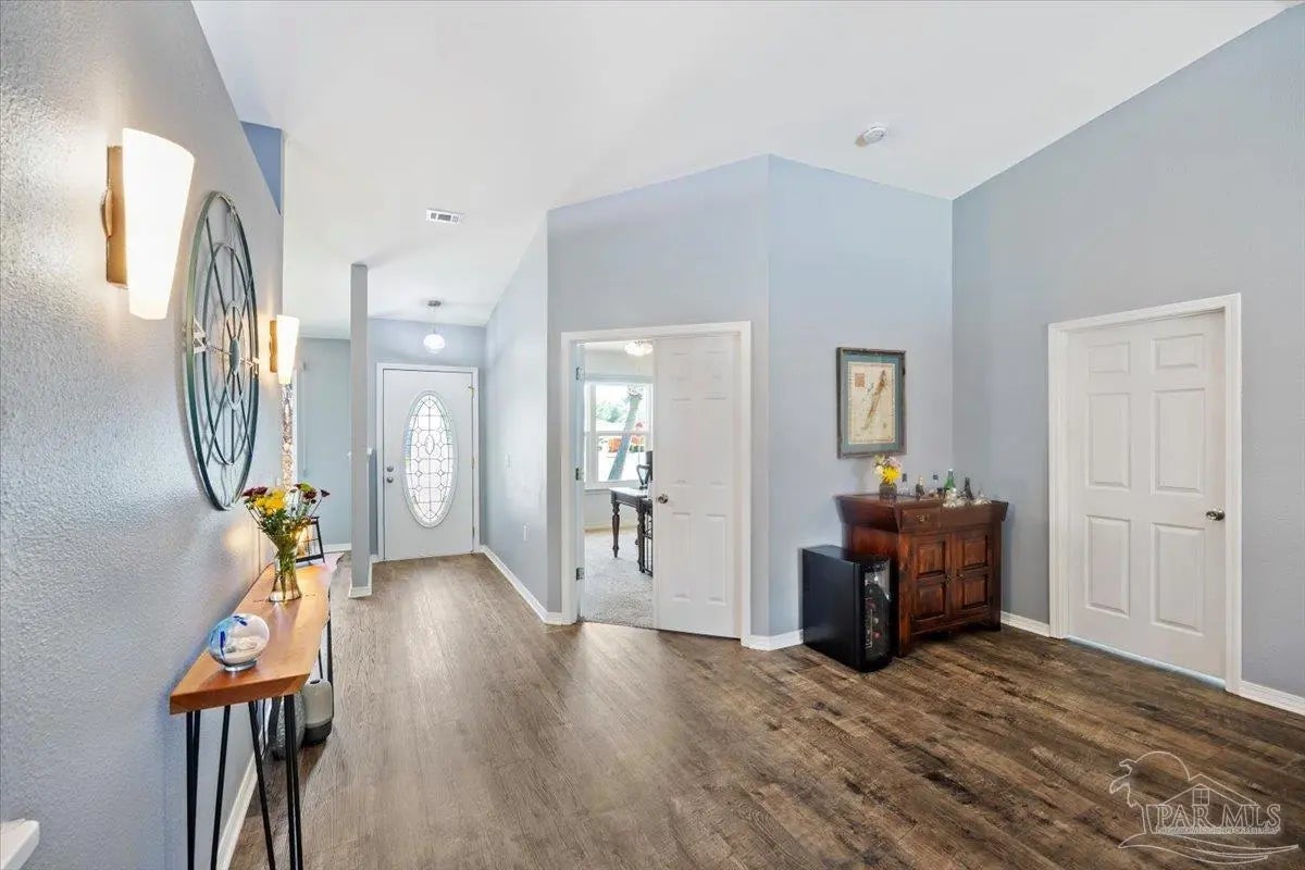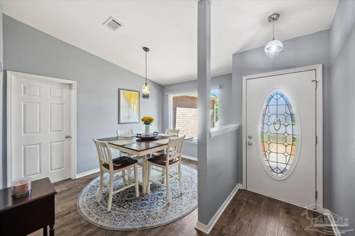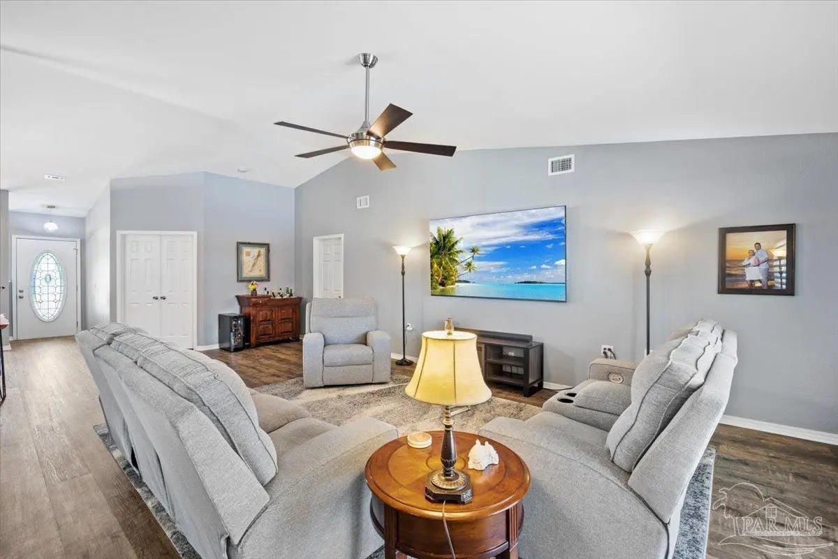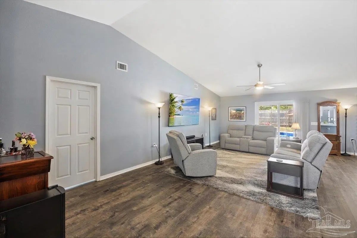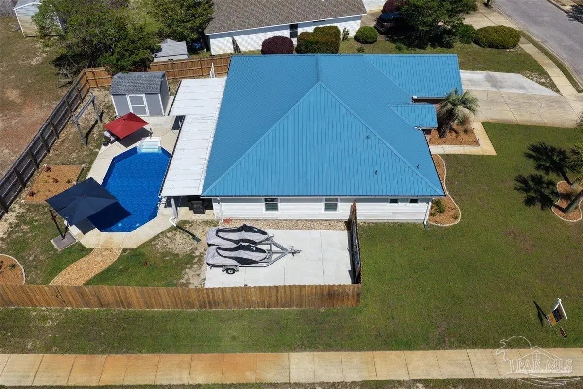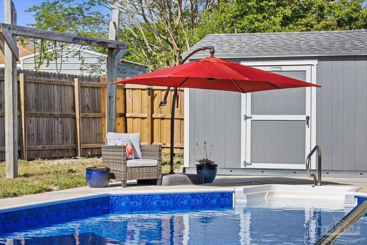 Welcome to your private coastal retreat in the highly sought-after waterfront community of Lighthouse Pointe! Situated on a spacious corner lot, this beautifully updated 4-bedroom, 2-bath pool home blends modern upgrades with effortless Florida living. Step inside to discover a bright, open living space featuring vaulted ceilings, abundant natural light, and new impact windows for peace of mind. The heart of the home is the stunning updated kitchen, complete with quartz countertops, soft-close cabinetry, and brand-new appliances—perfect for both everyday living and entertaining. A formal dining room adds versatility for gatherings and special occasions. The spacious primary suite is a true escape, showcasing a tray ceiling, dual closets, a double vanity, and a custom-tiled shower. Enjoy direct access to your backyard oasis through double sliding doors that open to the private pool with a brand-new liner-ideal for relaxing or hosting guests year-round. Step outside to your covered patio retreat, complete with a hot tub beneath a 2023-installed enclosure—offering a comfortable, shaded space to unwind, entertain, or enjoy peaceful evenings outdoors. Additional highlights include luxury vinyl plank flooring, updated bathrooms, fresh paint, modern lighting, and a Tesla charger in the garage, Govee exterior lighting. Major systems have been thoughtfully updated, including a new metal roof (2024), HVAC (2020), and water heater (2020), offering both style and long-term peace of mind. Beyond the home, Lighthouse Pointe offers an exceptional coastal lifestyle with sidewalks, underground utilities, two playgrounds, and a waterfront park complete with picnic areas, a beach, and a fishing pier on the Santa Rosa Sound. Whether you’re enjoying sunsets by the water or relaxing poolside at home, this property delivers the best of Gulf Breeze living. Don’t miss your opportunity to own a move-in-ready home in one of the area’s most desirable waterfront communities!