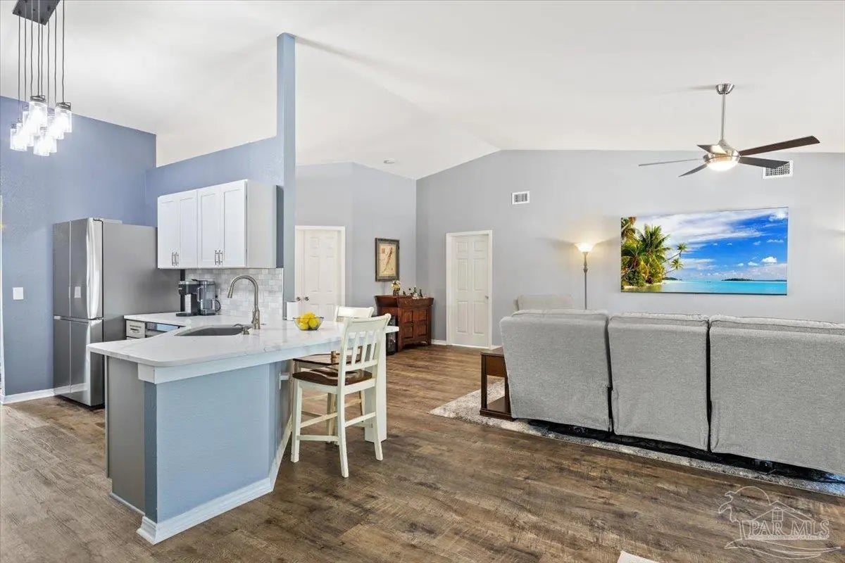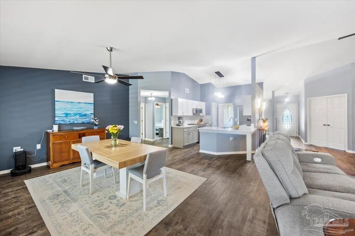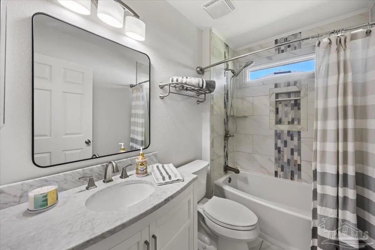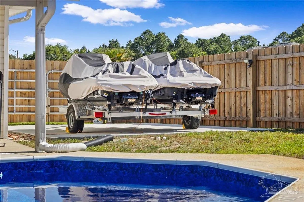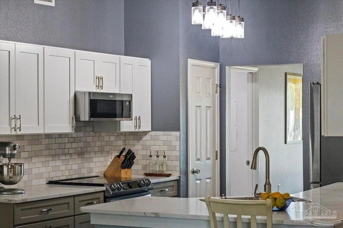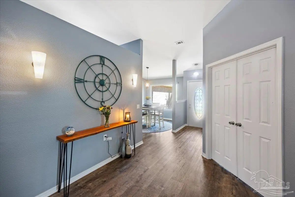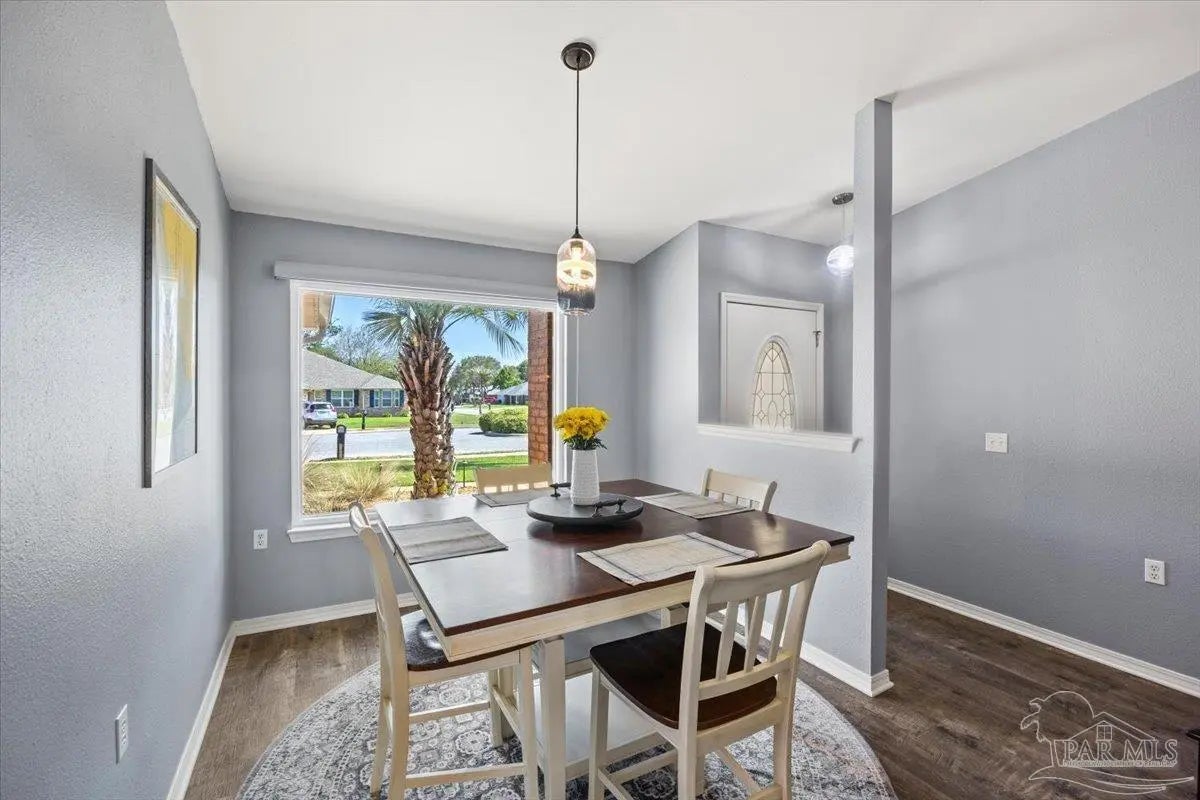 Welcome to your private coastal retreat in the highly sought-after waterfront community of Lighthouse Pointe! Situated on a spacious corner lot, this beautifully updated 4-bedroom, 2-bath pool home blends modern upgrades with effortless Florida living. Step inside to discover a bright, open living space featuring vaulted ceilings, abundant natural light, and new impact windows for peace of mind. The heart of the home is the stunning updated kitchen, complete with quartz countertops, soft-close cabinetry, and brand-new appliances—perfect for both everyday living and entertaining. A formal dining room adds versatility for gatherings and special occasions. The spacious primary suite is a true escape, showcasing a tray ceiling, dual closets, a double vanity, and a custom-tiled shower. Enjoy direct access to your backyard oasis through double sliding doors that open to the private pool with a brand-new liner-ideal for relaxing or hosting guests year-round. Step outside to your covered patio retreat, complete with a hot tub beneath a 2023-installed enclosure—offering a comfortable, shaded space to unwind, entertain, or enjoy peaceful evenings outdoors. Additional highlights include luxury vinyl plank flooring, updated bathrooms, fresh paint, modern lighting, and a Tesla charger in the garage, Govee exterior lighting. Major systems have been thoughtfully updated, including a new metal roof (2024), HVAC (2020), and water heater (2020), offering both style and long-term peace of mind. Beyond the home, Lighthouse Pointe offers an exceptional coastal lifestyle with sidewalks, underground utilities, two playgrounds, and a waterfront park complete with picnic areas, a beach, and a fishing pier on the Santa Rosa Sound. Whether you’re enjoying sunsets by the water or relaxing poolside at home, this property delivers the best of Gulf Breeze living. Don’t miss your opportunity to own a move-in-ready home in one of the area’s most desirable waterfront communities!