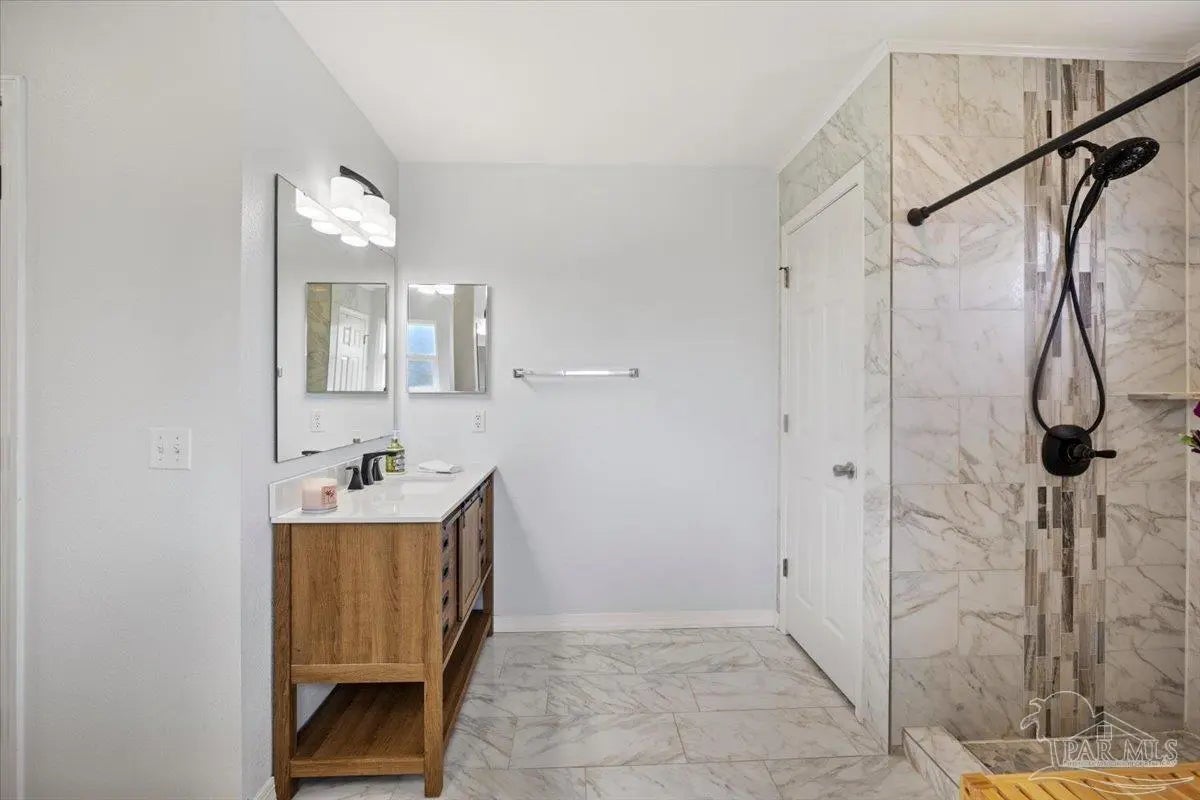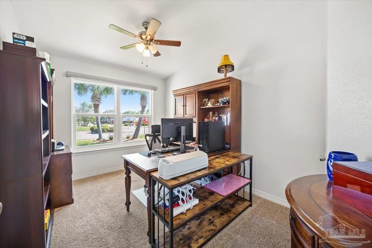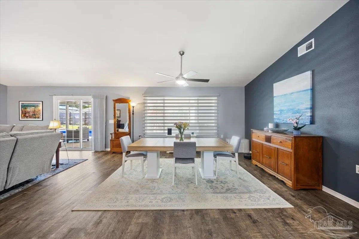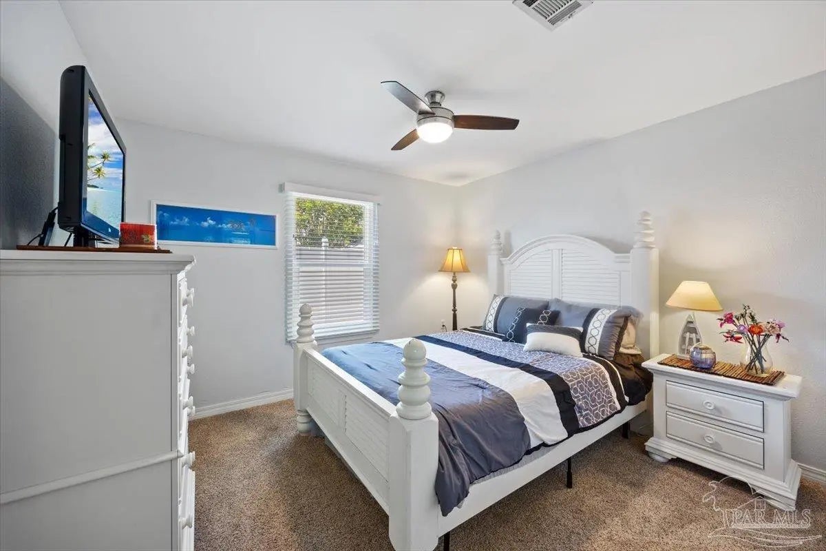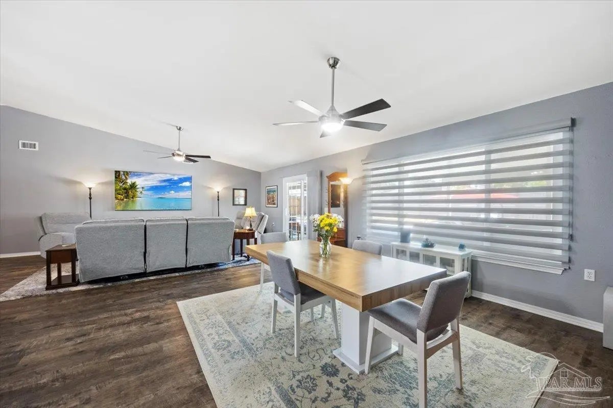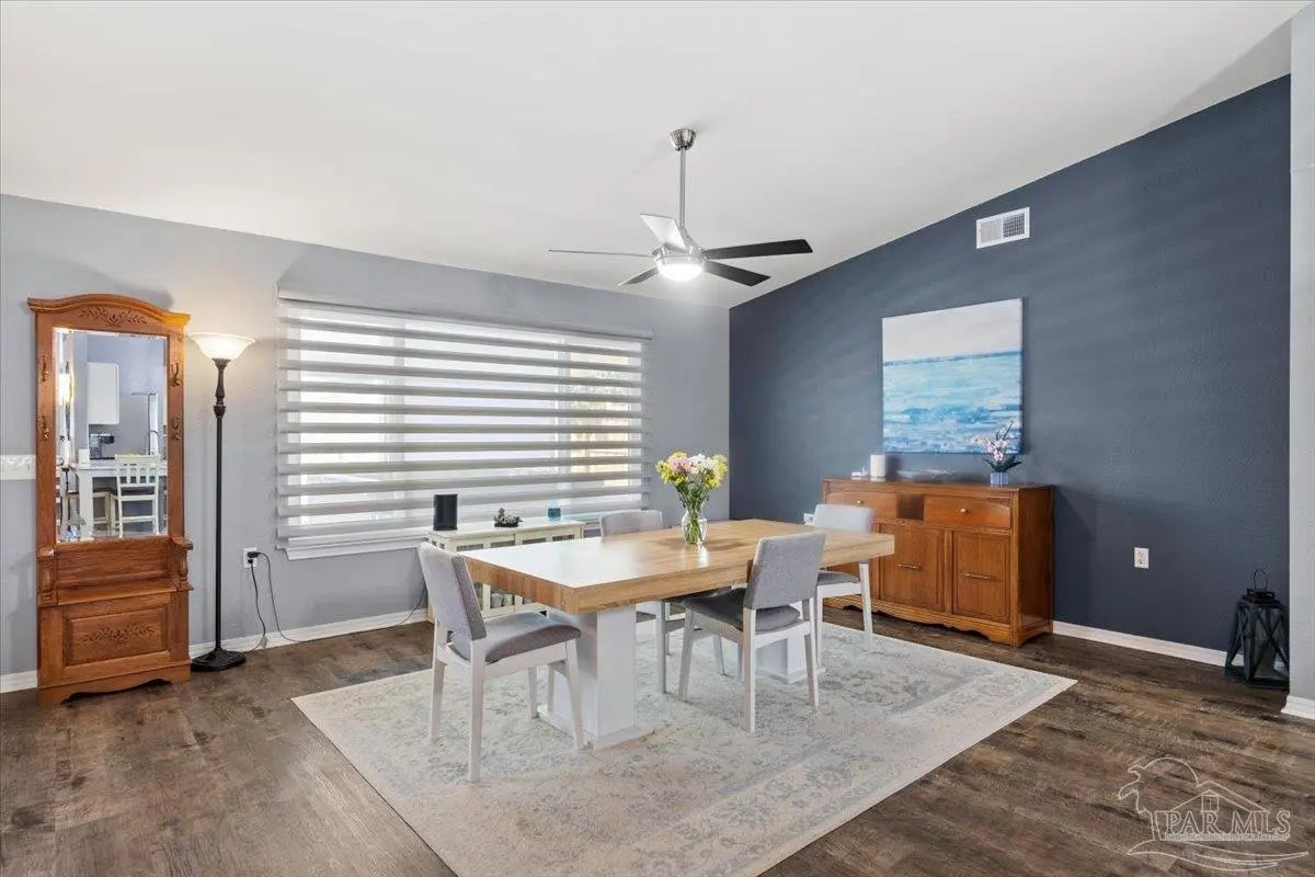 Welcome to your private coastal retreat in the highly sought-after waterfront community of Lighthouse Pointe! Situated on a spacious corner lot, this beautifully updated 4-bedroom, 2-bath pool home blends modern upgrades with effortless Florida living. Step inside to discover a bright, open living space featuring vaulted ceilings, abundant natural light, and new impact windows for peace of mind. The heart of the home is the stunning updated kitchen, complete with quartz countertops, soft-close cabinetry, and brand-new appliances—perfect for both everyday living and entertaining. A formal dining room adds versatility for gatherings and special occasions. The spacious primary suite is a true escape, showcasing a tray ceiling, dual closets, a double vanity, and a custom-tiled shower. Enjoy direct access to your backyard oasis through double sliding doors that open to the private pool with a brand-new liner-ideal for relaxing or hosting guests year-round. Step outside to your covered patio retreat, complete with a hot tub beneath a 2023-installed enclosure—offering a comfortable, shaded space to unwind, entertain, or enjoy peaceful evenings outdoors. Additional highlights include luxury vinyl plank flooring, updated bathrooms, fresh paint, modern lighting, and a Tesla charger in the garage, Govee exterior lighting. Major systems have been thoughtfully updated, including a new metal roof (2024), HVAC (2020), and water heater (2020), offering both style and long-term peace of mind. Beyond the home, Lighthouse Pointe offers an exceptional coastal lifestyle with sidewalks, underground utilities, two playgrounds, and a waterfront park complete with picnic areas, a beach, and a fishing pier on the Santa Rosa Sound. Whether you’re enjoying sunsets by the water or relaxing poolside at home, this property delivers the best of Gulf Breeze living. Don’t miss your opportunity to own a move-in-ready home in one of the area’s most desirable waterfront communities!