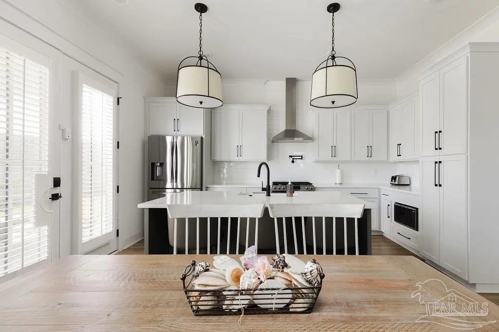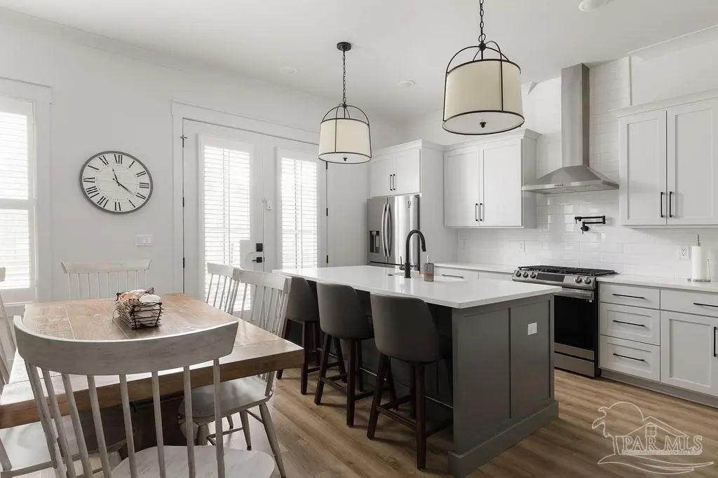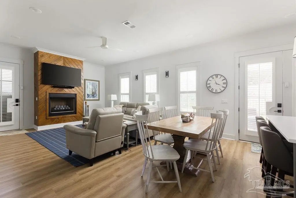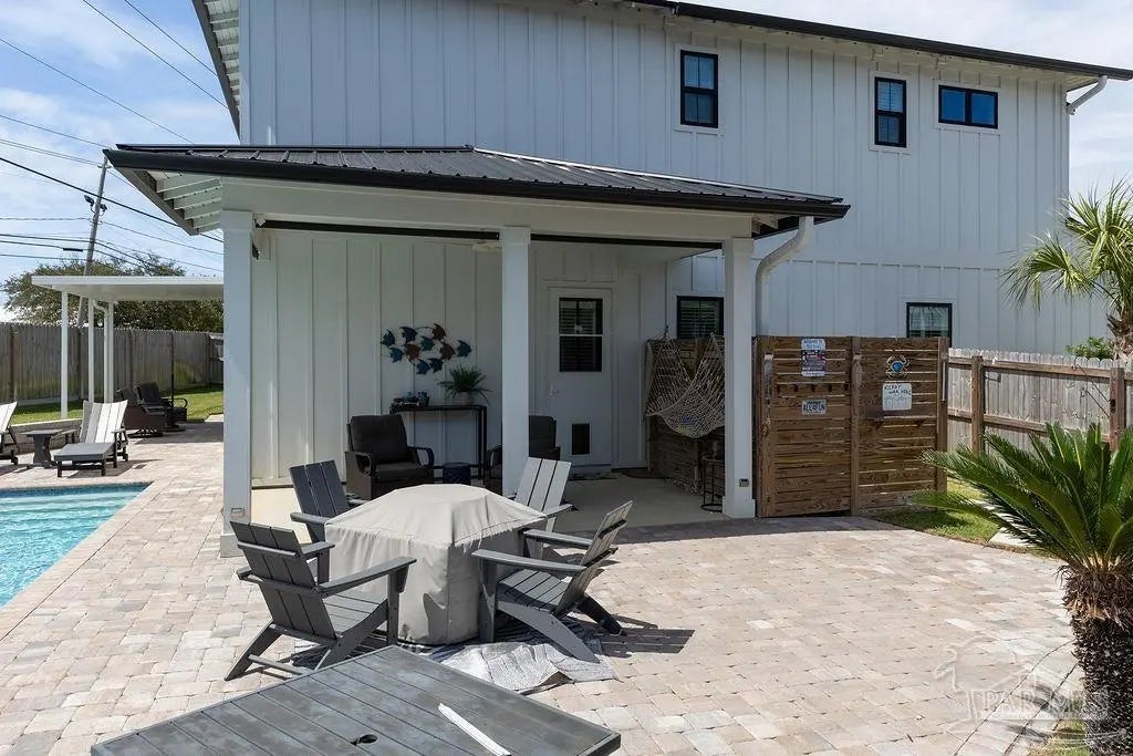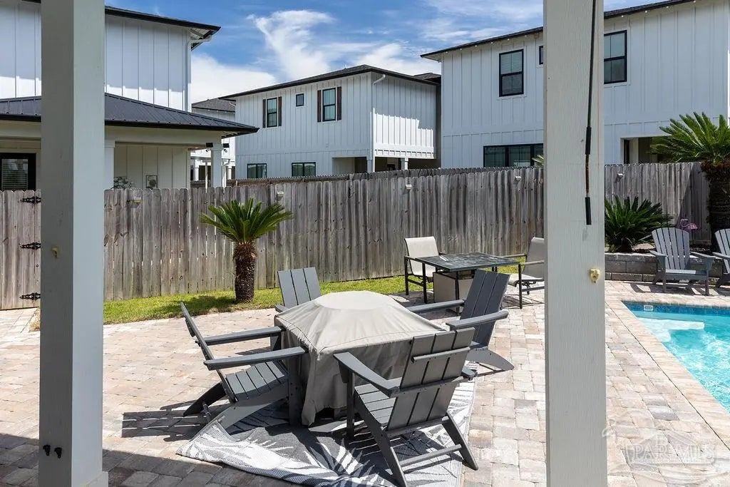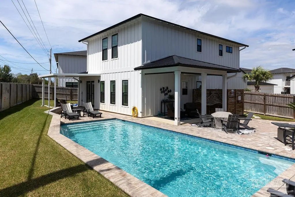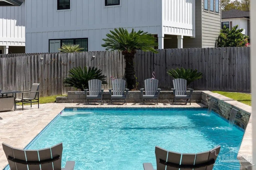 You’re going to love this private pool home in Redfish Harbor — one of only five with this special floor plan. It feels like home from the moment you walk in: bright, open spaces made for gatherings, easy flow, and thoughtful finishes. The kitchen is the heart of the house — white quartz counters, painted cabinets, a big two-tone island with room for bar seating, farmhouse sink, gas range with pot filler, and stainless appliances. Luxury vinyl plank flooring runs through the main living areas, and the living room centers on a warm herringbone wood-framed gas fireplace. There’s a bedroom and full bath on the first floor — perfect for guests, an office, or multi-generational living. Outside is a showstopper: a huge backyard with a 32' x 16' saltwater pool, three waterfalls, pavers all around, and two covered patios that make outdoor meals and relaxing easy. Upstairs, the primary suite has its own large covered balcony, a spa-like bath with a freestanding soaking tub, separate shower, private water closet, and a roomy walk-in closet. Two more bedrooms share a full bath. Redfish Harbor adds great community perks — a 45' x 25' pool, outdoor lounge with fireplace, pickleball courts, life-size chess and checkers, bocce, and a dock with wet slips for boats up to 14' wide and 40' long (4' draft). You’re just minutes from the sugar-white beaches of Perdido Key and Orange Beach, and close to shops and restaurants. For everyday convenience, Publix, CVS, Ace Hardware and local restaurants are LSV-accessible from Innerarity Point Road. This home works beautifully as a vacation spot, rental, or full-time residence — come see how comfortable life here can be.