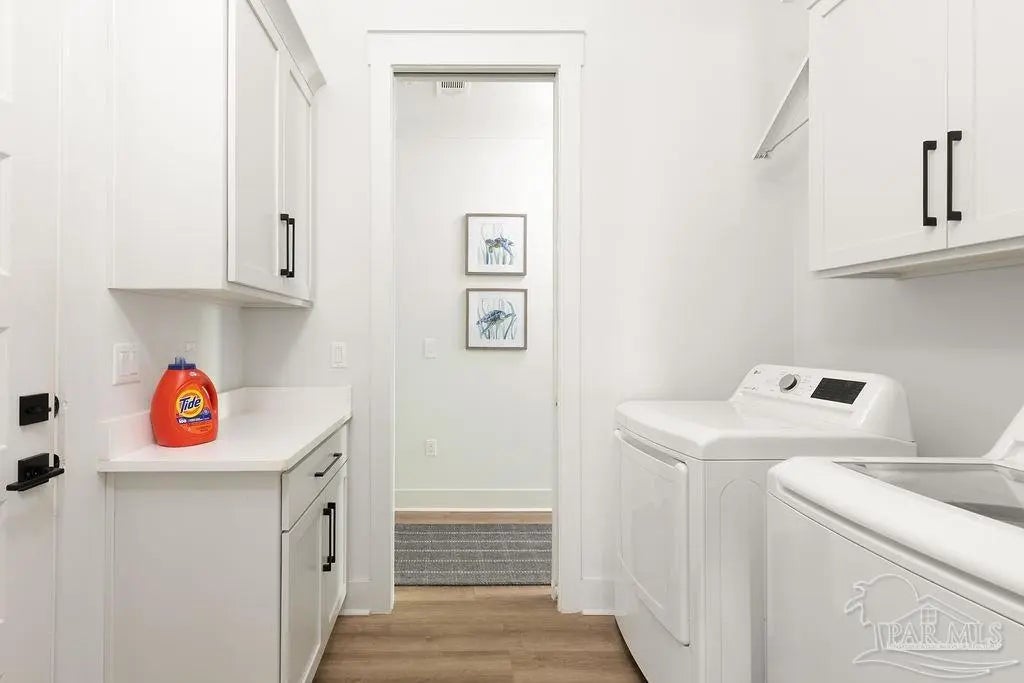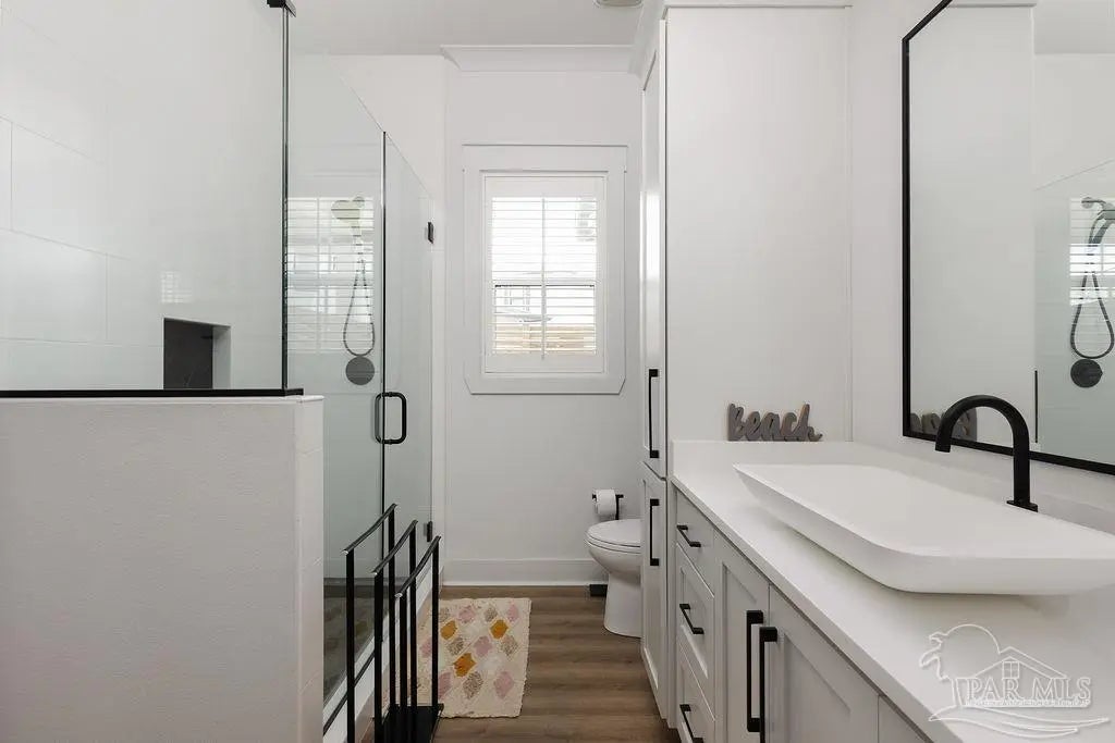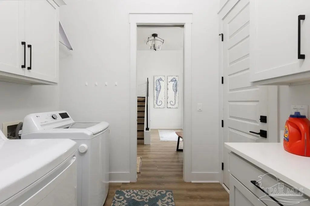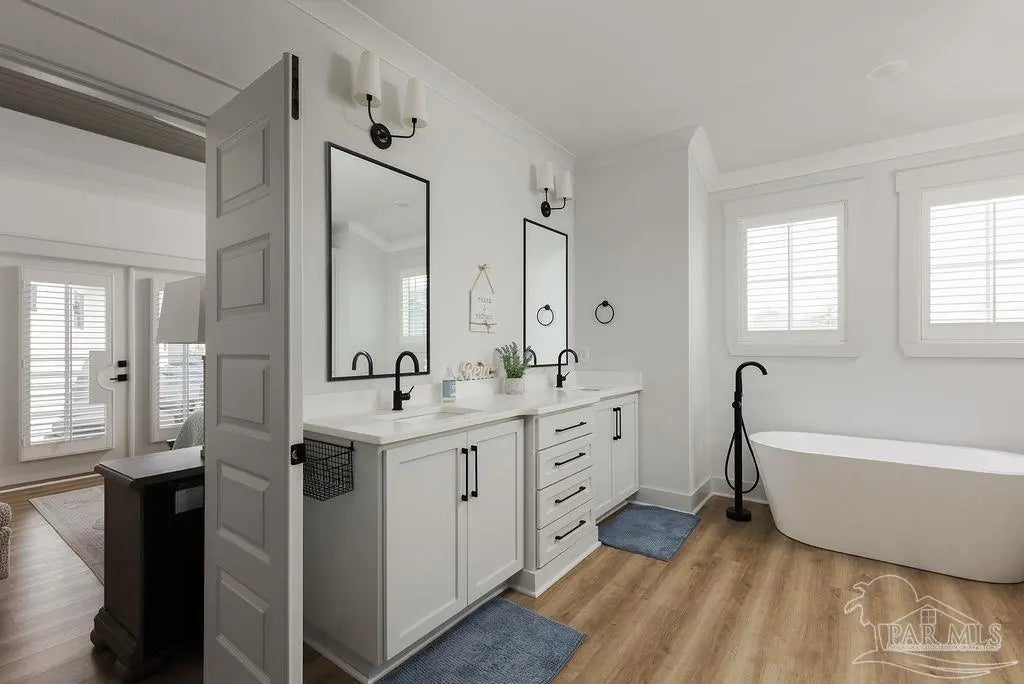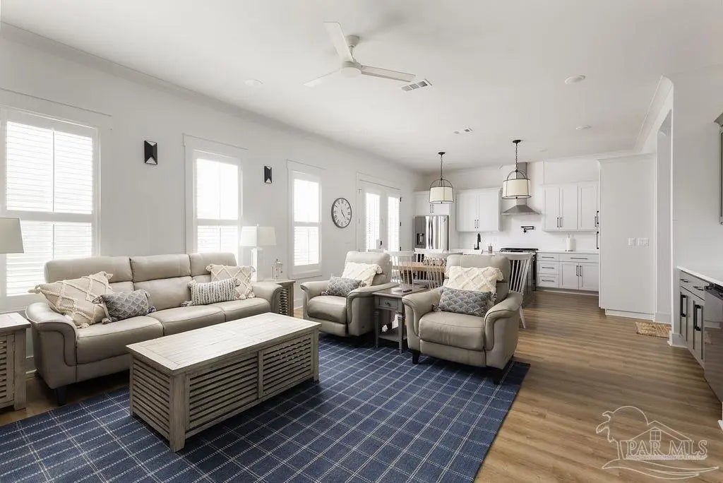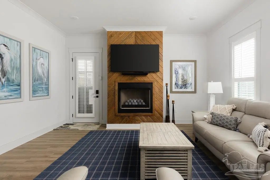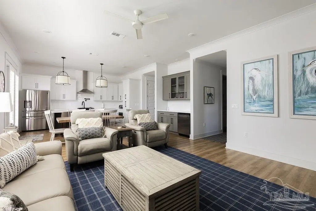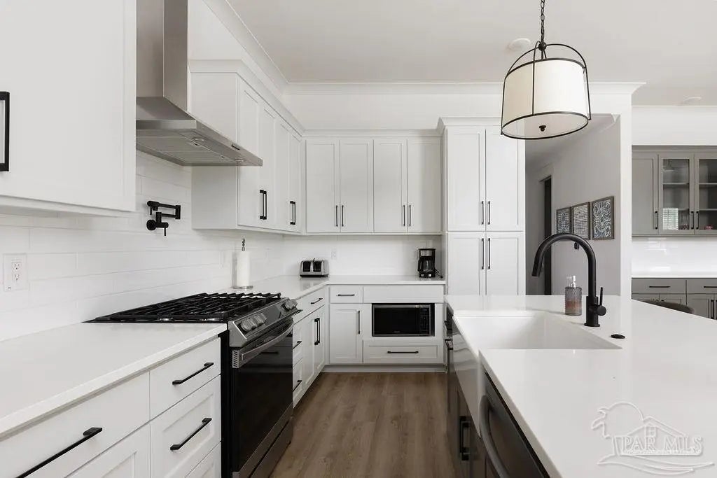 You’re going to love this private pool home in Redfish Harbor — one of only five with this special floor plan. It feels like home from the moment you walk in: bright, open spaces made for gatherings, easy flow, and thoughtful finishes. The kitchen is the heart of the house — white quartz counters, painted cabinets, a big two-tone island with room for bar seating, farmhouse sink, gas range with pot filler, and stainless appliances. Luxury vinyl plank flooring runs through the main living areas, and the living room centers on a warm herringbone wood-framed gas fireplace. There’s a bedroom and full bath on the first floor — perfect for guests, an office, or multi-generational living. Outside is a showstopper: a huge backyard with a 32' x 16' saltwater pool, three waterfalls, pavers all around, and two covered patios that make outdoor meals and relaxing easy. Upstairs, the primary suite has its own large covered balcony, a spa-like bath with a freestanding soaking tub, separate shower, private water closet, and a roomy walk-in closet. Two more bedrooms share a full bath. Redfish Harbor adds great community perks — a 45' x 25' pool, outdoor lounge with fireplace, pickleball courts, life-size chess and checkers, bocce, and a dock with wet slips for boats up to 14' wide and 40' long (4' draft). You’re just minutes from the sugar-white beaches of Perdido Key and Orange Beach, and close to shops and restaurants. For everyday convenience, Publix, CVS, Ace Hardware and local restaurants are LSV-accessible from Innerarity Point Road. This home works beautifully as a vacation spot, rental, or full-time residence — come see how comfortable life here can be.