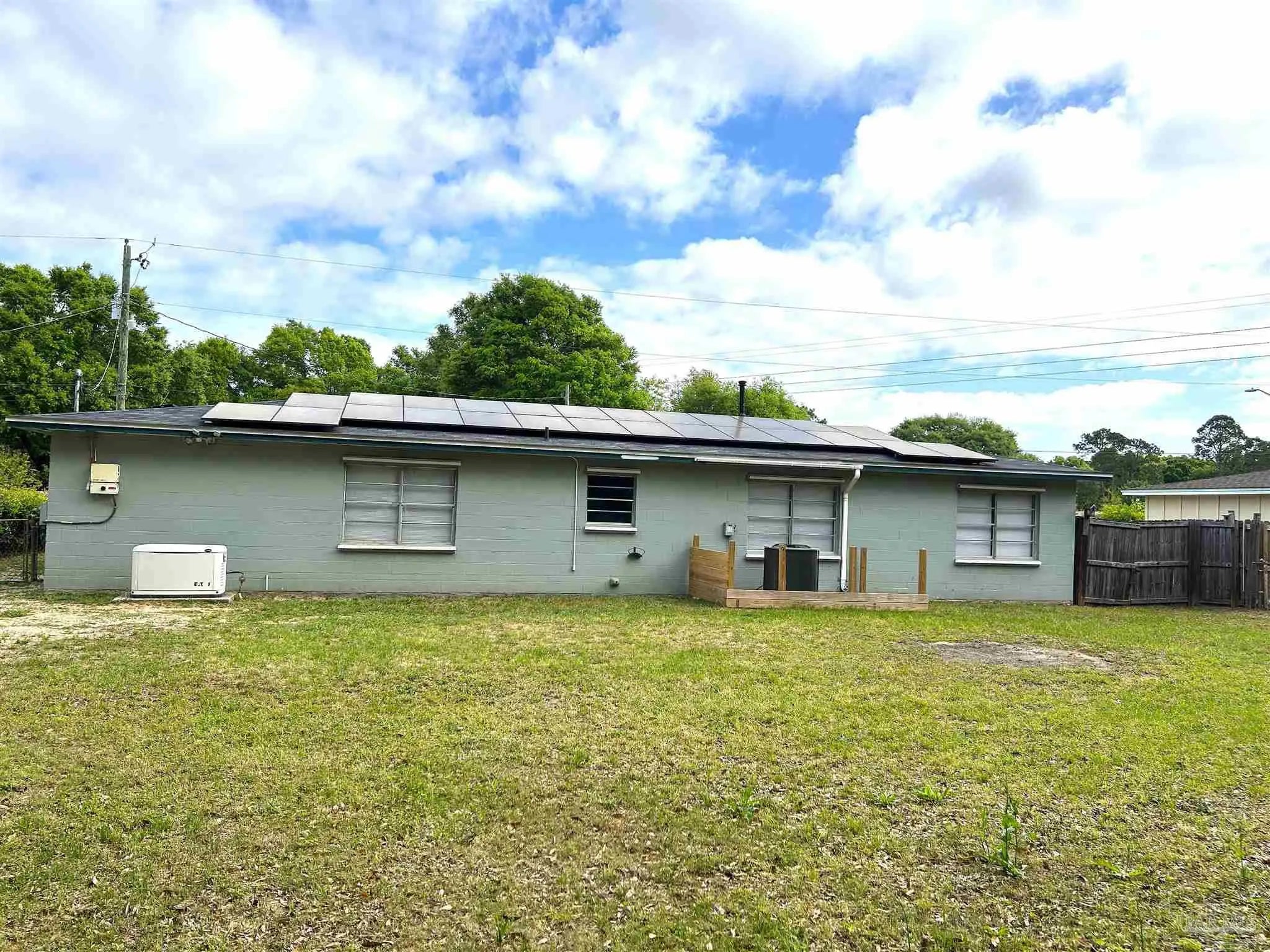 Welcome to this 4-bedroom, 1.5-bath home offering approximately 1,300 square feet of comfortable living space on a generous 0.23-acre lot. With thoughtful updates throughout and a spacious fenced backyard, this home is perfect for relaxing, entertaining, or enjoying outdoor activities. Inside, you’ll find recent improvements including new bathroom vanities and fixtures in the full and half bath, stylish new tile tub/shower with new shower head, new blinds throughout, giving the home a fresh, modern feel. The kitchen includes an electric stove, dishwasher, new kitchen sink faucet and the refrigerator will convey with the home. The property also features copper wiring and an HVAC system replaced just a few years ago, providing reliability and comfort year-round. The roof was replaced in 2022, offering added peace of mind. Energy efficiency is a big bonus here, the seller will pay off the solar panels at closing, allowing the new owner to enjoy lower energy costs without the added expense. Outside, the carport includes an enclosed storage room, ideal for tools, equipment, or additional storage and includes a washer/dryer area. The large, fenced yard provides plenty of space for pets, gardening, or outdoor gatherings. There is a generator which will require a new brain board due to a lightening strike.