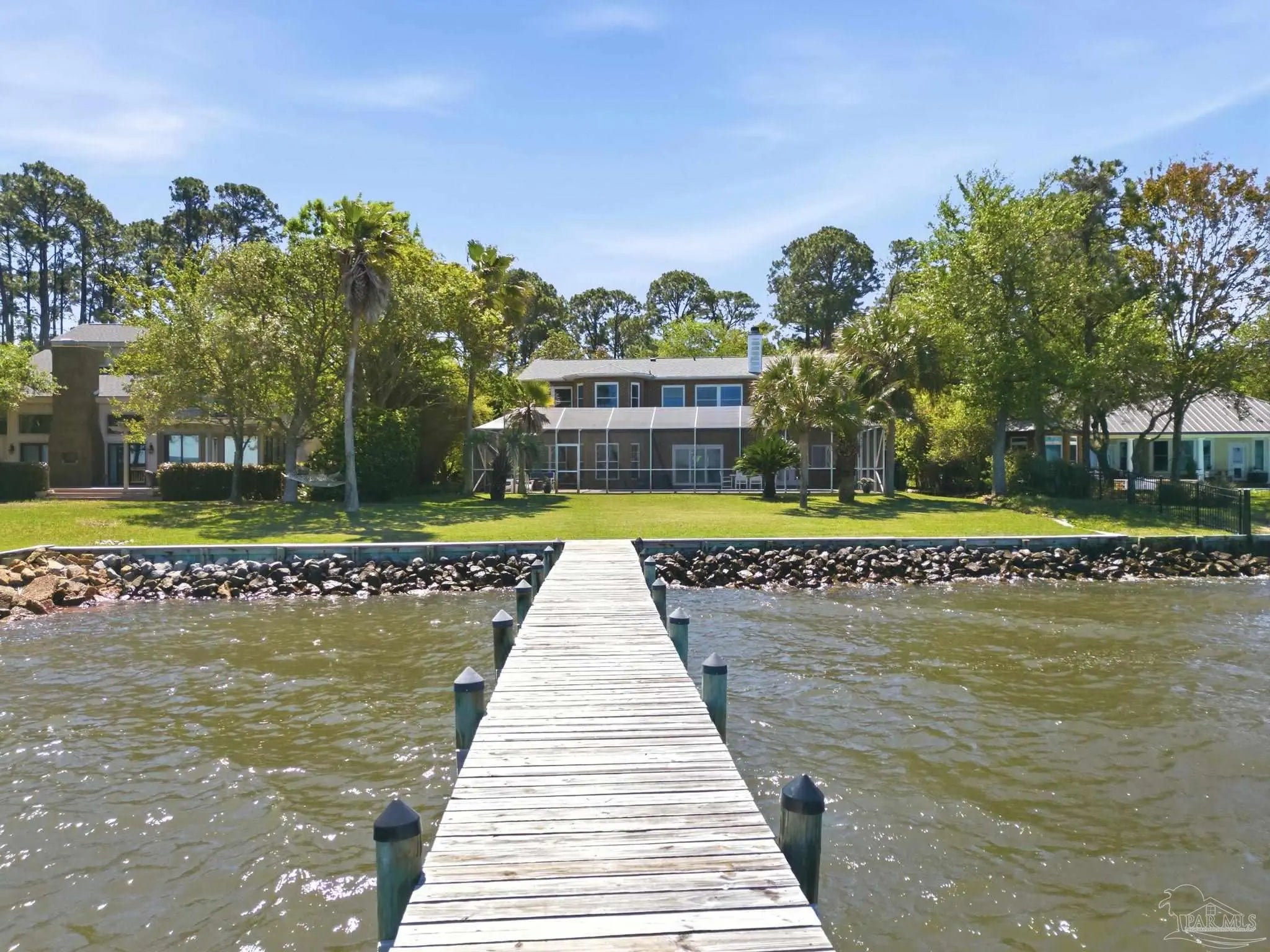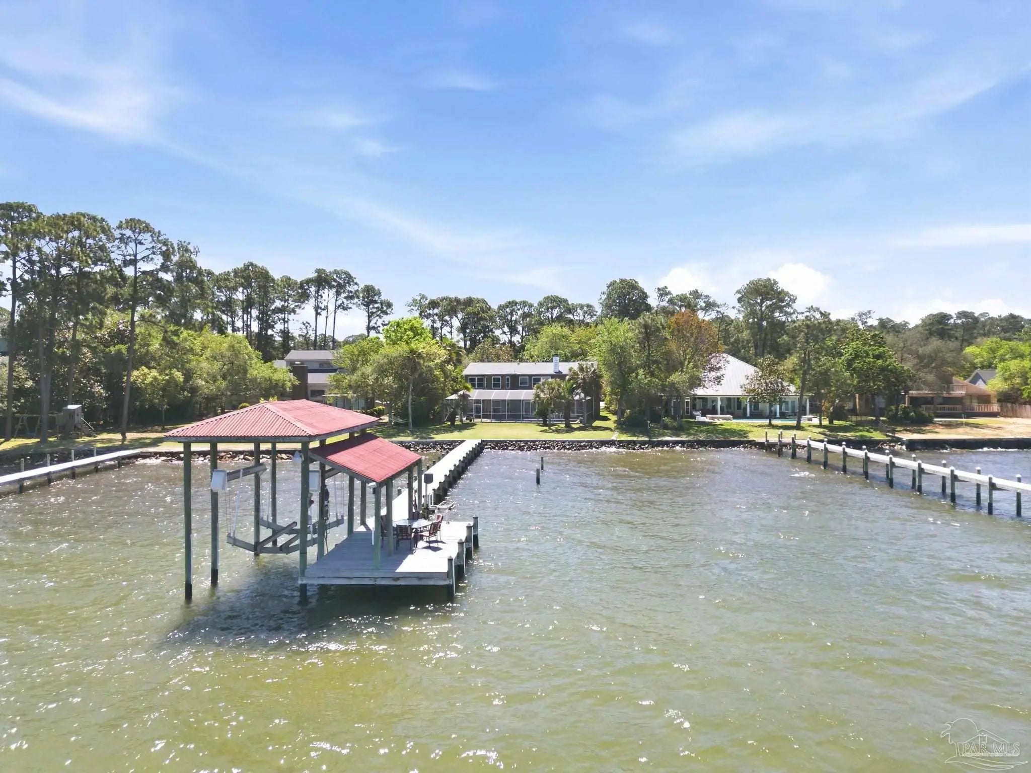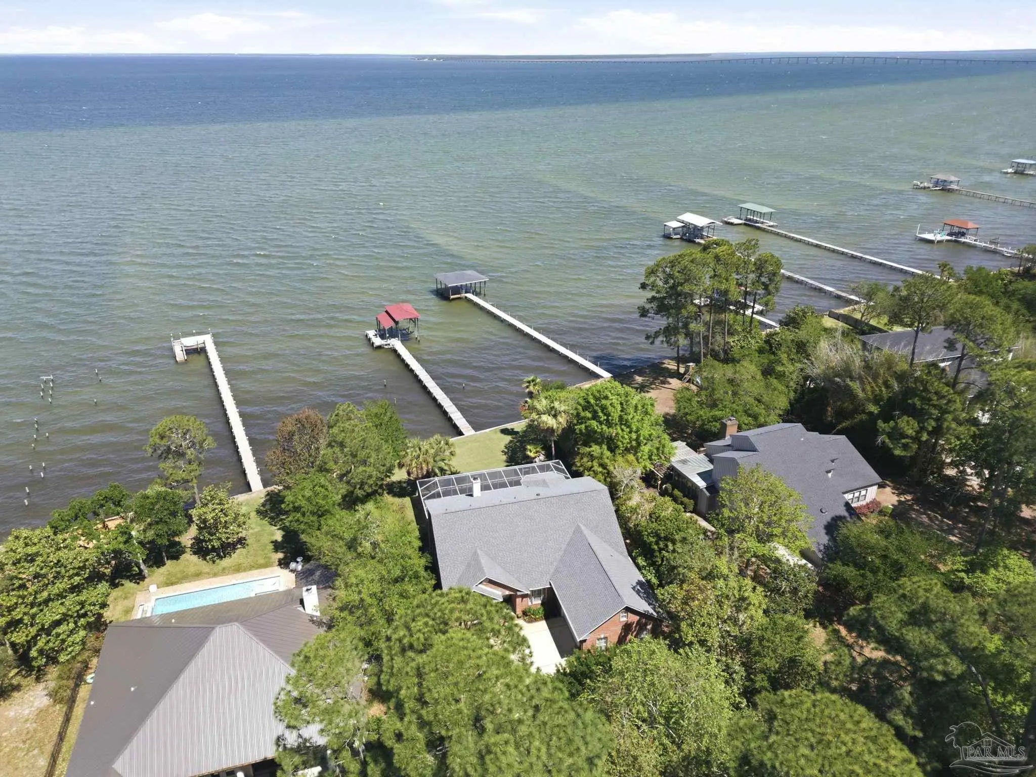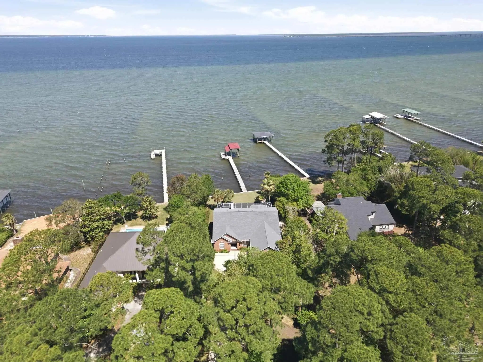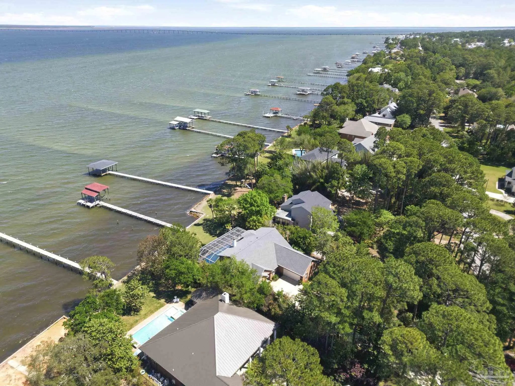 Luxury Waterfront Living with Panoramic Bay Views Just Imagine waking up every morning in this dream house to see pelicans and dolphins playing in the sparkling bay. This stunning custom-built waterfront estate is ideally situated at the end of a quiet cul-de-sac in the Gulf Breeze school district. This exceptional well-maintained two-story beauty offers breathtaking, unobstructed views of Pensacola Bay and combines classic design with modern luxury and updates. Step through the grand foyer and immediately appreciate the elegance of brushed marble flooring that is installed throughout the first level. The spacious family room, anchored by a cozy fireplace, has breathtaking views of the bay and joins seamlessly into a large gourmet kitchen planned by a professional designer perfect for cooking and entertaining. The chef’s kitchen is truly impressive, featuring a Viking gas range, built-in Thermador microwave, double ovens, and an expansive walk-in pantry. The east side of the kitchen has a comfortable sitting area along with an intimate dining nook, all overlooking the sparkling pool and expansive 1,600-square-foot screened enclosure. Enjoy spectacular sunsets and sweeping water views, including three iconic bridges, from nearly every angle. Outdoor living is unmatched with a 150-foot private dock and ten-thousand-pound boat lift —ideal for boating, fishing, and embracing the waterfront lifestyle. The first floor also offers a versatile fourth bedroom or office, a full bath, and a spacious sunroom with private access to the pool area perfect for guests or a private retreat. The luxurious primary suite features a serene sitting area with bay views and a well-appointed ensuite bath complete with double vanities, a jetted garden tub, and a separate shower. Two additional bedrooms share a Jack-and-Jill bath and boast beautiful water views. Recent updates include a new roof (2021) and HVAC system (2022), and second floor impact windows. Open House Sat 4/18 1:00 - 3:00