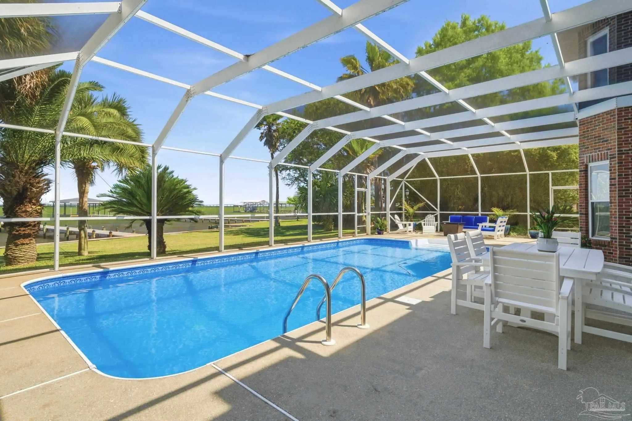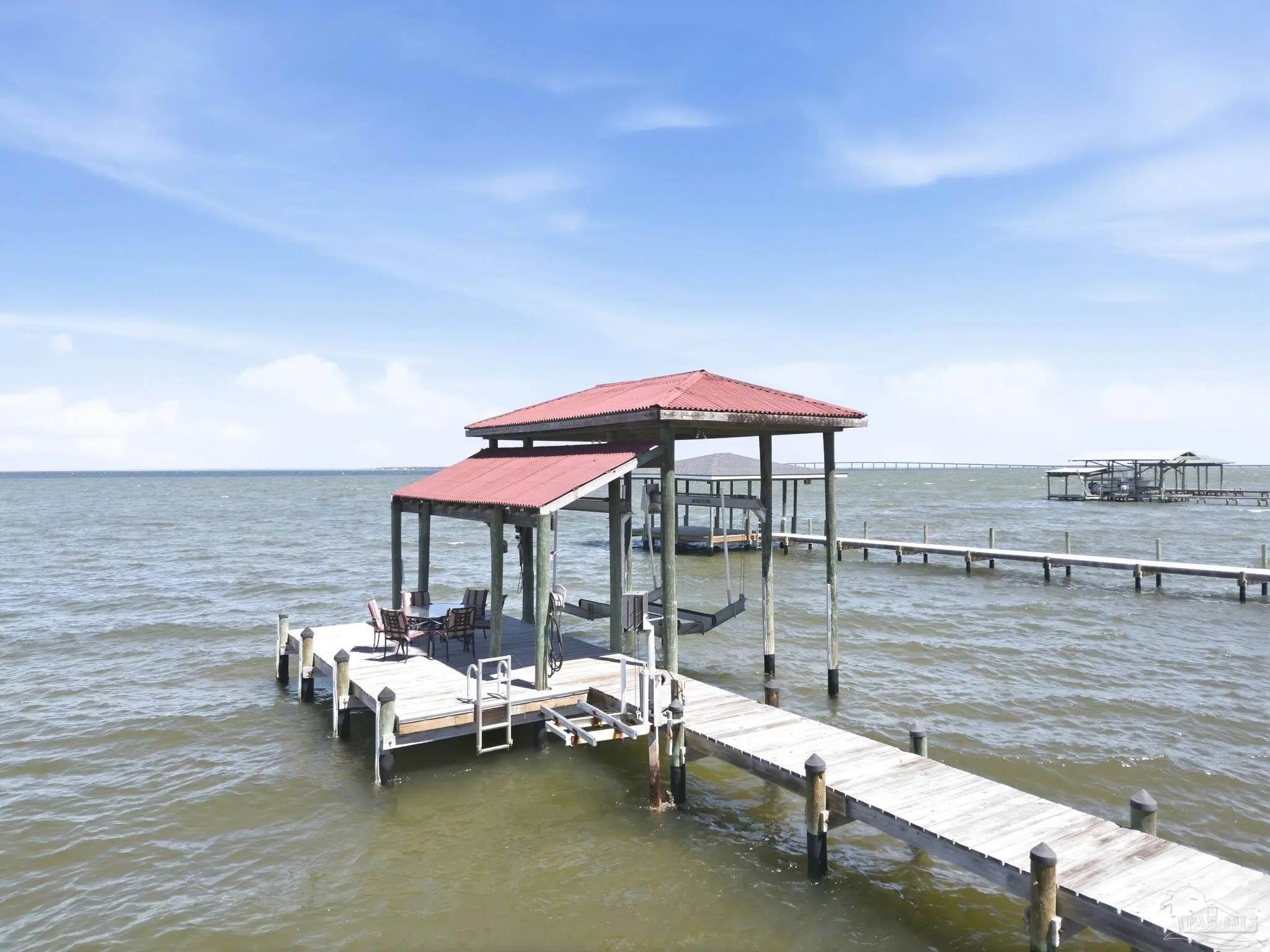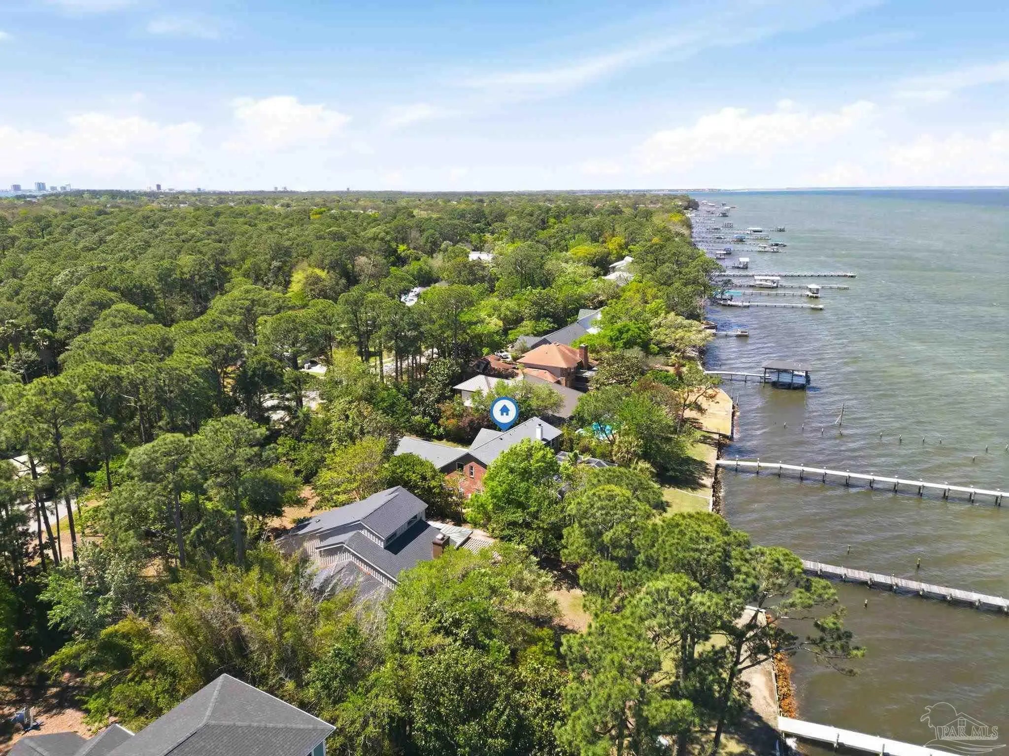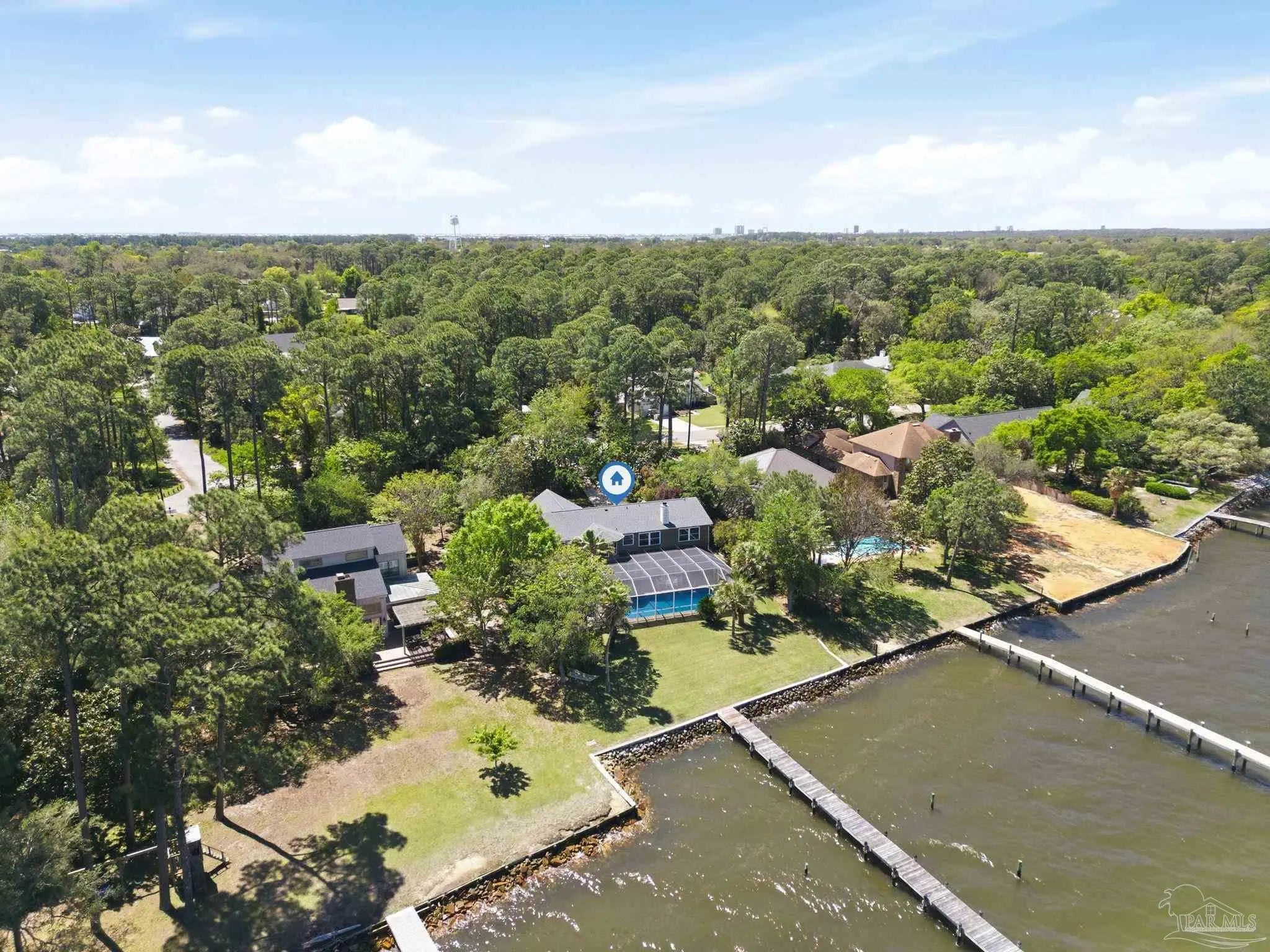 Luxury Waterfront Living with Panoramic Bay Views Just Imagine waking up every morning in this dream house to see pelicans and dolphins playing in the sparkling bay. This stunning custom-built waterfront estate is ideally situated at the end of a quiet cul-de-sac in the Gulf Breeze school district. This exceptional well-maintained two-story beauty offers breathtaking, unobstructed views of Pensacola Bay and combines classic design with modern luxury and updates. Step through the grand foyer and immediately appreciate the elegance of brushed marble flooring that is installed throughout the first level. The spacious family room, anchored by a cozy fireplace, has breathtaking views of the bay and joins seamlessly into a large gourmet kitchen planned by a professional designer perfect for cooking and entertaining. The chef’s kitchen is truly impressive, featuring a Viking gas range, built-in Thermador microwave, double ovens, and an expansive walk-in pantry. The east side of the kitchen has a comfortable sitting area along with an intimate dining nook, all overlooking the sparkling pool and expansive 1,600-square-foot screened enclosure. Enjoy spectacular sunsets and sweeping water views, including three iconic bridges, from nearly every angle. Outdoor living is unmatched with a 150-foot private dock and ten-thousand-pound boat lift —ideal for boating, fishing, and embracing the waterfront lifestyle. The first floor also offers a versatile fourth bedroom or office, a full bath, and a spacious sunroom with private access to the pool area perfect for guests or a private retreat. The luxurious primary suite features a serene sitting area with bay views and a well-appointed ensuite bath complete with double vanities, a jetted garden tub, and a separate shower. Two additional bedrooms share a Jack-and-Jill bath and boast beautiful water views. Recent updates include a new roof (2021) and HVAC system (2022), and second floor impact windows. Open House Sat 4/18 1:00 - 3:00