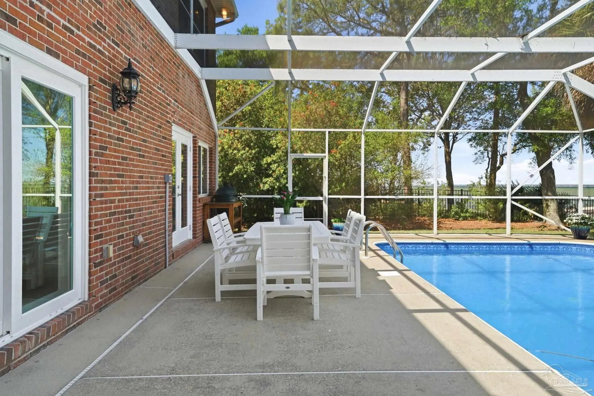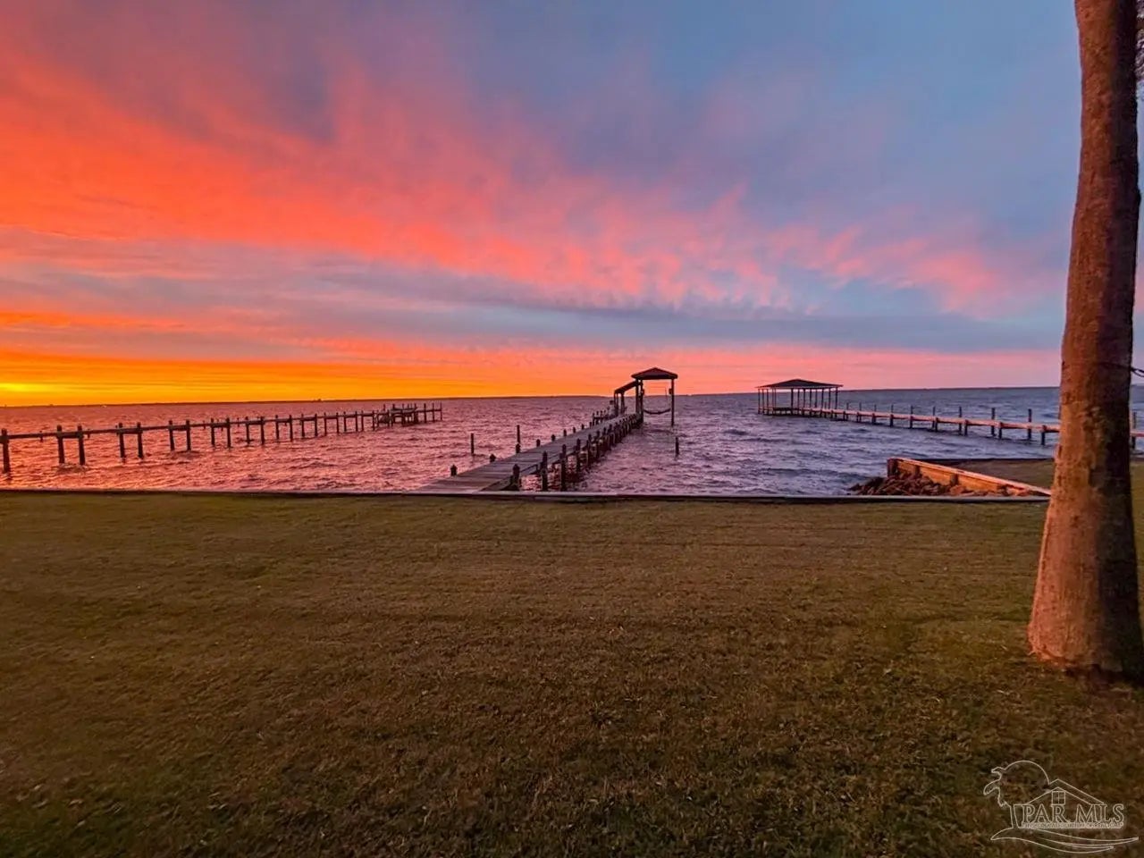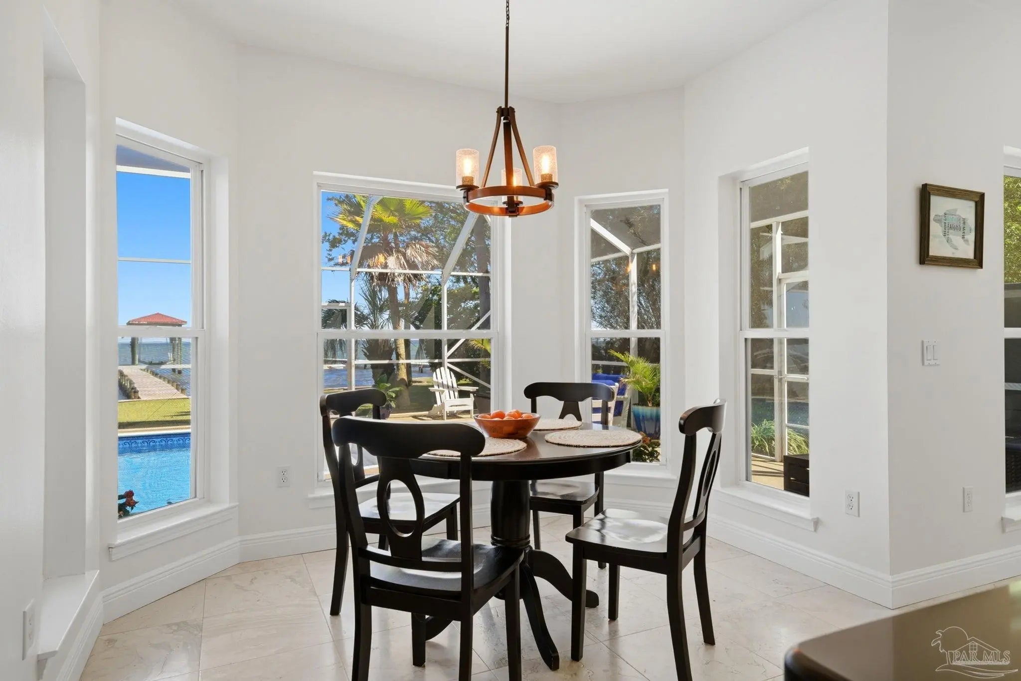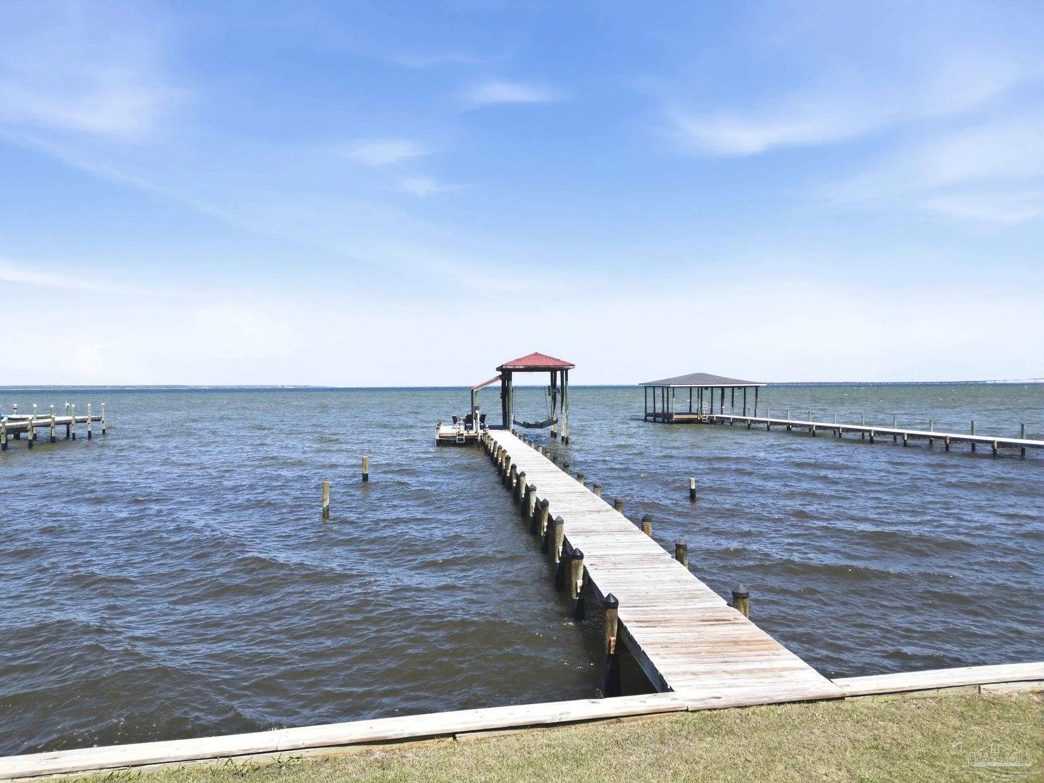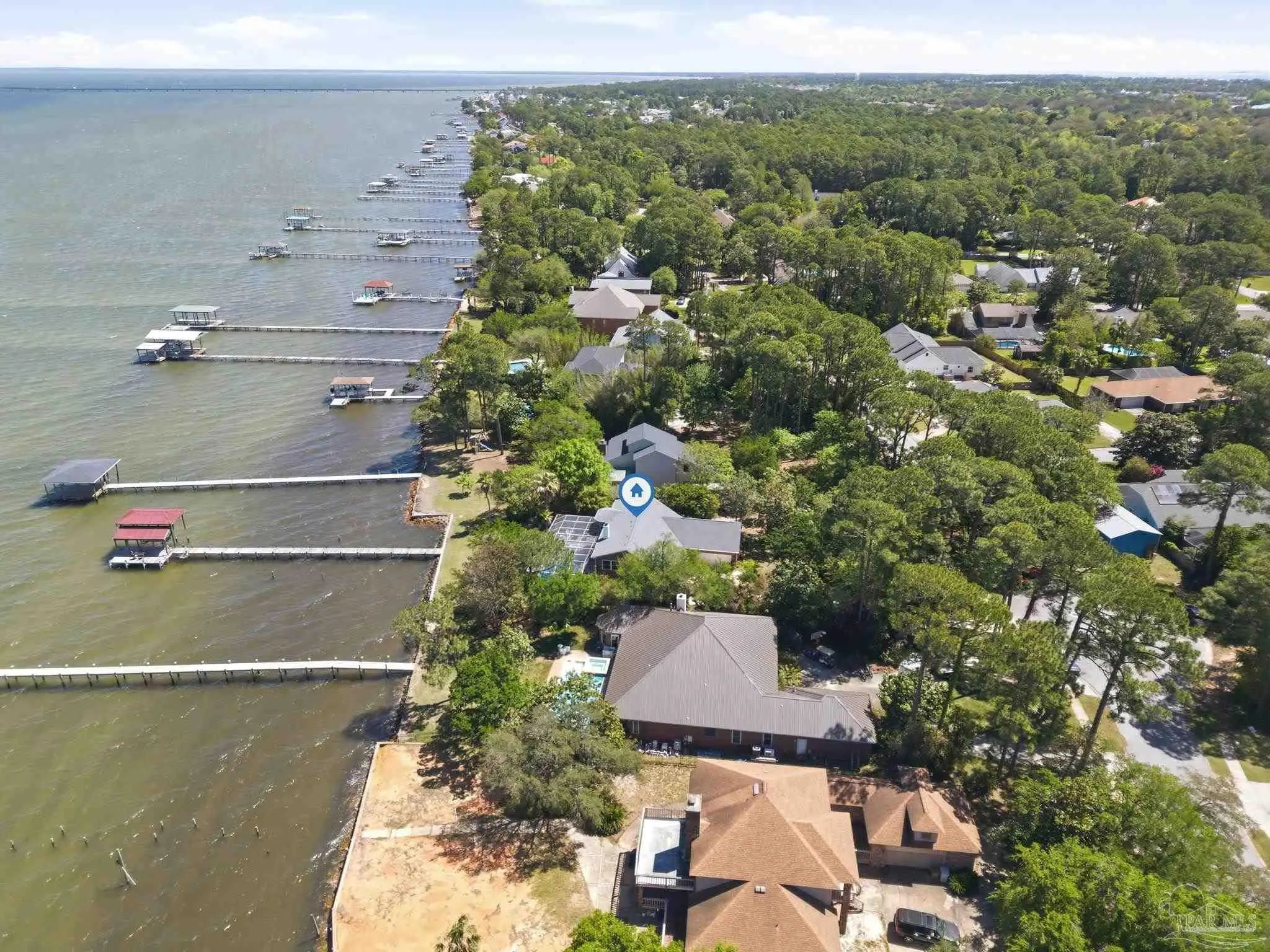 Luxury Waterfront Living with Panoramic Bay Views Just Imagine waking up every morning in this dream house to see pelicans and dolphins playing in the sparkling bay. This stunning custom-built waterfront estate is ideally situated at the end of a quiet cul-de-sac in the Gulf Breeze school district. This exceptional well-maintained two-story beauty offers breathtaking, unobstructed views of Pensacola Bay and combines classic design with modern luxury and updates. Step through the grand foyer and immediately appreciate the elegance of brushed marble flooring that is installed throughout the first level. The spacious family room, anchored by a cozy fireplace, has breathtaking views of the bay and joins seamlessly into a large gourmet kitchen planned by a professional designer perfect for cooking and entertaining. The chef’s kitchen is truly impressive, featuring a Viking gas range, built-in Thermador microwave, double ovens, and an expansive walk-in pantry. The east side of the kitchen has a comfortable sitting area along with an intimate dining nook, all overlooking the sparkling pool and expansive 1,600-square-foot screened enclosure. Enjoy spectacular sunsets and sweeping water views, including three iconic bridges, from nearly every angle. Outdoor living is unmatched with a 150-foot private dock and ten-thousand-pound boat lift —ideal for boating, fishing, and embracing the waterfront lifestyle. The first floor also offers a versatile fourth bedroom or office, a full bath, and a spacious sunroom with private access to the pool area perfect for guests or a private retreat. The luxurious primary suite features a serene sitting area with bay views and a well-appointed ensuite bath complete with double vanities, a jetted garden tub, and a separate shower. Two additional bedrooms share a Jack-and-Jill bath and boast beautiful water views. Recent updates include a new roof (2021) and HVAC system (2022), and second floor impact windows. Open House Sat 4/18 1:00 - 3:00