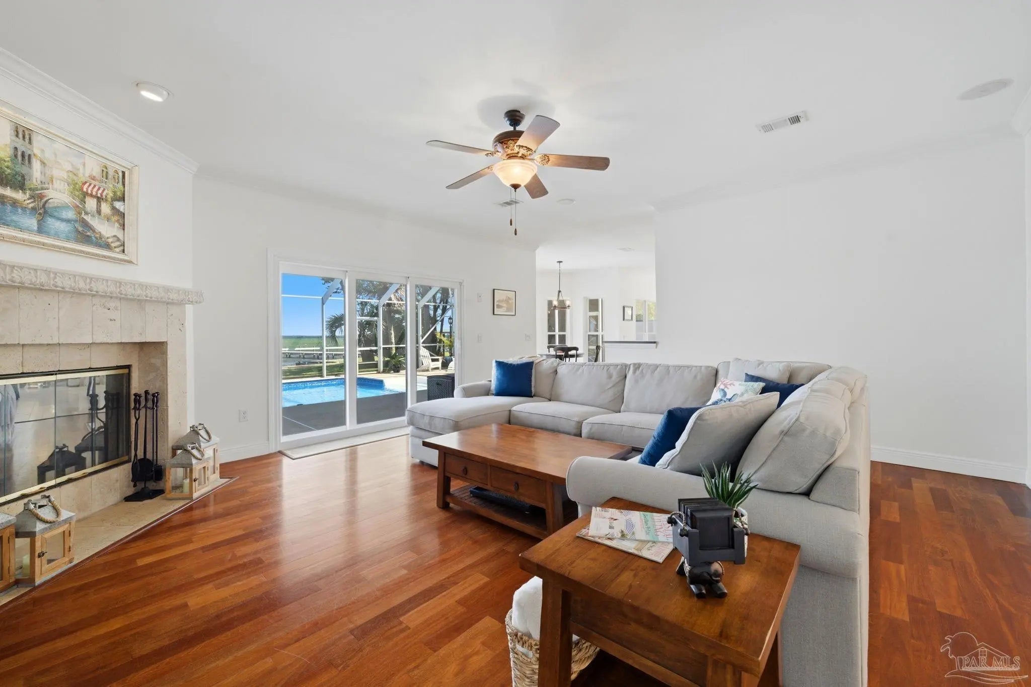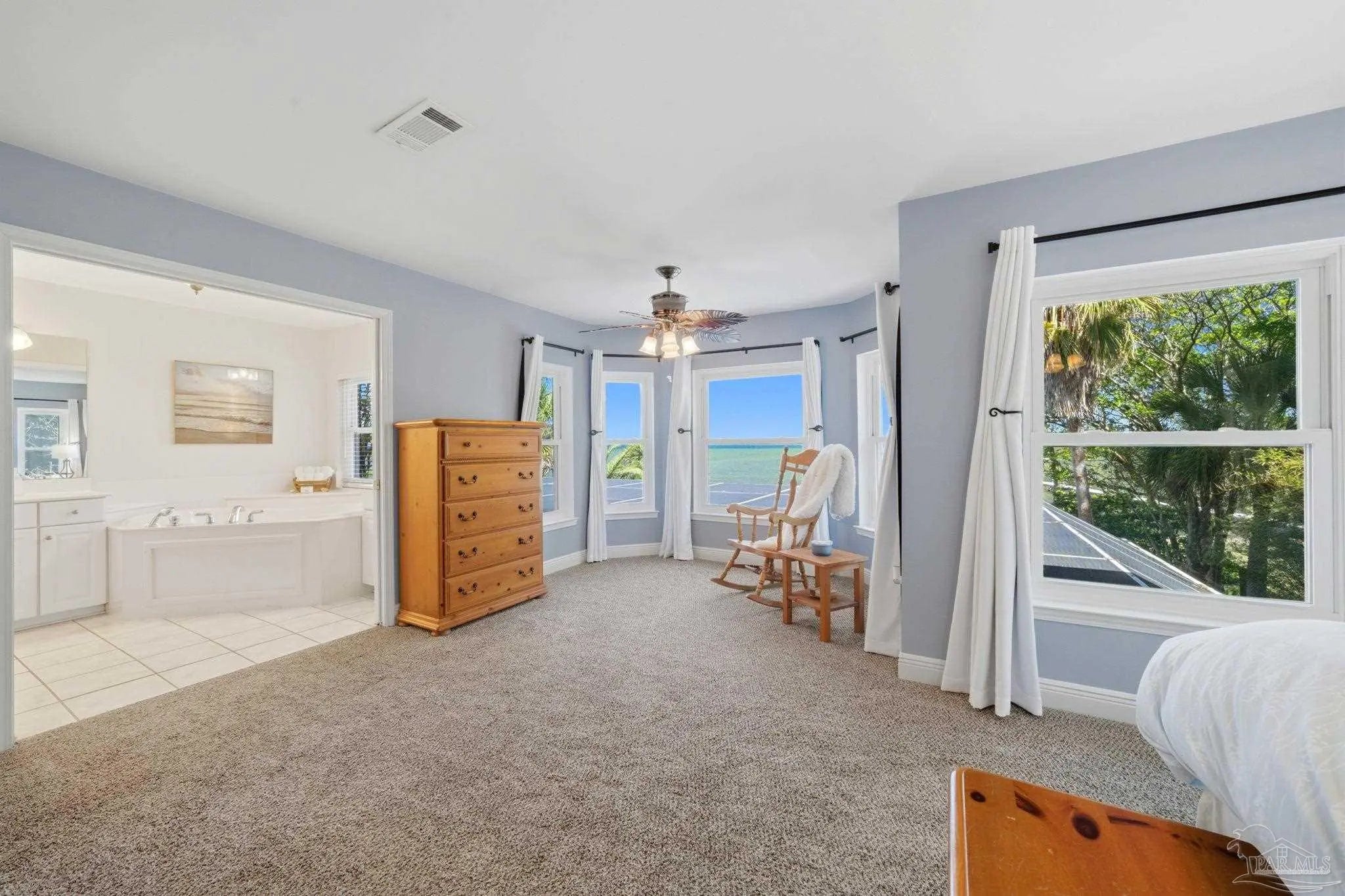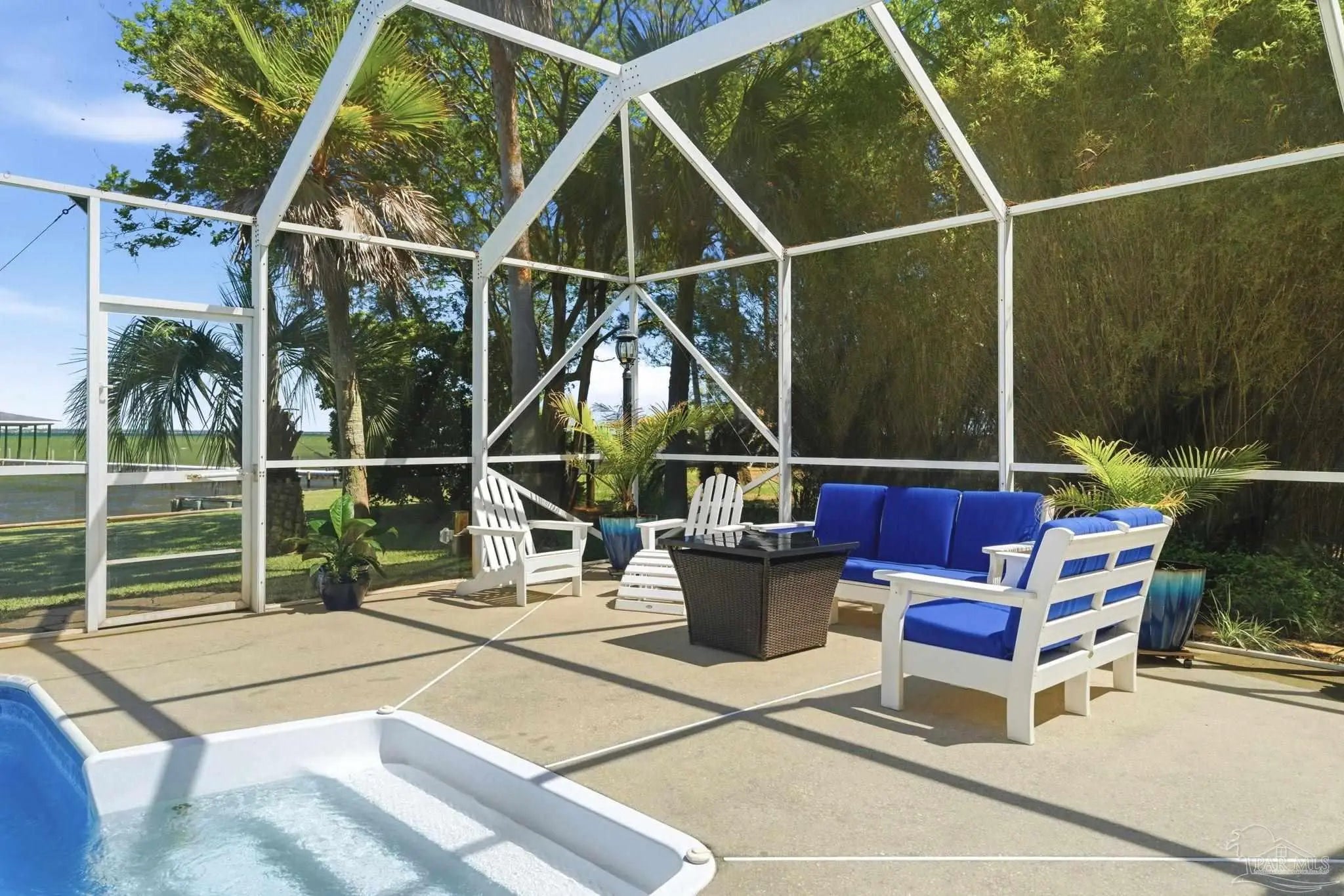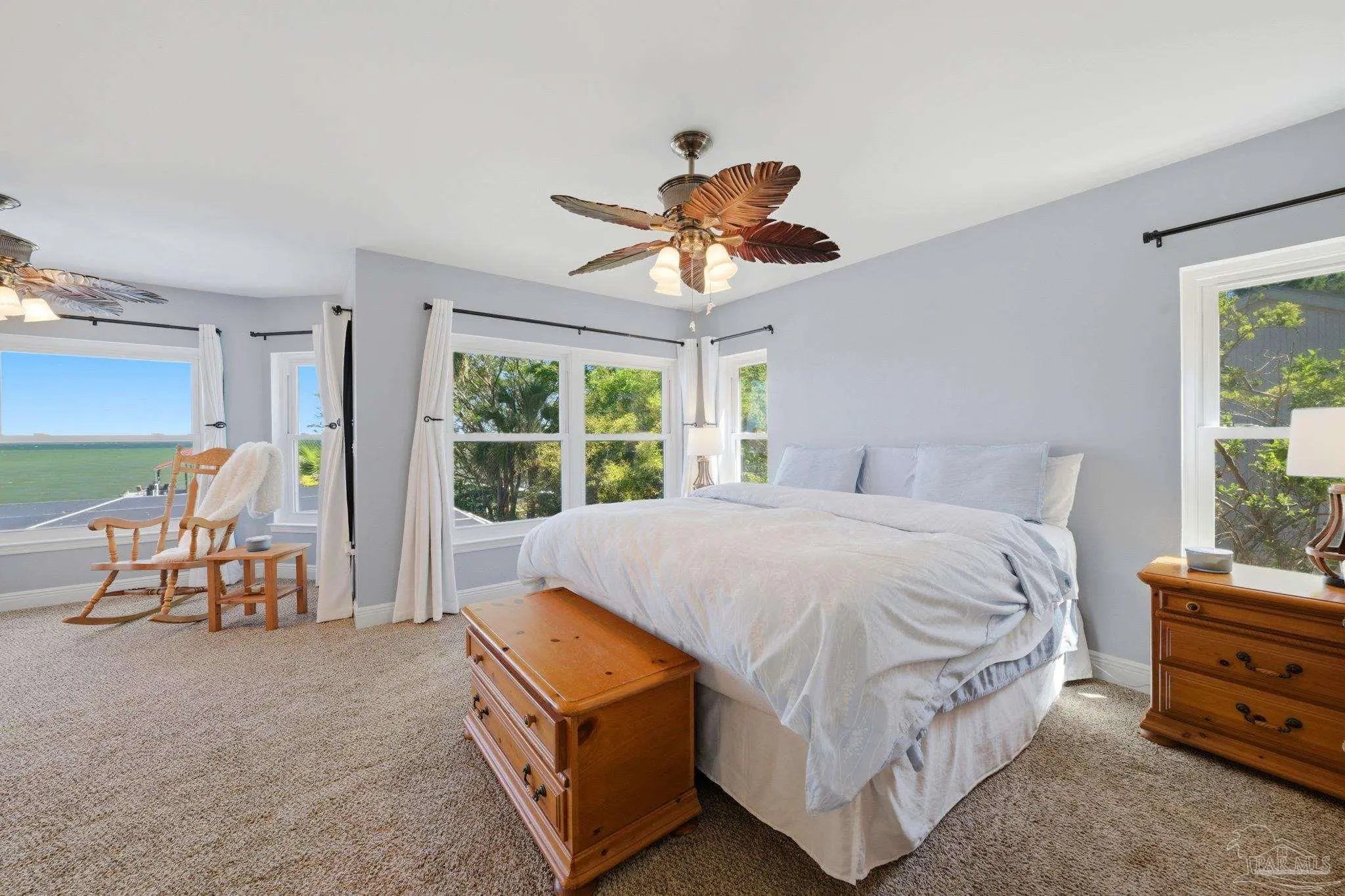 Luxury Waterfront Living with Panoramic Bay Views Just Imagine waking up every morning in this dream house to see pelicans and dolphins playing in the sparkling bay. This stunning custom-built waterfront estate is ideally situated at the end of a quiet cul-de-sac in the Gulf Breeze school district. This exceptional well-maintained two-story beauty offers breathtaking, unobstructed views of Pensacola Bay and combines classic design with modern luxury and updates. Step through the grand foyer and immediately appreciate the elegance of brushed marble flooring that is installed throughout the first level. The spacious family room, anchored by a cozy fireplace, has breathtaking views of the bay and joins seamlessly into a large gourmet kitchen planned by a professional designer perfect for cooking and entertaining. The chef’s kitchen is truly impressive, featuring a Viking gas range, built-in Thermador microwave, double ovens, and an expansive walk-in pantry. The east side of the kitchen has a comfortable sitting area along with an intimate dining nook, all overlooking the sparkling pool and expansive 1,600-square-foot screened enclosure. Enjoy spectacular sunsets and sweeping water views, including three iconic bridges, from nearly every angle. Outdoor living is unmatched with a 150-foot private dock and ten-thousand-pound boat lift —ideal for boating, fishing, and embracing the waterfront lifestyle. The first floor also offers a versatile fourth bedroom or office, a full bath, and a spacious sunroom with private access to the pool area perfect for guests or a private retreat. The luxurious primary suite features a serene sitting area with bay views and a well-appointed ensuite bath complete with double vanities, a jetted garden tub, and a separate shower. Two additional bedrooms share a Jack-and-Jill bath and boast beautiful water views. Recent updates include a new roof (2021) and HVAC system (2022), and second floor impact windows. Open House Sat 4/18 1:00 - 3:00