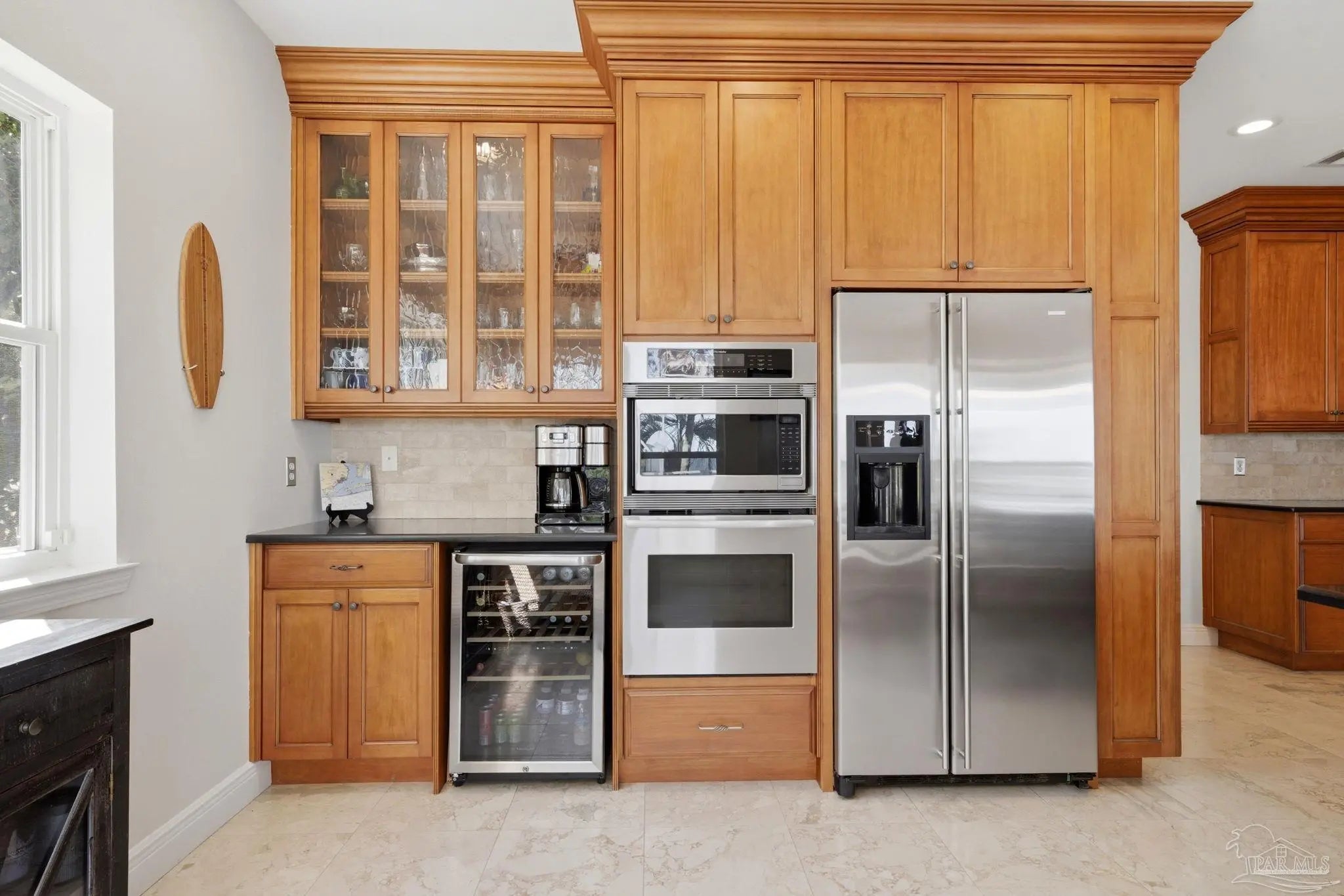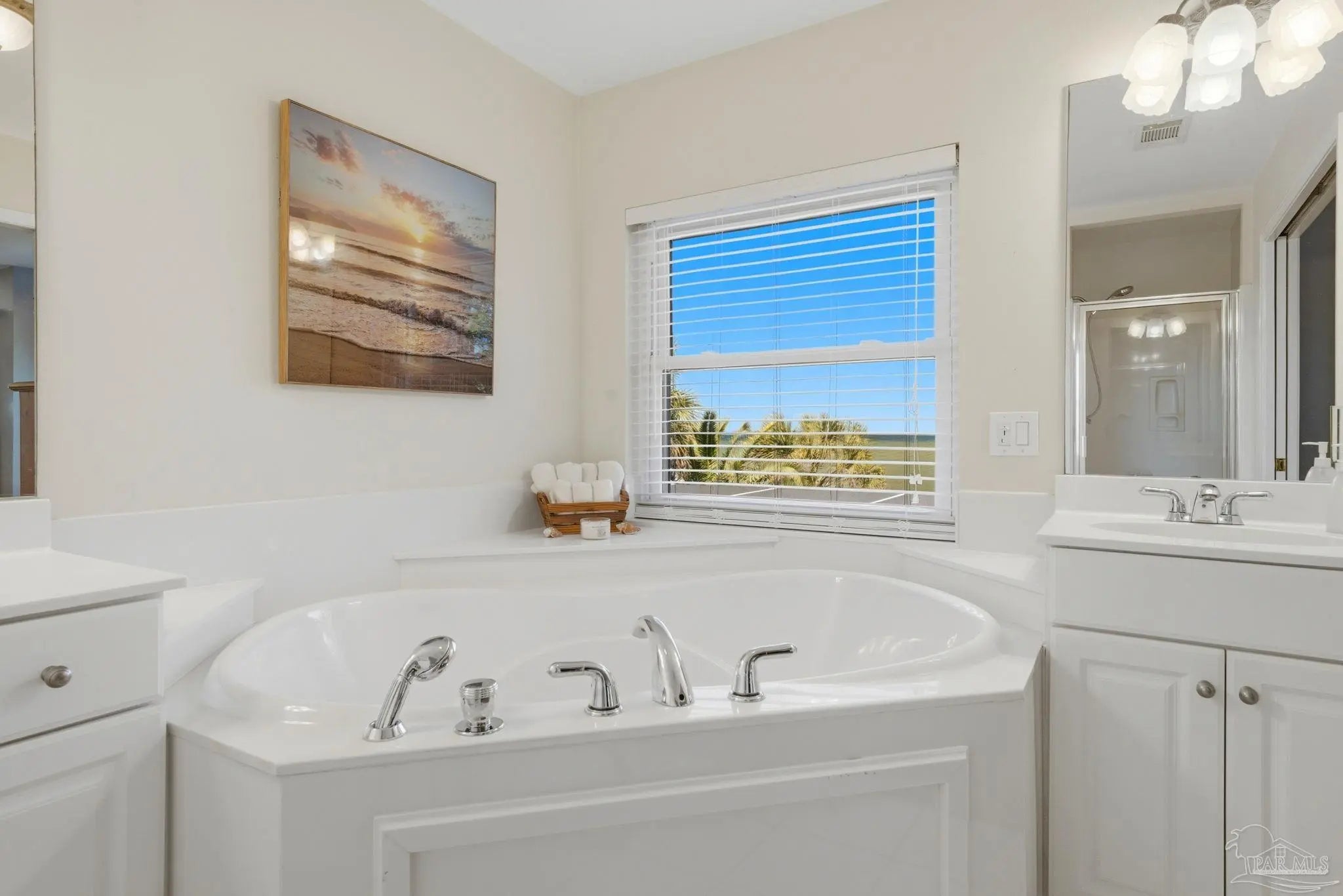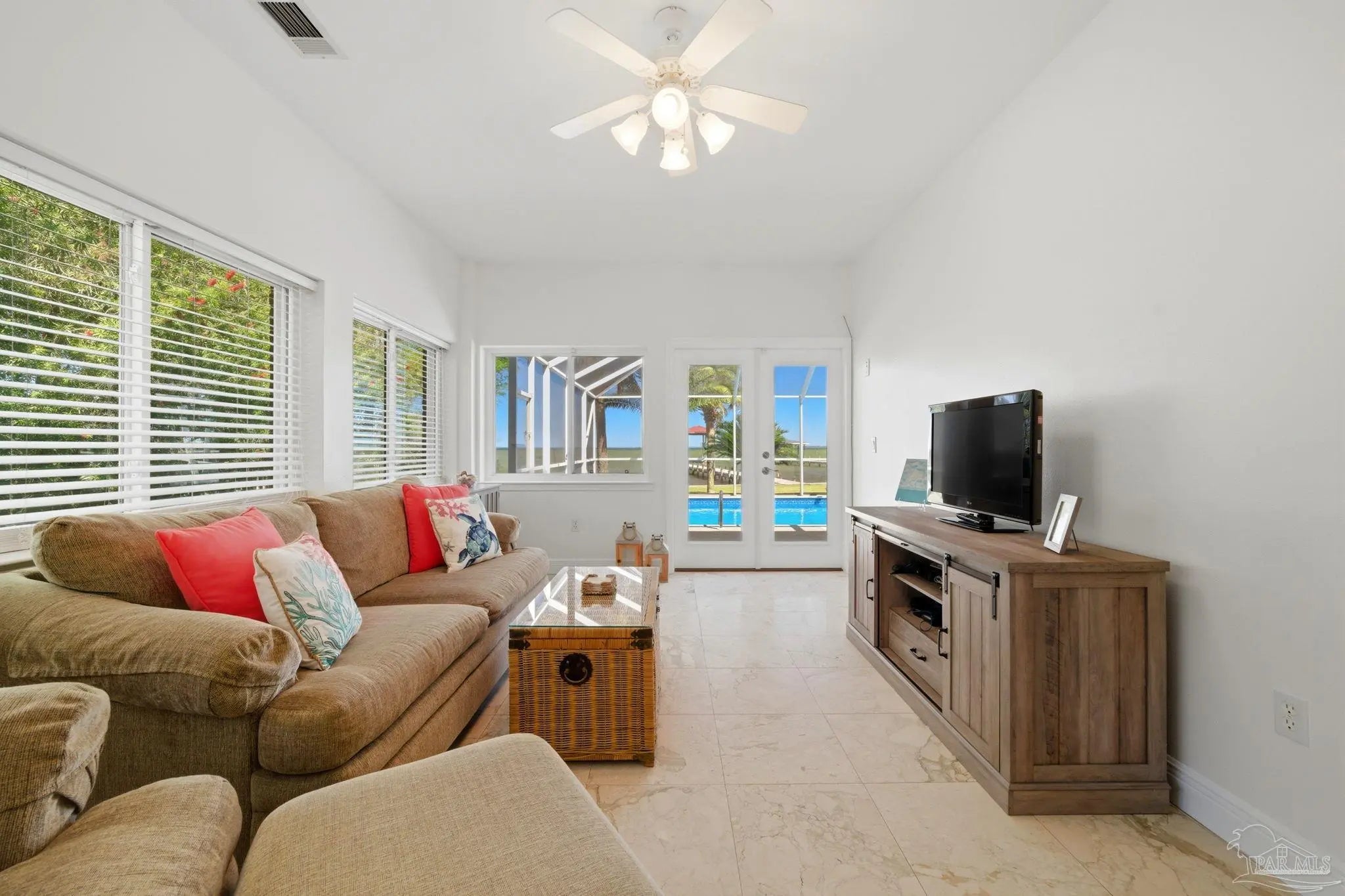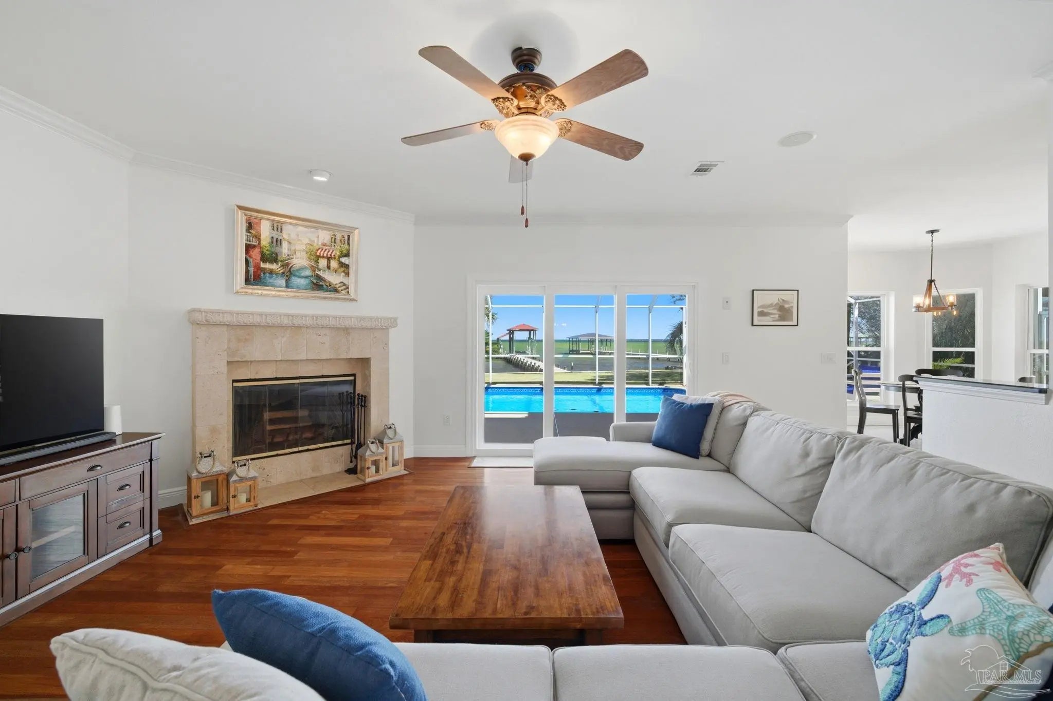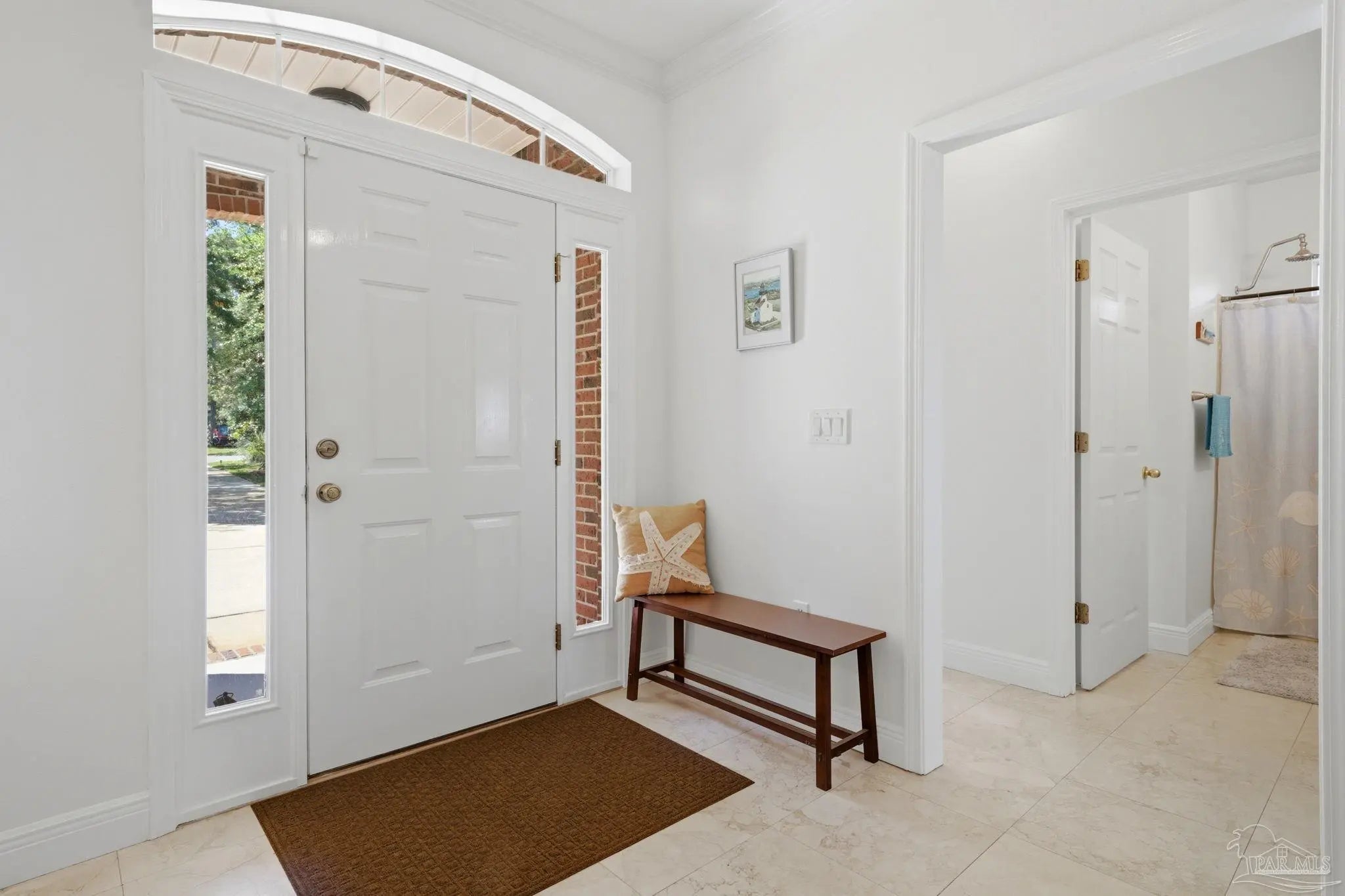 Luxury Waterfront Living with Panoramic Bay Views Just Imagine waking up every morning in this dream house to see pelicans and dolphins playing in the sparkling bay. This stunning custom-built waterfront estate is ideally situated at the end of a quiet cul-de-sac in the Gulf Breeze school district. This exceptional well-maintained two-story beauty offers breathtaking, unobstructed views of Pensacola Bay and combines classic design with modern luxury and updates. Step through the grand foyer and immediately appreciate the elegance of brushed marble flooring that is installed throughout the first level. The spacious family room, anchored by a cozy fireplace, has breathtaking views of the bay and joins seamlessly into a large gourmet kitchen planned by a professional designer perfect for cooking and entertaining. The chef’s kitchen is truly impressive, featuring a Viking gas range, built-in Thermador microwave, double ovens, and an expansive walk-in pantry. The east side of the kitchen has a comfortable sitting area along with an intimate dining nook, all overlooking the sparkling pool and expansive 1,600-square-foot screened enclosure. Enjoy spectacular sunsets and sweeping water views, including three iconic bridges, from nearly every angle. Outdoor living is unmatched with a 150-foot private dock and ten-thousand-pound boat lift —ideal for boating, fishing, and embracing the waterfront lifestyle. The first floor also offers a versatile fourth bedroom or office, a full bath, and a spacious sunroom with private access to the pool area perfect for guests or a private retreat. The luxurious primary suite features a serene sitting area with bay views and a well-appointed ensuite bath complete with double vanities, a jetted garden tub, and a separate shower. Two additional bedrooms share a Jack-and-Jill bath and boast beautiful water views. Recent updates include a new roof (2021) and HVAC system (2022), and second floor impact windows. Open House Sat 4/18 1:00 - 3:00