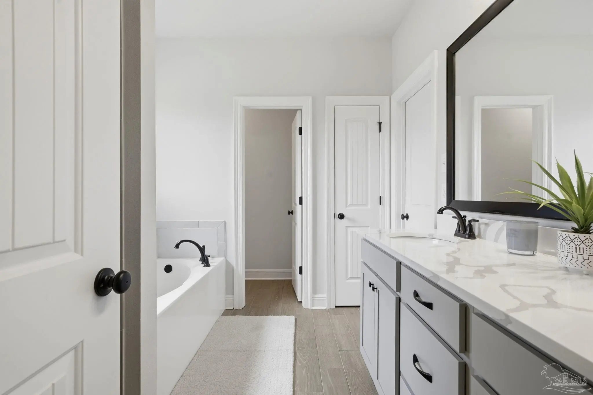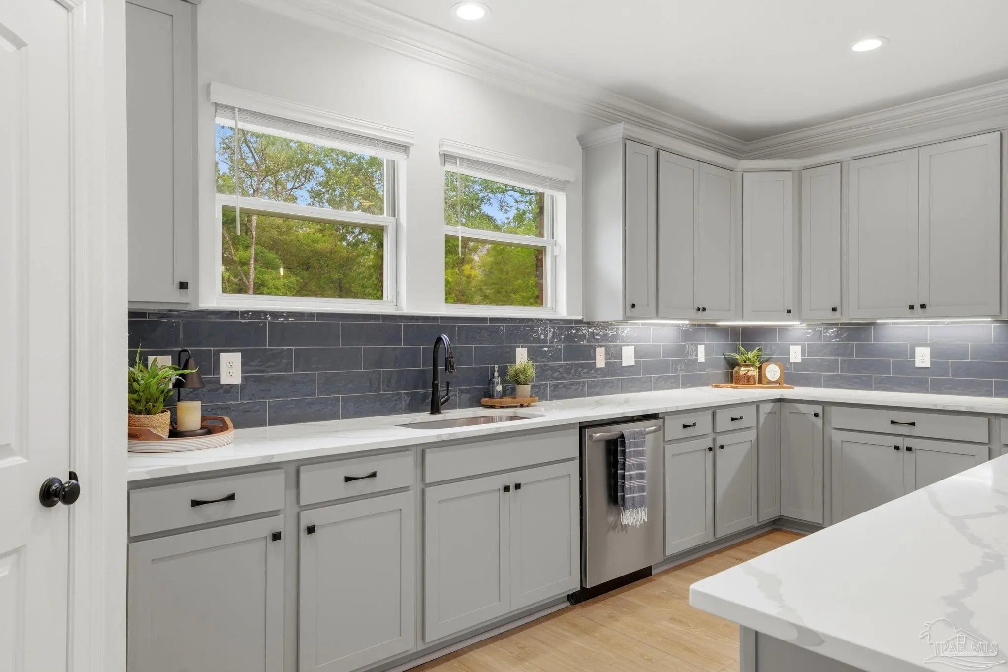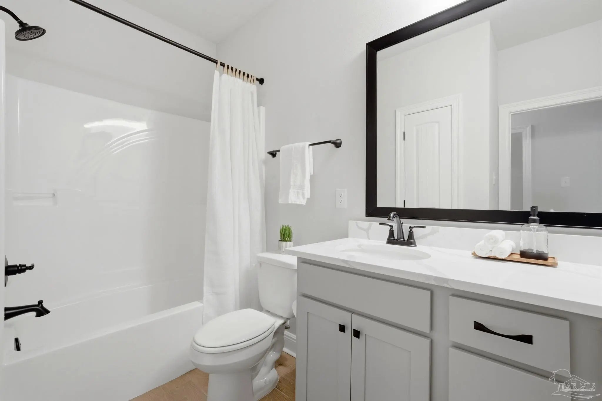 Welcome to this beautifully upgraded 5-bedroom, 3-bathroom home offering a spacious open and split floor plan designed for both comfort and functionality. This home features a formal dining room and a separate den, providing flexible spaces for entertaining, working, or relaxing. The kitchen is the heart of the home, complete with quartz countertops, upgraded cabinetry and backsplash, undercabinet lighting, a large island, and a walk-in pantry. The primary suite offers a true retreat with a double vanity, garden tub, custom tiled shower with frameless glass door, and a walk-in closet, while bathrooms 2 and 3 also feature double vanities—an added convenience for family or guests. Additional interior highlights include ceramic tile flooring in main areas, upgraded carpet in bedrooms, recessed lighting, framed mirrors, undermount sinks, a boot bench at the garage entry, blinds throughout, and smoke and carbon monoxide detectors. Enjoy outdoor living with a covered front porch, screened-in rear porch, and an additional 12x12 Trex deck overlooking a private backyard with no rear neighbors. Energy-efficient features include a tankless gas water heater, gas range, and Low-E vinyl windows. Located in a gated community with underground utilities, this neighborhood offers resort-style amenities including a community pool, covered clubhouse with bathhouse, grilling areas, nature trails, sidewalks, two dog parks, event lawn, community garden, pickleball and basketball court, and a firepit gathering area.