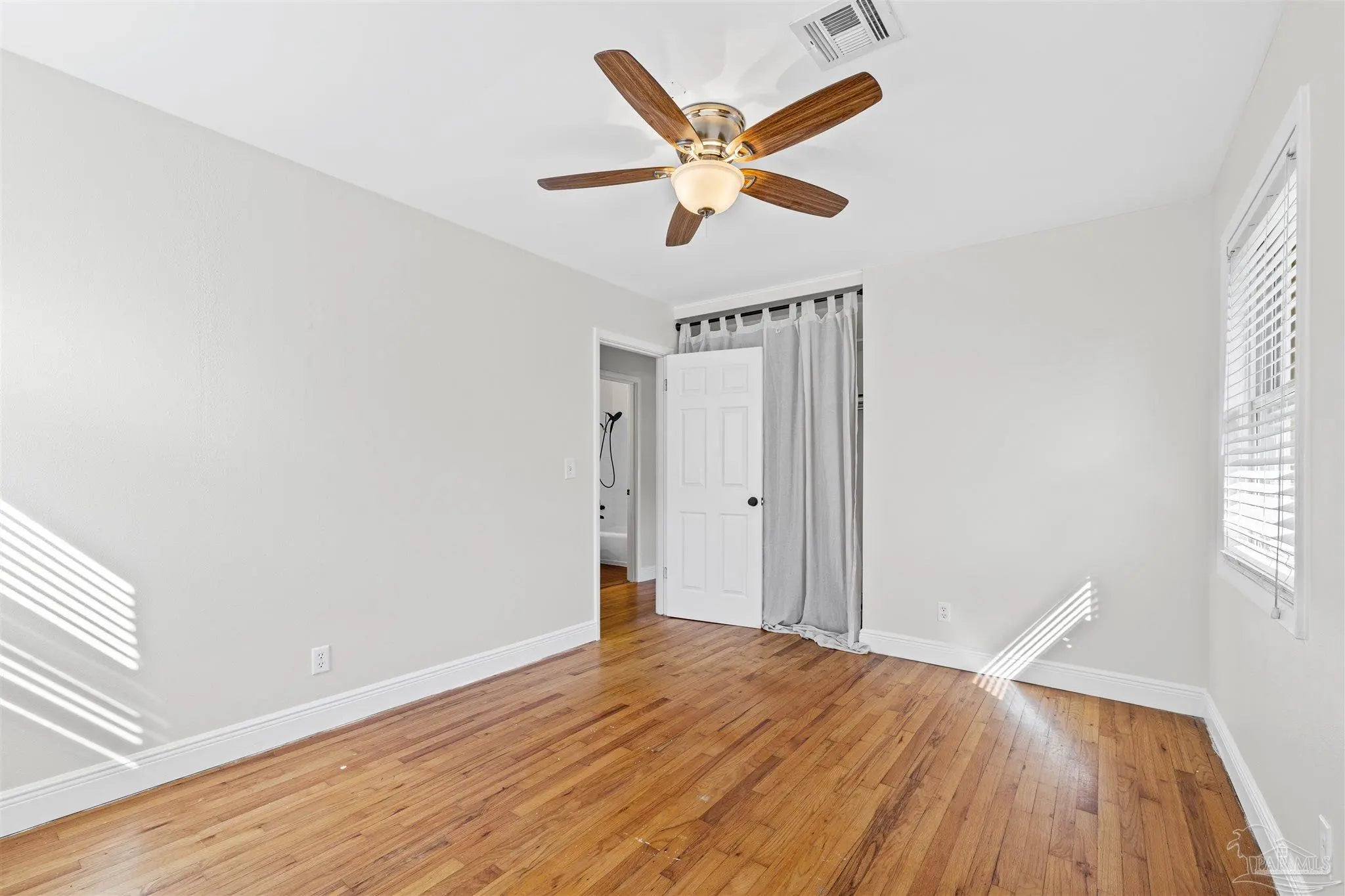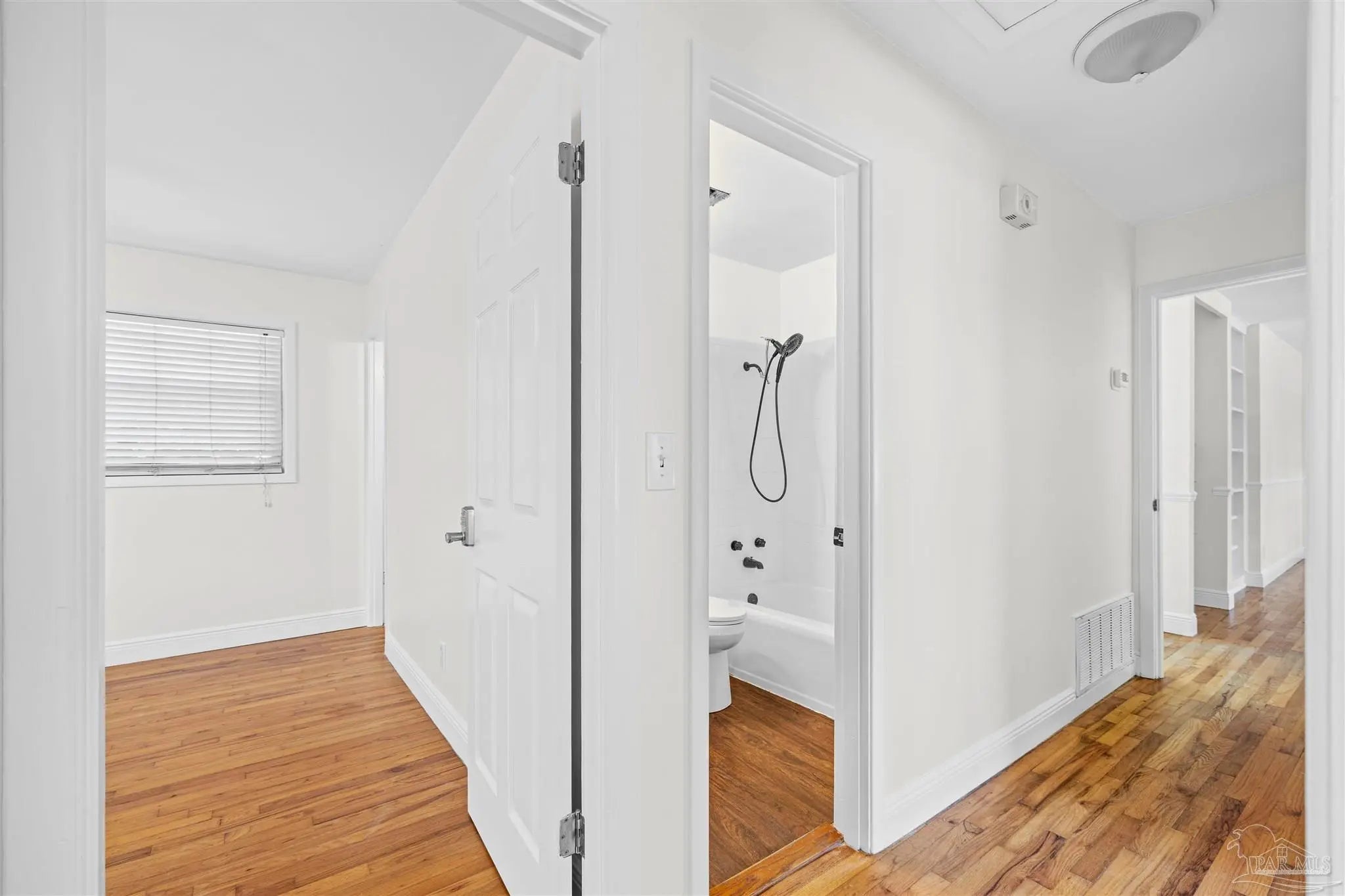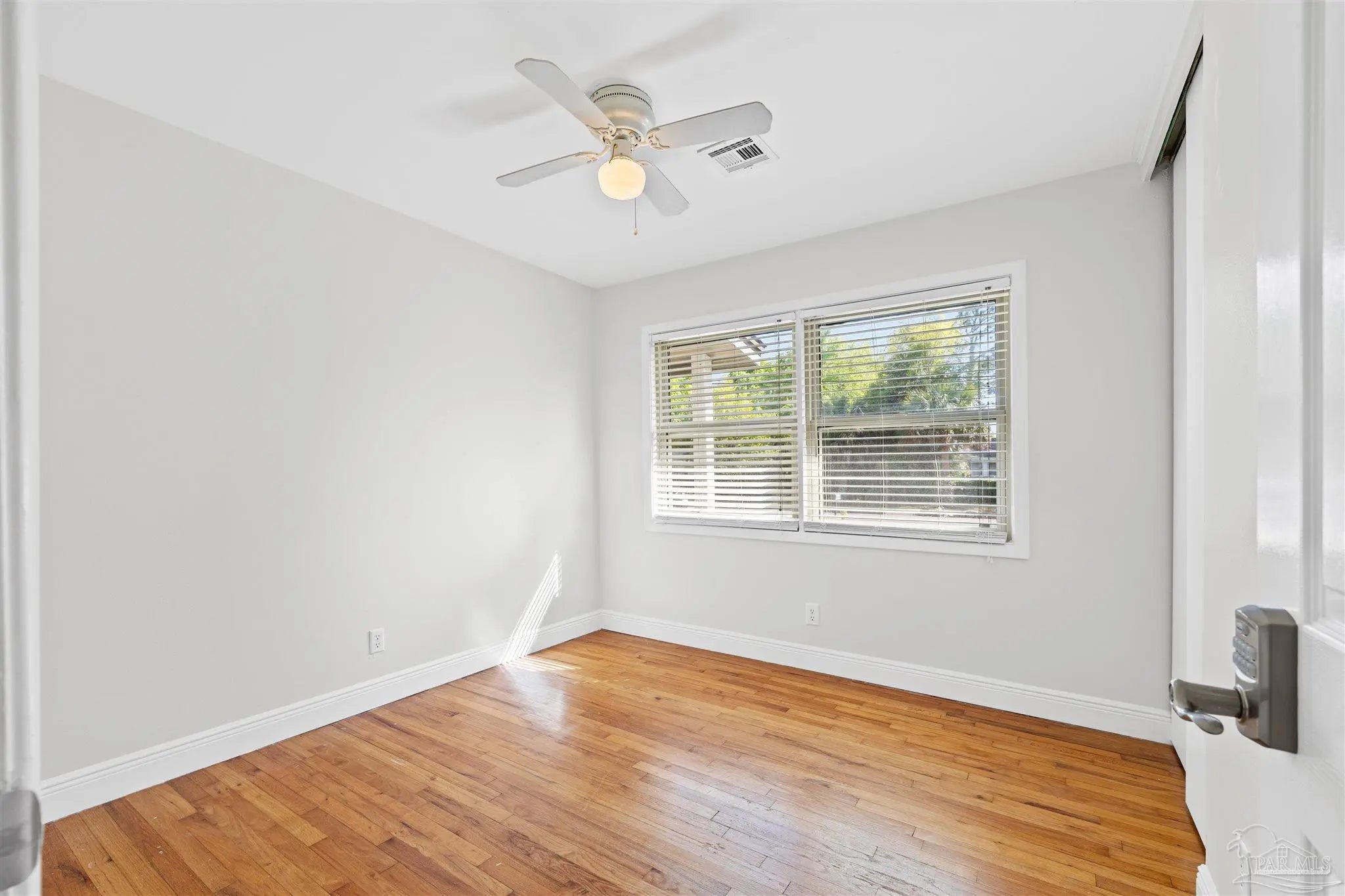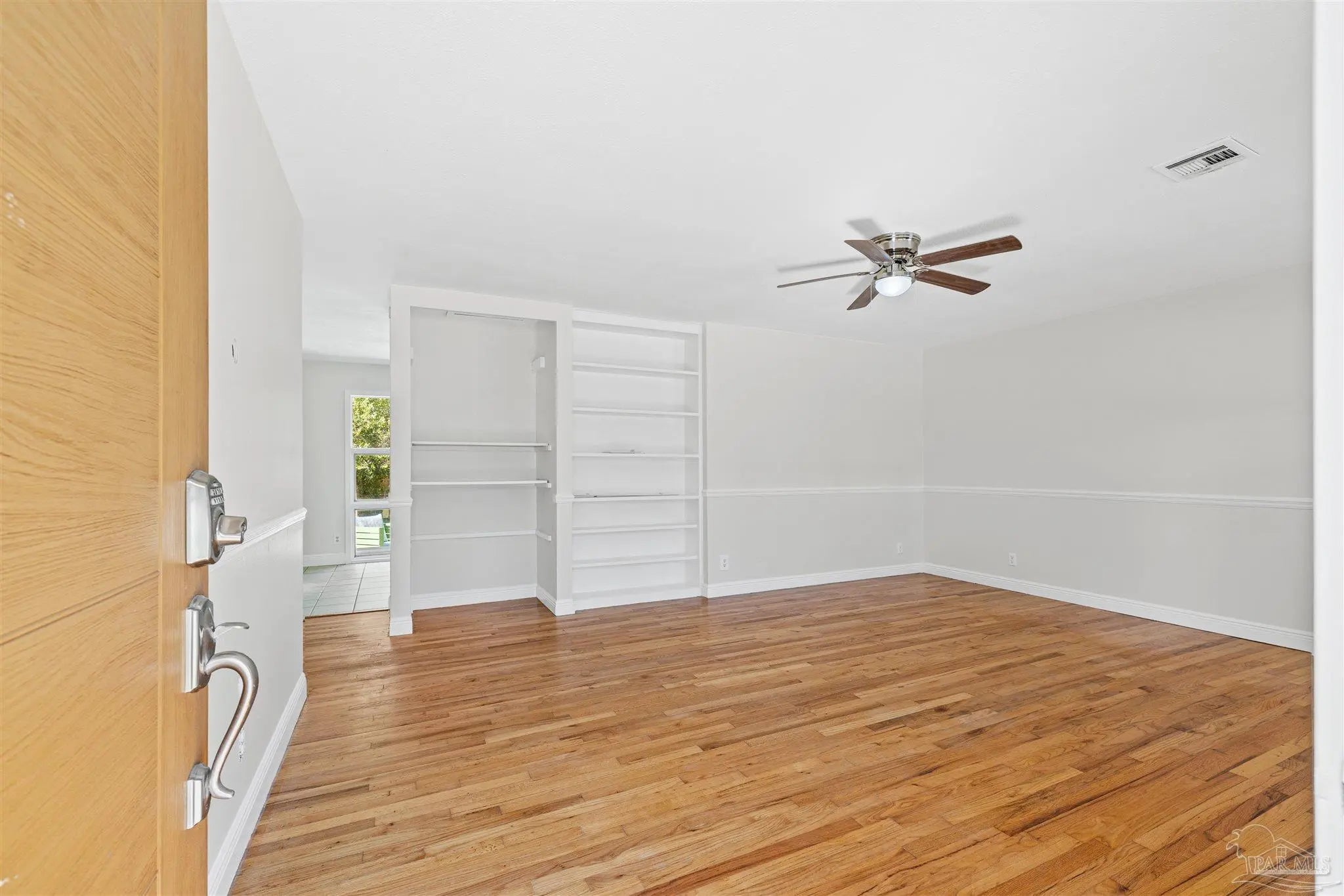 This Scenic Heights home sits on a spacious lot just moments from local parks and everyday conveniences. Freshly refreshed inside and out with a modern, neutral palette, the home welcomes you with a bright living room featuring hardwood floors, charming chair rail, a built-in bookcase, and large windows overlooking the front yard. A step-down bonus room adds valuable extra living space with its cathedral ceiling, wood-laminate flooring, and painted brick accent wall full of character. The kitchen offers tile flooring, painted cabinetry with a large lazy Susan, open shelving, pantry storage, and electric appliances, while the adjacent dining area showcases floor-to-ceiling windows that flood the space with natural light. All three bedrooms include hardwood flooring, ceiling fans, and generous closets. The updated full bath features a modern vanity and tub-shower combo, and the updated half bath connects conveniently to both the primary bedroom and the laundry area. The laundry room includes tile flooring, built-in shelving, and access to the backyard. Outdoors, the fenced yard is lined with mature trees and offers both a large open patio—perfect for BBQs—and a smaller covered patio with access to a spacious storage room or workshop. Move-in ready and thoughtfully maintained, this charming home blends comfort, updates, and convenience in one inviting package.