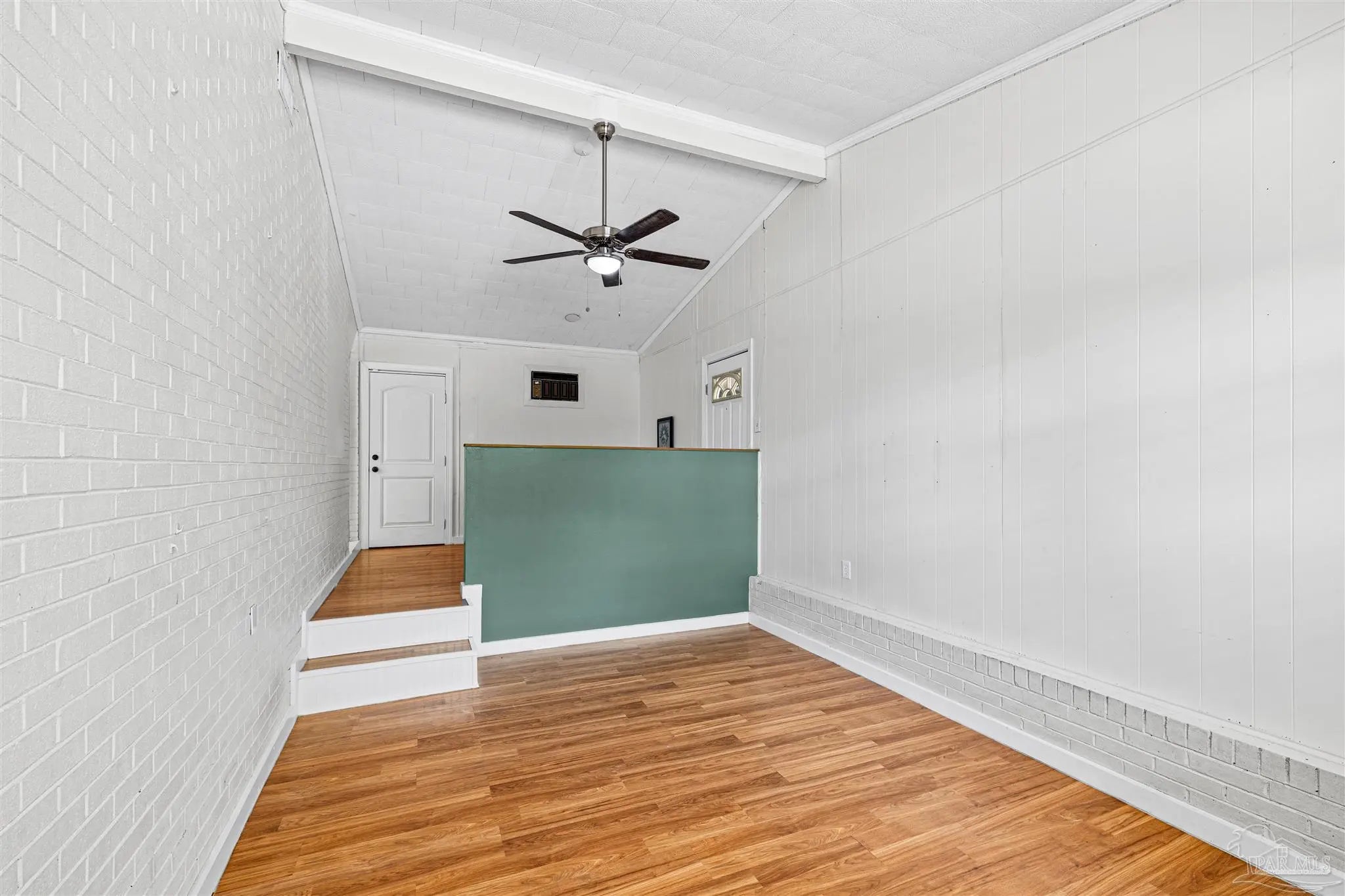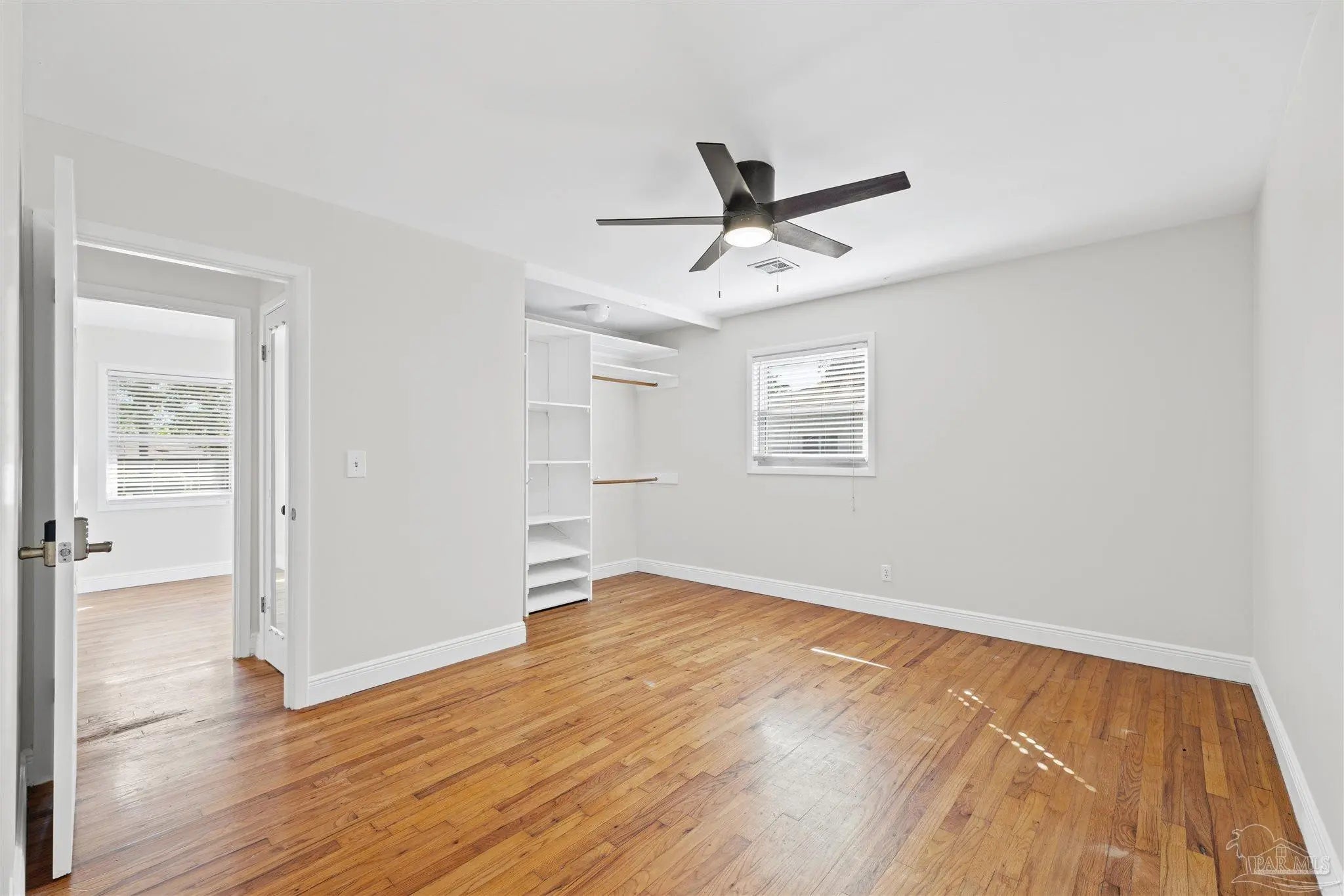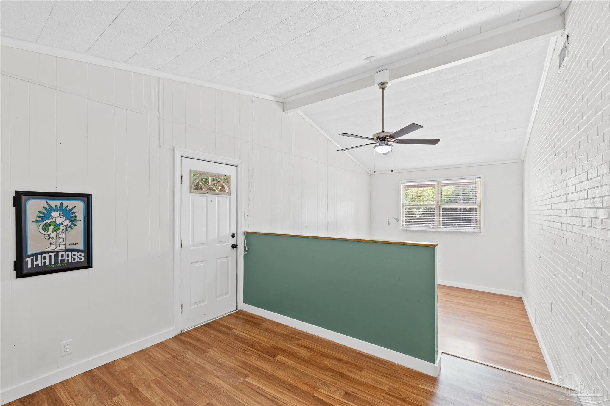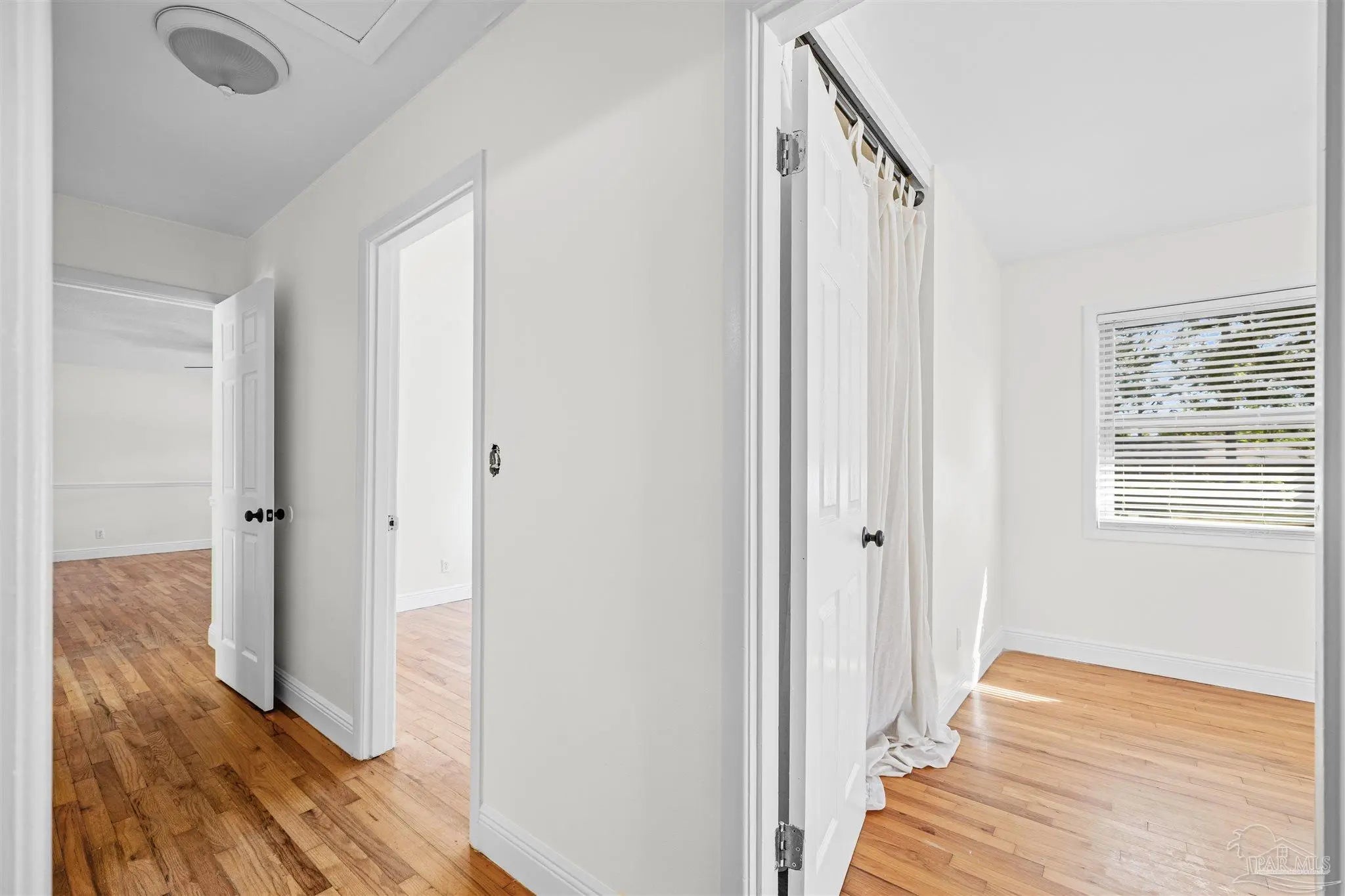 This Scenic Heights home sits on a spacious lot just moments from local parks and everyday conveniences. Freshly refreshed inside and out with a modern, neutral palette, the home welcomes you with a bright living room featuring hardwood floors, charming chair rail, a built-in bookcase, and large windows overlooking the front yard. A step-down bonus room adds valuable extra living space with its cathedral ceiling, wood-laminate flooring, and painted brick accent wall full of character. The kitchen offers tile flooring, painted cabinetry with a large lazy Susan, open shelving, pantry storage, and electric appliances, while the adjacent dining area showcases floor-to-ceiling windows that flood the space with natural light. All three bedrooms include hardwood flooring, ceiling fans, and generous closets. The updated full bath features a modern vanity and tub-shower combo, and the updated half bath connects conveniently to both the primary bedroom and the laundry area. The laundry room includes tile flooring, built-in shelving, and access to the backyard. Outdoors, the fenced yard is lined with mature trees and offers both a large open patio—perfect for BBQs—and a smaller covered patio with access to a spacious storage room or workshop. Move-in ready and thoughtfully maintained, this charming home blends comfort, updates, and convenience in one inviting package.
