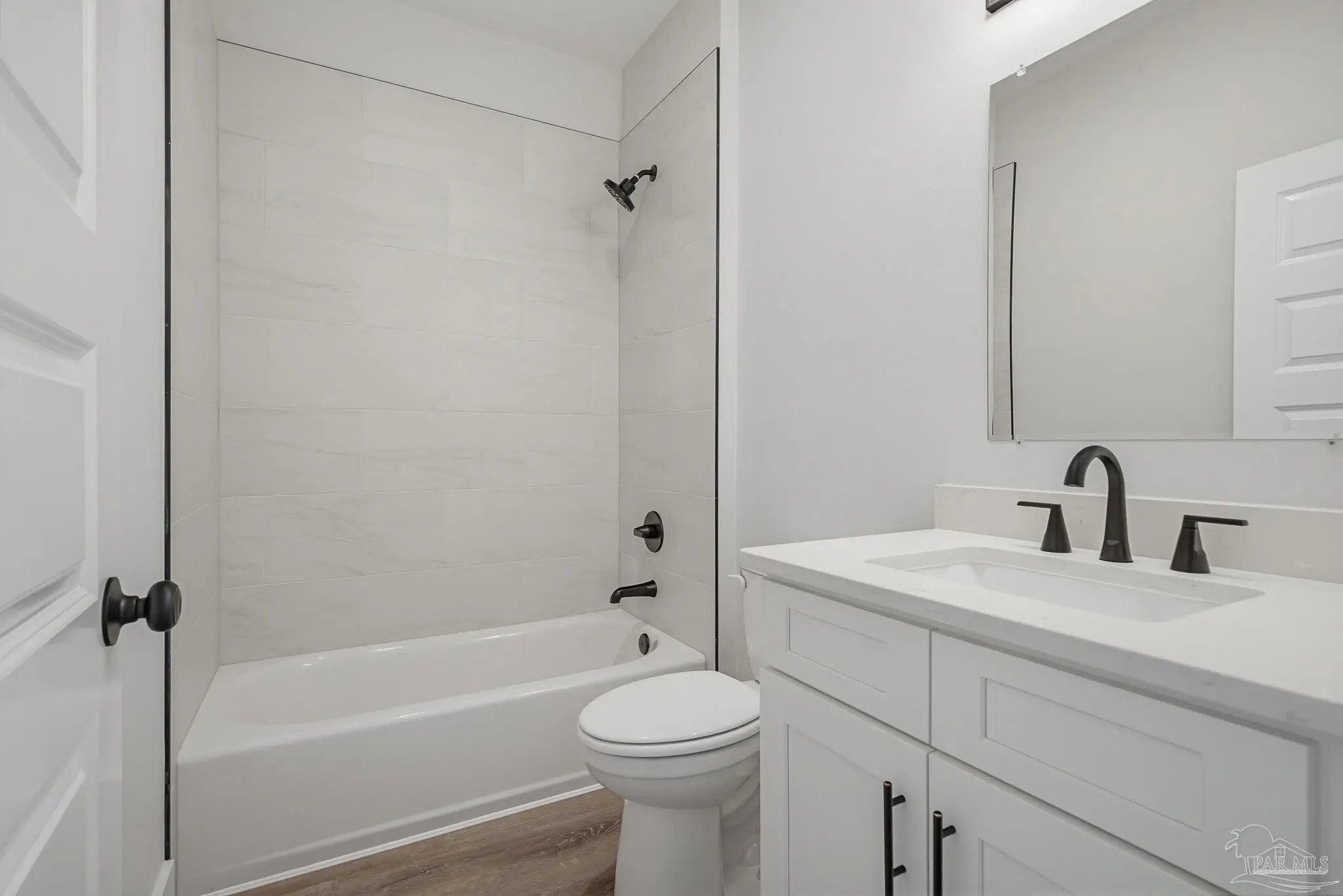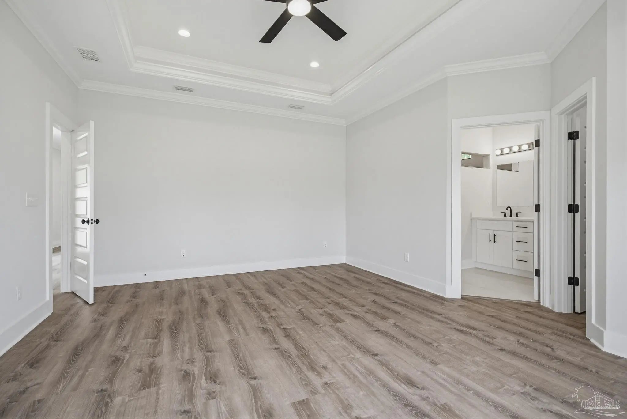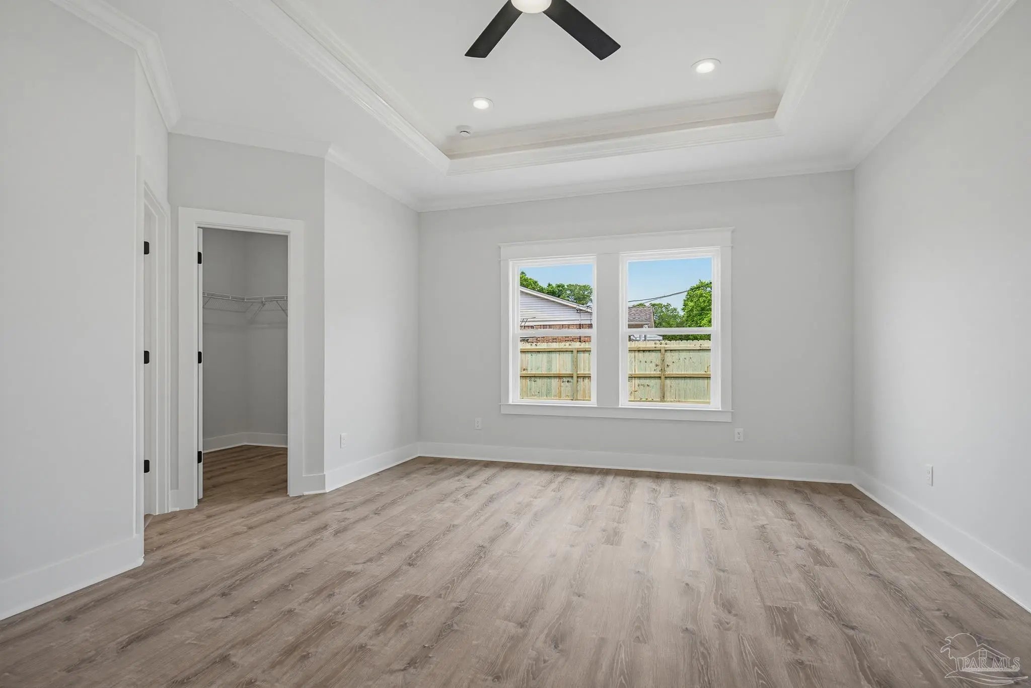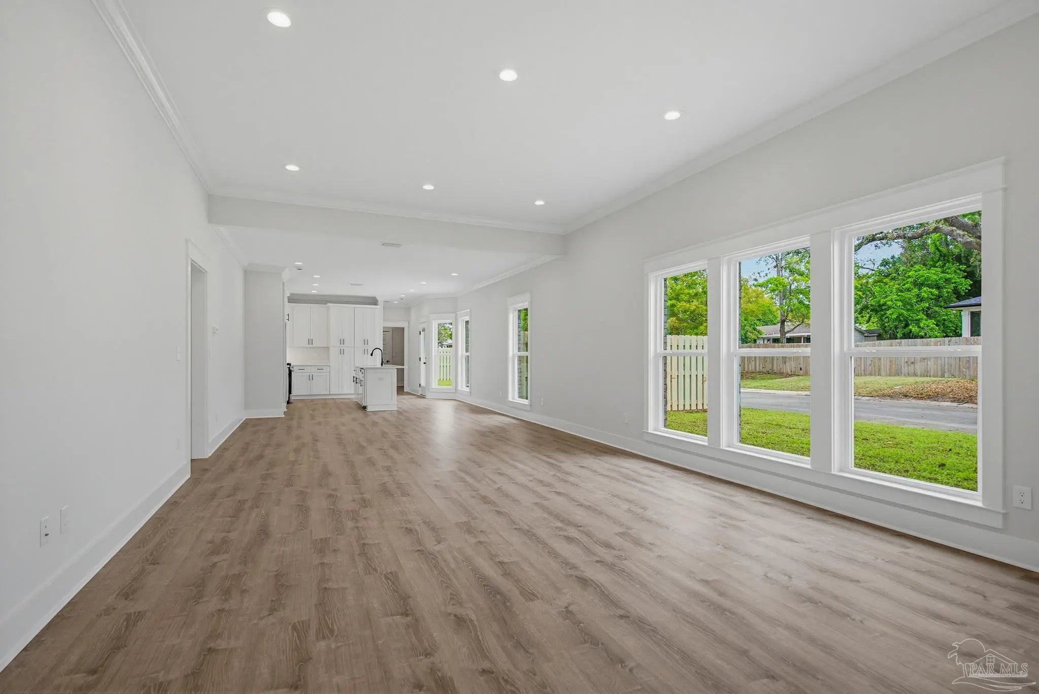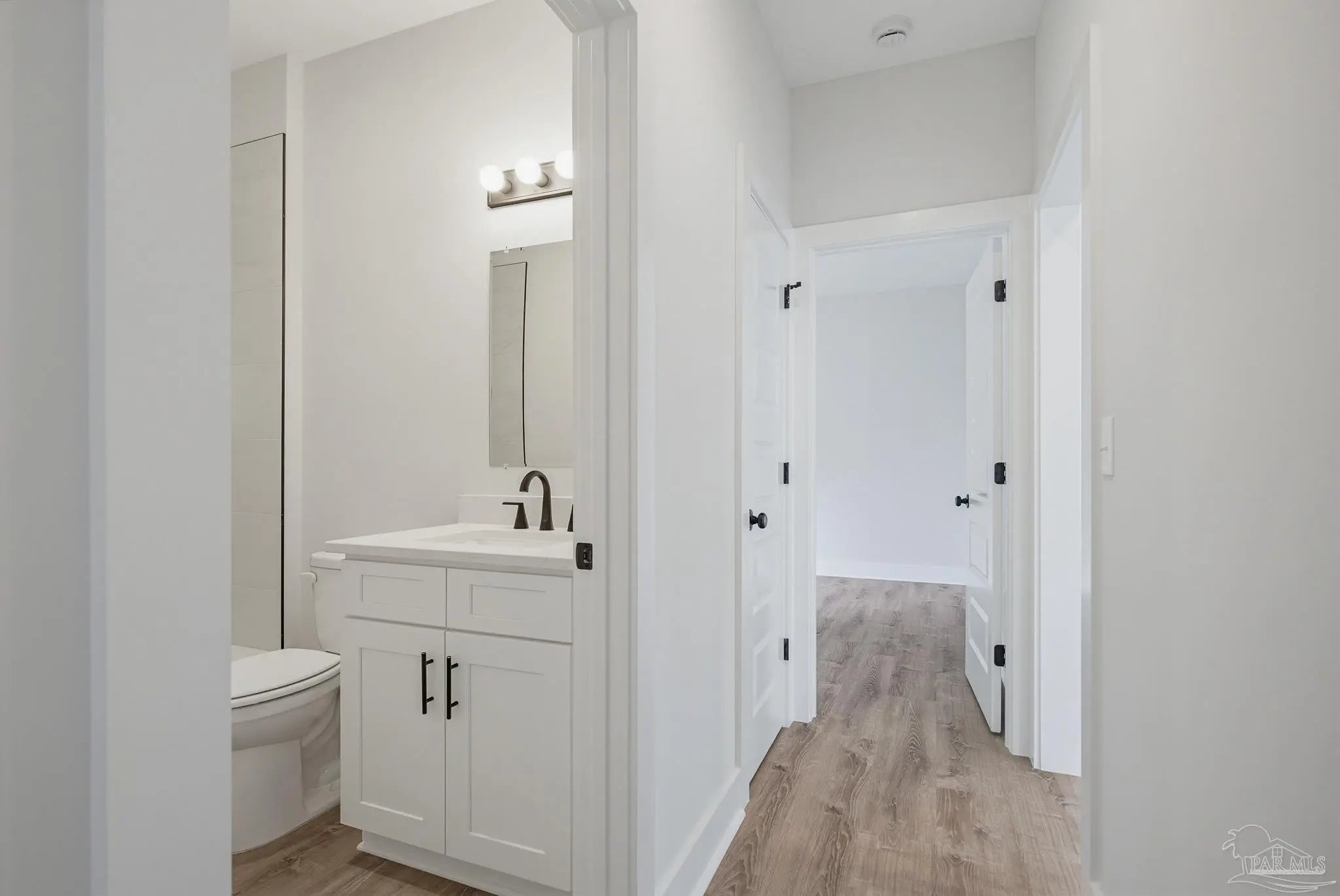 This brand-new, custom-built home is just minutes from local shopping, and dining, including a grocery store, bakery, and bistro. It’s a short drive to downtown Pensacola and Pensacola Beach. The design seamlessly blends craftsman and modern coastal elements! The exterior features white brick with black trim, complemented by a mature magnolia tree and a camellia bush in the front yard. Inside, the home offers 4 bedrooms and 2 bathrooms. Upon entry, you'll notice high ceilings, crown molding, and abundant natural light. To the left of the living area, a hallway leads to two bedrooms, a guest bathroom, and a linen closet; behind the hallway, another bedroom is tucked to the left of the kitchen. The bright kitchen includes white cabinets with undercabinet lighting, quartz countertops, a large island, a gas range, and two full pantry cabinets, with access to a private backyard patio. Down the hallway to the right of the kitchen are the primary suite and a full laundry room with a large storage closet. The primary suite features tray ceilings, crown molding, recessed lighting, and large windows. The primary bathroom has a double vanity with quartz countertops and a sleek tiled shower, with a frameless glass door. Additional features include a tankless gas water heater, yard sprinkler system, and ample storage. The modern finishes perfectly complement the craftsman style, creating a truly lovely home. Schedule your showing today!