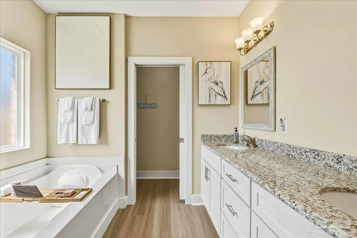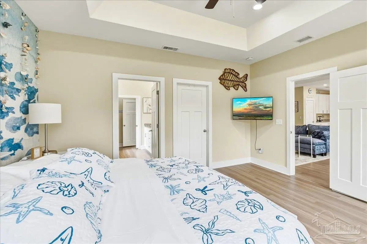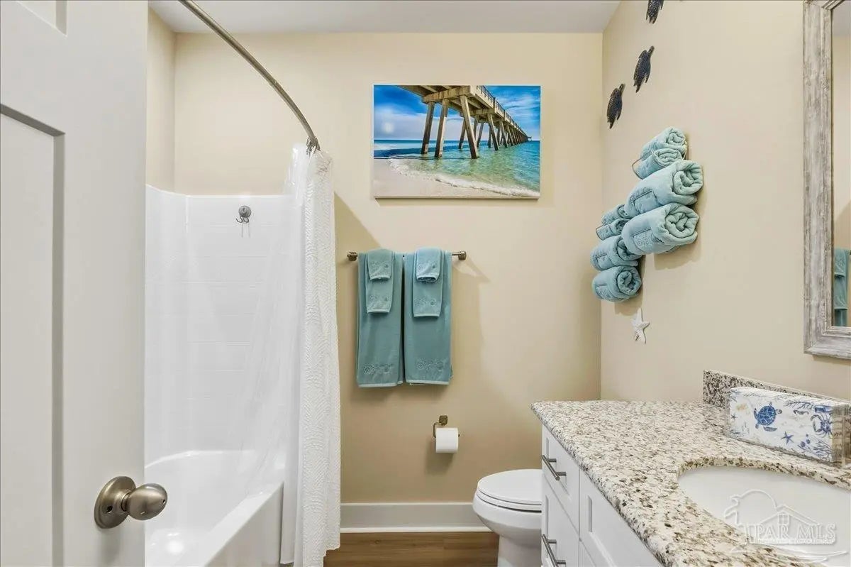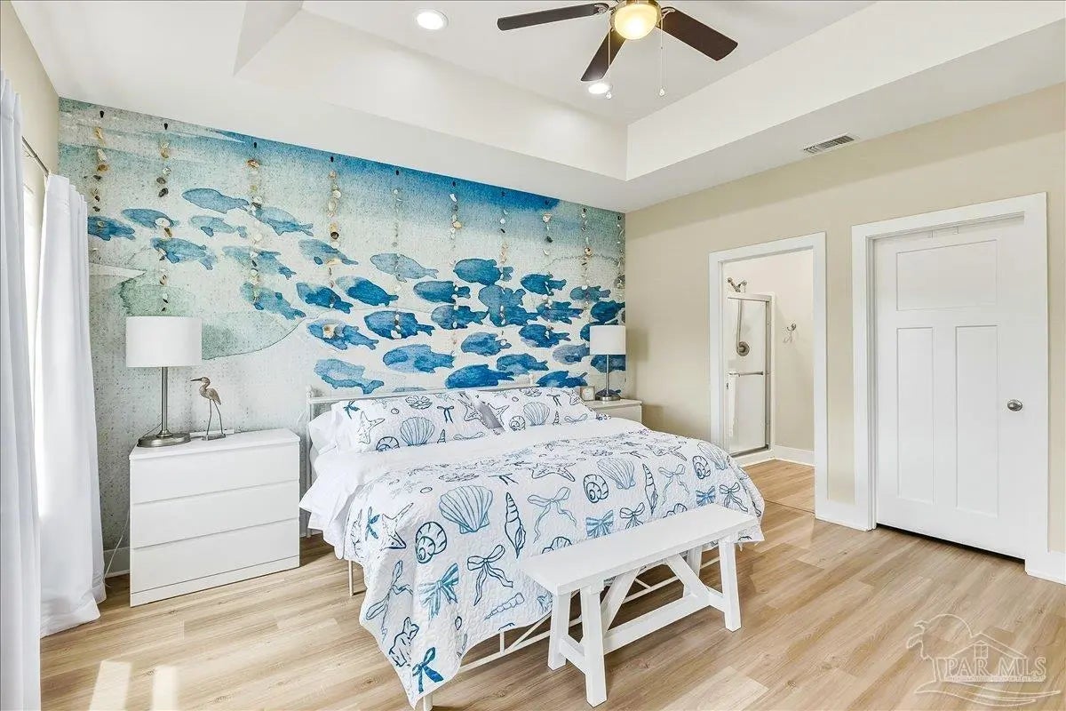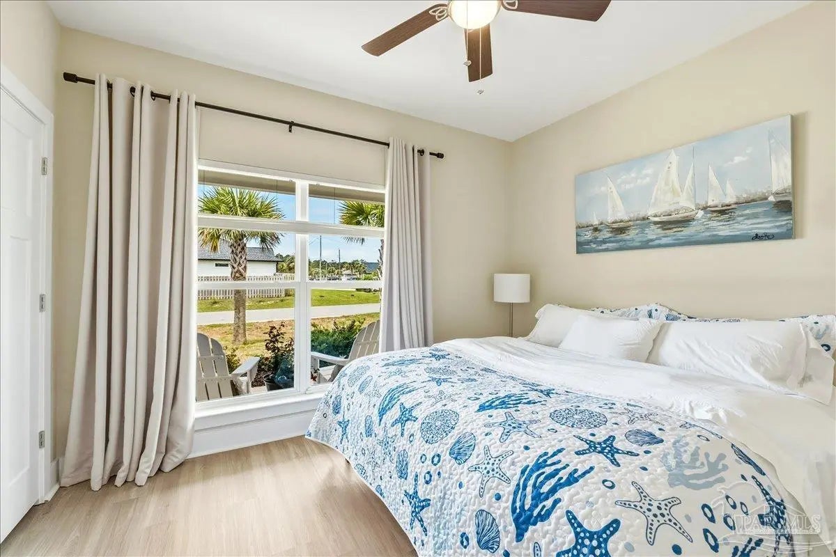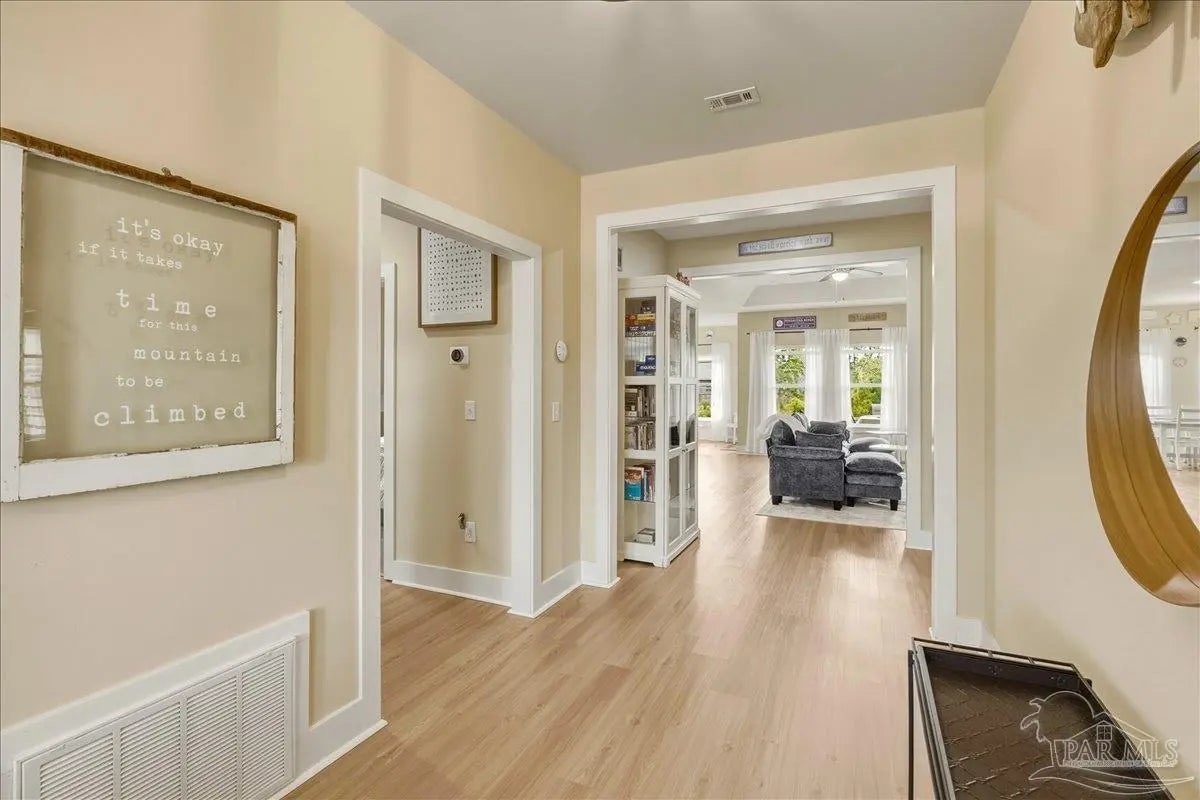 Experience the perfect blend of comfort, style, and location in this beautifully maintained home, ideally situated between Pensacola and Navarre Beach—just minutes from a convenient boat ramp. Step inside to an inviting open-concept living space filled with natural light, thanks to a stunning wall of windows. The seamless layout creates a warm and welcoming atmosphere, perfect for both everyday living and entertaining. The kitchen is a true centerpiece, featuring stainless steel appliances—including a French door refrigerator, smooth top range, microwave, and dishwasher—along with a granite-topped island with sink and tall soft-close cabinetry that any home chef will appreciate. The spacious primary suite is a private retreat, complete with a tray ceiling, cozy sitting area, and a large walk-in closet. The en-suite bath offers a spa-like experience with a soaking tub, walk-in shower, water closet, and generous linen storage. Two additional bedrooms provide comfortable accommodations and share a well-appointed second bath with granite countertops. Outside, enjoy the fenced backyard perfect for play, relaxation, or entertaining. The covered patio sets the stage for evenings outdoors, whether you are unwinding after a long day or hosting family and friends. Located just minutes from the pristine shores of Navarre Beach with some of the Gulf Coast’s best activities, fishing from the longest pier in the area, snorkeling vibrant reefs, deep-sea fishing, shell collecting, or simply relaxing by the water. Known for its natural beauty and tranquility, Navarre Beach is a hidden gem along Florida’s coastline. This is your chance to own this exceptional home in a convenient location—where coastal living meets everyday convenience. Move-in ready, Seller may consider selling all furniture and decor.