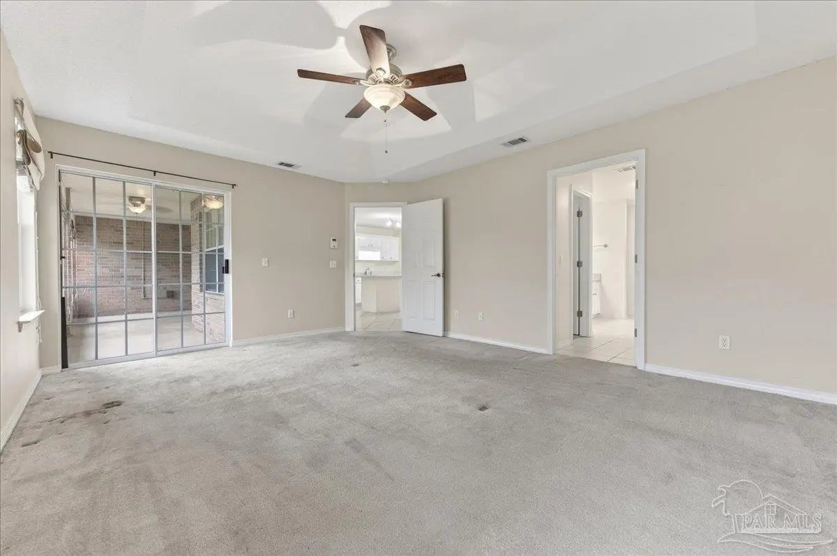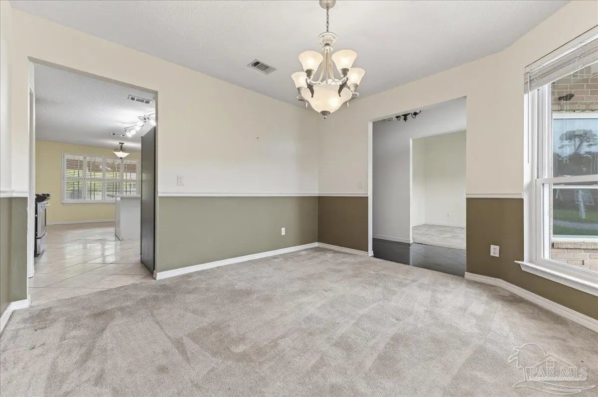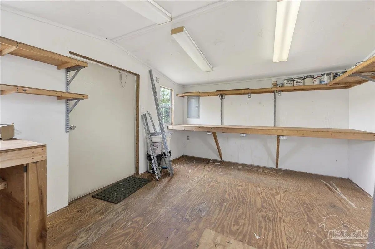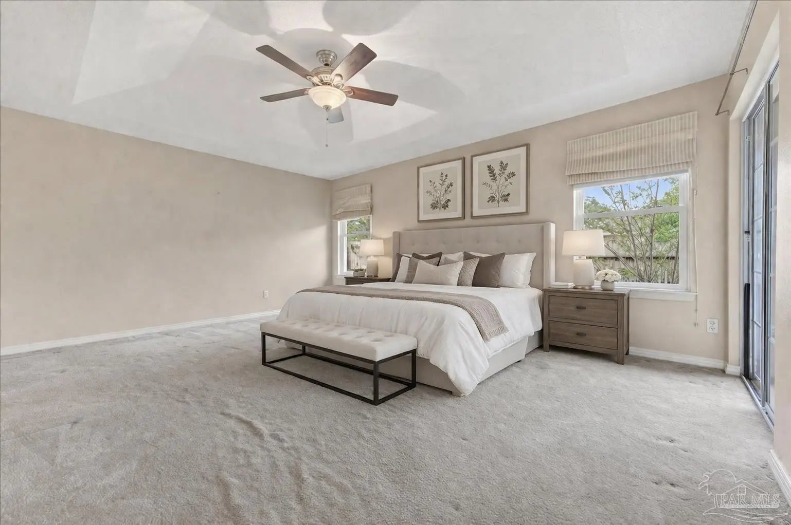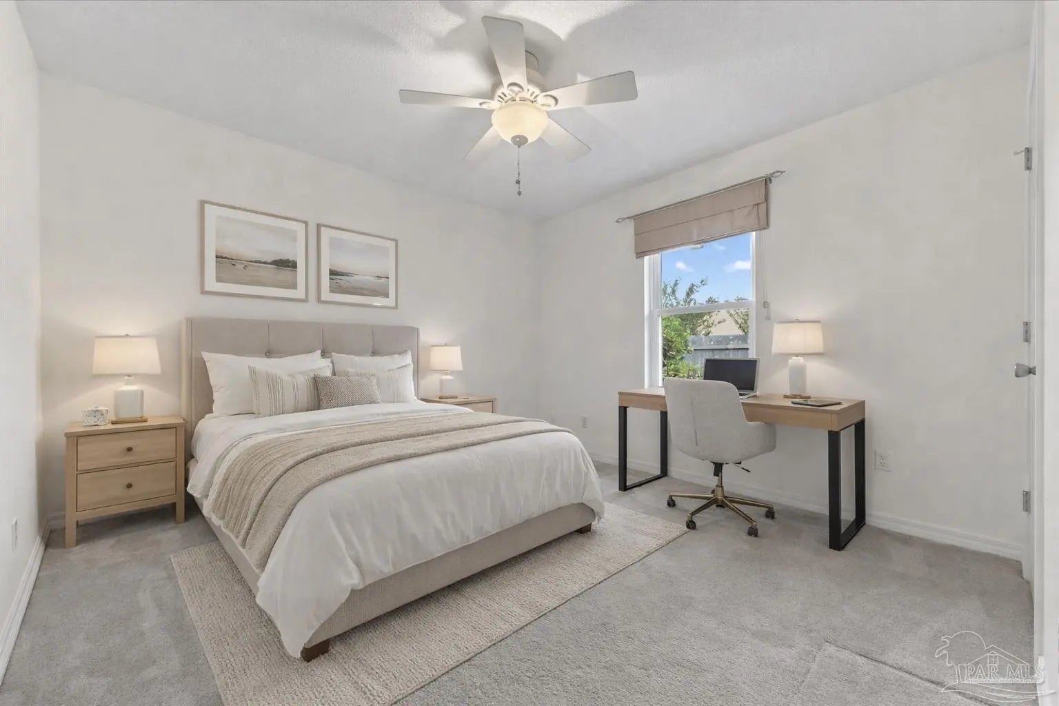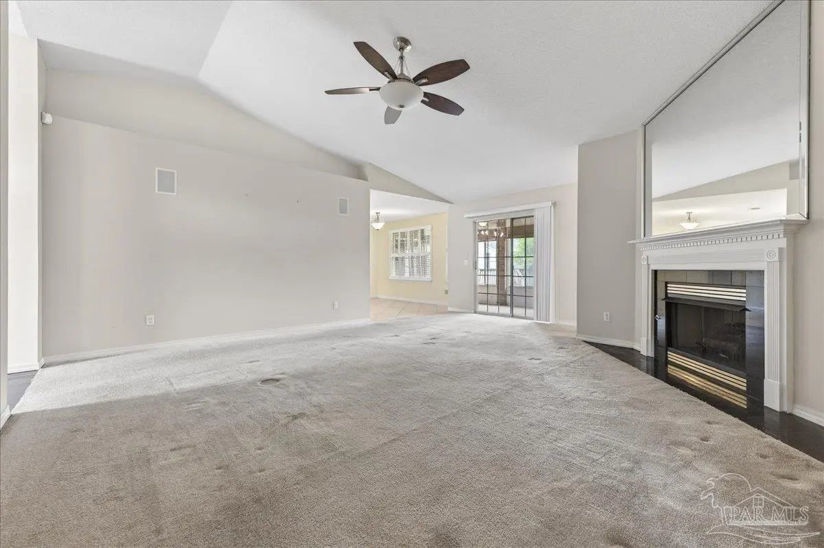 Welcome to this spacious four-bedroom, three-bathroom home with a bonus room, ideally located near the intersection of Lillian Highway and Blue Angel Parkway! Situated in a clean, HOA-managed neighborhood with streetlights, this property offers a central Pensacola location. With a 2021 roof and the windows replaced in 2017, the home is ready for its next owner. Inside, you’ll find a large living room featuring high ceilings and a cozy gas fireplace. The kitchen is generously sized with white cabinetry, stainless steel appliances, a large island, and a breakfast nook for casual dining. The formal dining room provides a dedicated space for hosting, while the bonus room offers flexibility for a home office, playroom, or additional living area. The split primary suite offers privacy and includes a spacious en suite bathroom with double vanities, two closets, a soaking tub, and a separate shower. Additional bedrooms are thoughtfully positioned in their own corners of the home, each with access to bathrooms featuring tub/shower combinations. Step outside to enjoy the covered patio and fully fenced backyard, complete with a large 11'4" x 15'4" workshop/shed. A two-car garage and corrugated metal hurricane shutters adds even more convenience. Located just minutes from NAS Pensacola, Corry Station, and approximately 15–20 minutes from the beautiful beaches of Perdido Key, this home is also close to schools, grocery stores, restaurants, hospitals, and shopping. Enjoy nearby outdoor recreation with Big Lagoon State Park, Navy Point Park, and Blue Angel Park all within a short drive. With its spacious floor plan, desirable neighborhood, and prime location, this home is an exceptional opportunity in Pensacola!