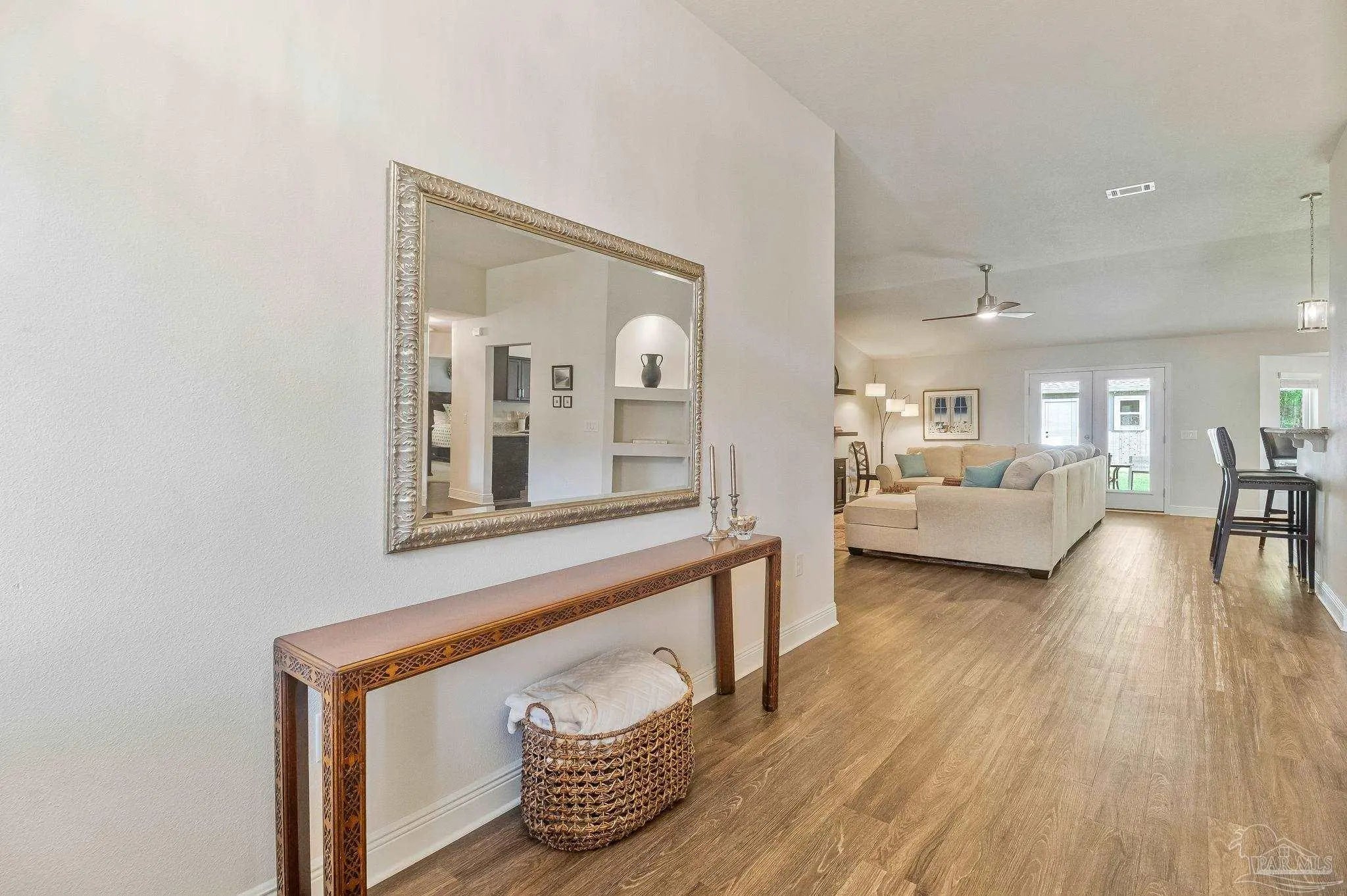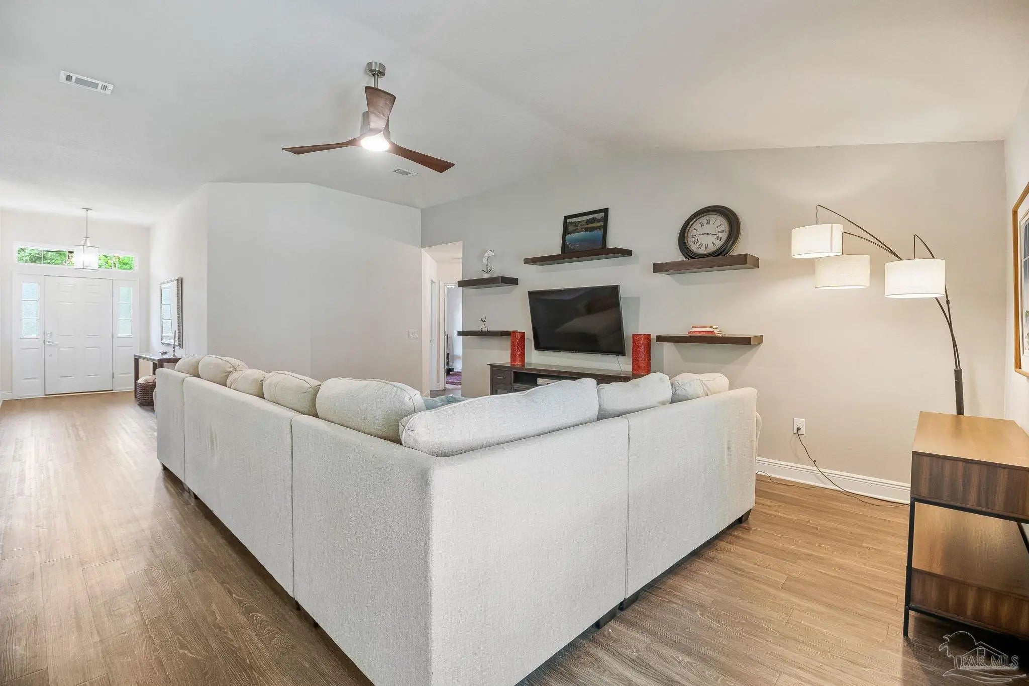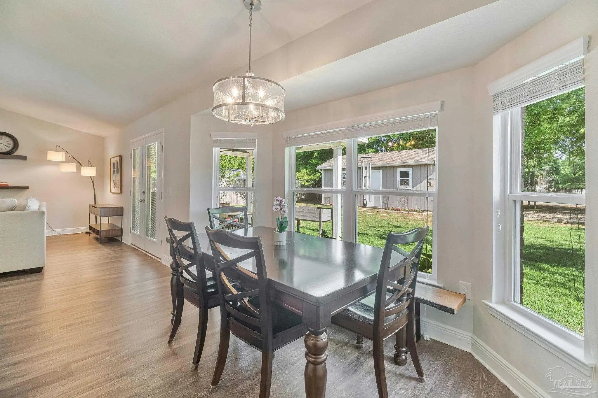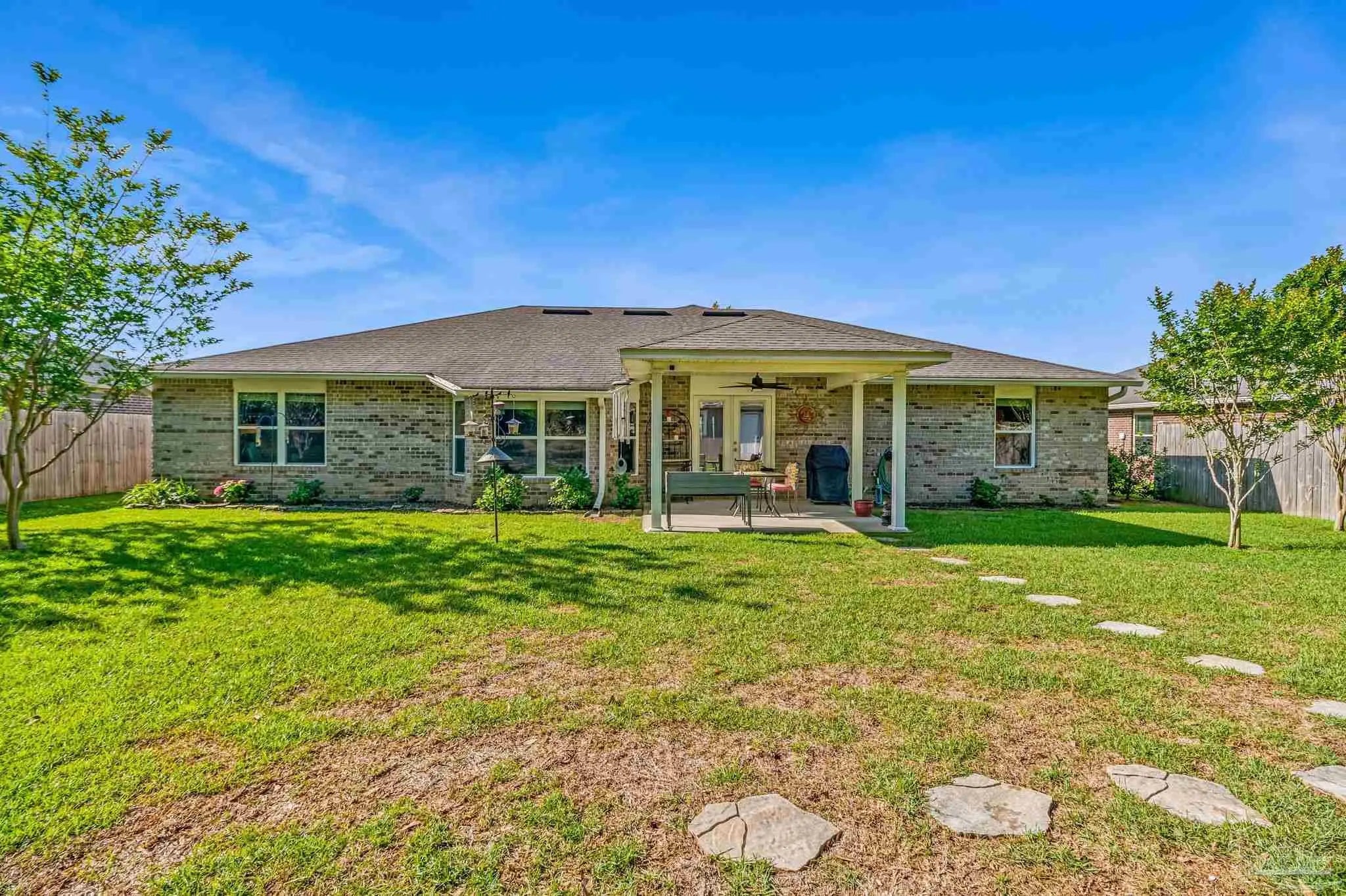 The wait is OVER! Welcome to the home you’ve been searching for in the highly desirable Pace Mill Creek neighborhood! From the moment you pull up, you’ll notice the inviting front porch and spacious two-car garage, but here’s a cool bonus… there’s also rear access with a rock driveway and a 12x24 detached garage, where it is big enough to fit a truck (yes, really!). It’s perfect for extra parking, storage, or keeping things tucked away. Step inside and you’re greeted by a welcoming foyer with a formal dining room to your right, perfect for hosting dinners or serving as a flex space (currently used as an additional living space). The living room features high ceilings and flows seamlessly into the kitchen, creating an open, airy layout that’s perfect for everyday living and entertaining. The kitchen is the heart of the home, featuring dark wood cabinetry, granite countertops, stainless steel appliances, a center island, breakfast bar, pantry, and a breakfast nook, aka plenty of space for cooking, hosting, and everything in between. The split floor plan gives you privacy where it matters most. The primary suite is tucked away on its own side of the home, with plenty of space for a king-sized bed and a sitting area. The ensuite bathroom? A total win, with an oversized tiled shower, soaking tub, double vanities with granite, private water closet, and a large closet. On the opposite side of the home, you’ll find three additional bedrooms sharing a full bath. Complete with a tub/shower combination, granite countertops, and a single vanity sink. Now, step out back to your covered patio, ideal for morning coffee, winding down in the evenings, or morning bird watching. The backyard offers tons of space to spread out, entertain, or just enjoy the Florida weather, and that large, covered shed/garage adds even more flexibility. This home checks all the boxes, and then some. Come see it for yourself… You might not want to leave!