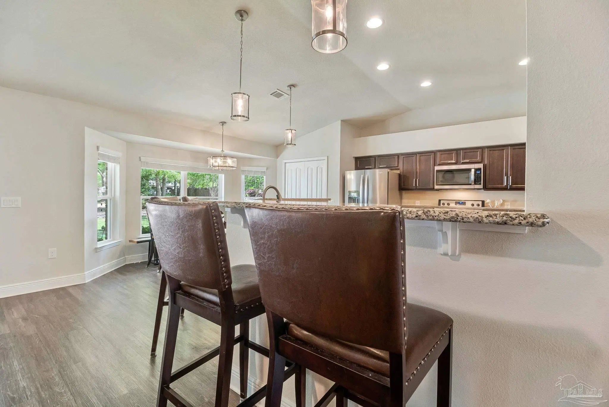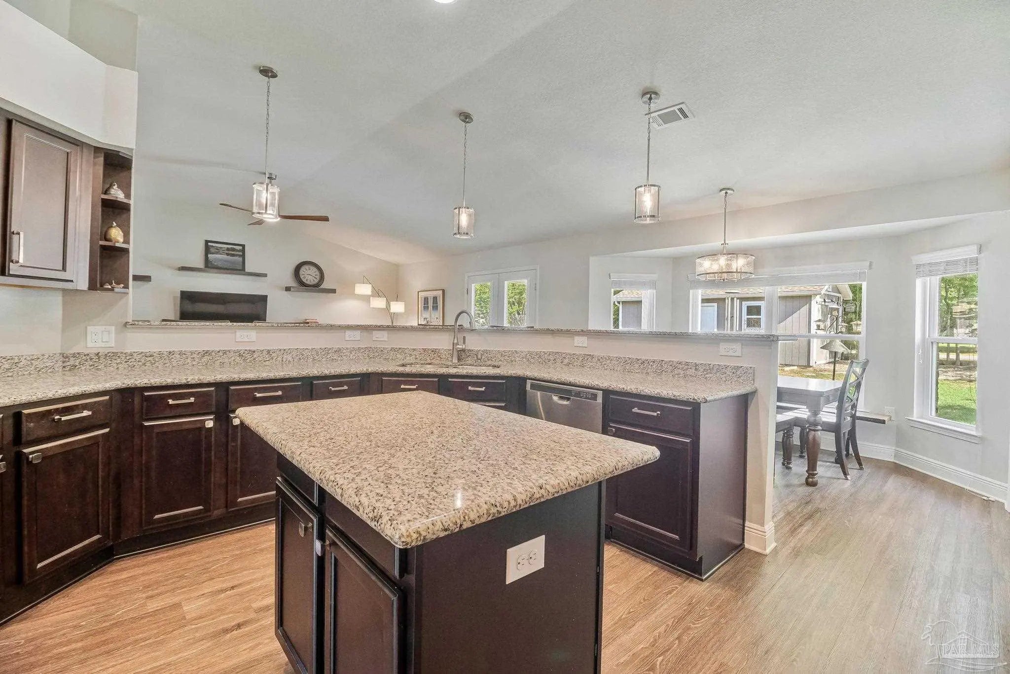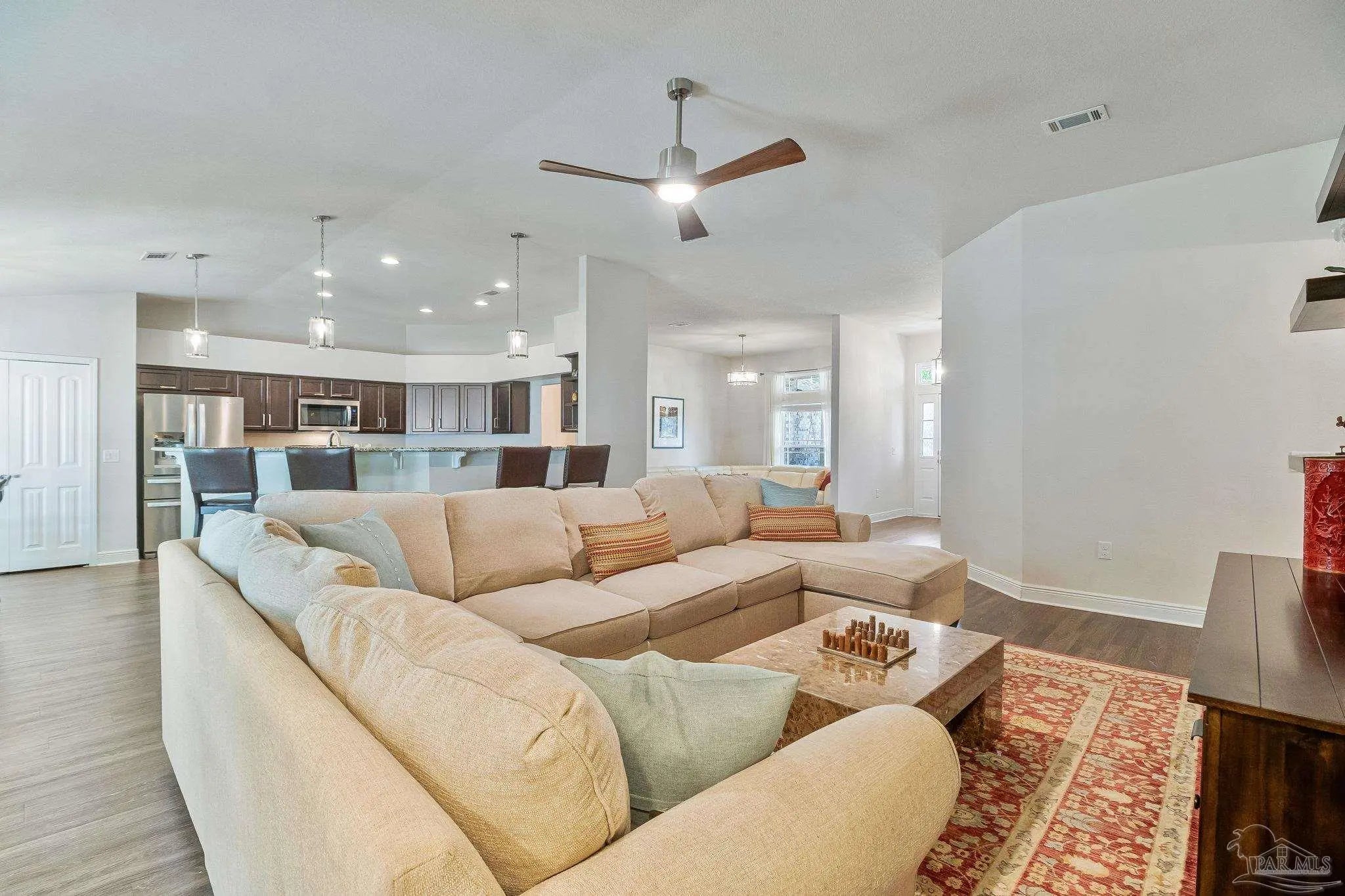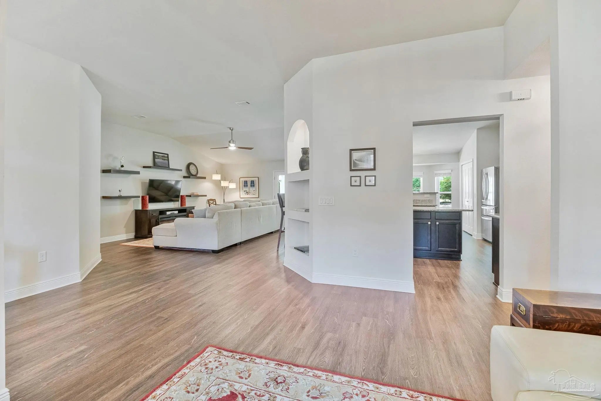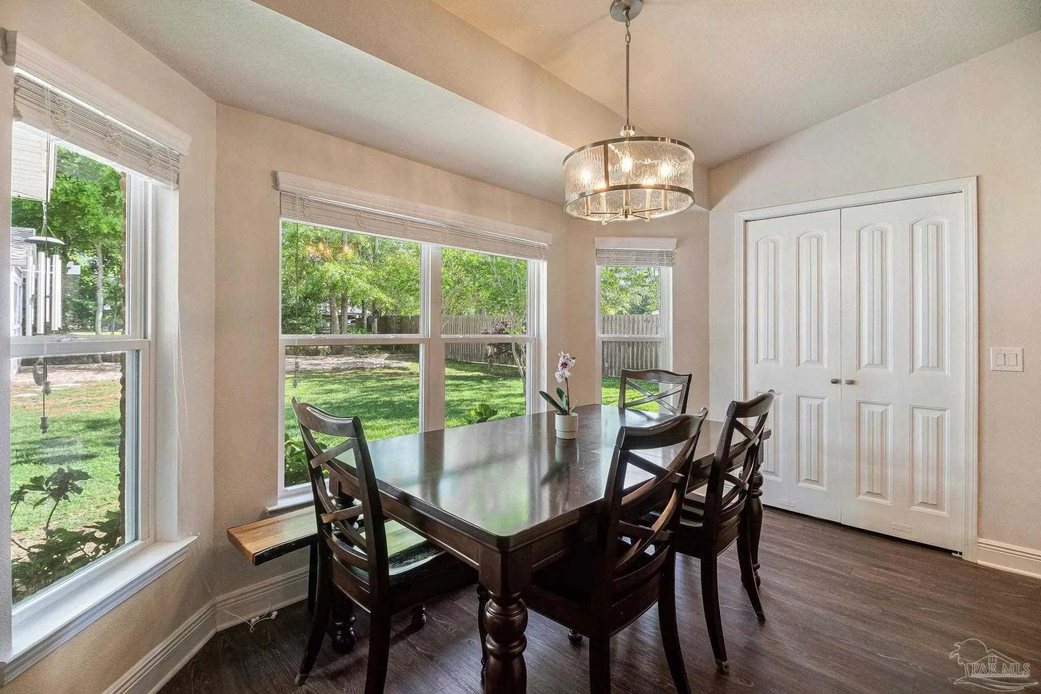 The wait is OVER! Welcome to the home you’ve been searching for in the highly desirable Pace Mill Creek neighborhood! From the moment you pull up, you’ll notice the inviting front porch and spacious two-car garage, but here’s a cool bonus… there’s also rear access with a rock driveway and a 12x24 detached garage, where it is big enough to fit a truck (yes, really!). It’s perfect for extra parking, storage, or keeping things tucked away. Step inside and you’re greeted by a welcoming foyer with a formal dining room to your right, perfect for hosting dinners or serving as a flex space (currently used as an additional living space). The living room features high ceilings and flows seamlessly into the kitchen, creating an open, airy layout that’s perfect for everyday living and entertaining. The kitchen is the heart of the home, featuring dark wood cabinetry, granite countertops, stainless steel appliances, a center island, breakfast bar, pantry, and a breakfast nook, aka plenty of space for cooking, hosting, and everything in between. The split floor plan gives you privacy where it matters most. The primary suite is tucked away on its own side of the home, with plenty of space for a king-sized bed and a sitting area. The ensuite bathroom? A total win, with an oversized tiled shower, soaking tub, double vanities with granite, private water closet, and a large closet. On the opposite side of the home, you’ll find three additional bedrooms sharing a full bath. Complete with a tub/shower combination, granite countertops, and a single vanity sink. Now, step out back to your covered patio, ideal for morning coffee, winding down in the evenings, or morning bird watching. The backyard offers tons of space to spread out, entertain, or just enjoy the Florida weather, and that large, covered shed/garage adds even more flexibility. This home checks all the boxes, and then some. Come see it for yourself… You might not want to leave!