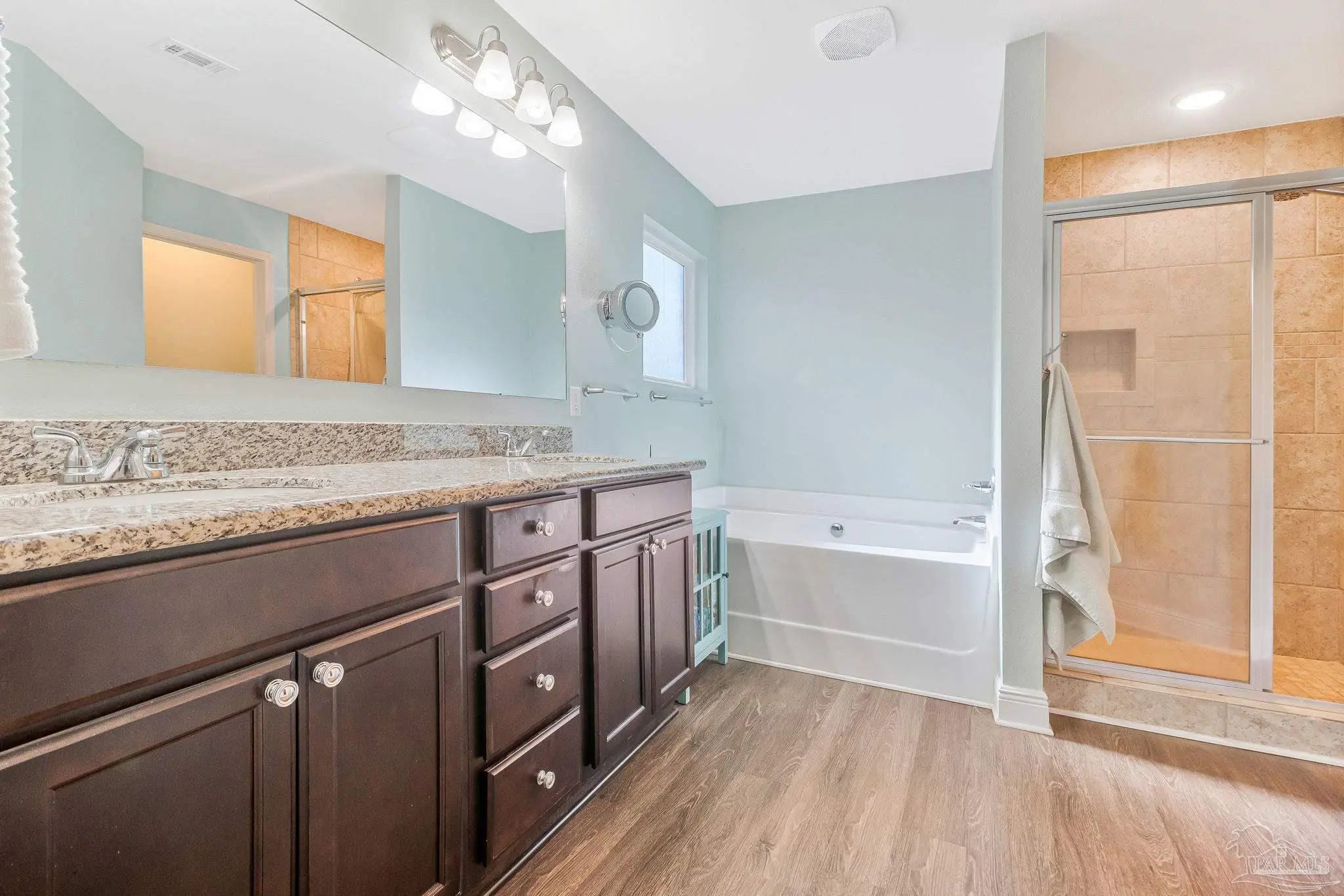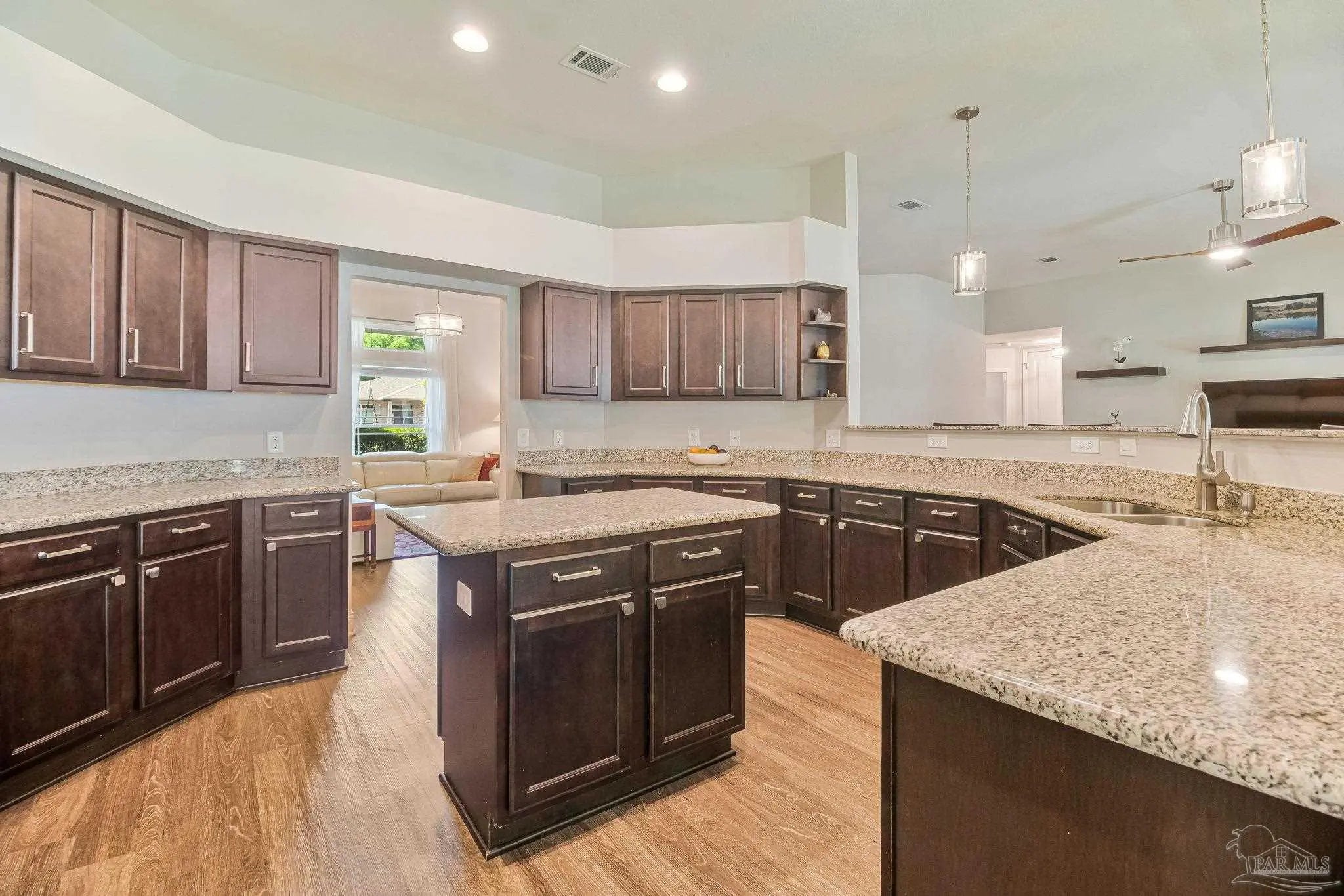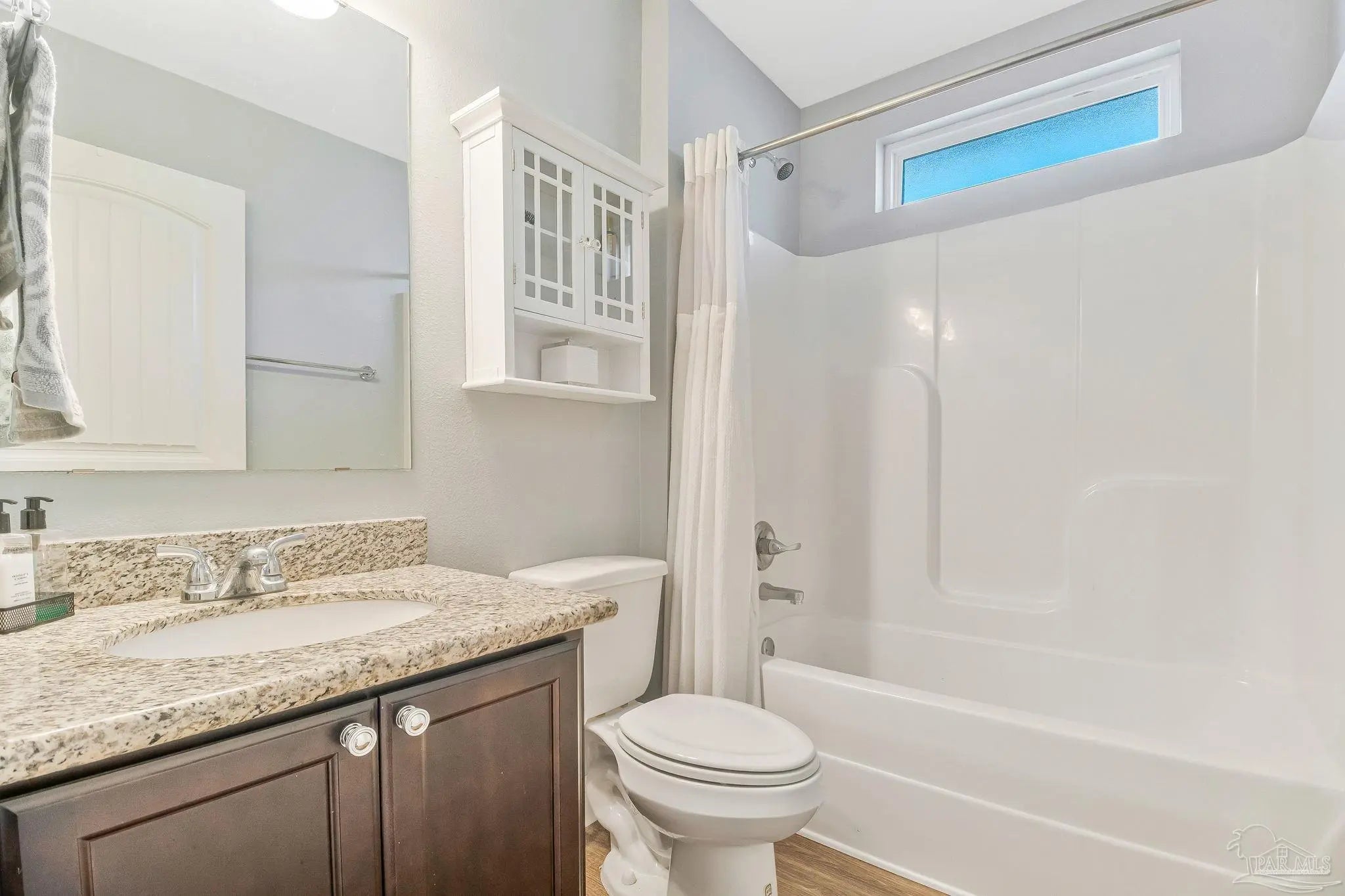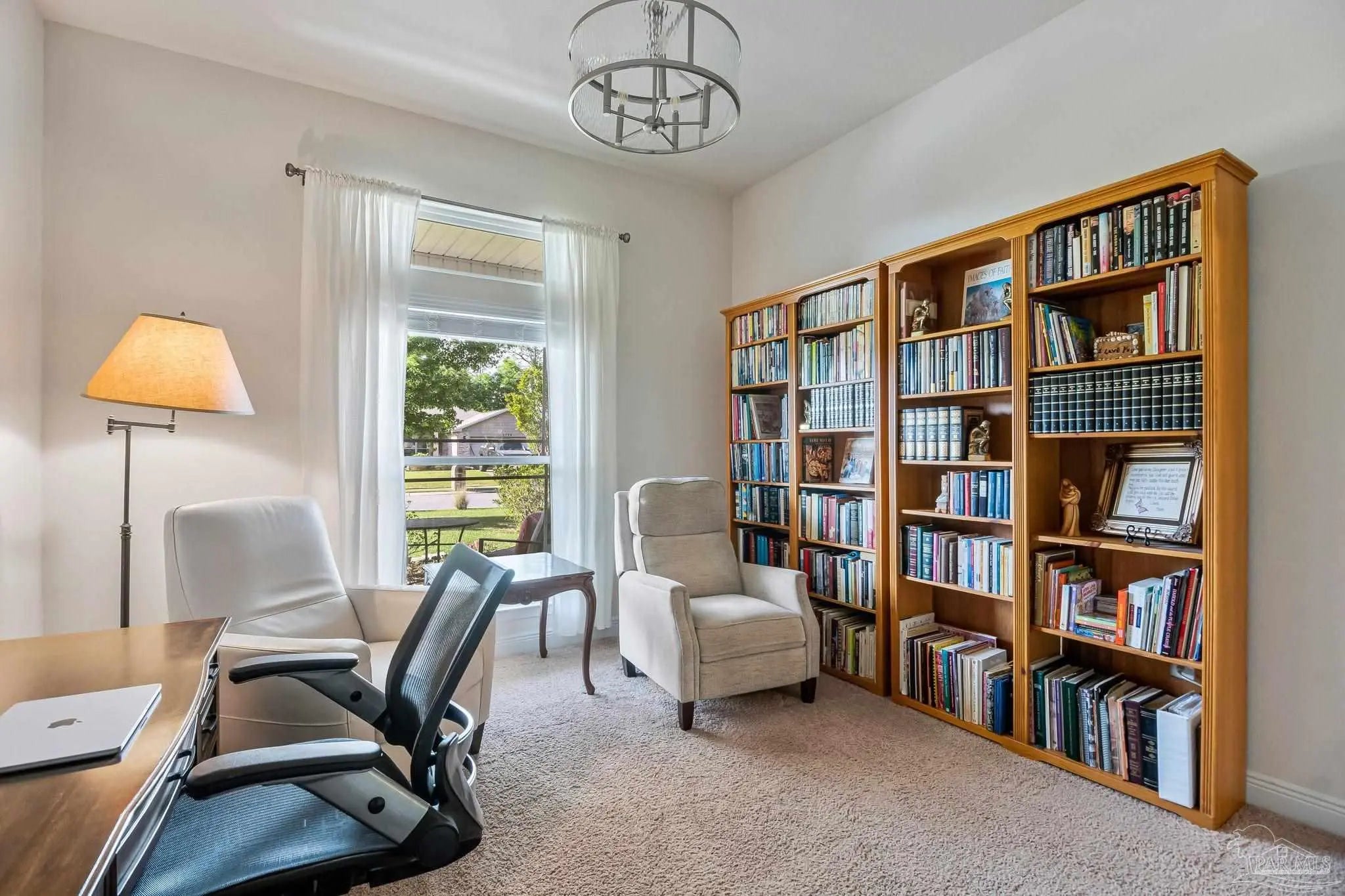 The wait is OVER! Welcome to the home you’ve been searching for in the highly desirable Pace Mill Creek neighborhood! From the moment you pull up, you’ll notice the inviting front porch and spacious two-car garage, but here’s a cool bonus… there’s also rear access with a rock driveway and a 12x24 detached garage, where it is big enough to fit a truck (yes, really!). It’s perfect for extra parking, storage, or keeping things tucked away. Step inside and you’re greeted by a welcoming foyer with a formal dining room to your right, perfect for hosting dinners or serving as a flex space (currently used as an additional living space). The living room features high ceilings and flows seamlessly into the kitchen, creating an open, airy layout that’s perfect for everyday living and entertaining. The kitchen is the heart of the home, featuring dark wood cabinetry, granite countertops, stainless steel appliances, a center island, breakfast bar, pantry, and a breakfast nook, aka plenty of space for cooking, hosting, and everything in between. The split floor plan gives you privacy where it matters most. The primary suite is tucked away on its own side of the home, with plenty of space for a king-sized bed and a sitting area. The ensuite bathroom? A total win, with an oversized tiled shower, soaking tub, double vanities with granite, private water closet, and a large closet. On the opposite side of the home, you’ll find three additional bedrooms sharing a full bath. Complete with a tub/shower combination, granite countertops, and a single vanity sink. Now, step out back to your covered patio, ideal for morning coffee, winding down in the evenings, or morning bird watching. The backyard offers tons of space to spread out, entertain, or just enjoy the Florida weather, and that large, covered shed/garage adds even more flexibility. This home checks all the boxes, and then some. Come see it for yourself… You might not want to leave!