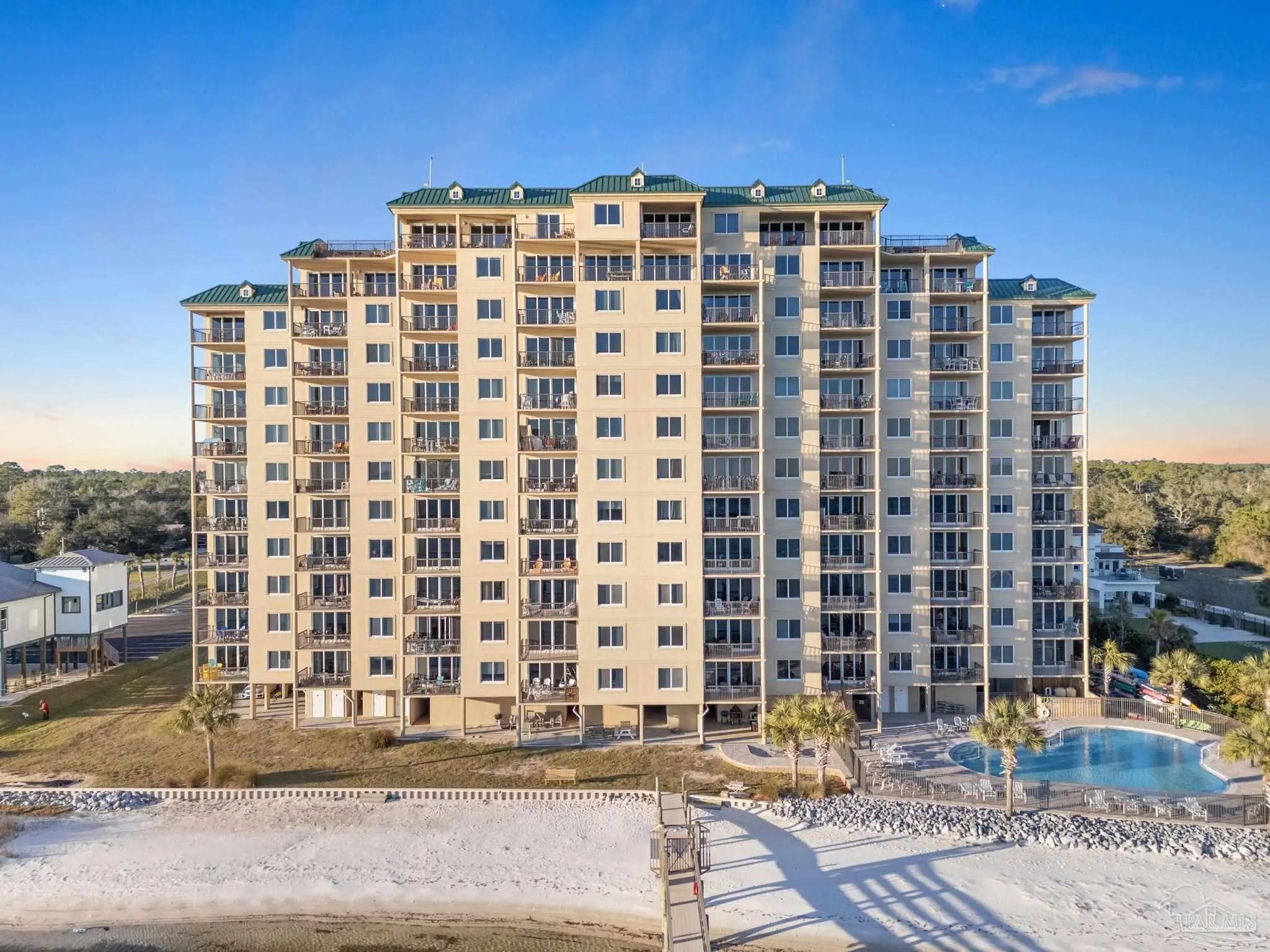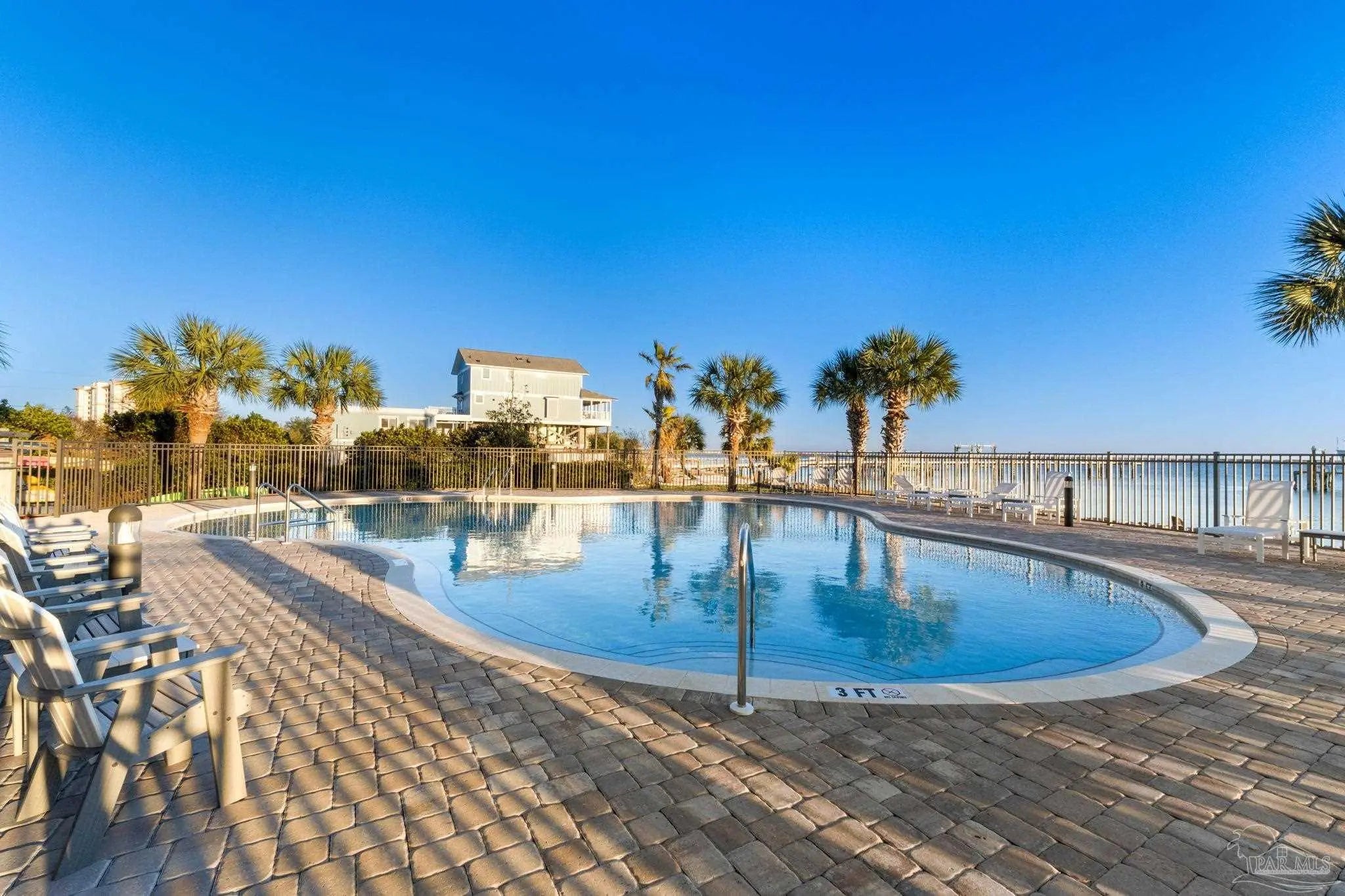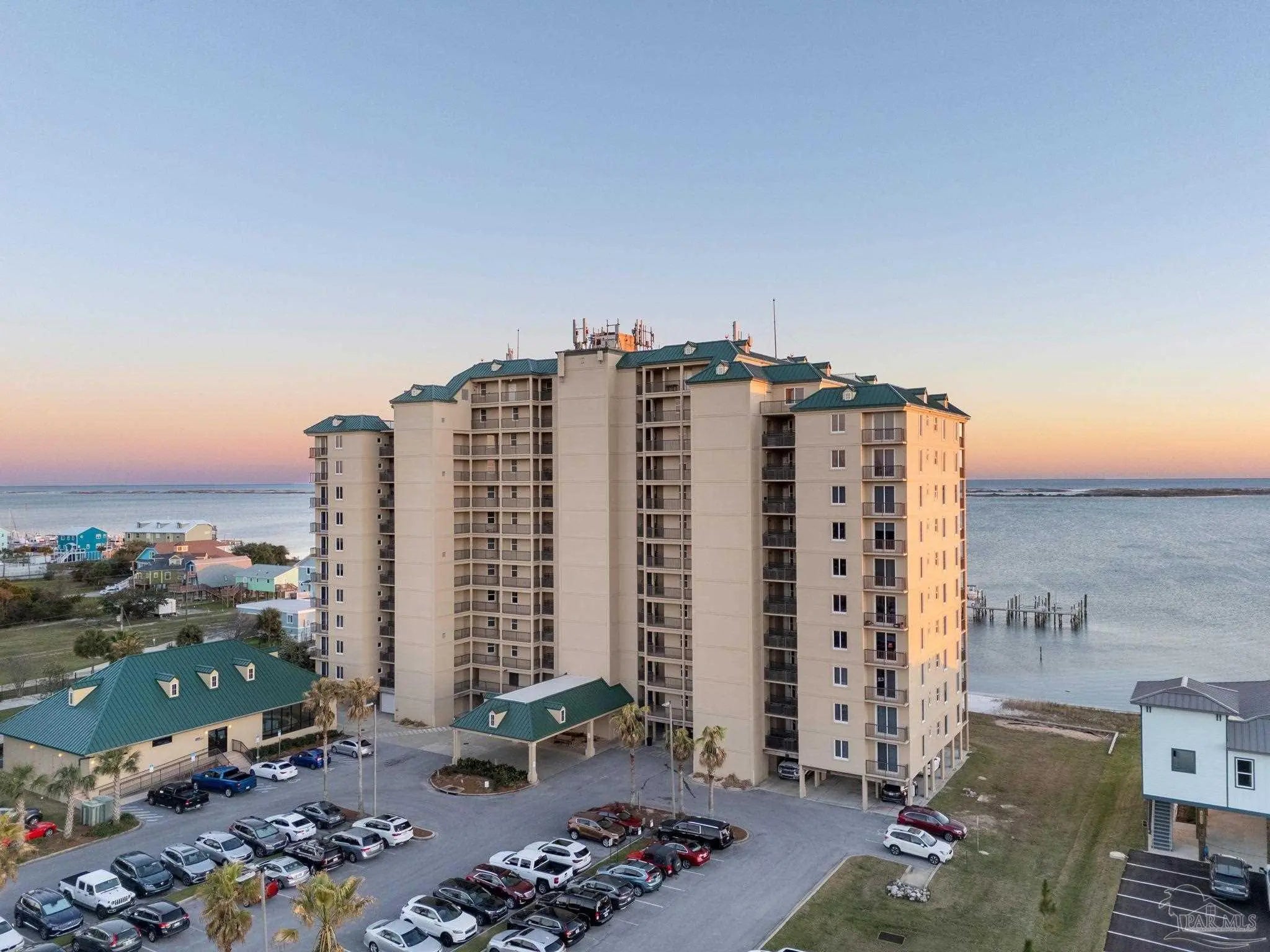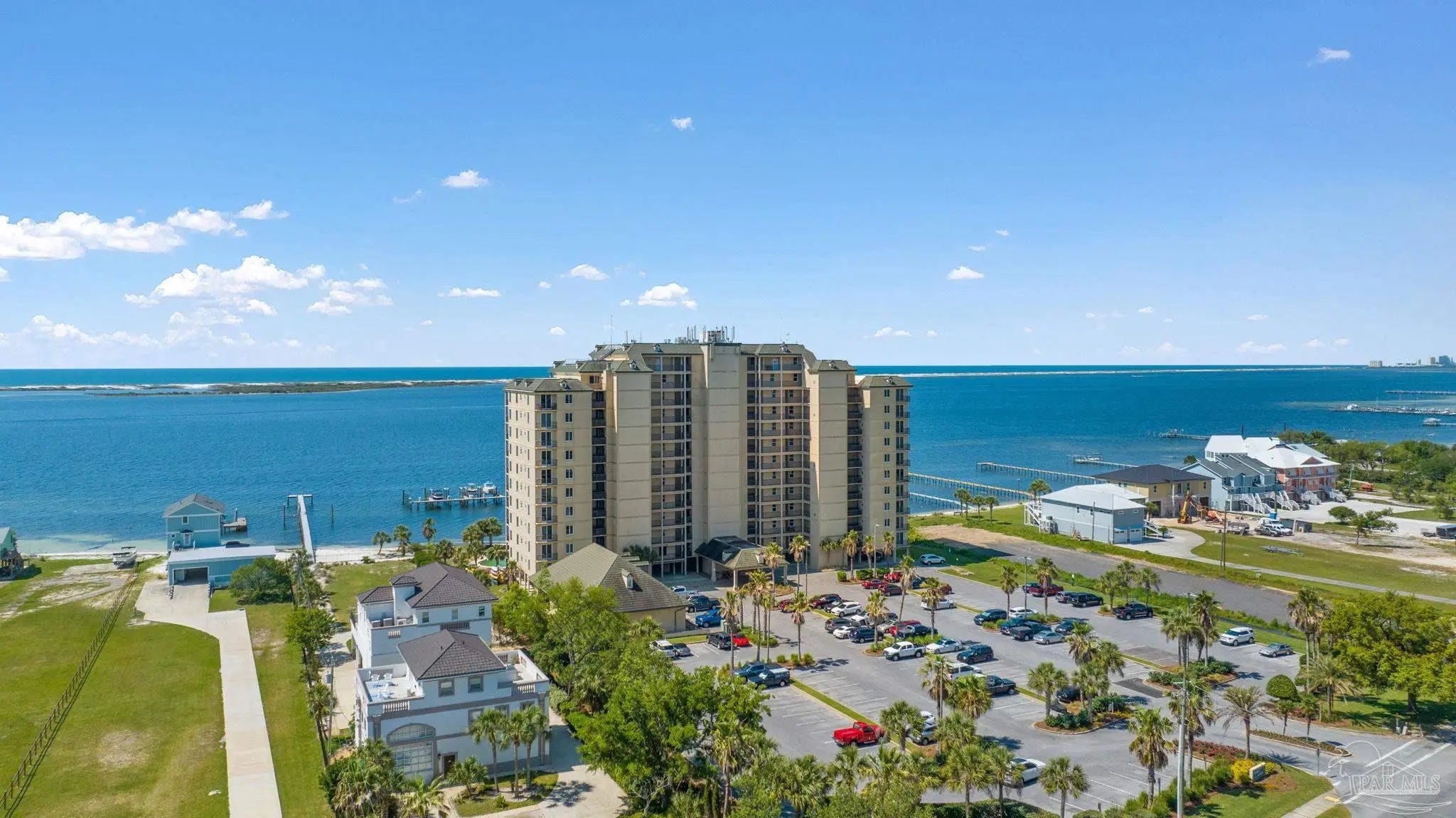 Peaceful, luxury residence that offers breathtaking waterfront views, This exceptional unit is designed for easy living, the property offers a serene atmosphere while remaining conveniently close to the area's most popular destinations. The interior features a thoughtful floor-plan complemented by a brand new 14 Seer Heat Pump systerm, modern kitchen with white quartz countertops. One of the standout features is the oversized balcony, which provides spectacular views of Big Lagoon, Johnson Beach at the Gulf Islands National Seashore, and the Gulf of America. It is the perfect setting to sit back and relax enjoying meals while watching passing boats, dauphins playing or viewing performances by our amazing Blue Angels. The community provides an extensive array of amenities, including: waterfront outdoor pool and heated indoor pool, a hot tub, sauna, and a fitness center. A private sandy beach area, fishing, and a dock with boat slips available for purchase. Kayak storage, additional storage units, a community room, and BBQ picnic areas. A this condominium includes a backup generator for added peace of mind. Located with easy access to Perdido Key beaches, local shopping, dining, NAS Pensacola, and the vibrant award winning downtown Pensacola area, this property offers a truly wonderful lifestyle. Schedule a viewing today!