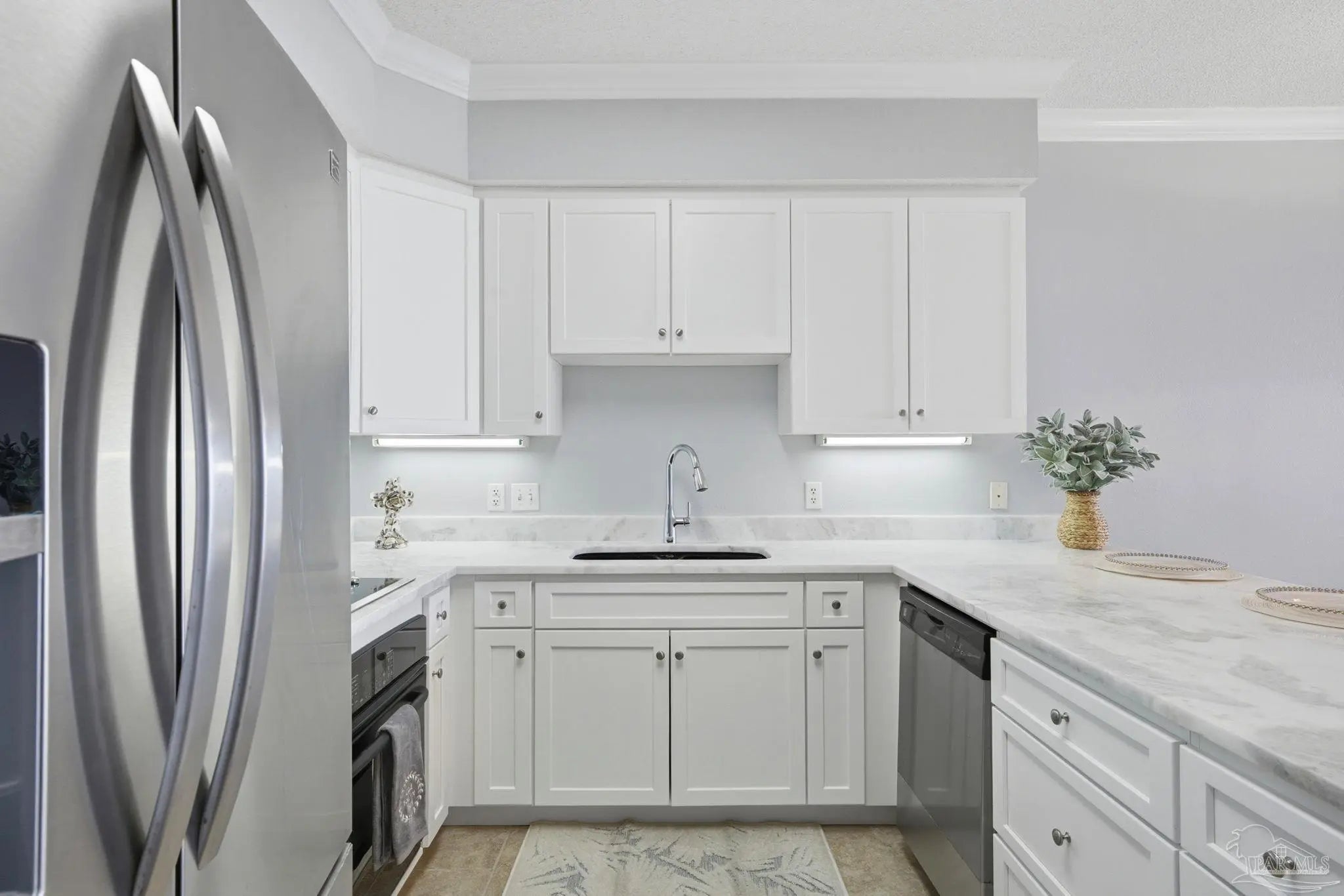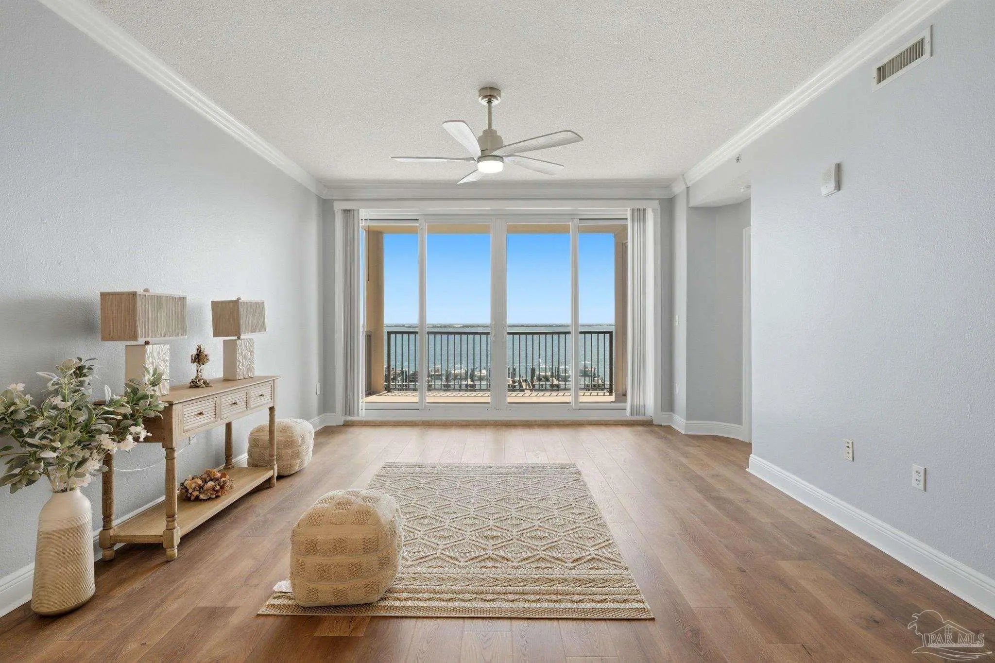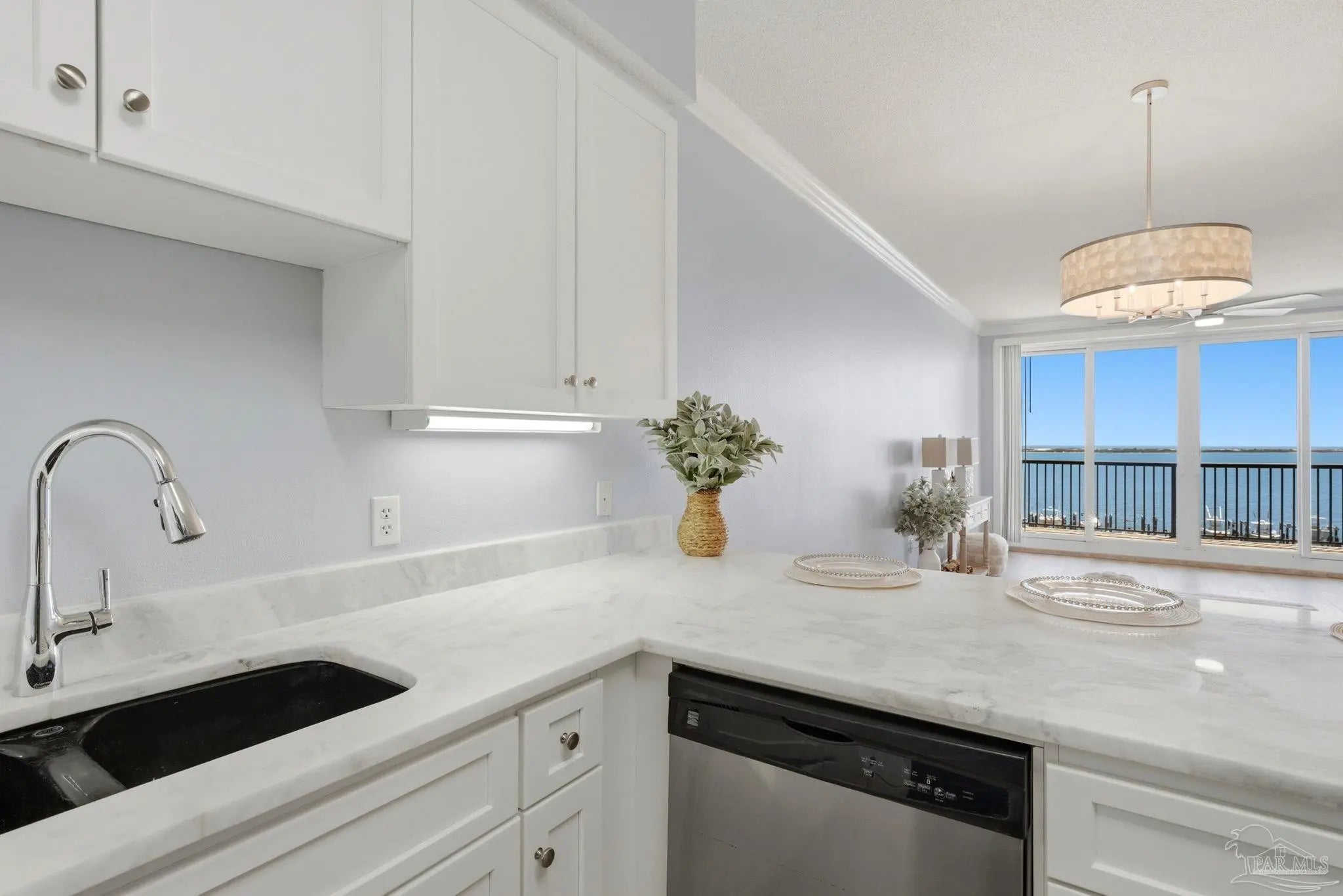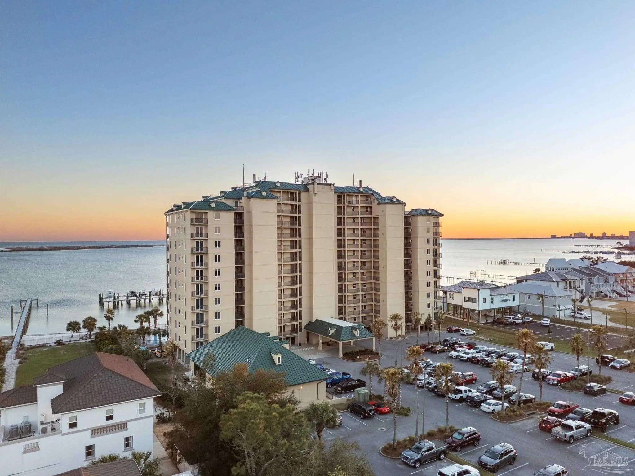 Peaceful, luxury residence that offers breathtaking waterfront views, This exceptional unit is designed for easy living, the property offers a serene atmosphere while remaining conveniently close to the area's most popular destinations. The interior features a thoughtful floor-plan complemented by a brand new 14 Seer Heat Pump systerm, modern kitchen with white quartz countertops. One of the standout features is the oversized balcony, which provides spectacular views of Big Lagoon, Johnson Beach at the Gulf Islands National Seashore, and the Gulf of America. It is the perfect setting to sit back and relax enjoying meals while watching passing boats, dauphins playing or viewing performances by our amazing Blue Angels. The community provides an extensive array of amenities, including: waterfront outdoor pool and heated indoor pool, a hot tub, sauna, and a fitness center. A private sandy beach area, fishing, and a dock with boat slips available for purchase. Kayak storage, additional storage units, a community room, and BBQ picnic areas. A this condominium includes a backup generator for added peace of mind. Located with easy access to Perdido Key beaches, local shopping, dining, NAS Pensacola, and the vibrant award winning downtown Pensacola area, this property offers a truly wonderful lifestyle. Schedule a viewing today!