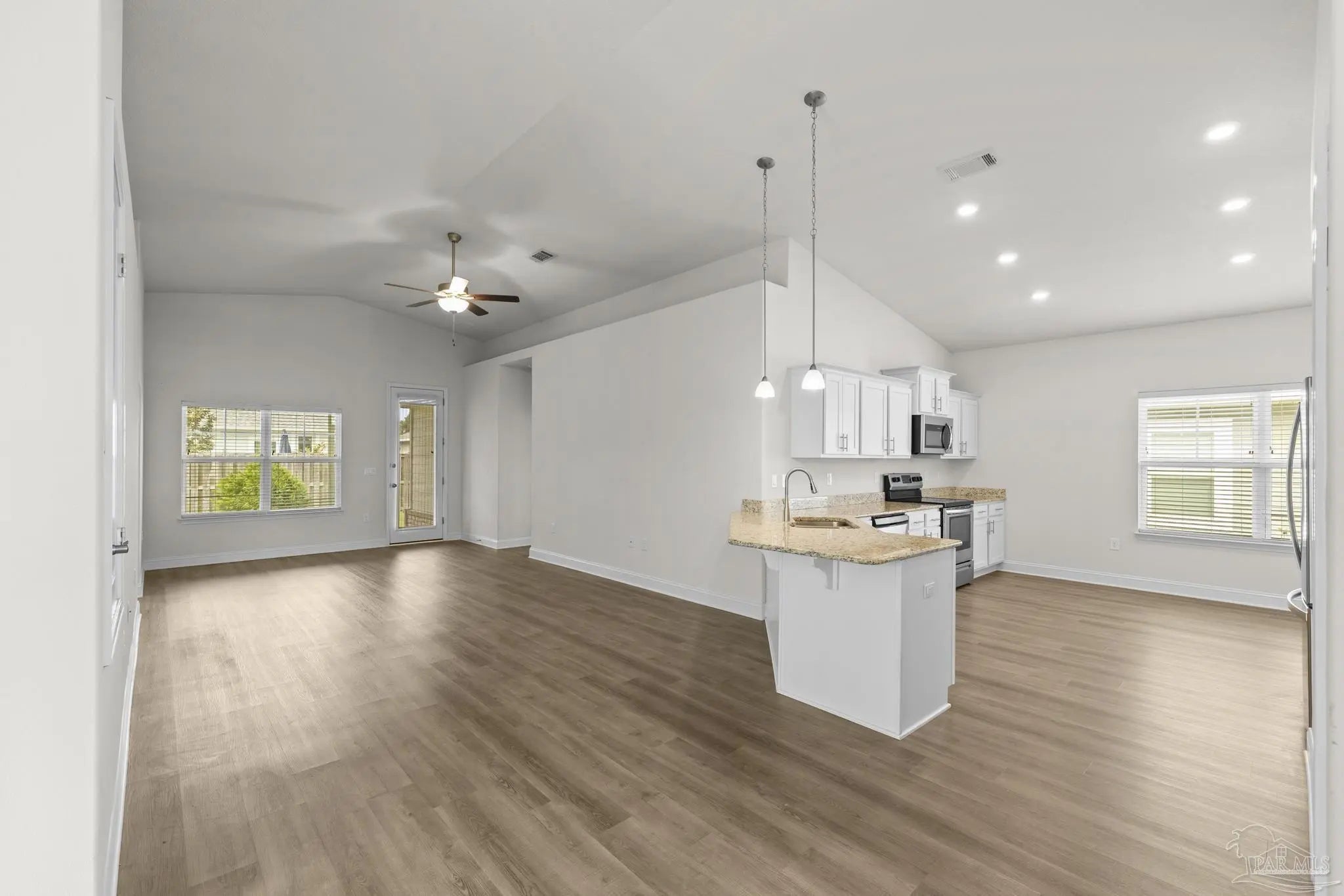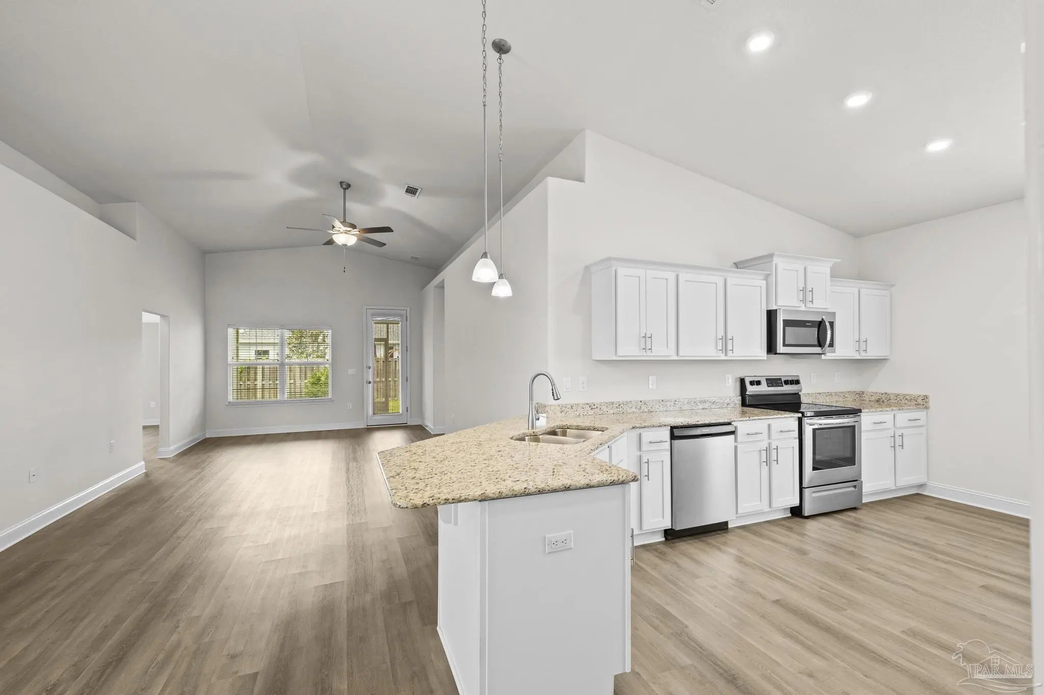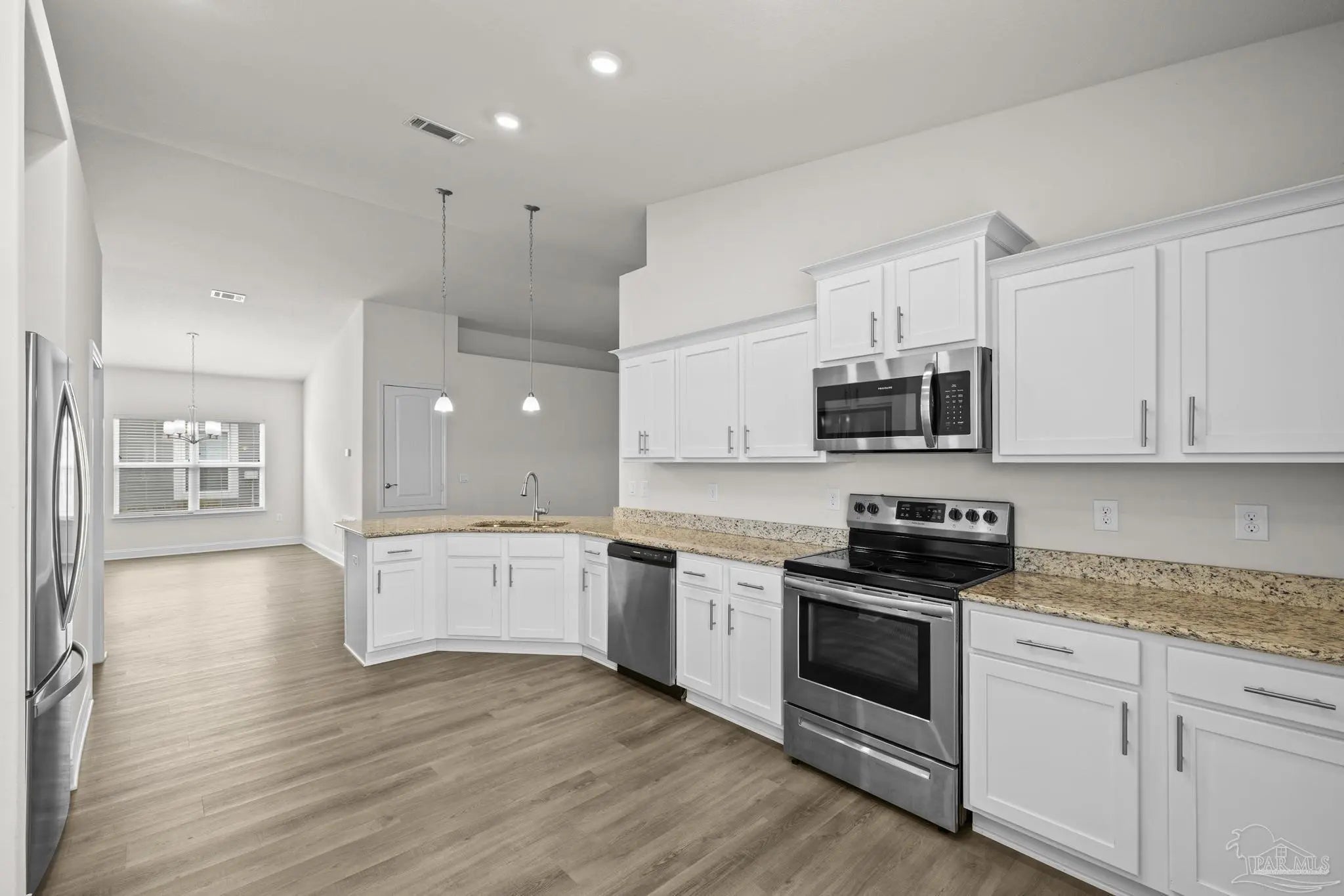 Welcome home! This charming property features a large, welcoming front porch—perfect for relaxing and enjoying the neighborhood. Offering 4 thoughtfully laid-out bedrooms and 2 full bathrooms, the home provides 1,825 square feet of comfortable living space on a .14-acre lot. Step inside to an open-concept design enhanced by light, airy colors and a seamless flow between the living, dining, and kitchen areas. The kitchen is beautifully appointed with granite countertops, all-white cabinetry, a breakfast bar, and a dedicated dining area—ideal for both everyday living and entertaining. Out back, enjoy a covered screened patio overlooking a fully fenced yard, providing the perfect space for outdoor gatherings or quiet evenings at home. Major systems including the HVAC, roof, and water heater all 2020, offering peace of mind for years to come.