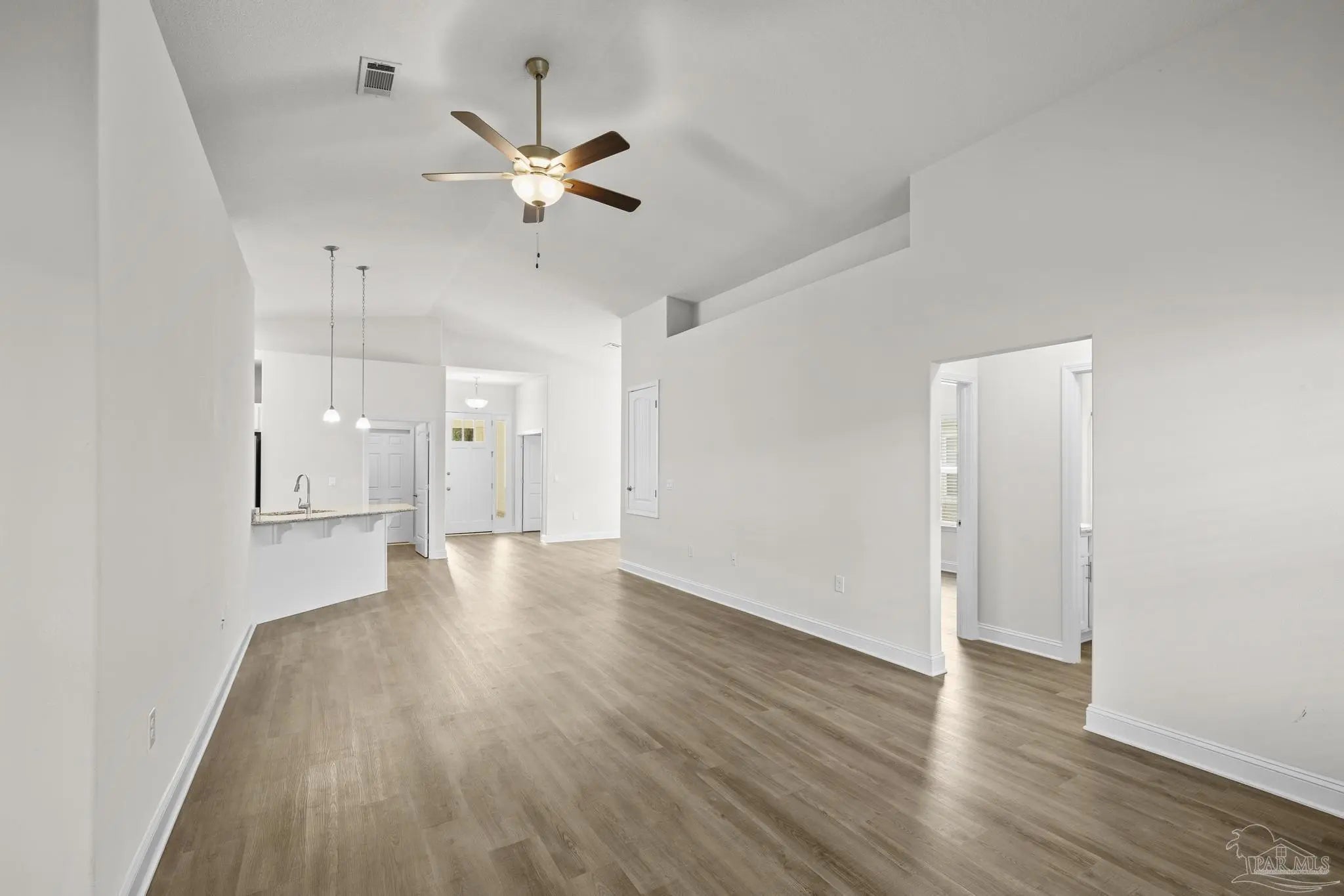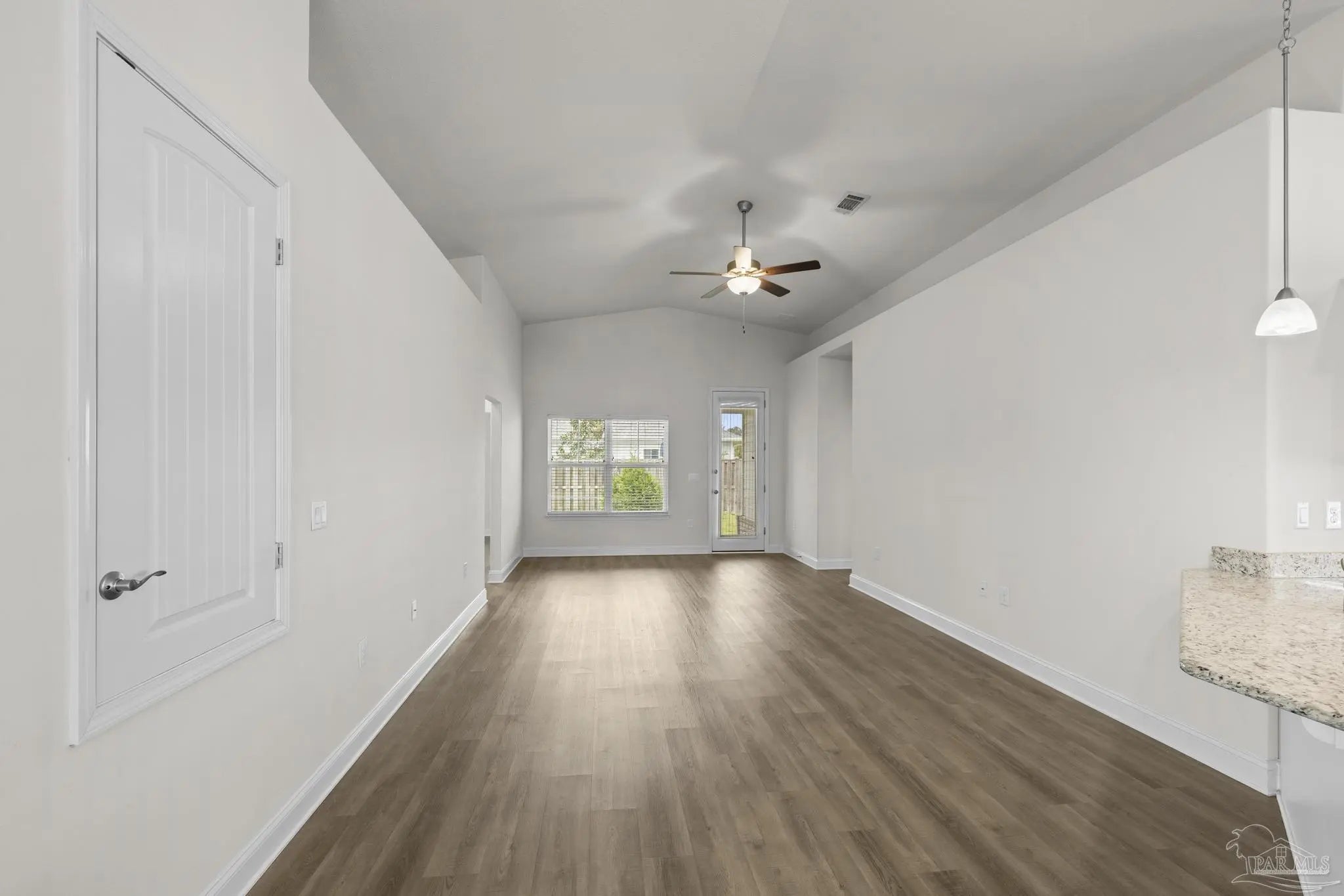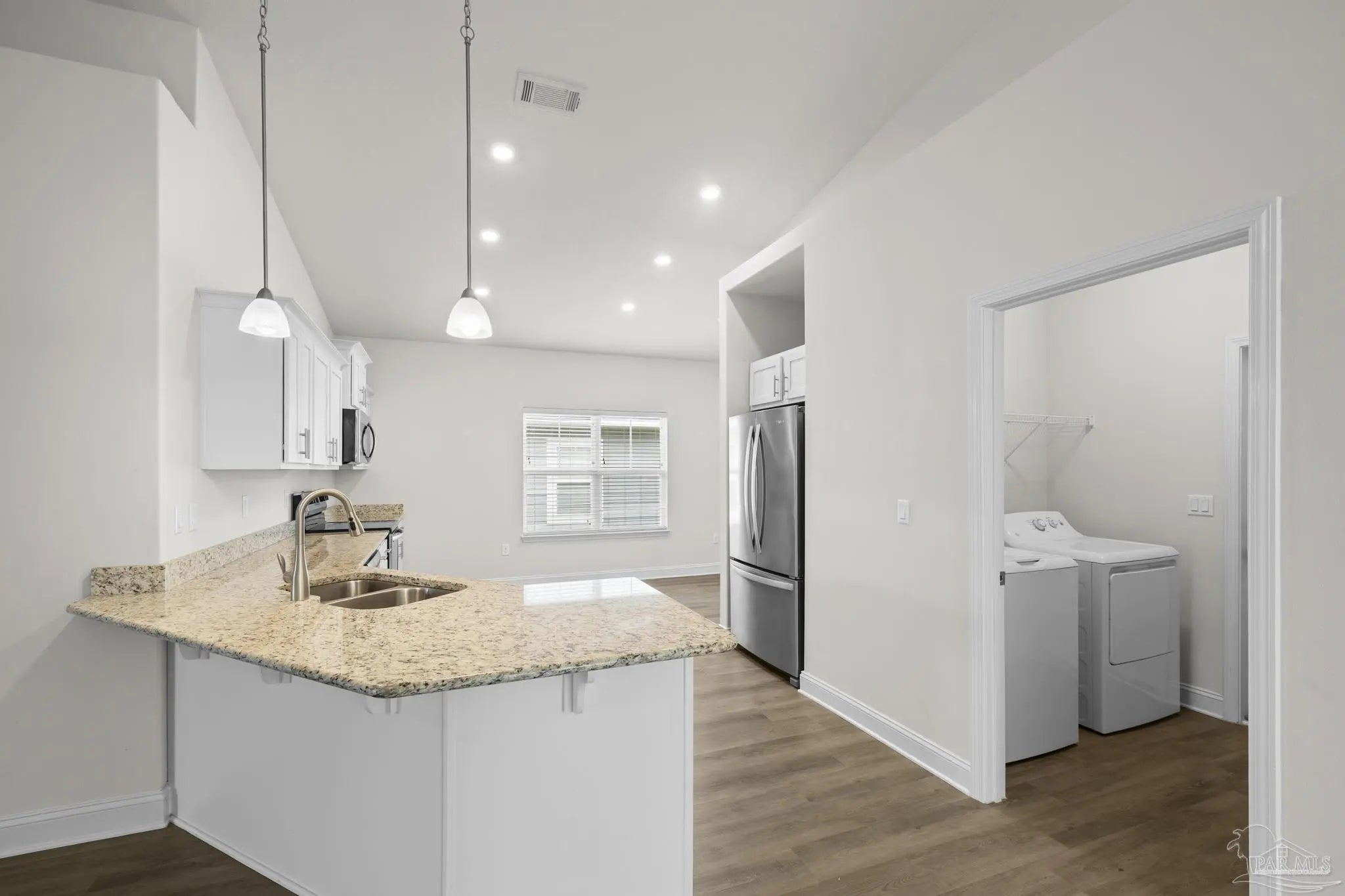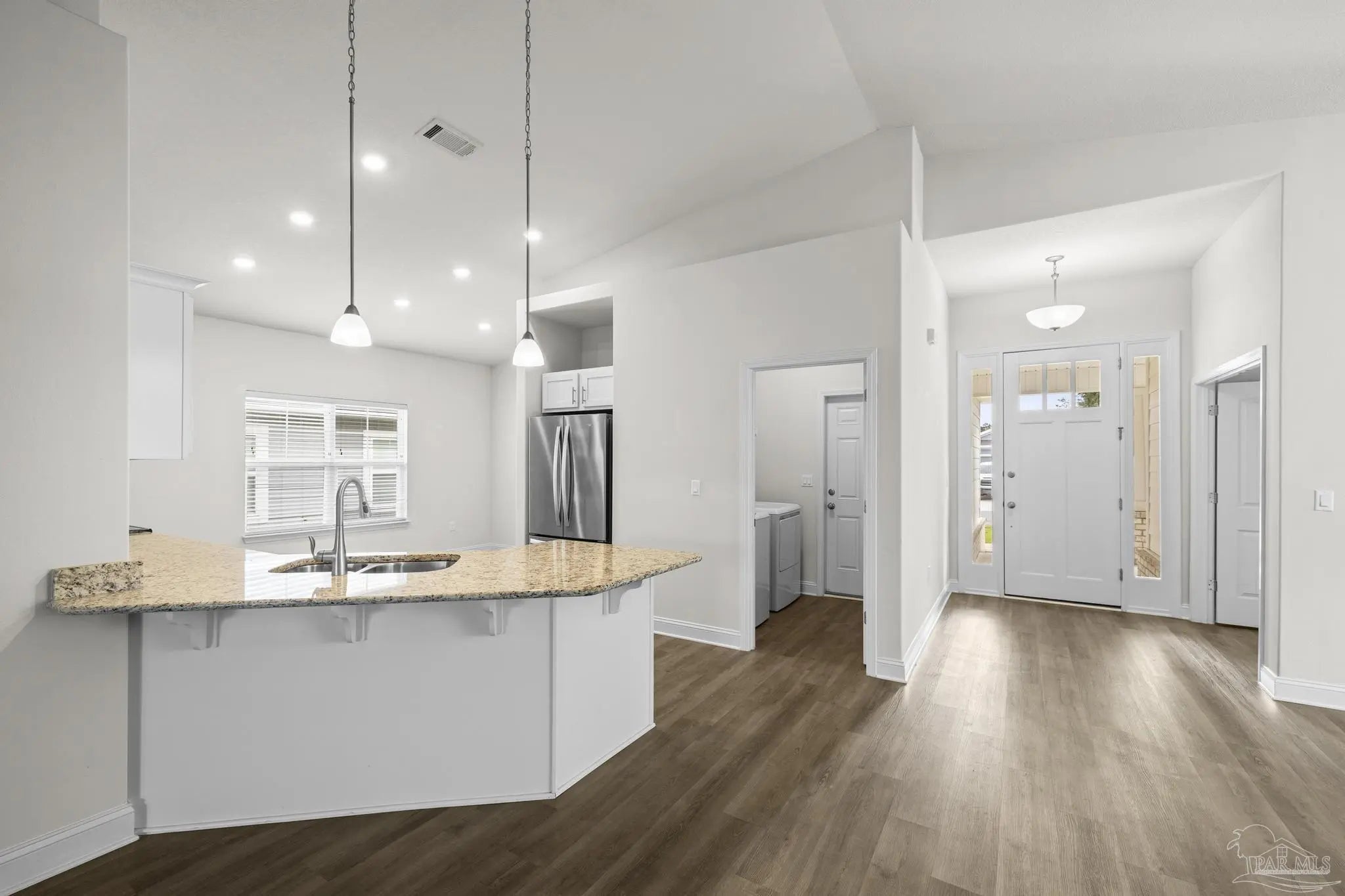 Welcome home! This charming property features a large, welcoming front porch—perfect for relaxing and enjoying the neighborhood. Offering 4 thoughtfully laid-out bedrooms and 2 full bathrooms, the home provides 1,825 square feet of comfortable living space on a .14-acre lot. Step inside to an open-concept design enhanced by light, airy colors and a seamless flow between the living, dining, and kitchen areas. The kitchen is beautifully appointed with granite countertops, all-white cabinetry, a breakfast bar, and a dedicated dining area—ideal for both everyday living and entertaining. Out back, enjoy a covered screened patio overlooking a fully fenced yard, providing the perfect space for outdoor gatherings or quiet evenings at home. Major systems including the HVAC, roof, and water heater all 2020, offering peace of mind for years to come.